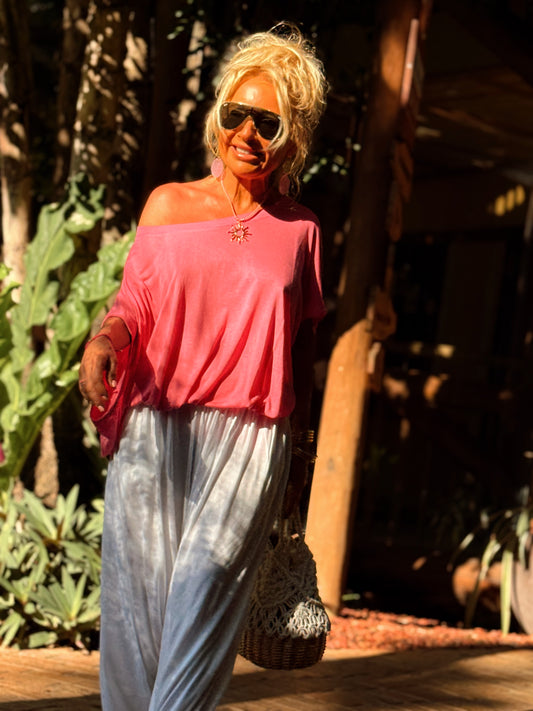 CONJUNTO OVERSIZE TÚNICA-PANTALON AMELIE FUCSIA-BLANCO