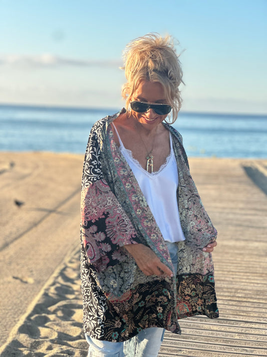 KIMONO CORTO OVERSIZE ESTAMPADO MANGA LARGA MULTICOLOR
