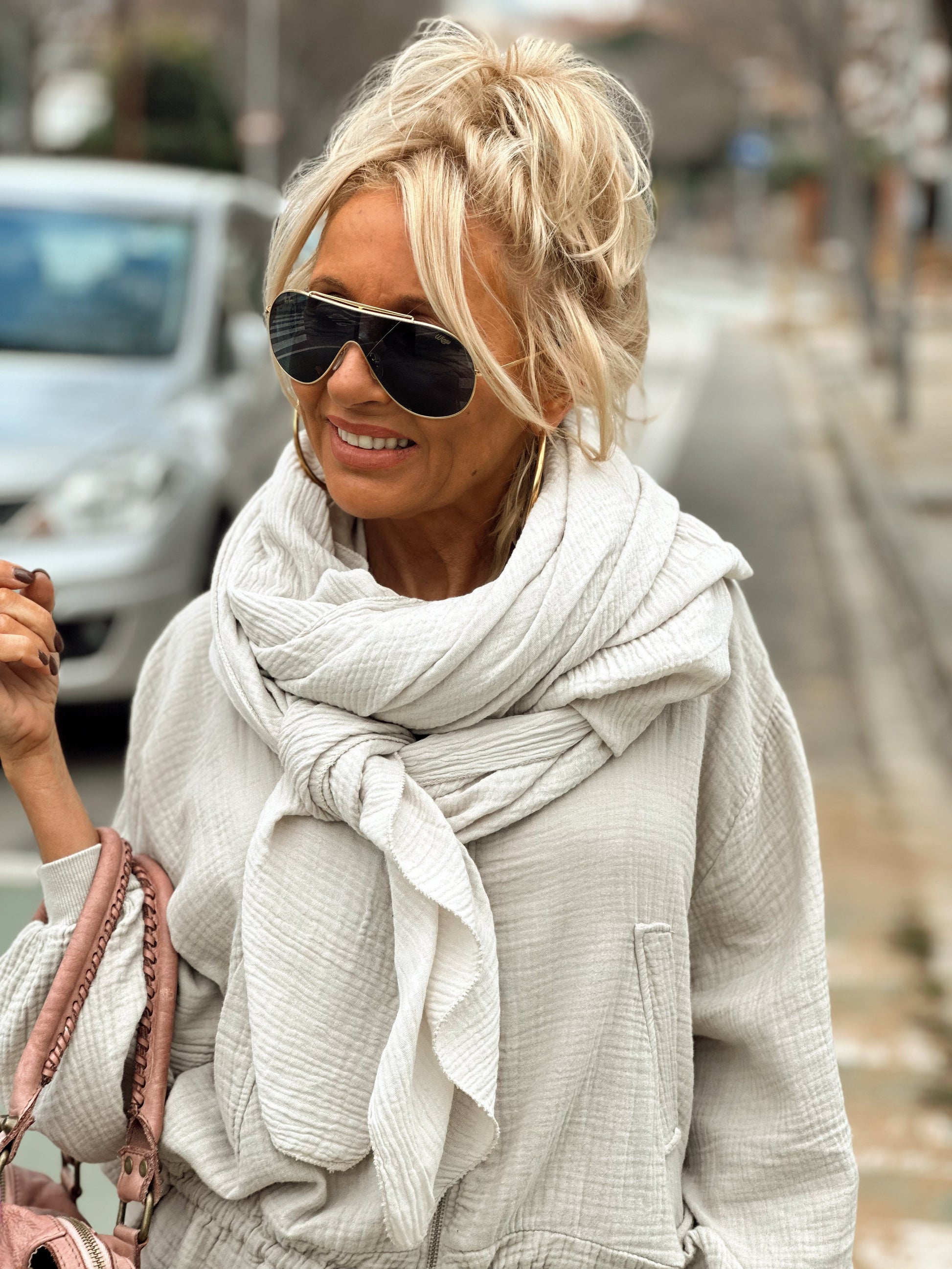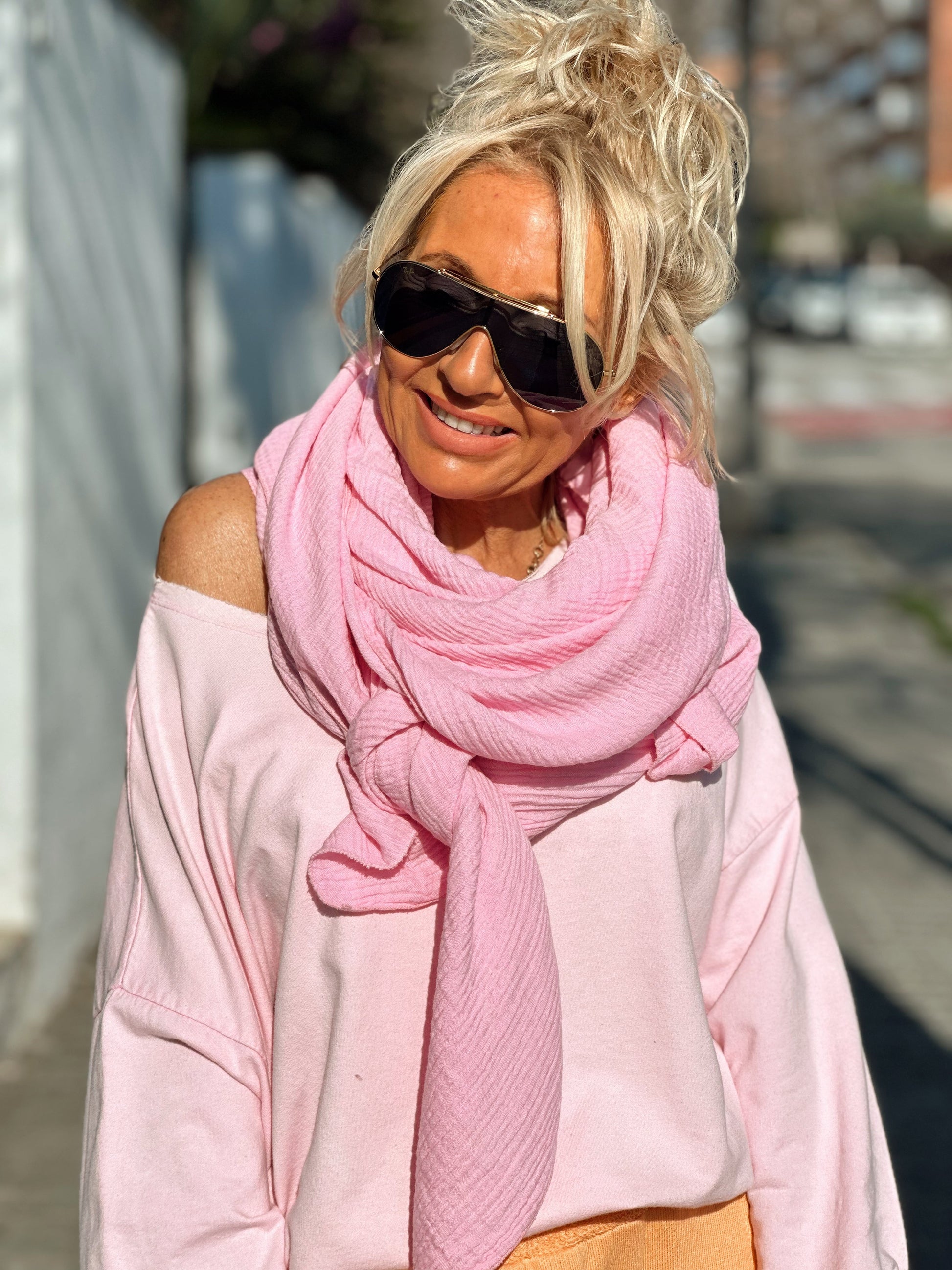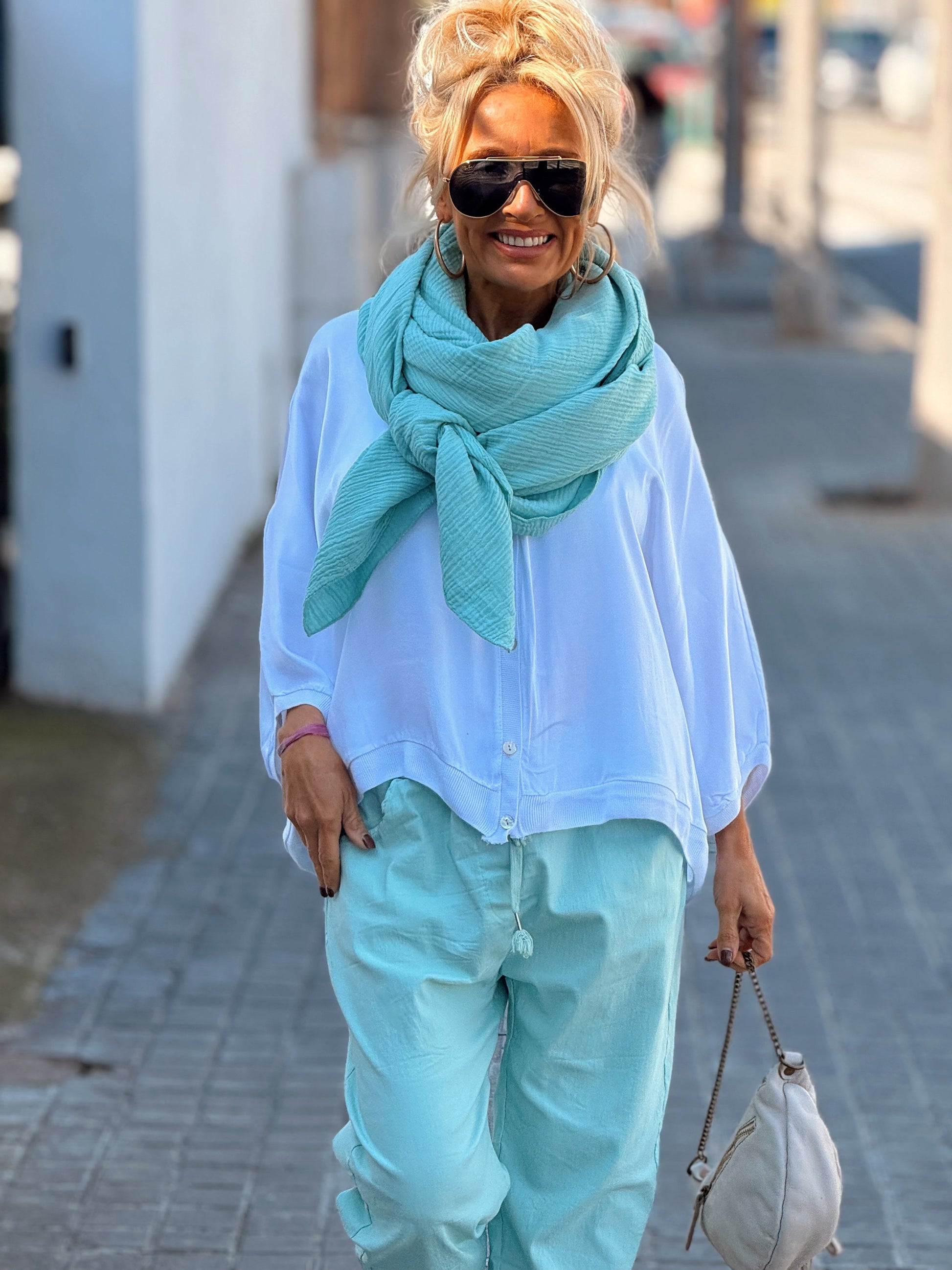 Esta espectacular bufanda es una pieza imprescindible para tu colección. Su gran diseño, con un amplio corte cuadrado, te permite llevarlo de mil maneras: como pareo, como pañuelo, como chal o incluso como un sofisticado complemento para tus looks.