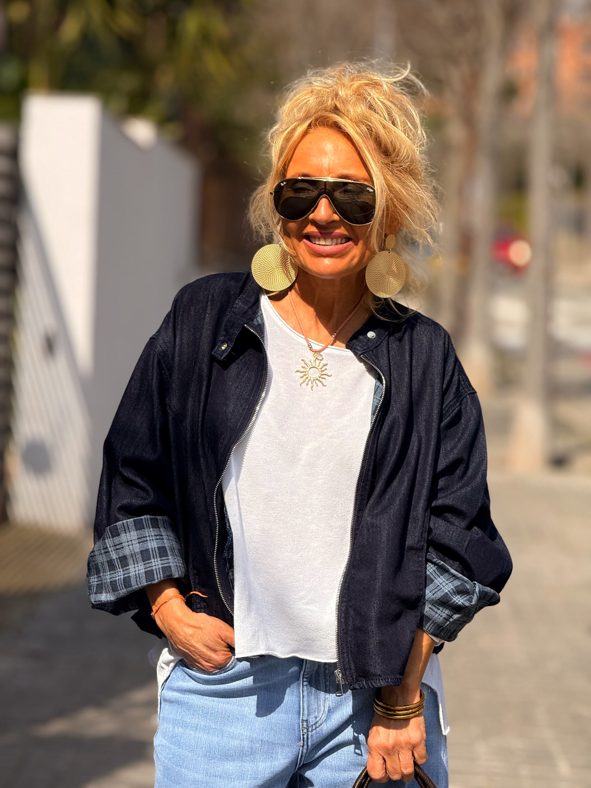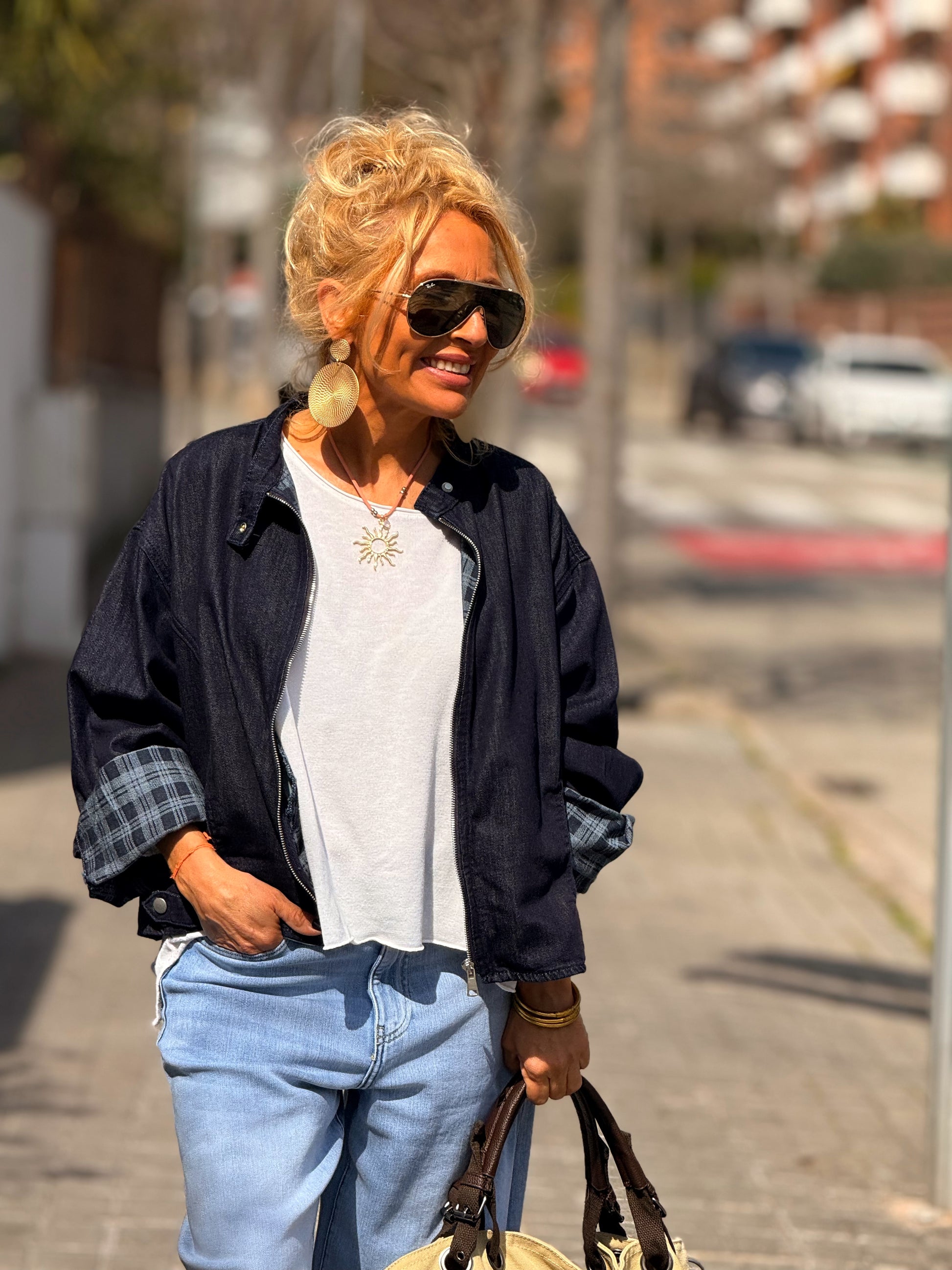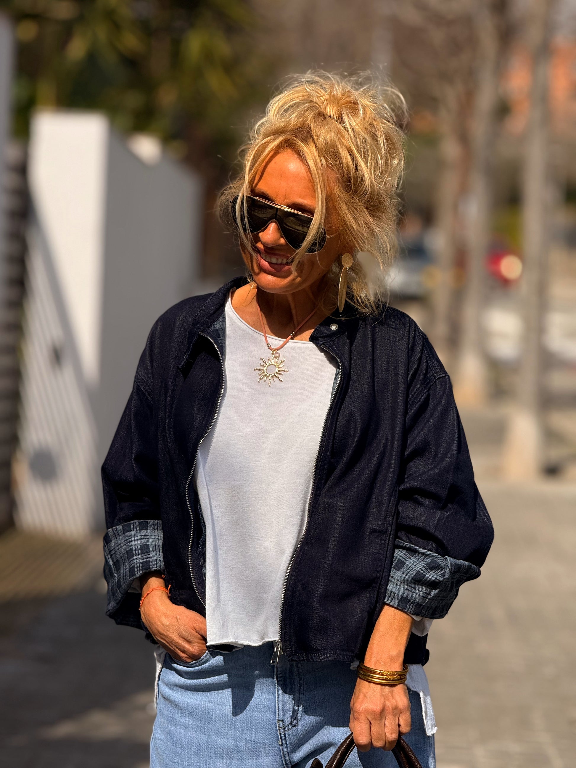 CHAQUETA CORTA CON FORRO CUADRADOS TEJANO