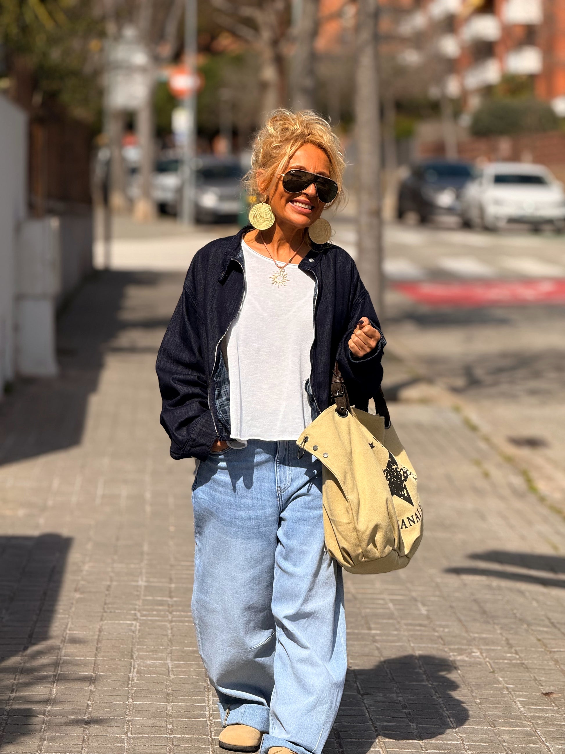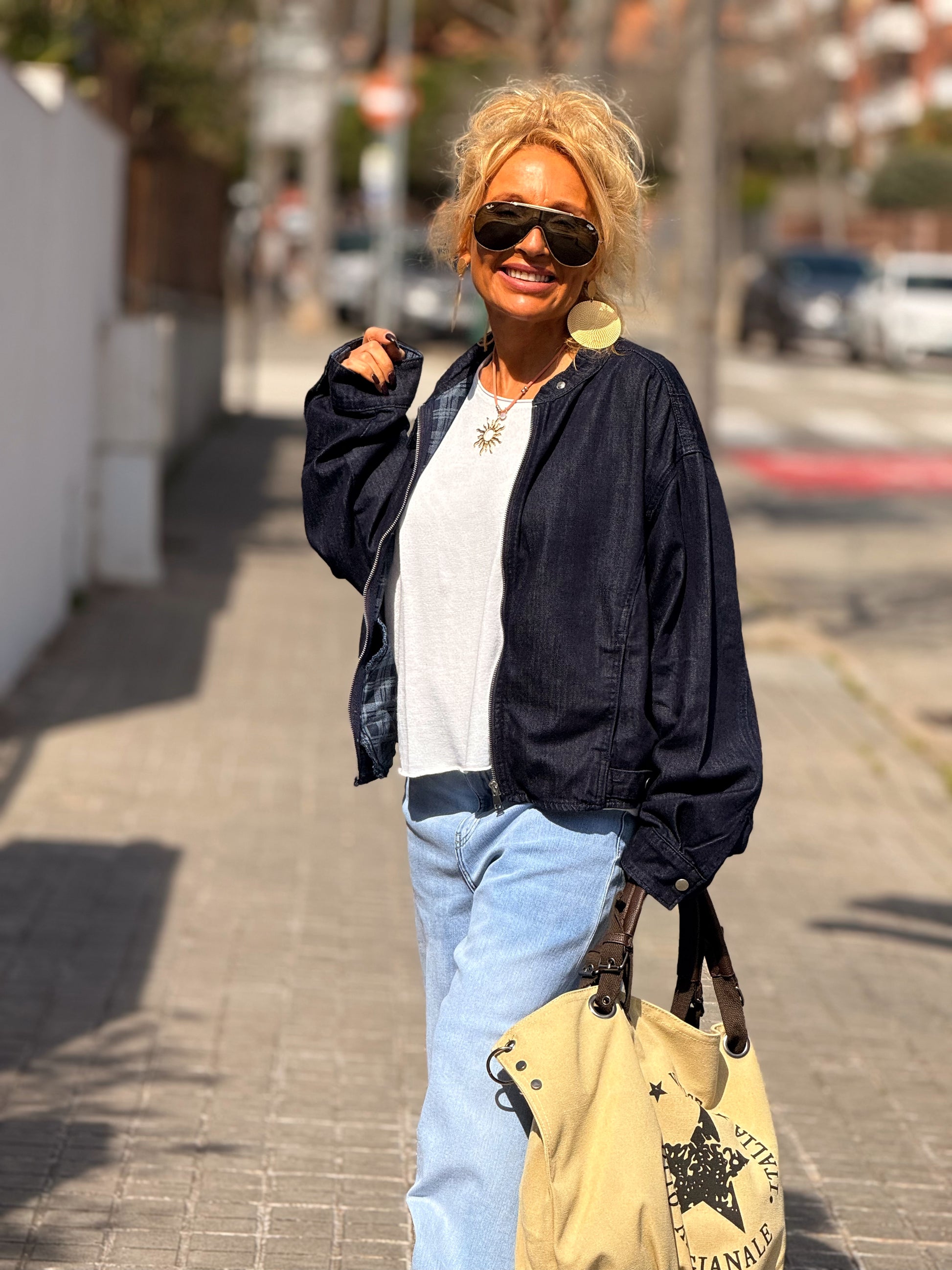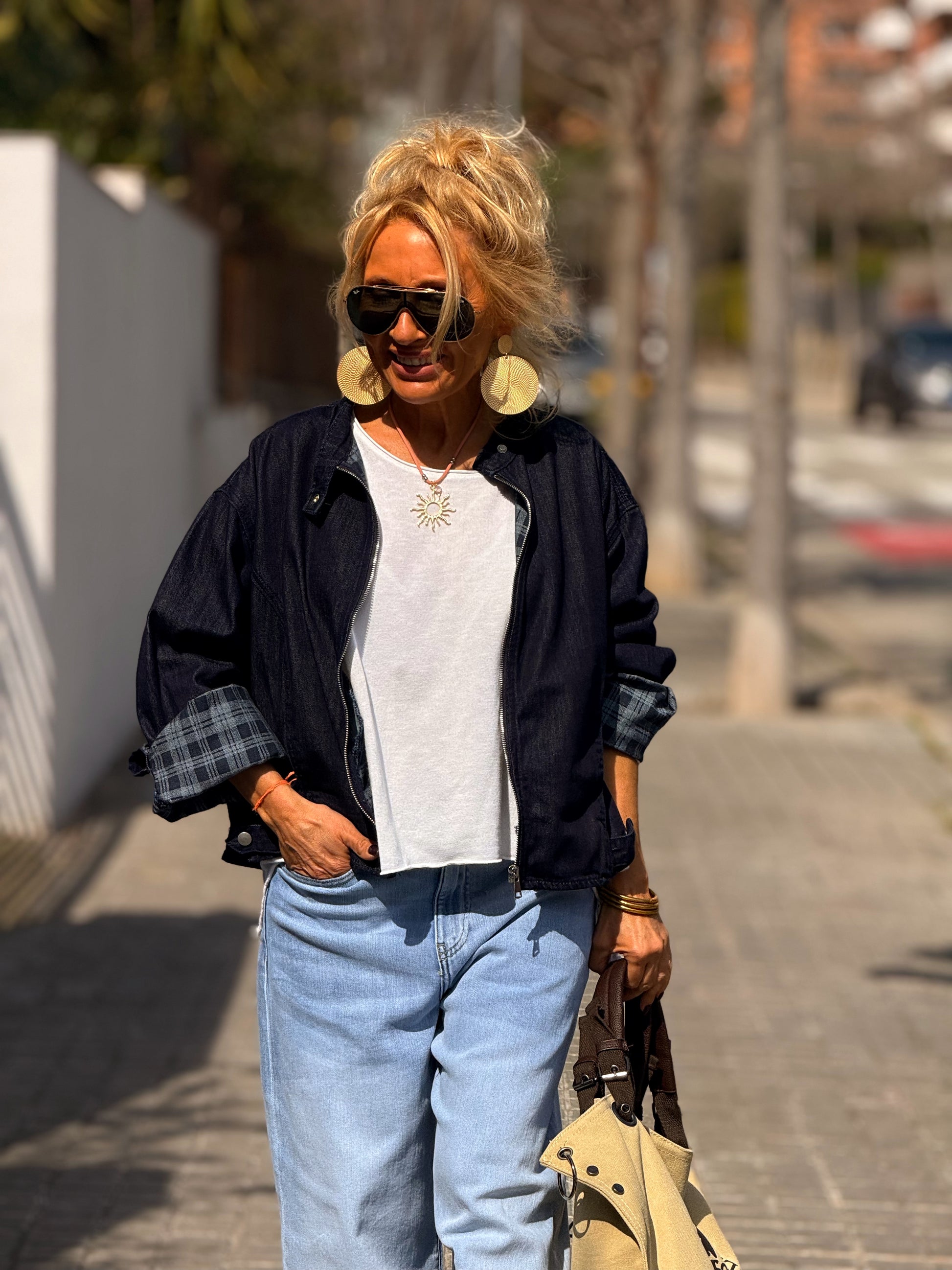 CHAQUETA CORTA CON FORRO CUADRADOS TEJANO