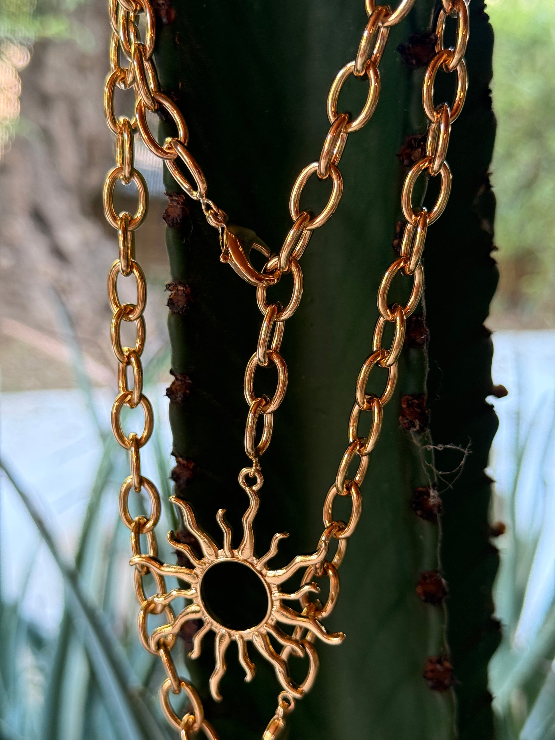 Un conjunto de tres collares con nuestro sol que me parece simplemente precioso. Puedes llevarlos juntos o por separado, como más te guste. ¡Hazlo a tu manera y crea tu propio estilo!