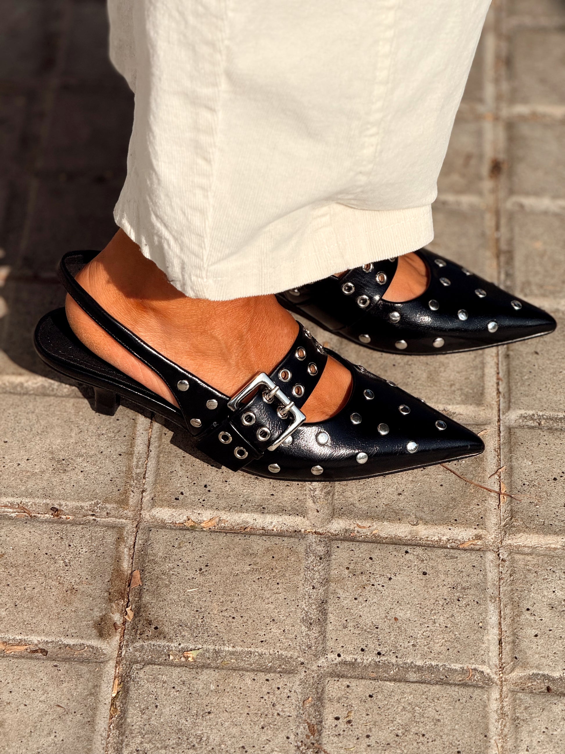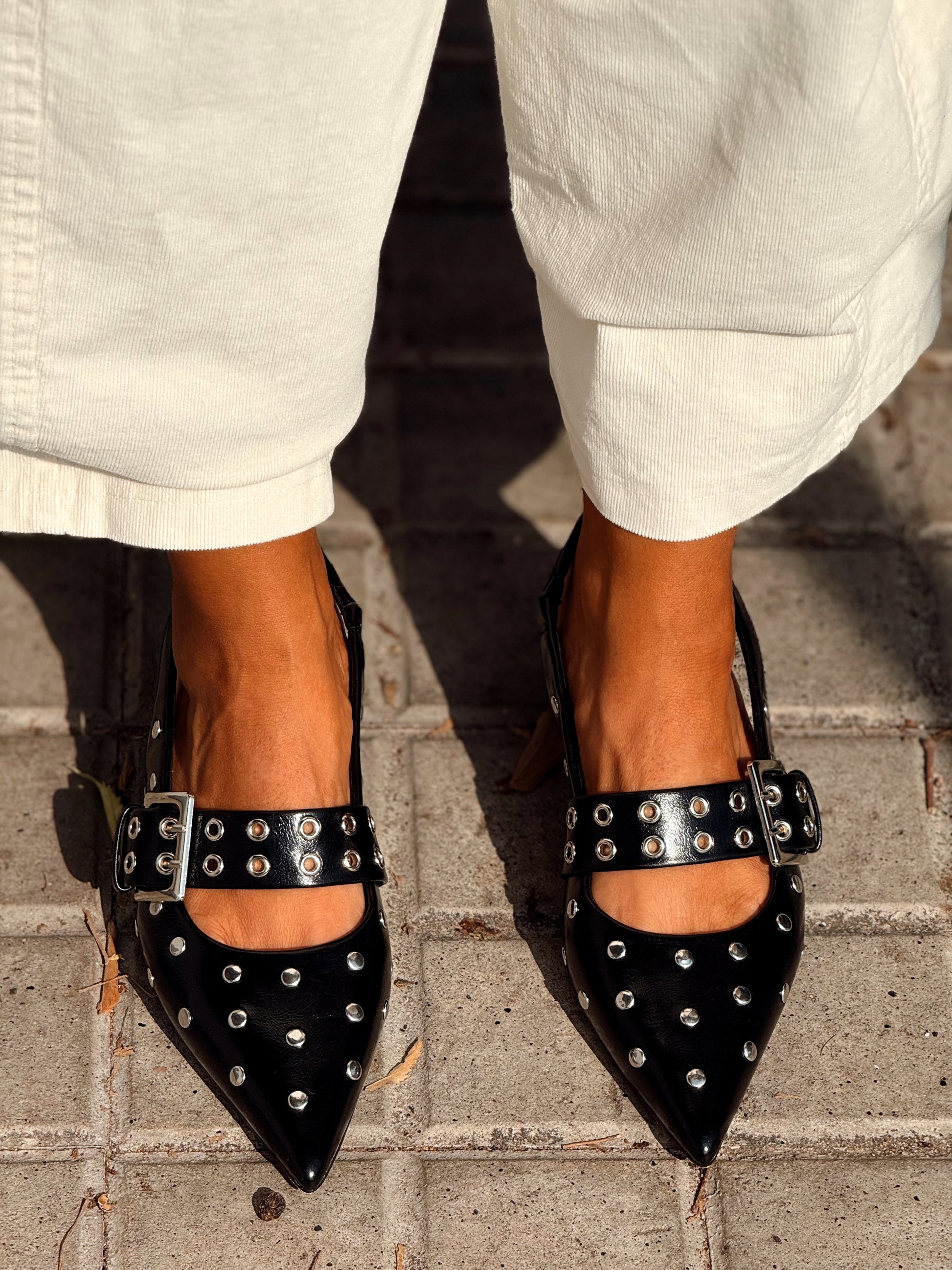 Zapatos con tacón bajo y pequeñas tachuelas que los hacen únicos. Cómodos, modernos y muy versátiles: perfectos tanto para ir a trabajar como para una salida. Combínalos con jeans, pantalones de pinzas, faldas o vestidos… ¡son el calzado ideal y en plena tendencia!✨