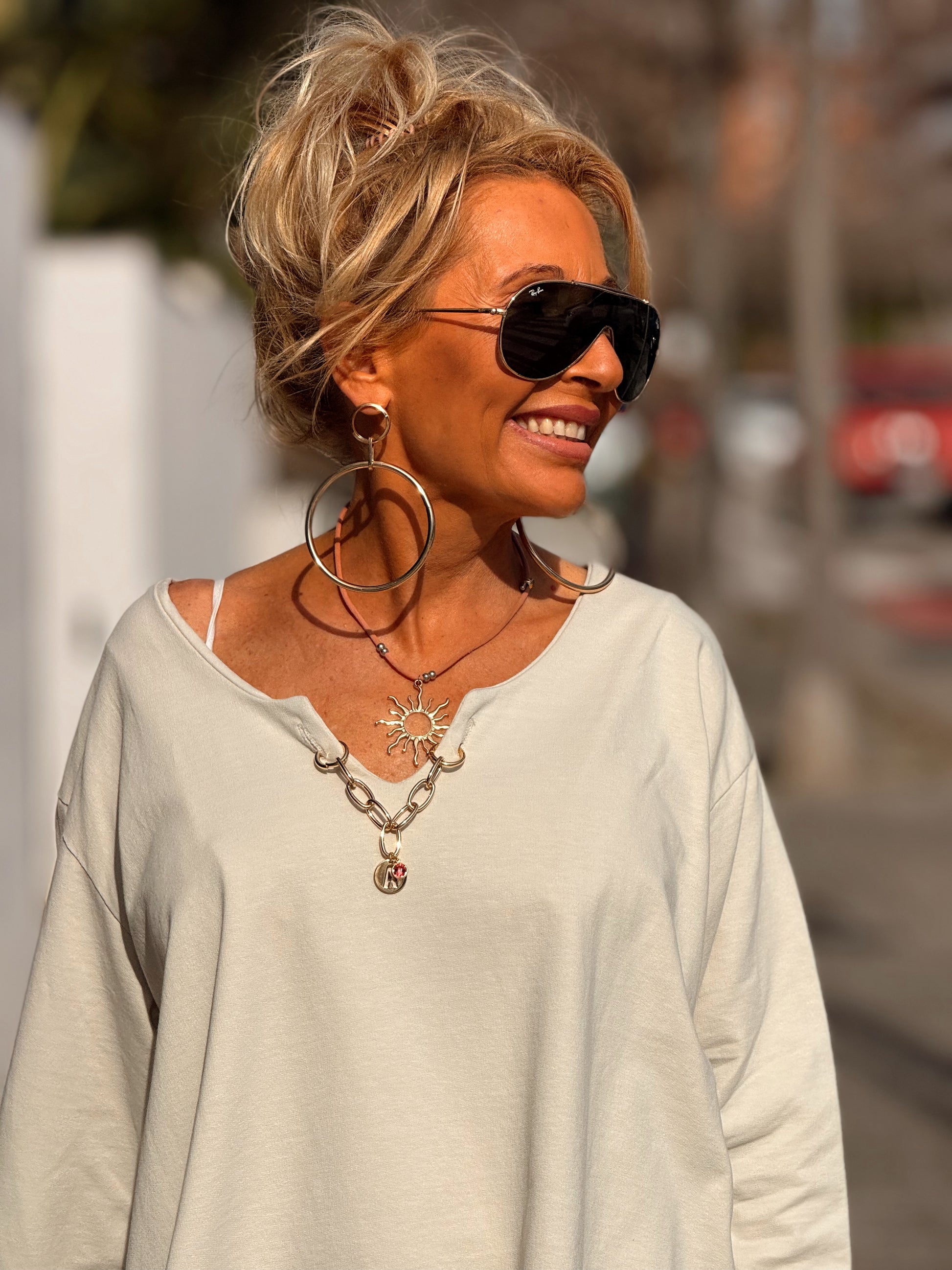 SUDADERA OVERSIZE CON CADENA LETRA CON BRILLANTE BRIGITTE MULTICOLOR