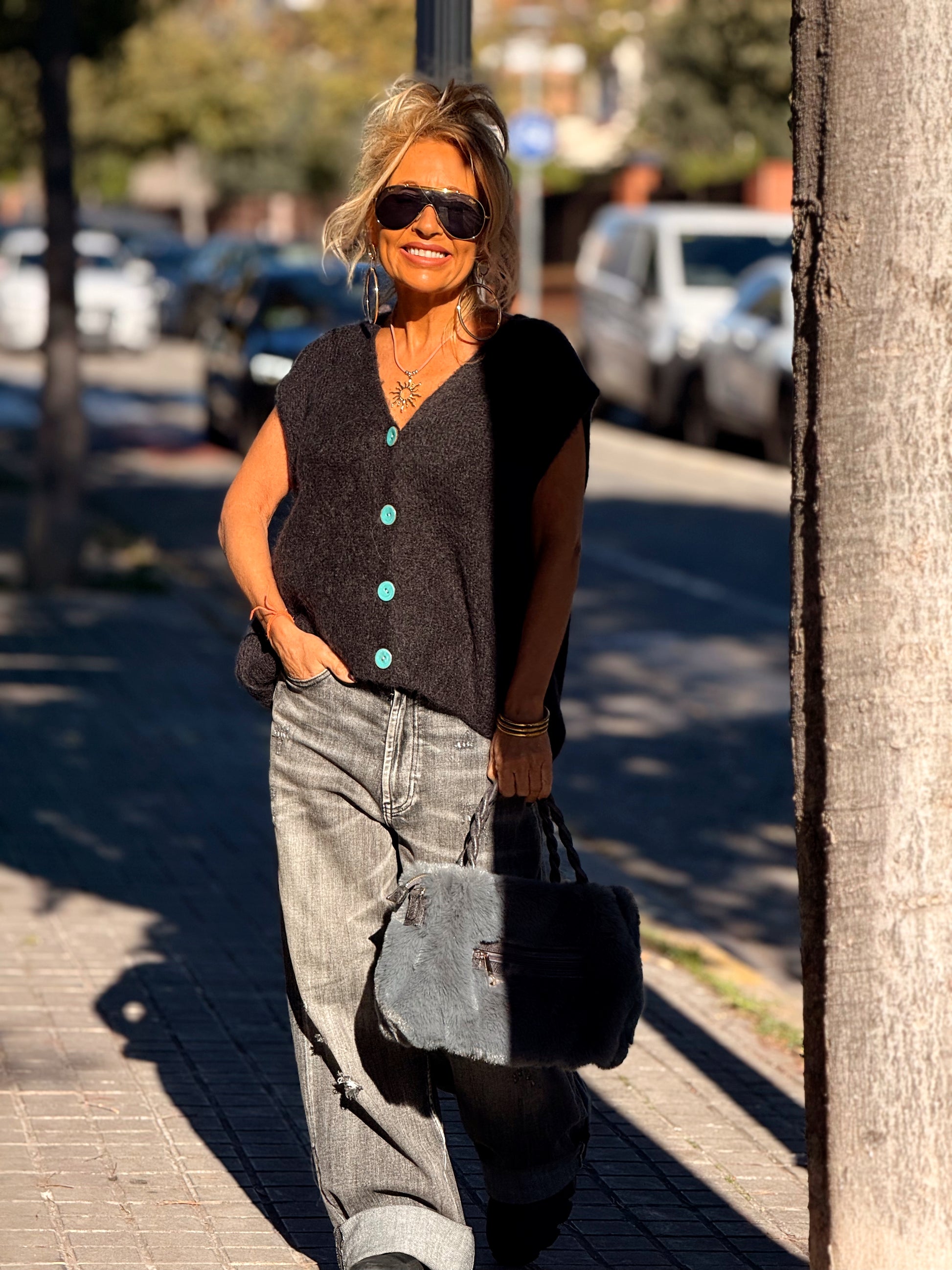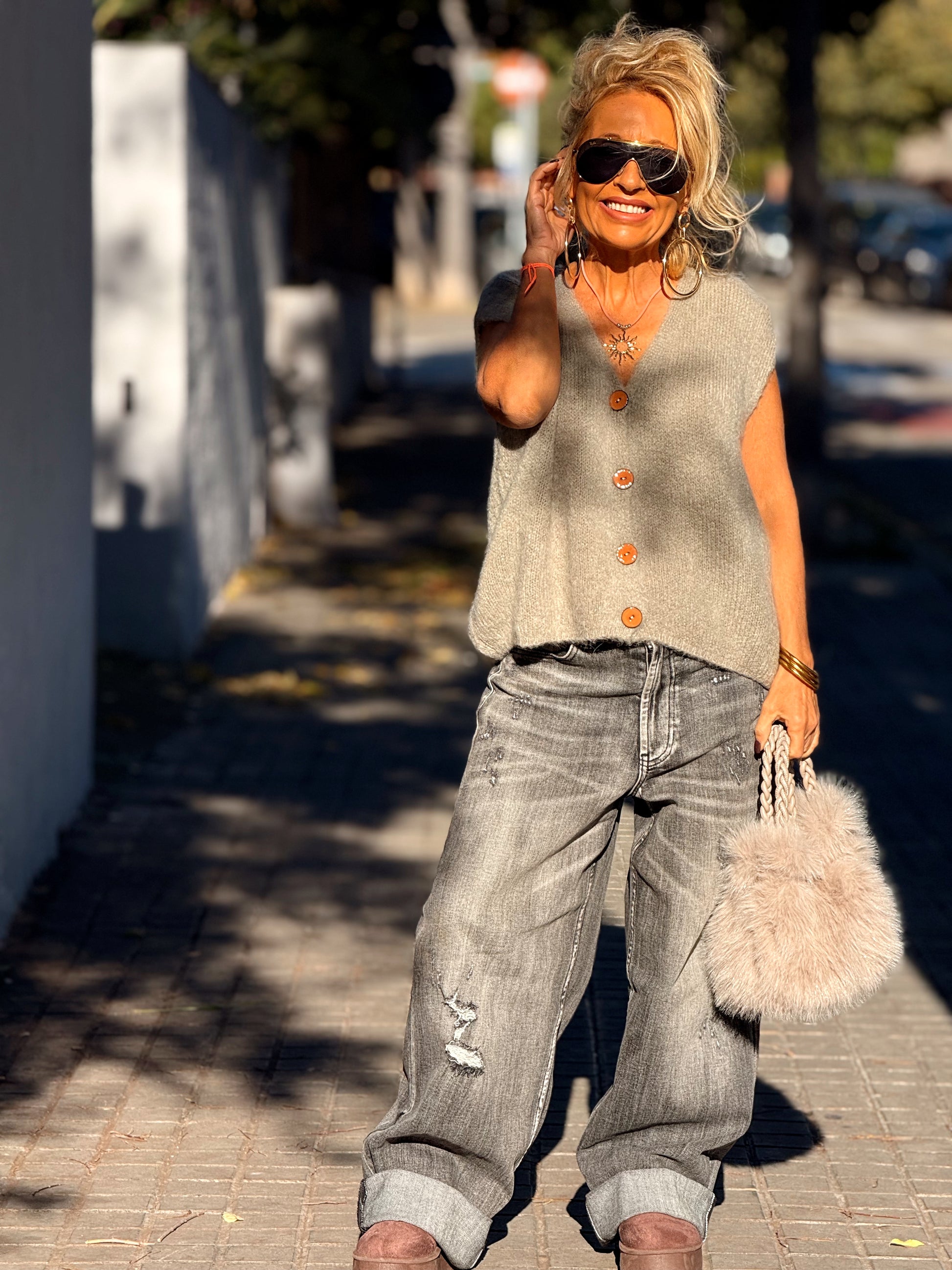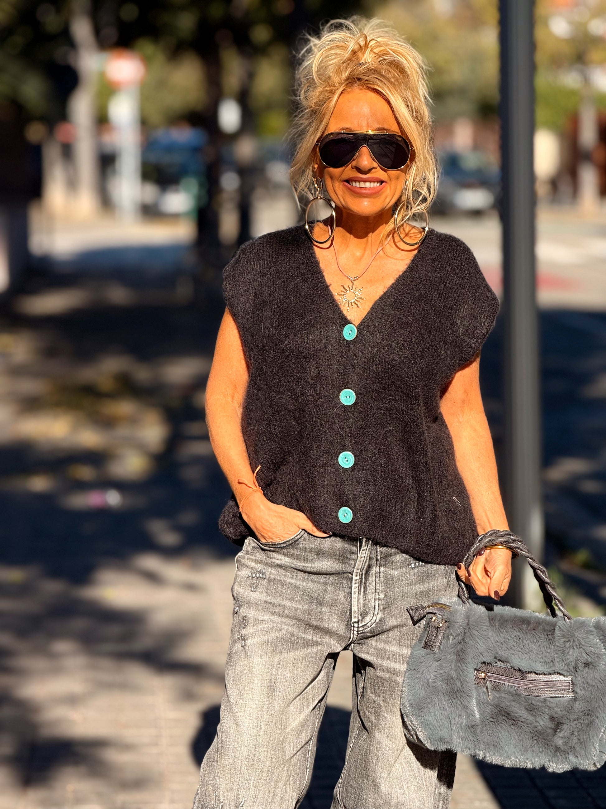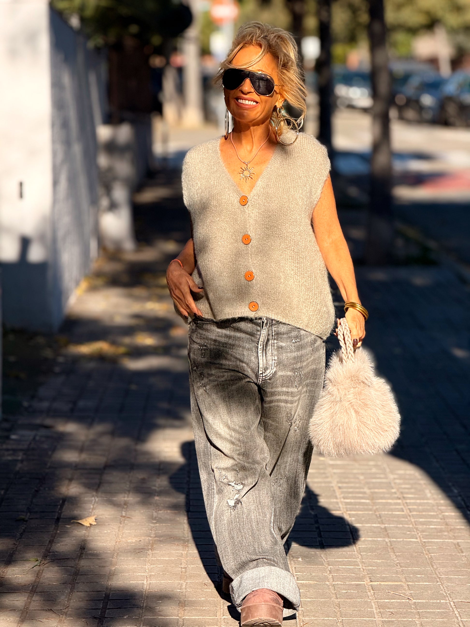 Chaleco de punto sin mangas, suave y cómodo, adornado con botones de coco que aportan un toque natural y refinado. Una prenda fácil de combinar e ideal para completar cualquier look.✨