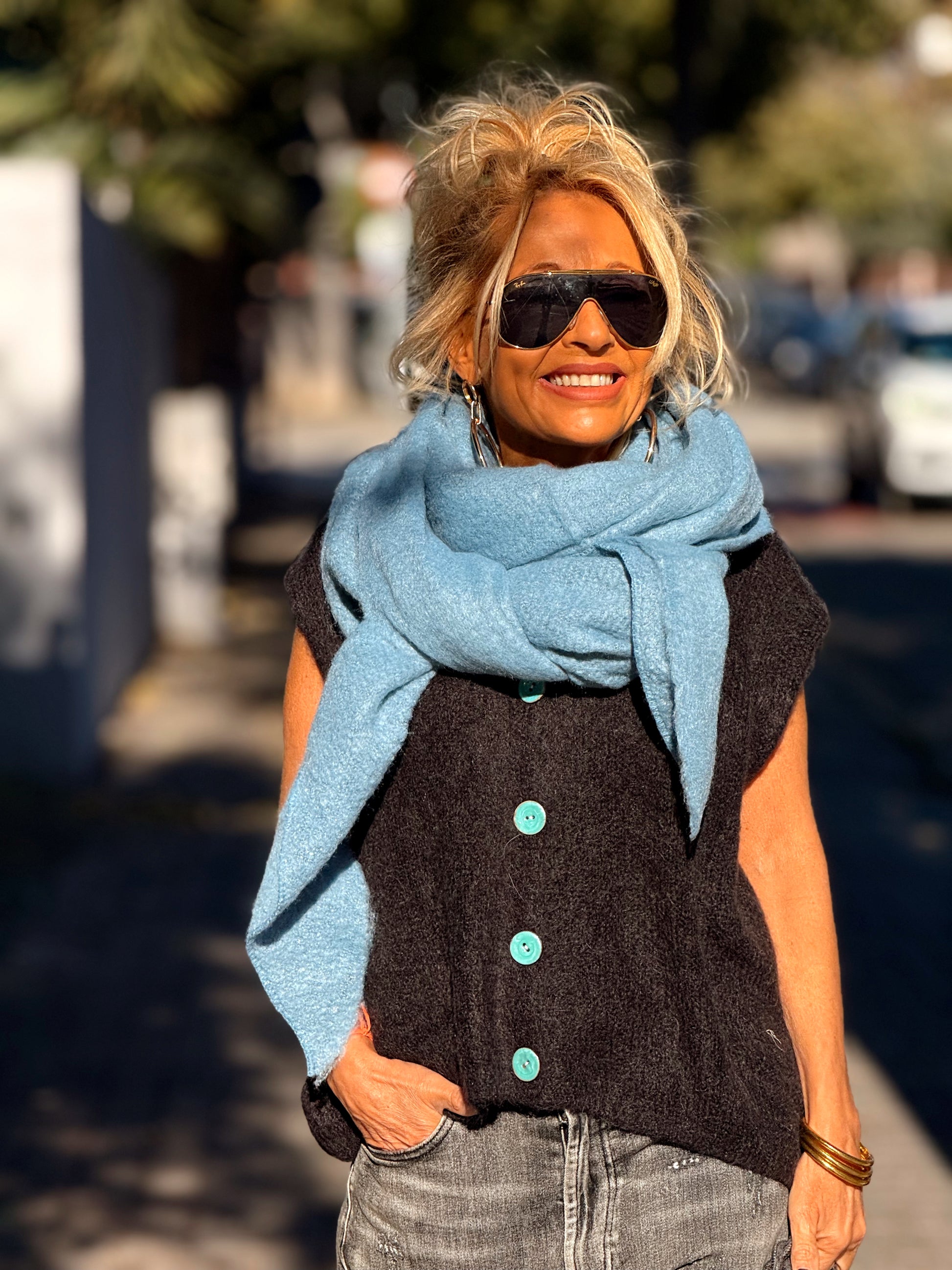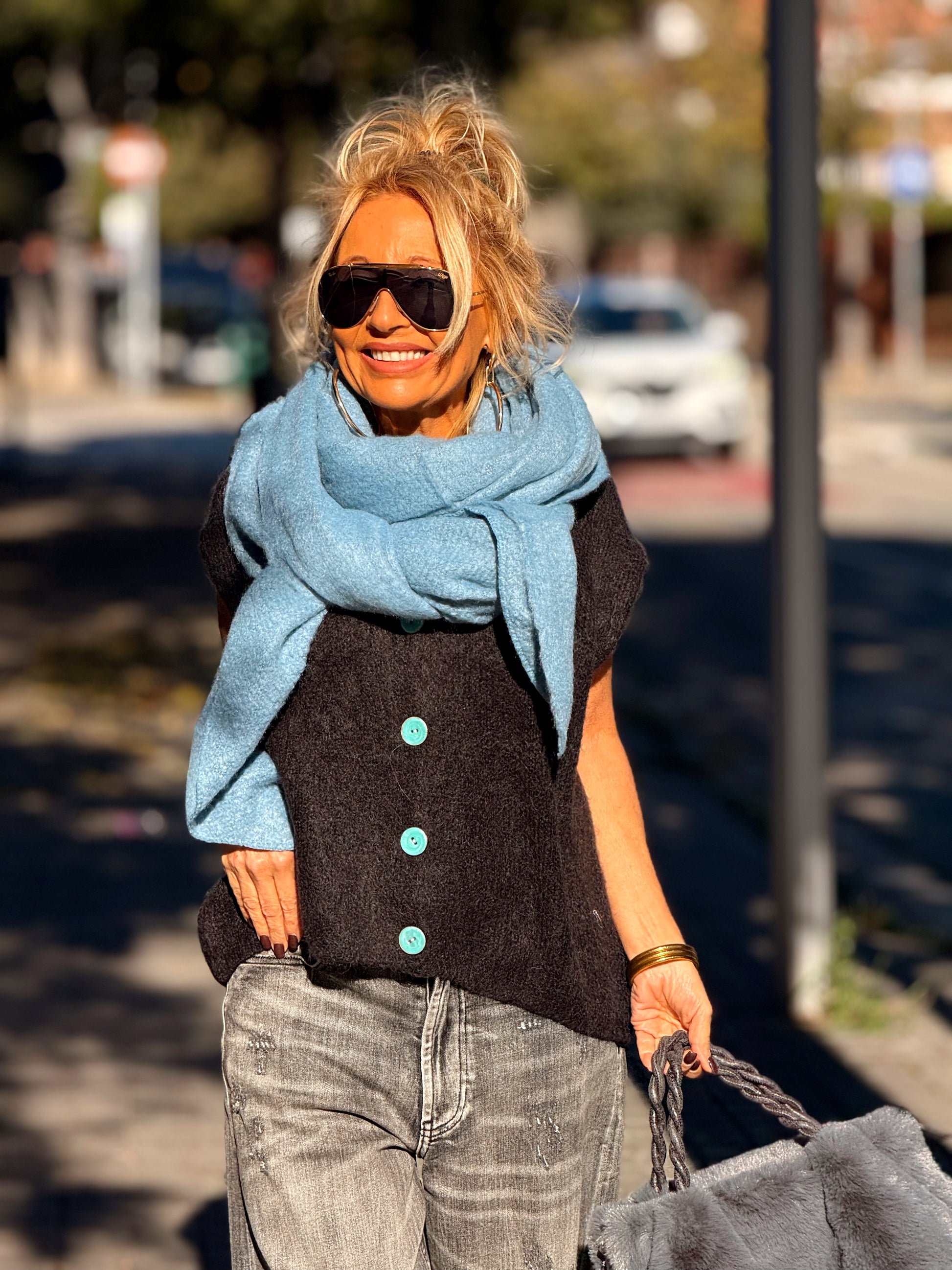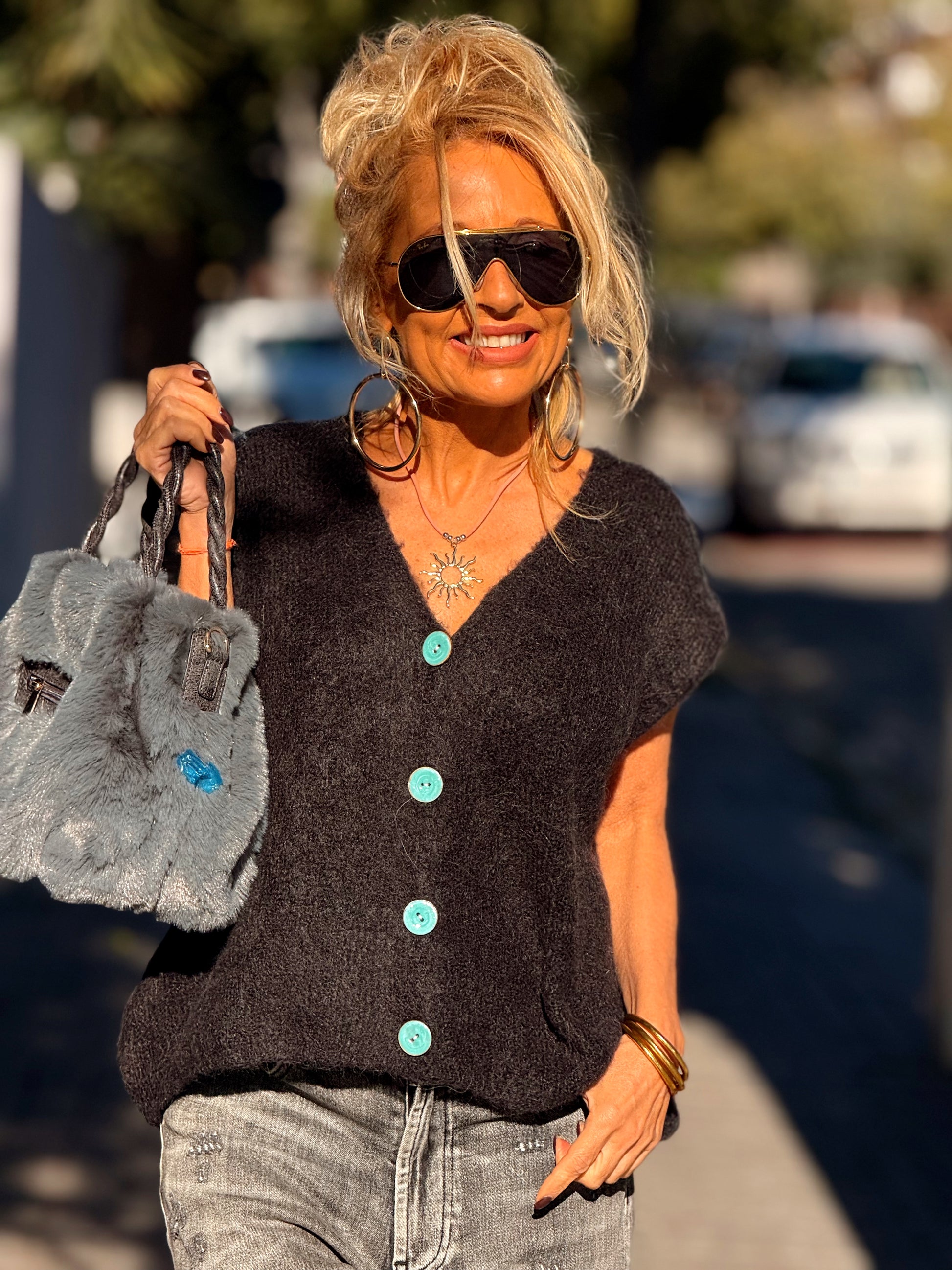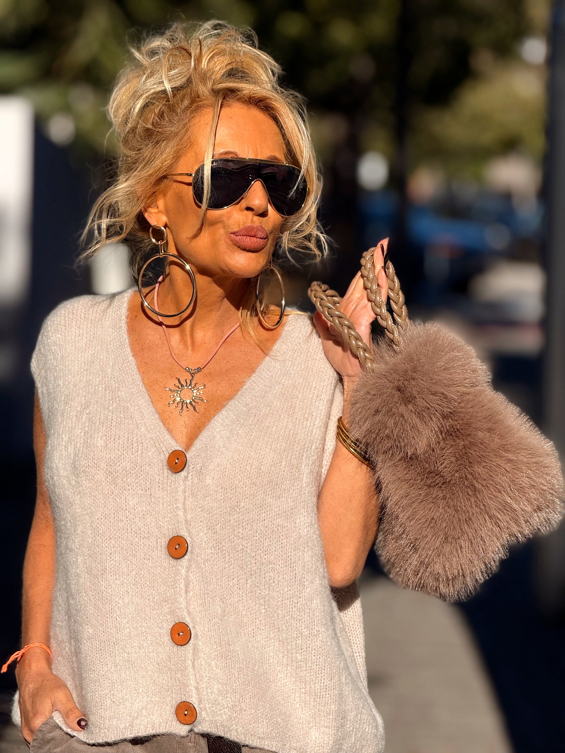 Chaleco de punto sin mangas, suave y cómodo, adornado con botones de coco que aportan un toque natural y refinado. Una prenda fácil de combinar e ideal para completar cualquier look.✨