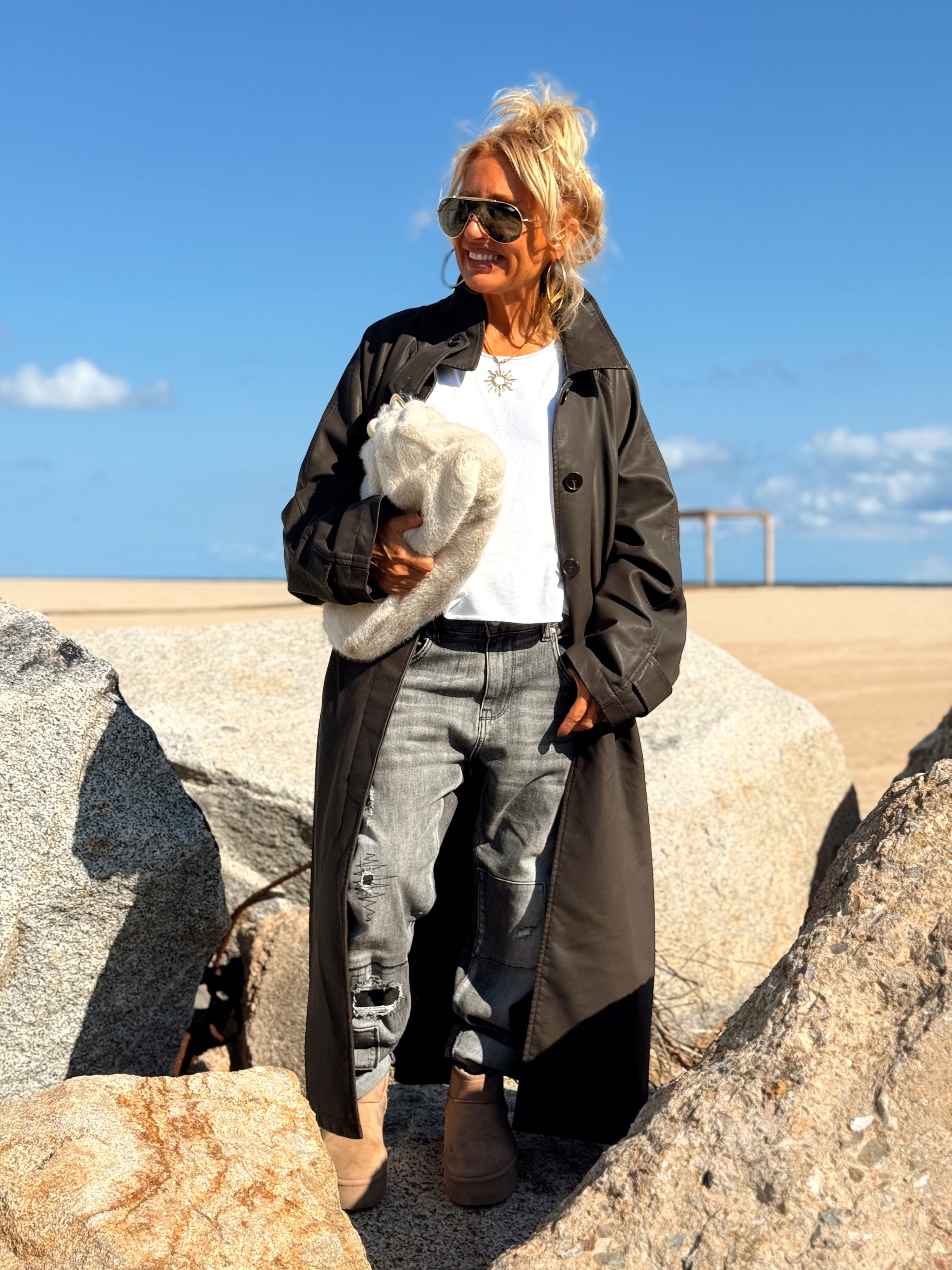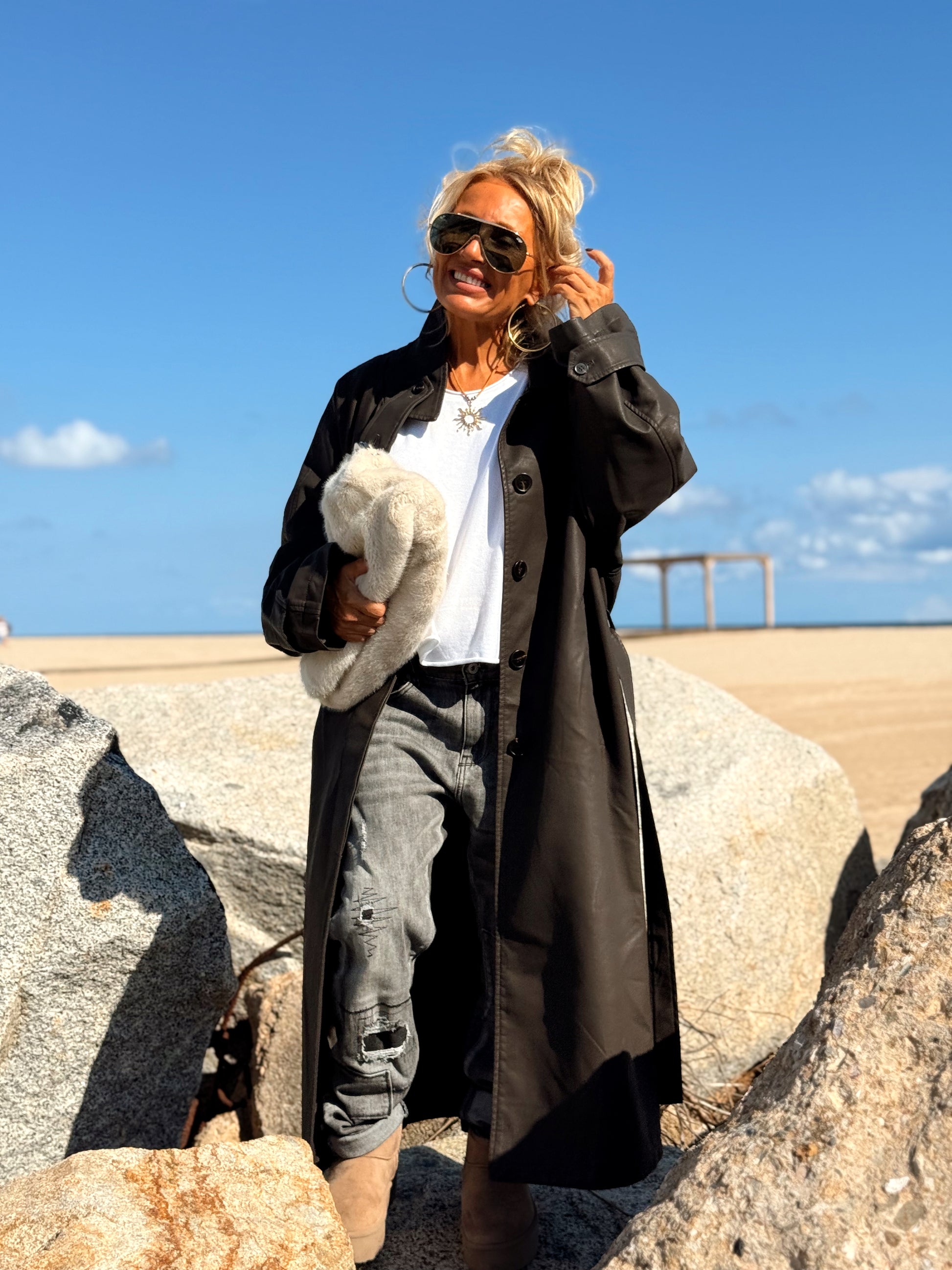 CHAQUETA LARGA POLIPIEL MULTICOLOR