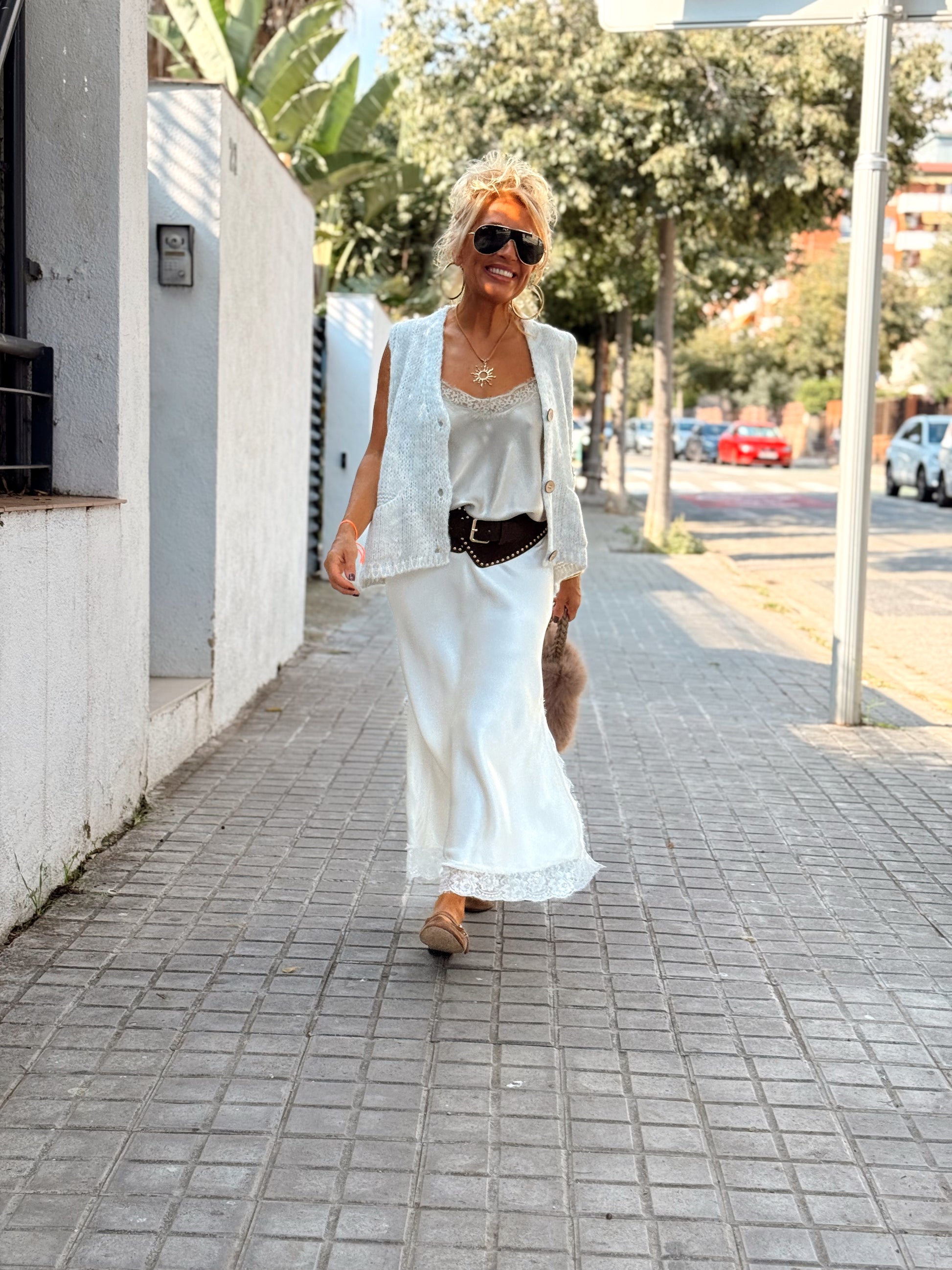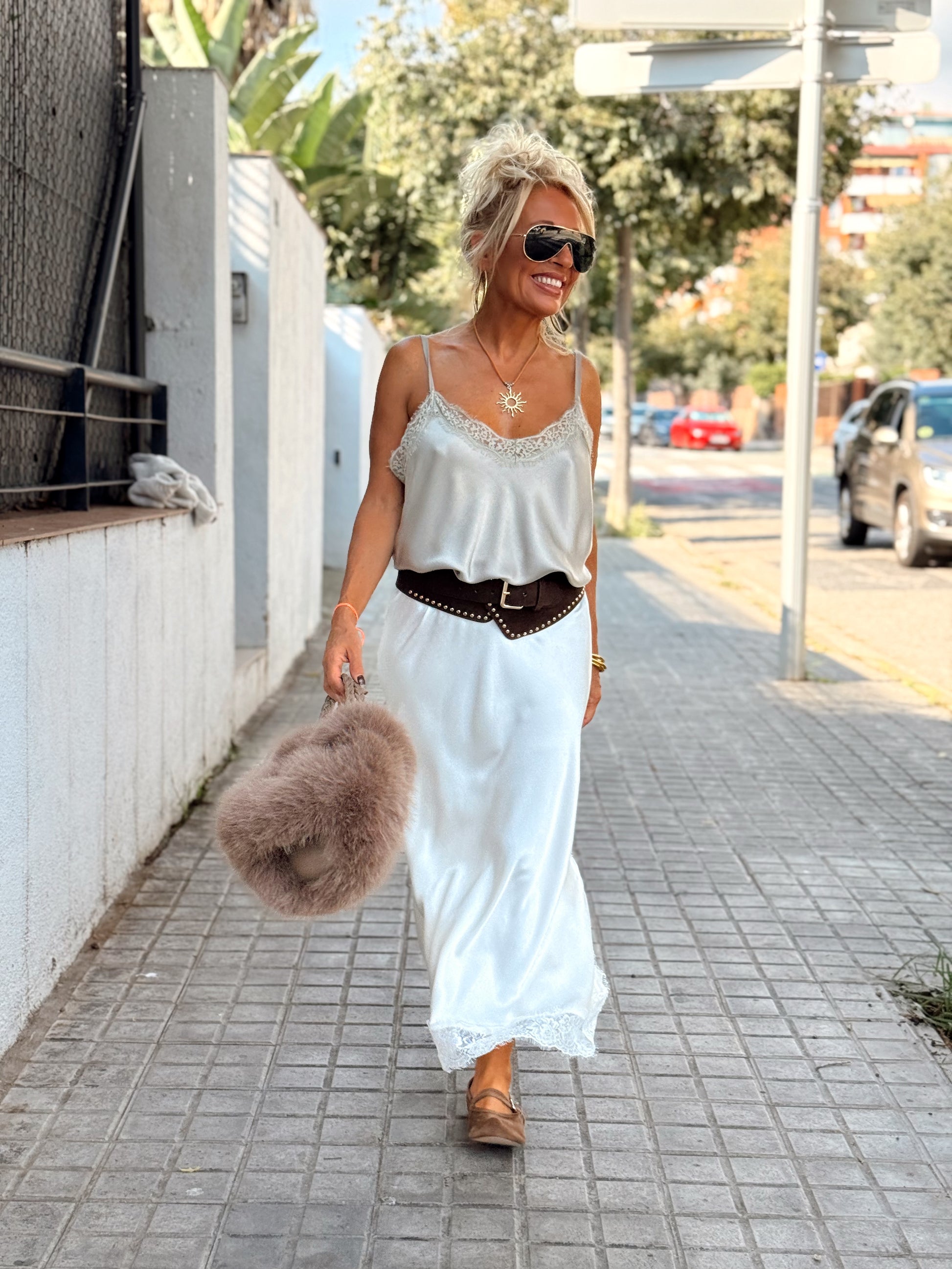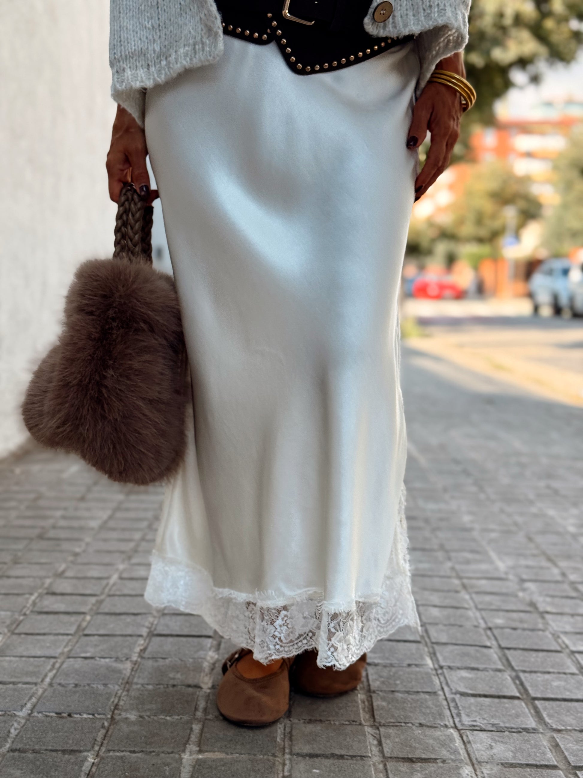 Falda 100 % viscosa, con un acabado de encaje y una delicada abertura lateral adornada también con encaje. Femenina, ligera y sofisticada, es la prenda ideal para lucir un estilo elegante y con un toque de sensualidad esta temporada.✨
