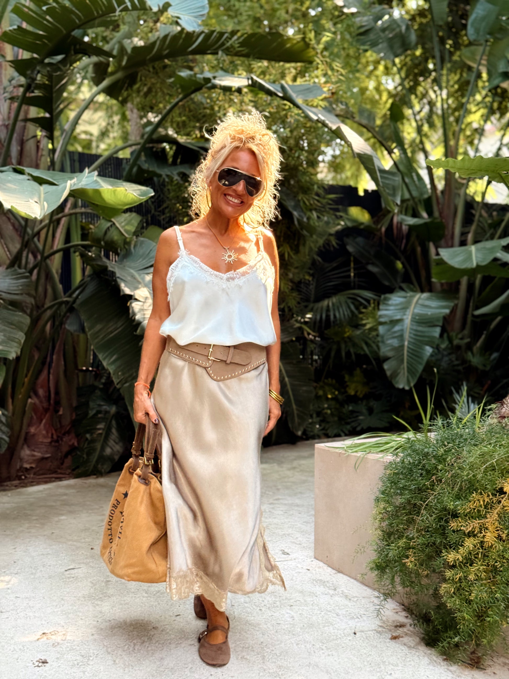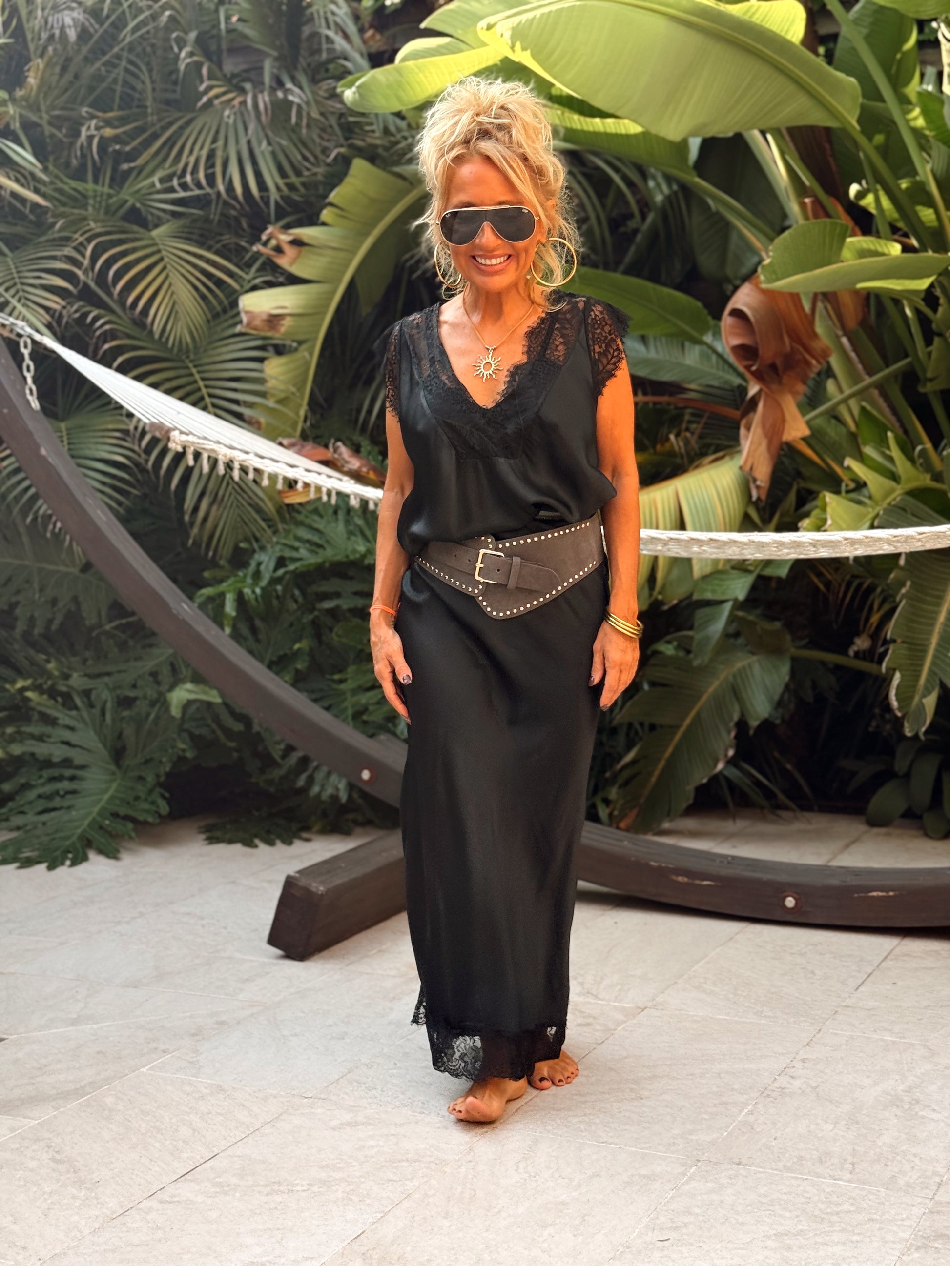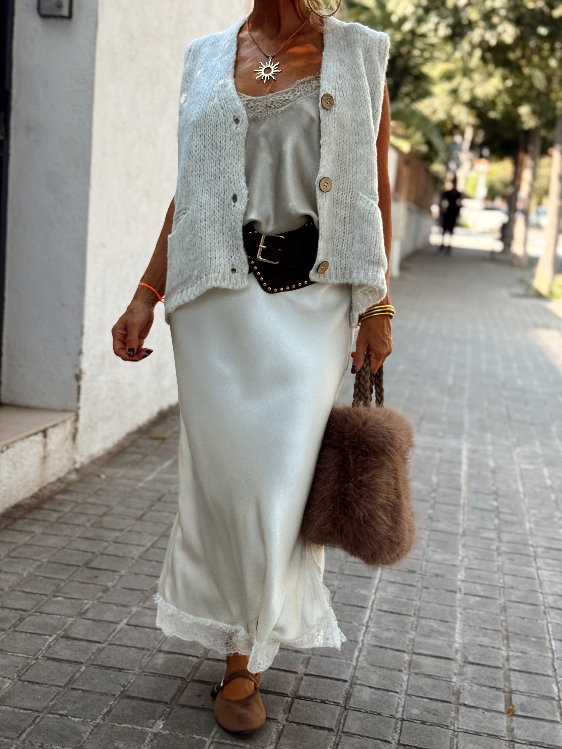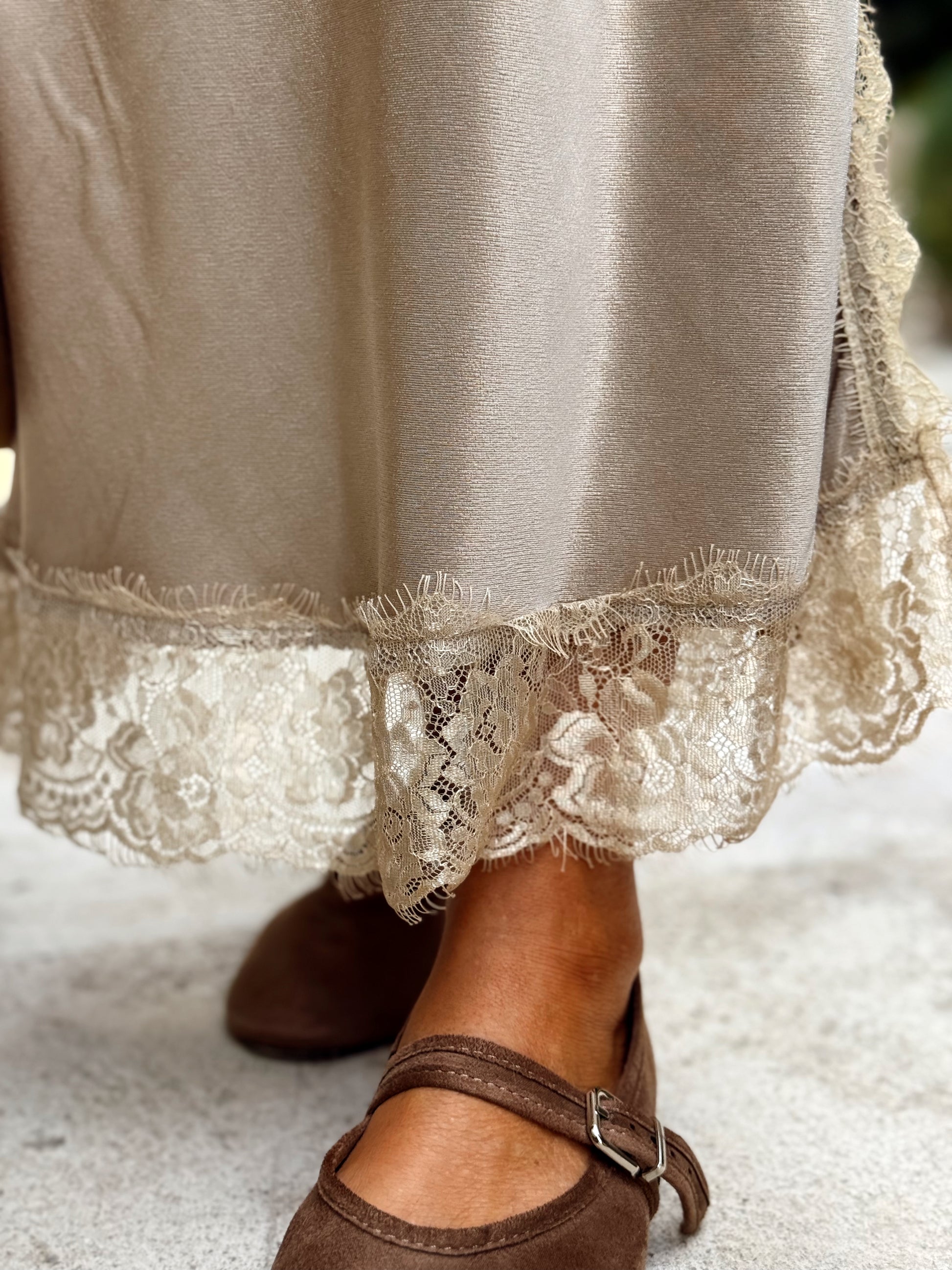 Falda 100 % viscosa, con un acabado de encaje y una delicada abertura lateral adornada también con encaje. Femenina, ligera y sofisticada, es la prenda ideal para lucir un estilo elegante y con un toque de sensualidad esta temporada.✨
