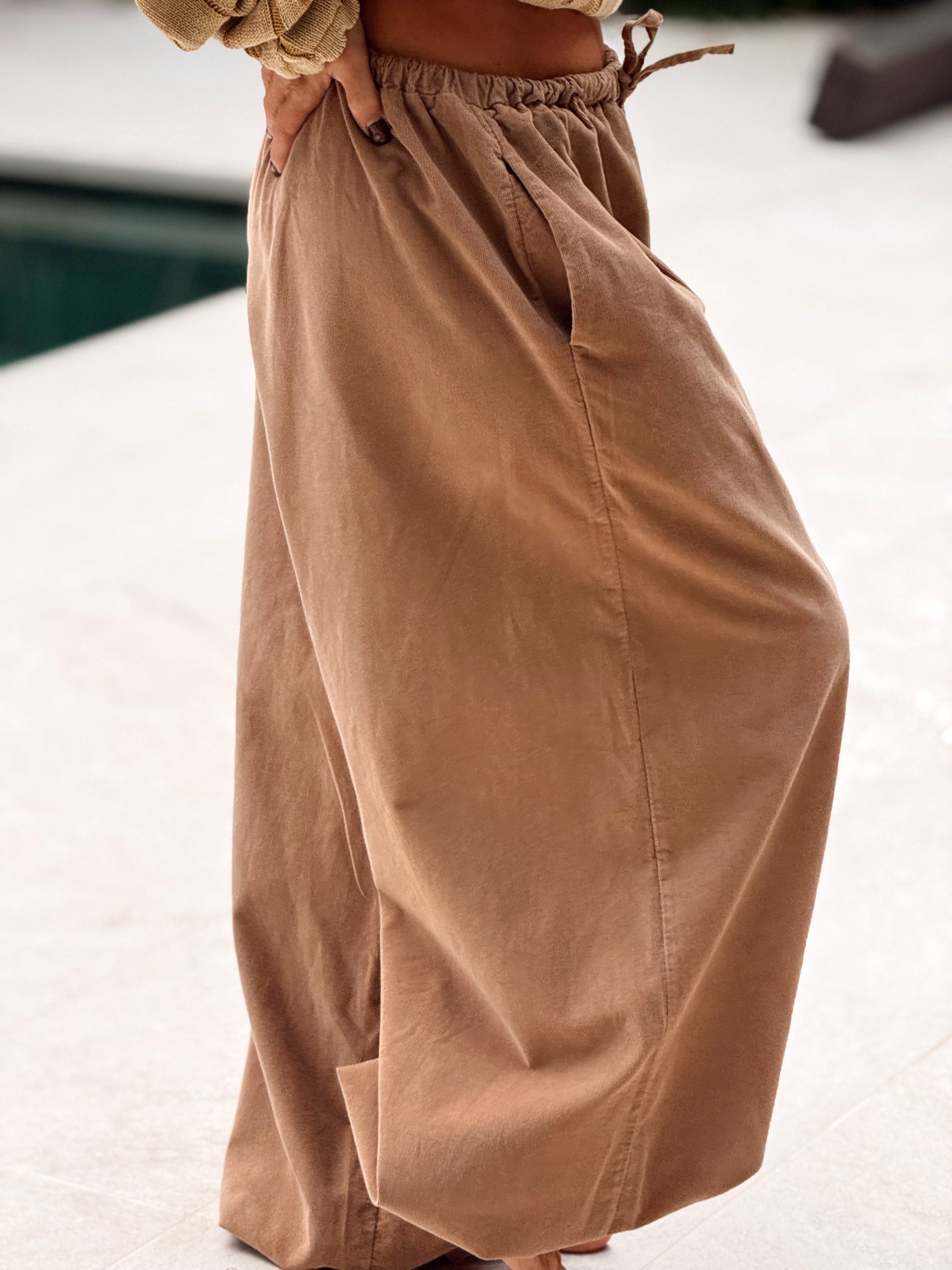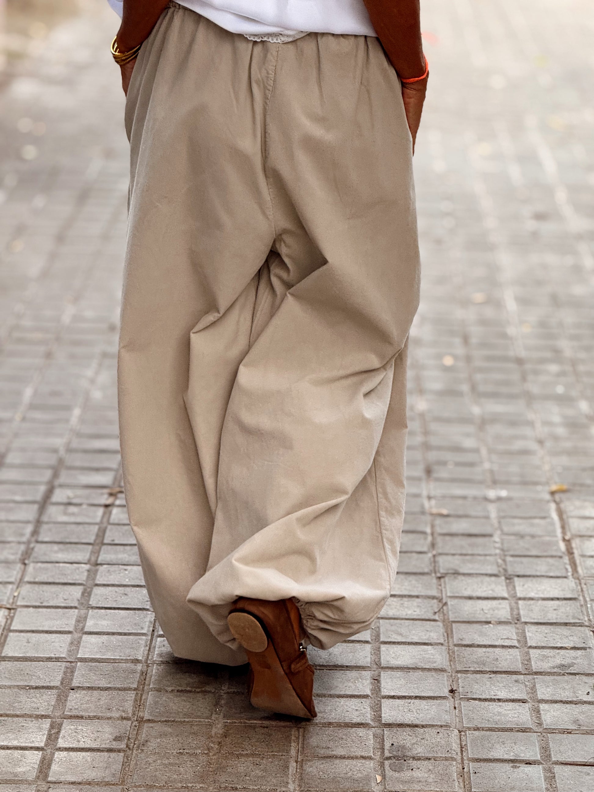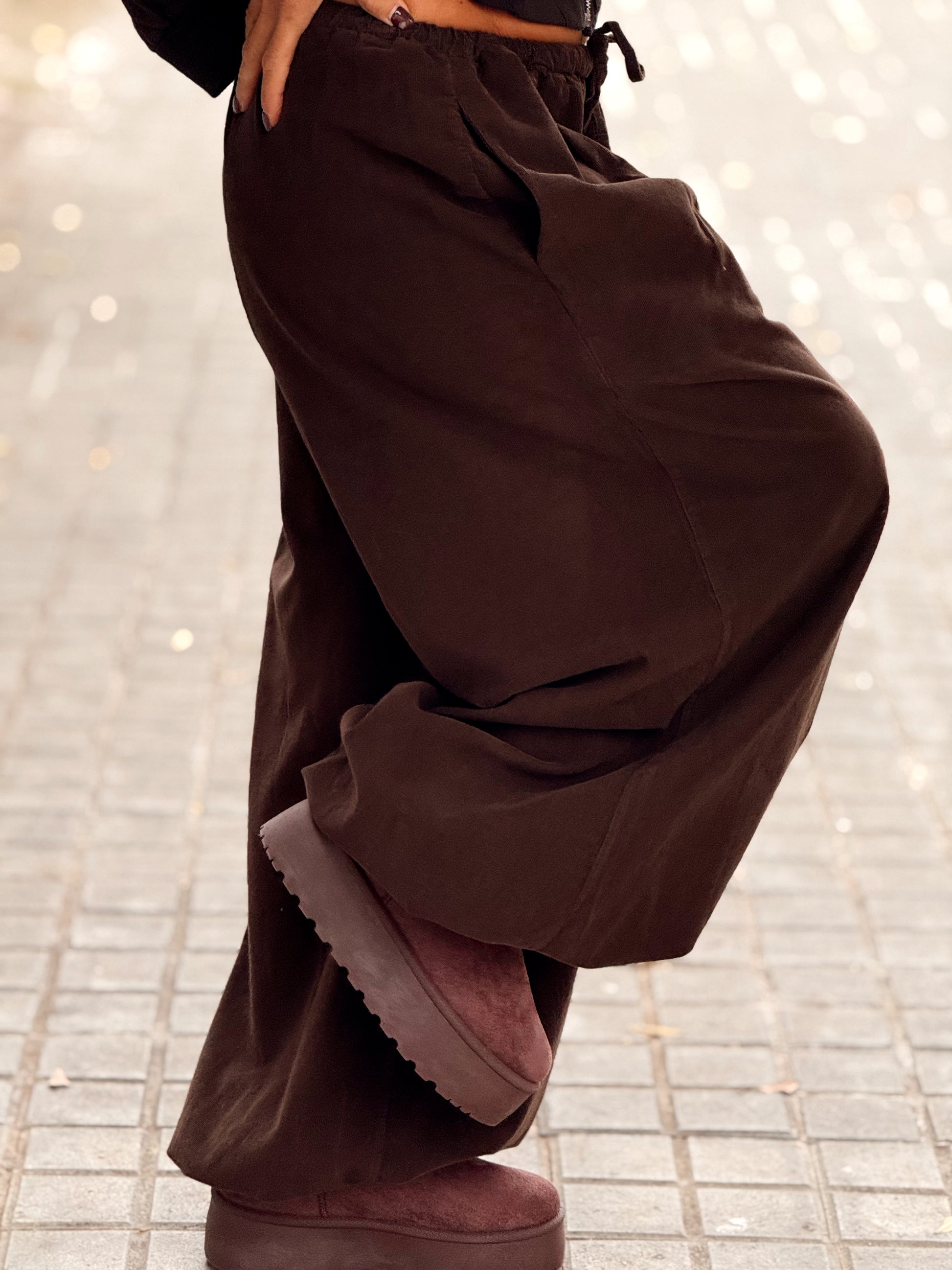 Tiene un corte oversize y fluido, con un cordón ajustable en los tobillos que permite darle ese toque moderno y desenfadado que tanto nos gusta.