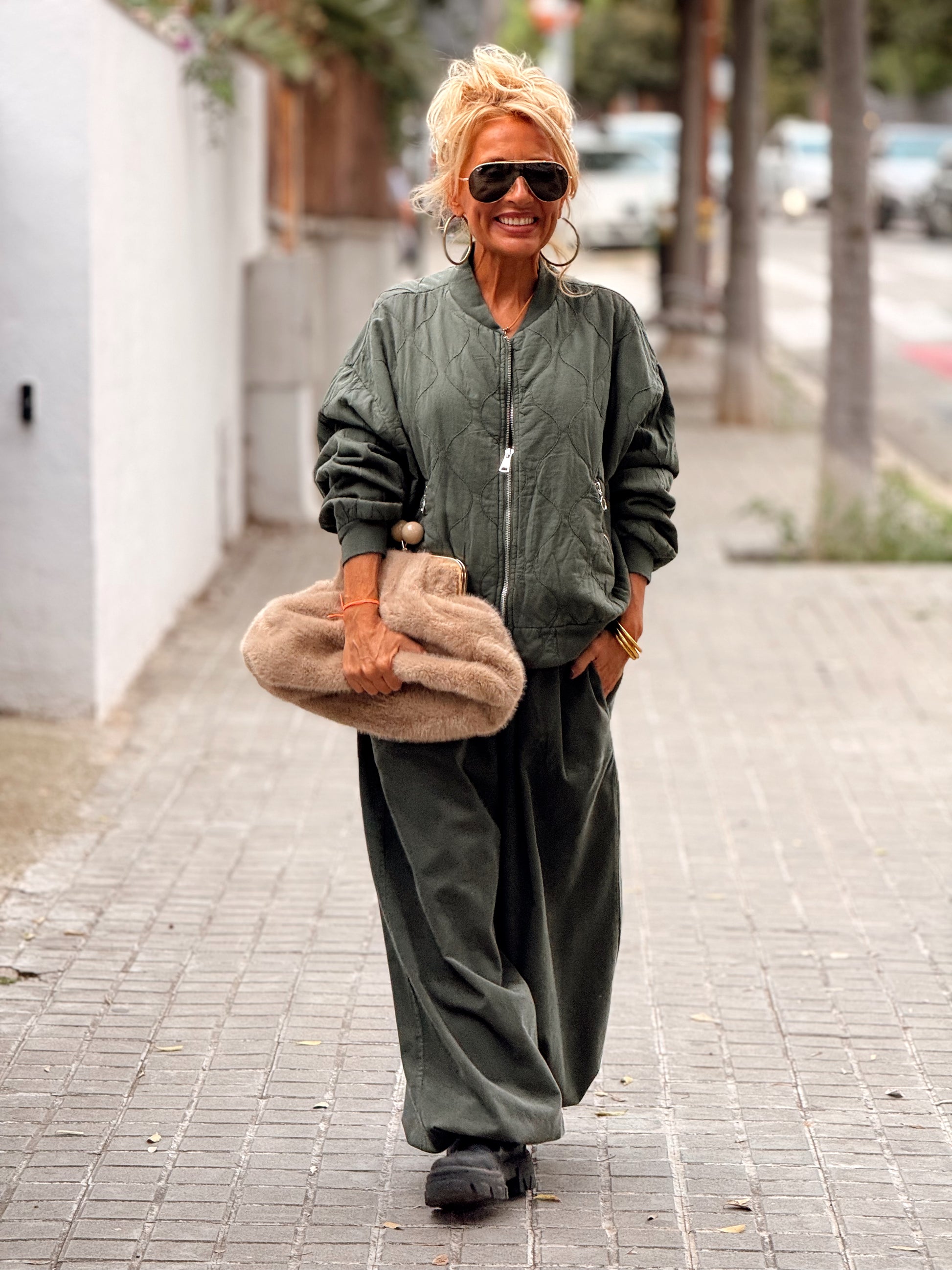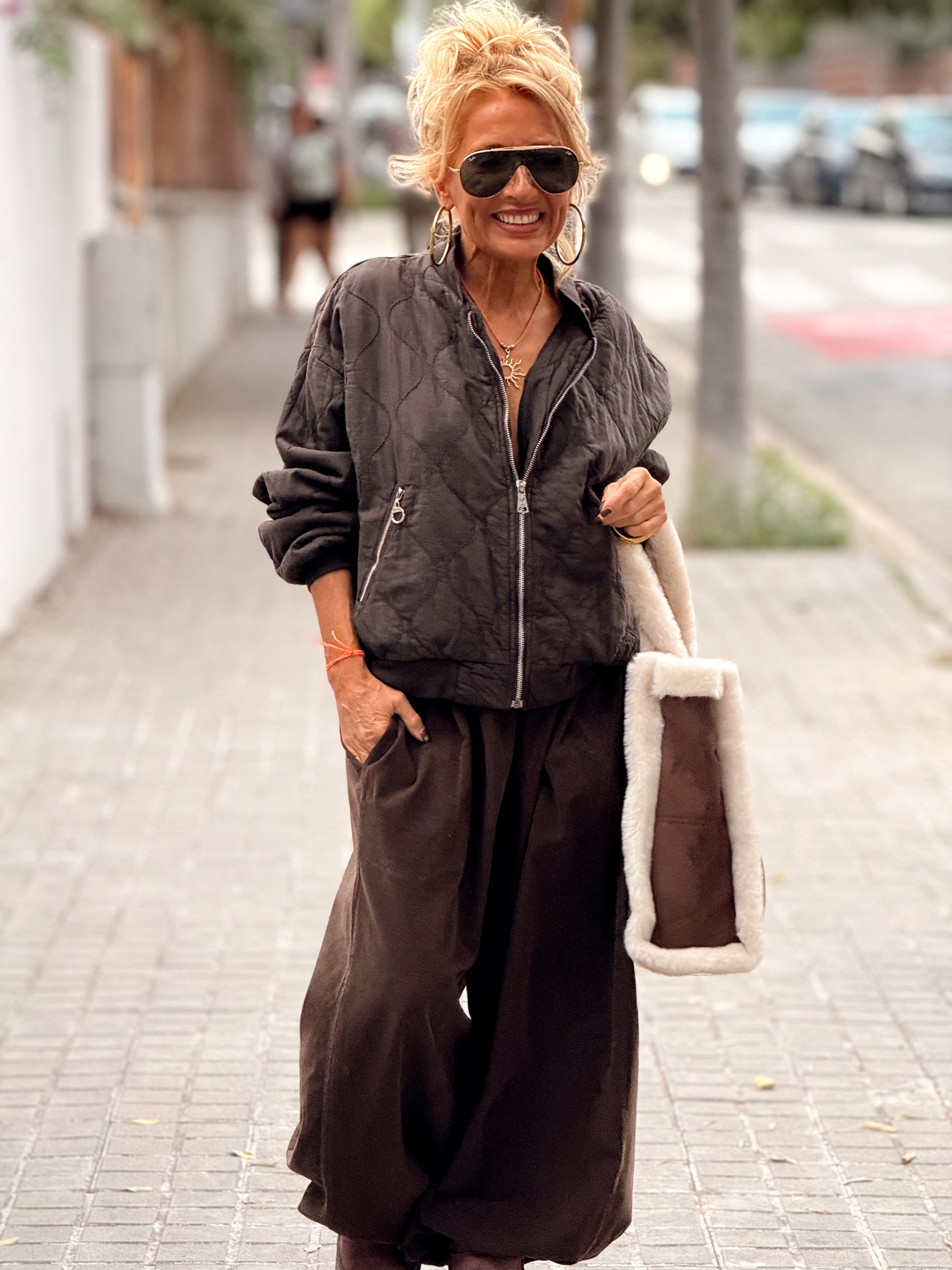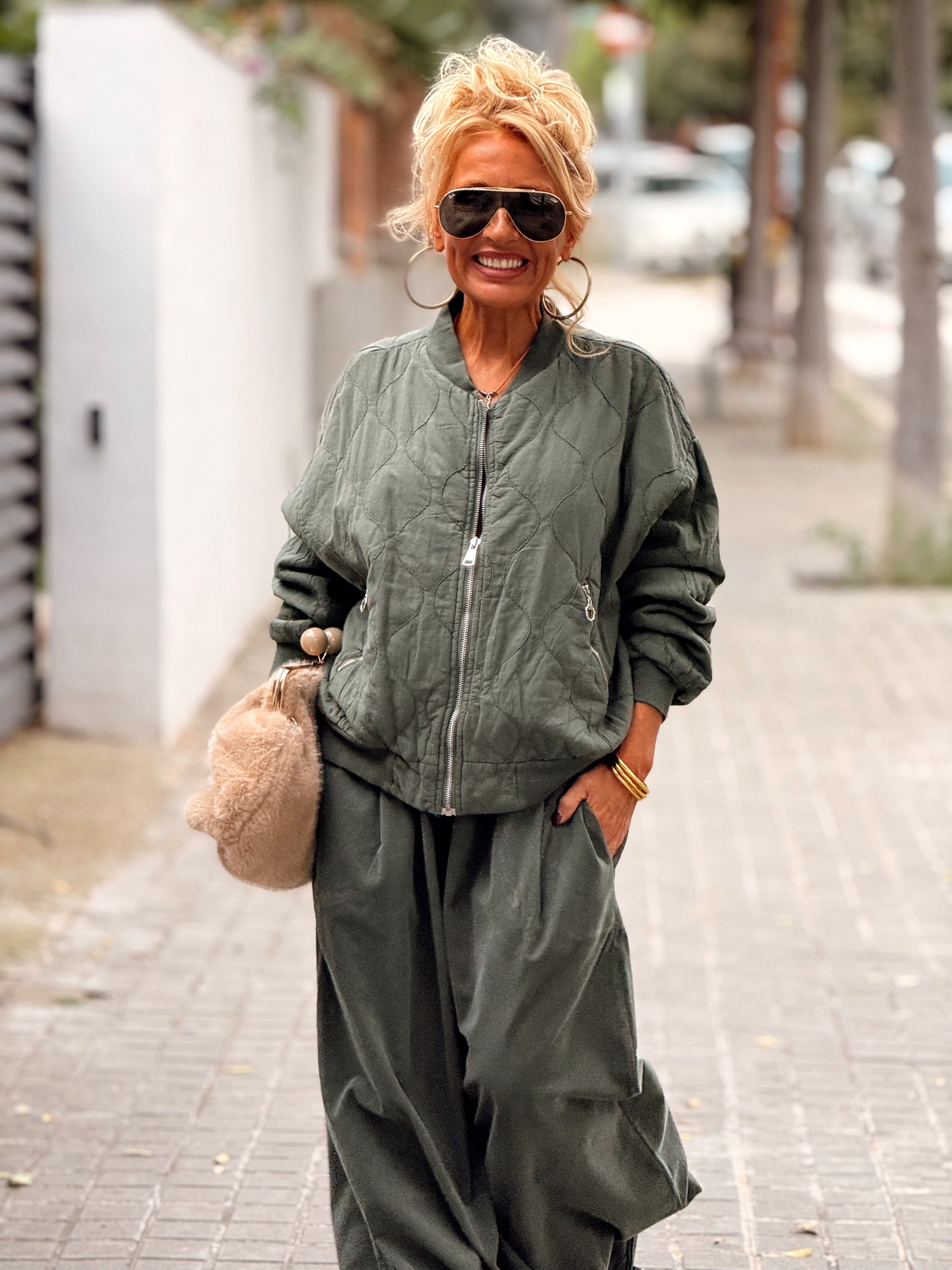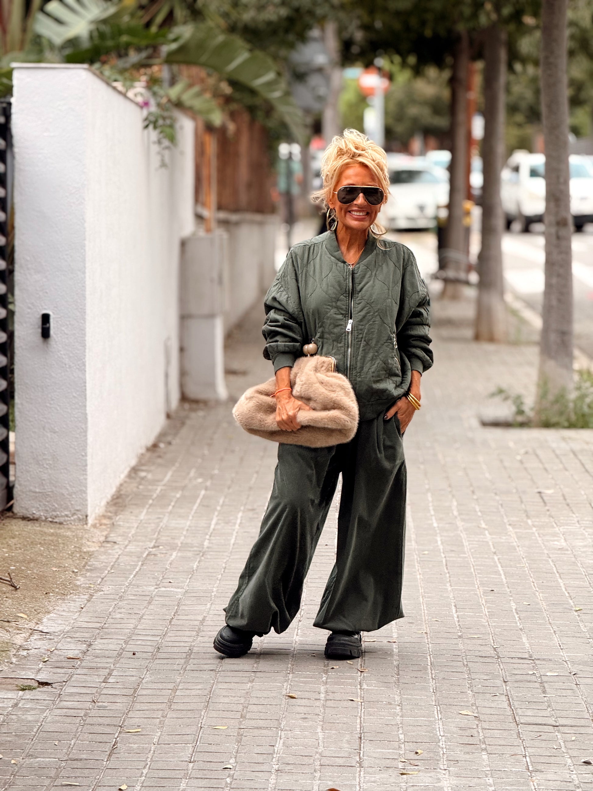 Tiene un corte oversize y fluido, con un cordón ajustable en los tobillos que permite darle ese toque moderno y desenfadado que tanto nos gusta.