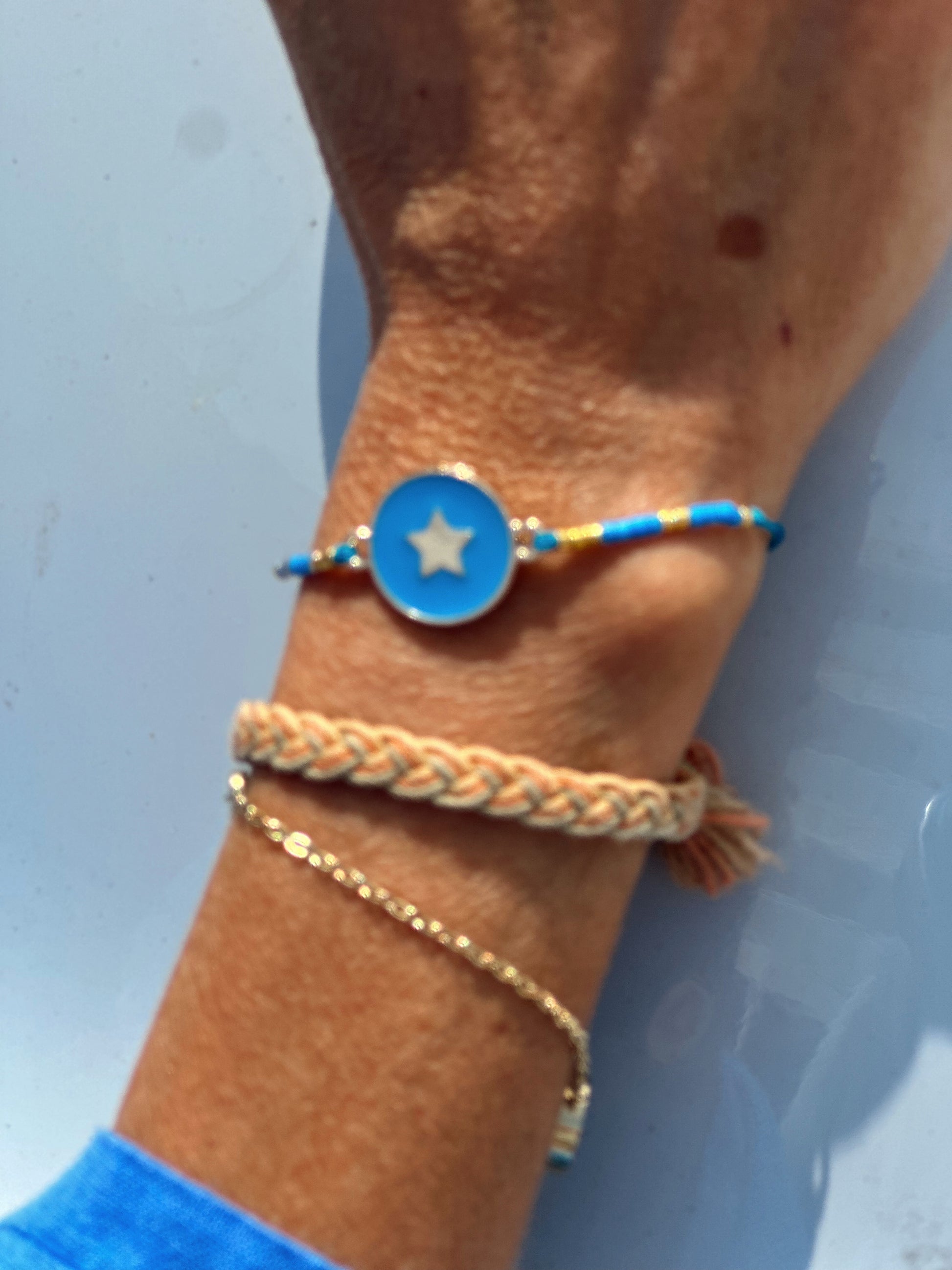 Estas pulseras ⭐️ son súper lindas y están disponibles en varios colores, perfectas para el verano. Fabricados en acero inoxidable, combinan durabilidad y estilo. Llévalos sin moderación y añade un toque de brillo a todos tus conjuntos de verano. ¡No pierdas esta oportunidad de brillar con estas adorables pulseras!✨