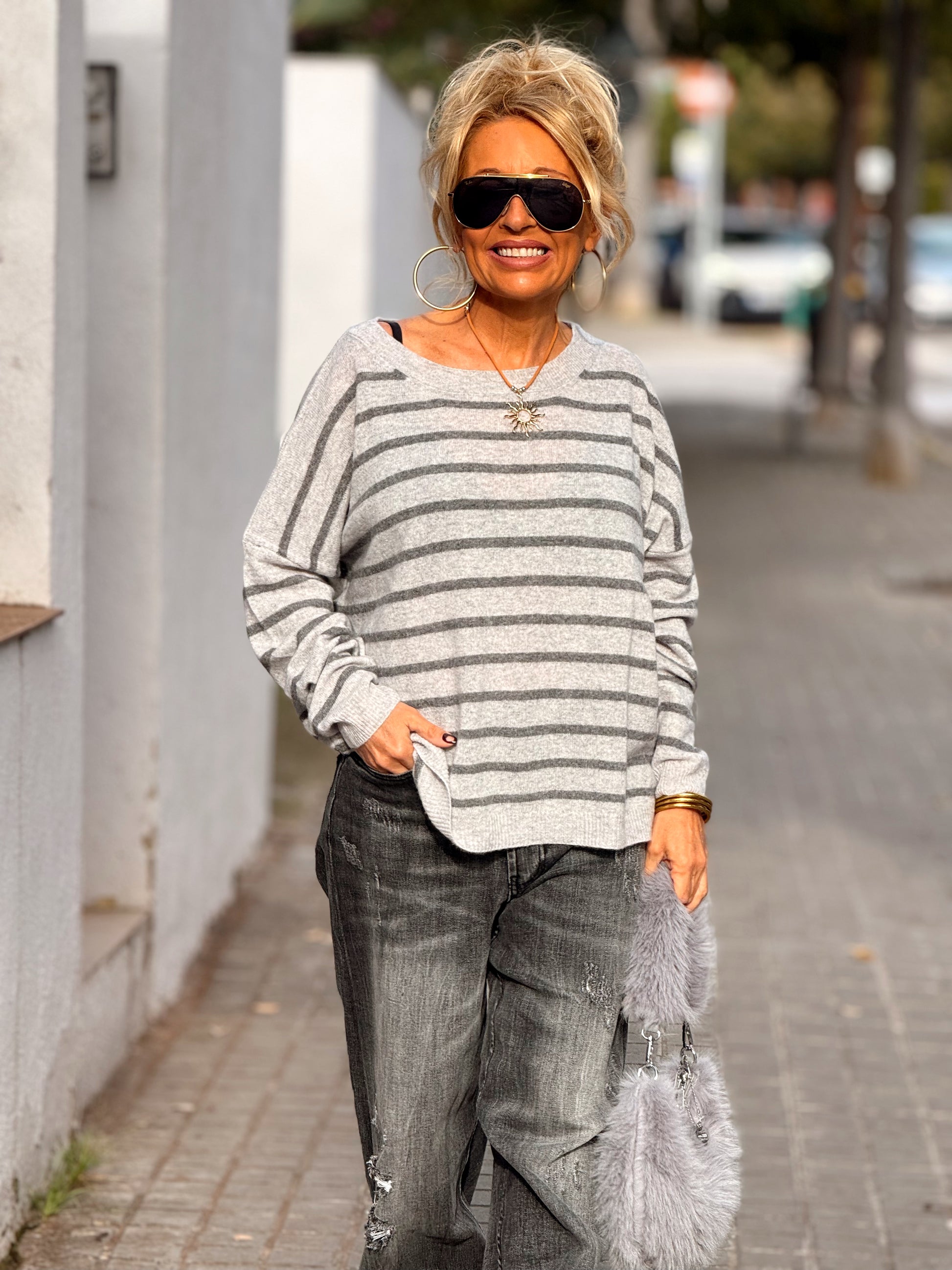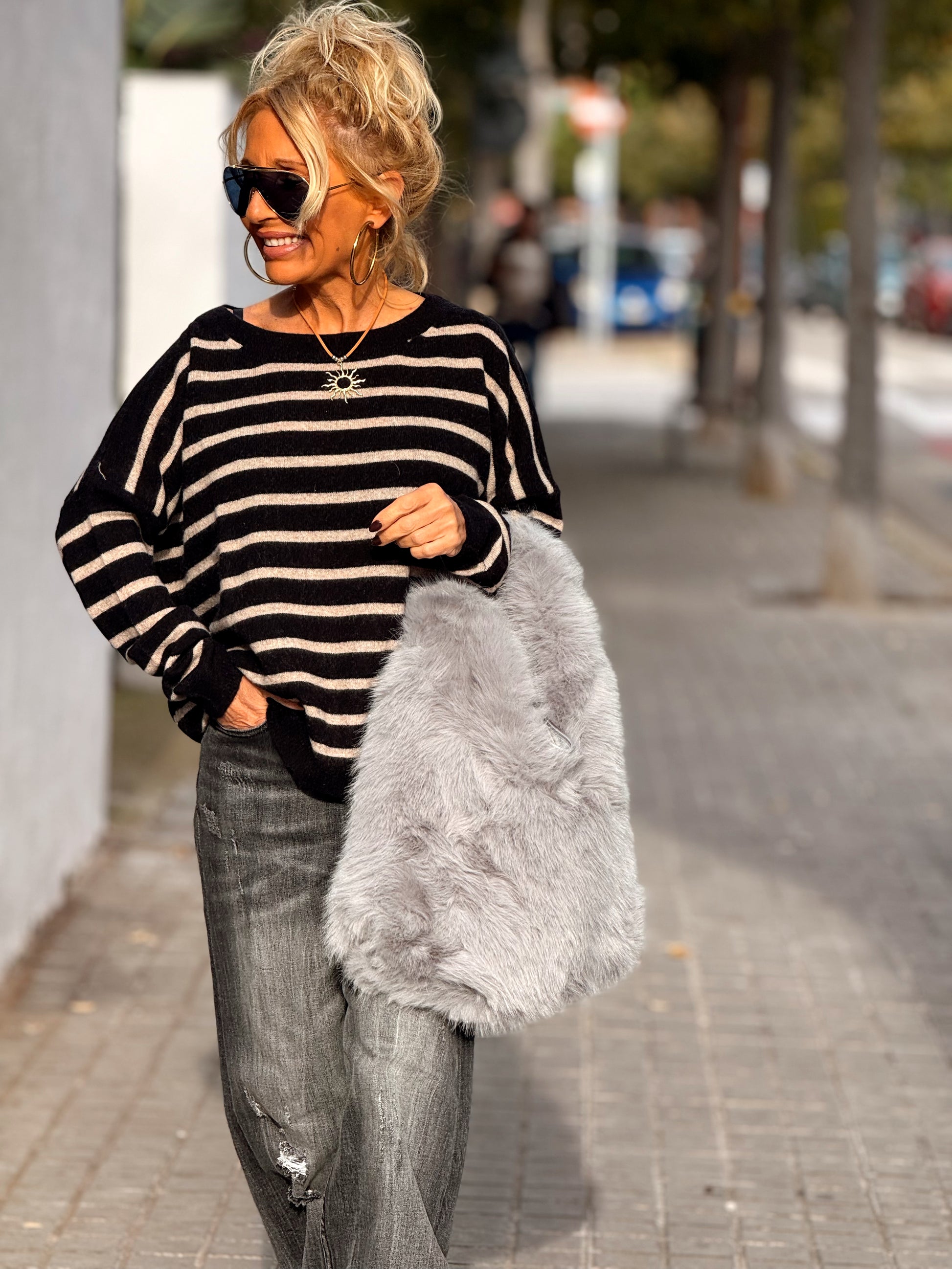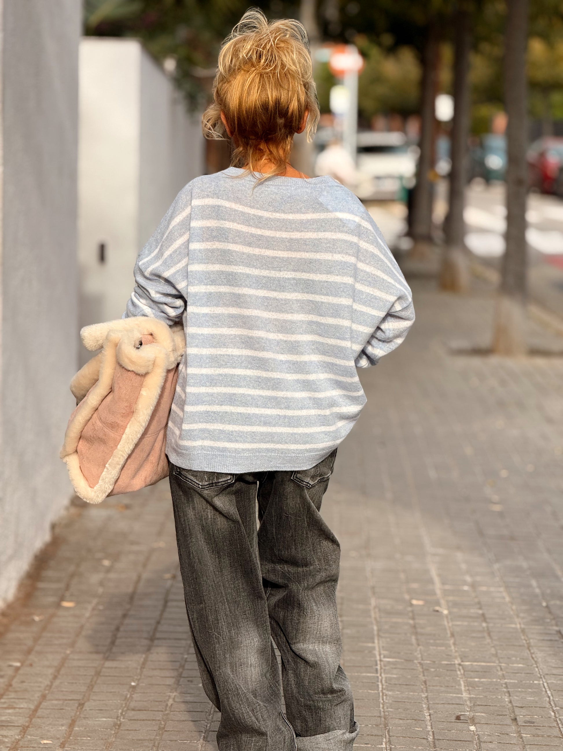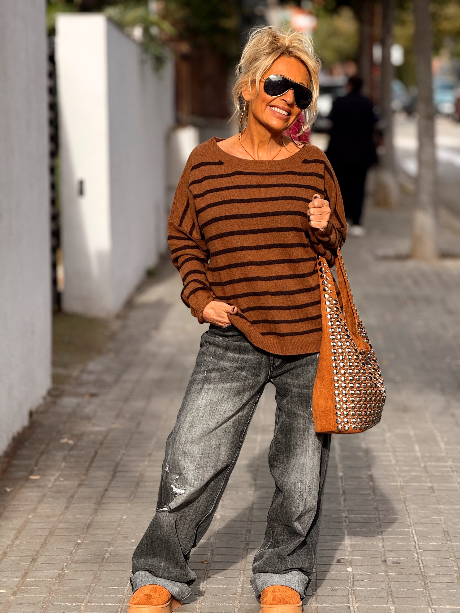 Jersey de lana 100%: una prenda realmente preciosa. Es extremadamente suave, muy agradable de llevar y no pica en absoluto. Un básico imprescindible en cualquier armario. Las rayas aportan un toque elegante y sofisticado.✨