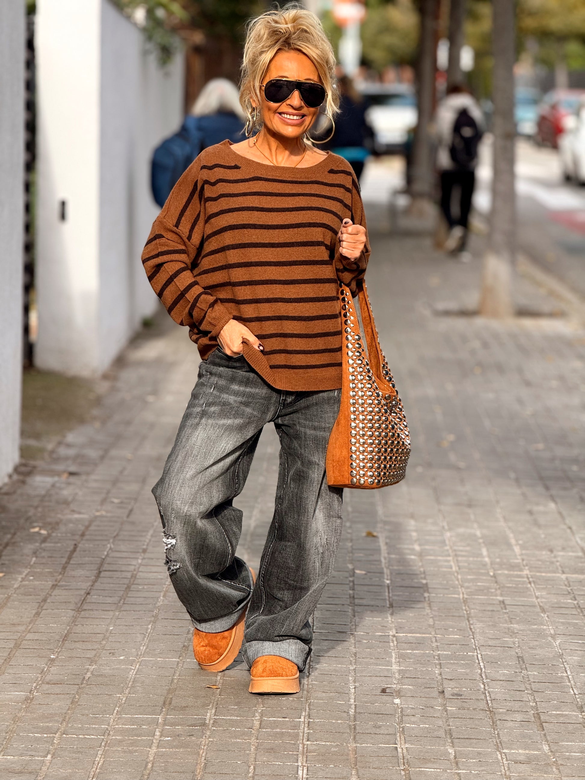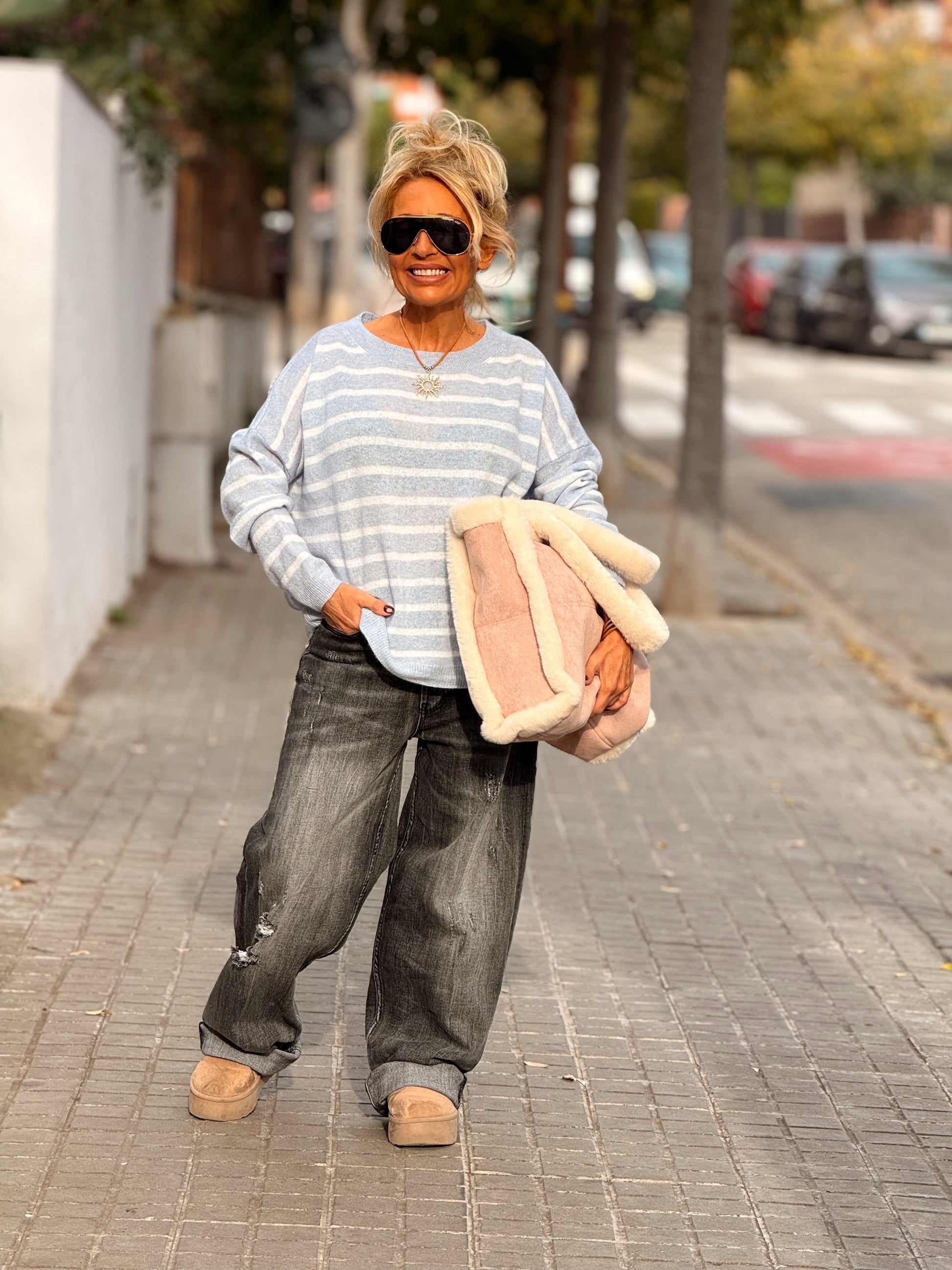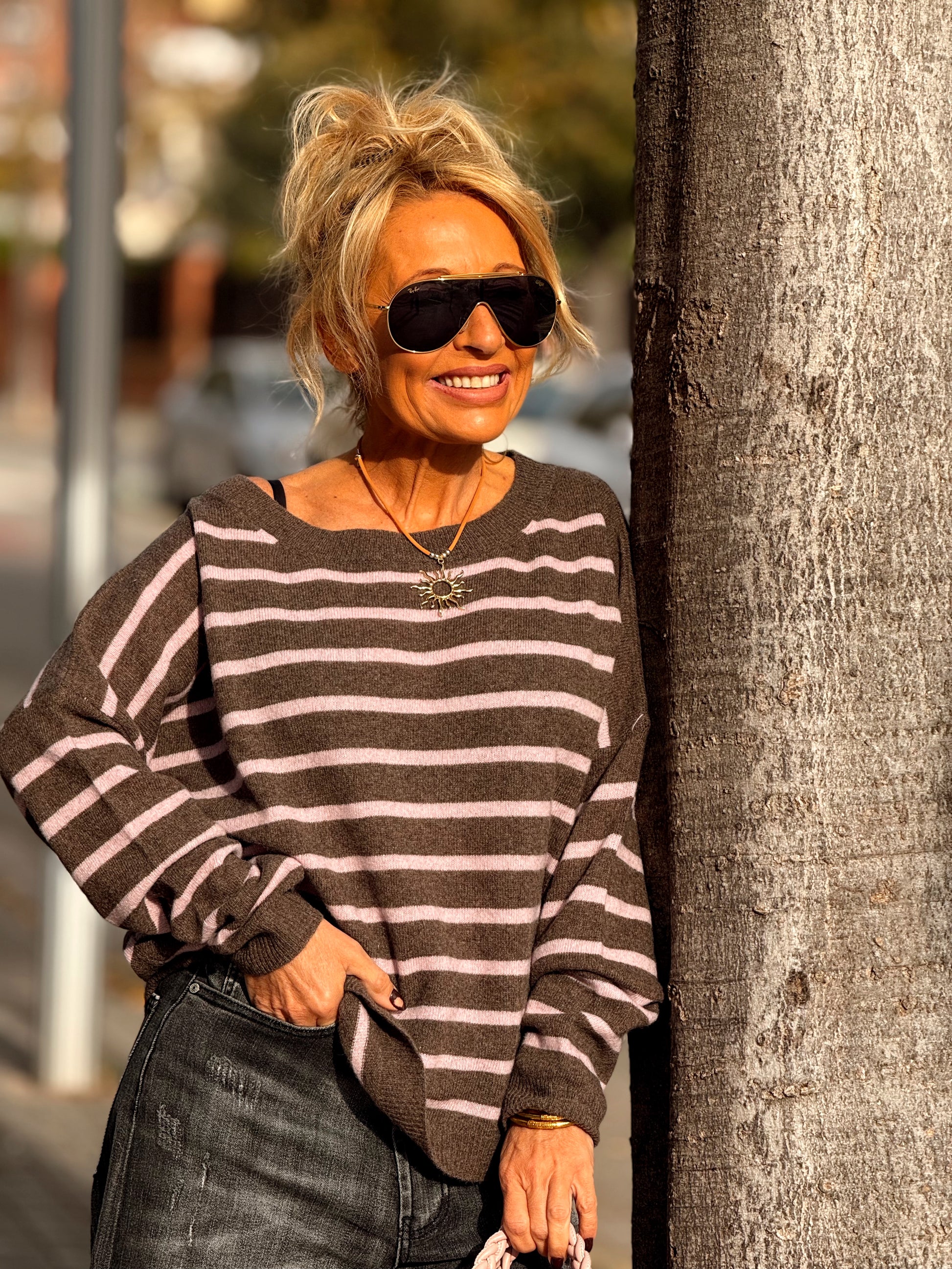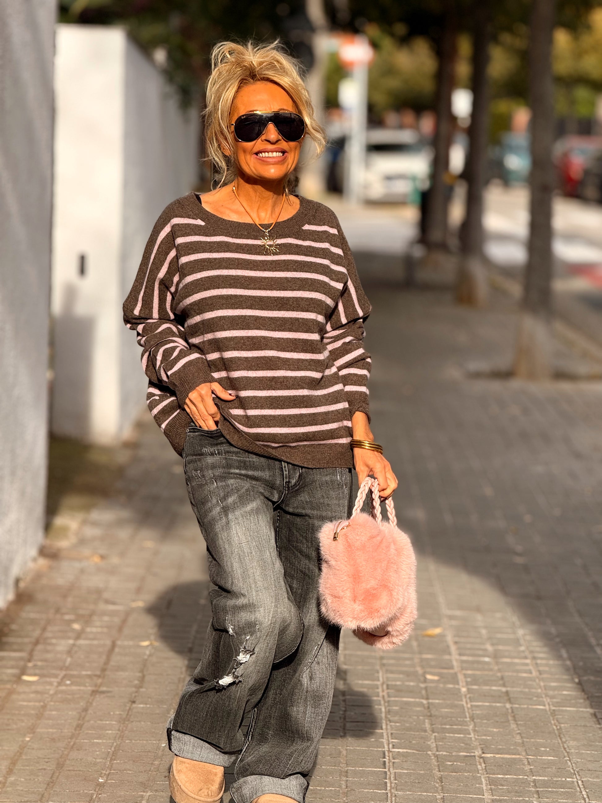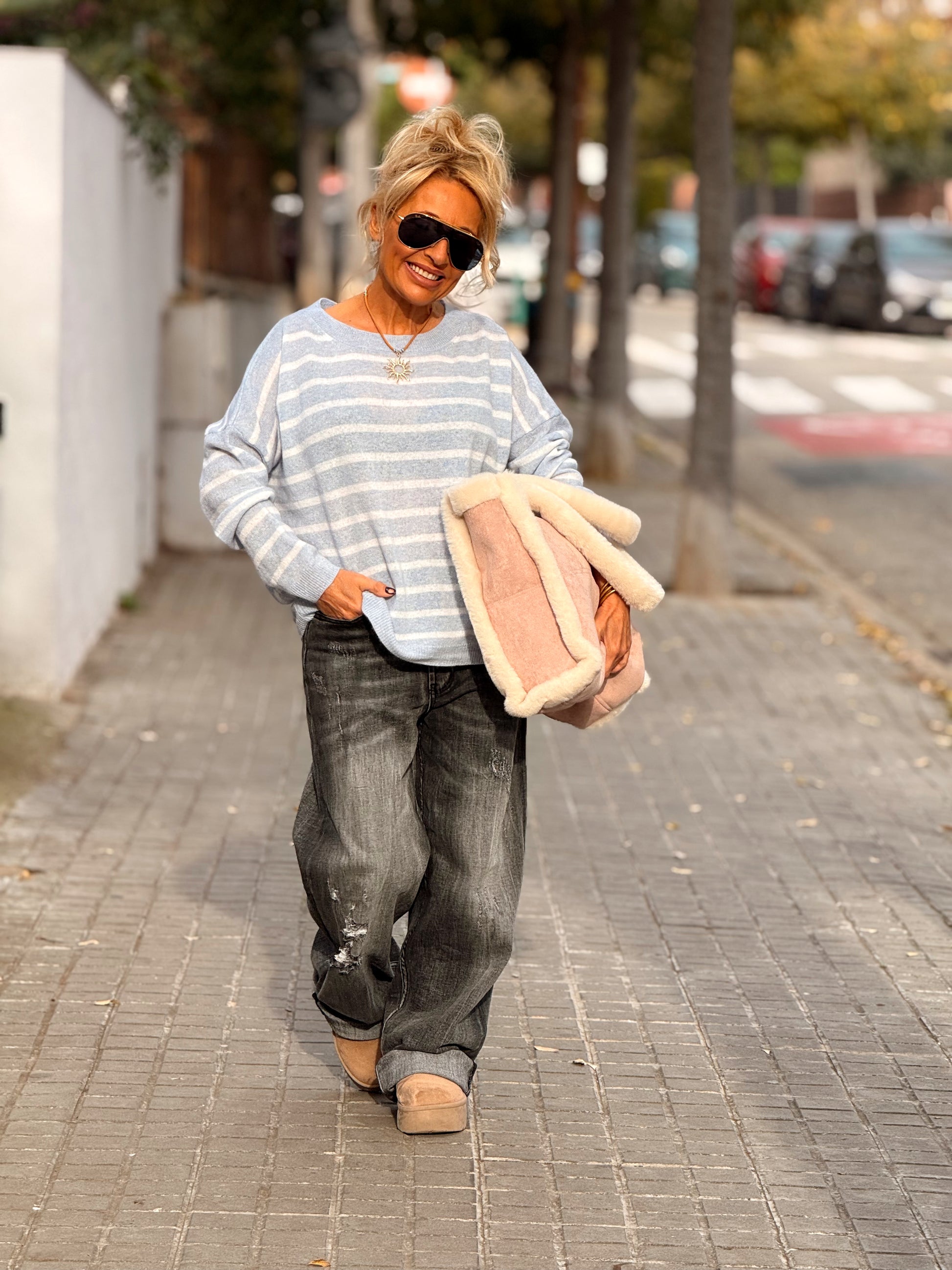 Jersey de lana 100%: una prenda realmente preciosa. Es extremadamente suave, muy agradable de llevar y no pica en absoluto. Un básico imprescindible en cualquier armario. Las rayas aportan un toque elegante y sofisticado.✨