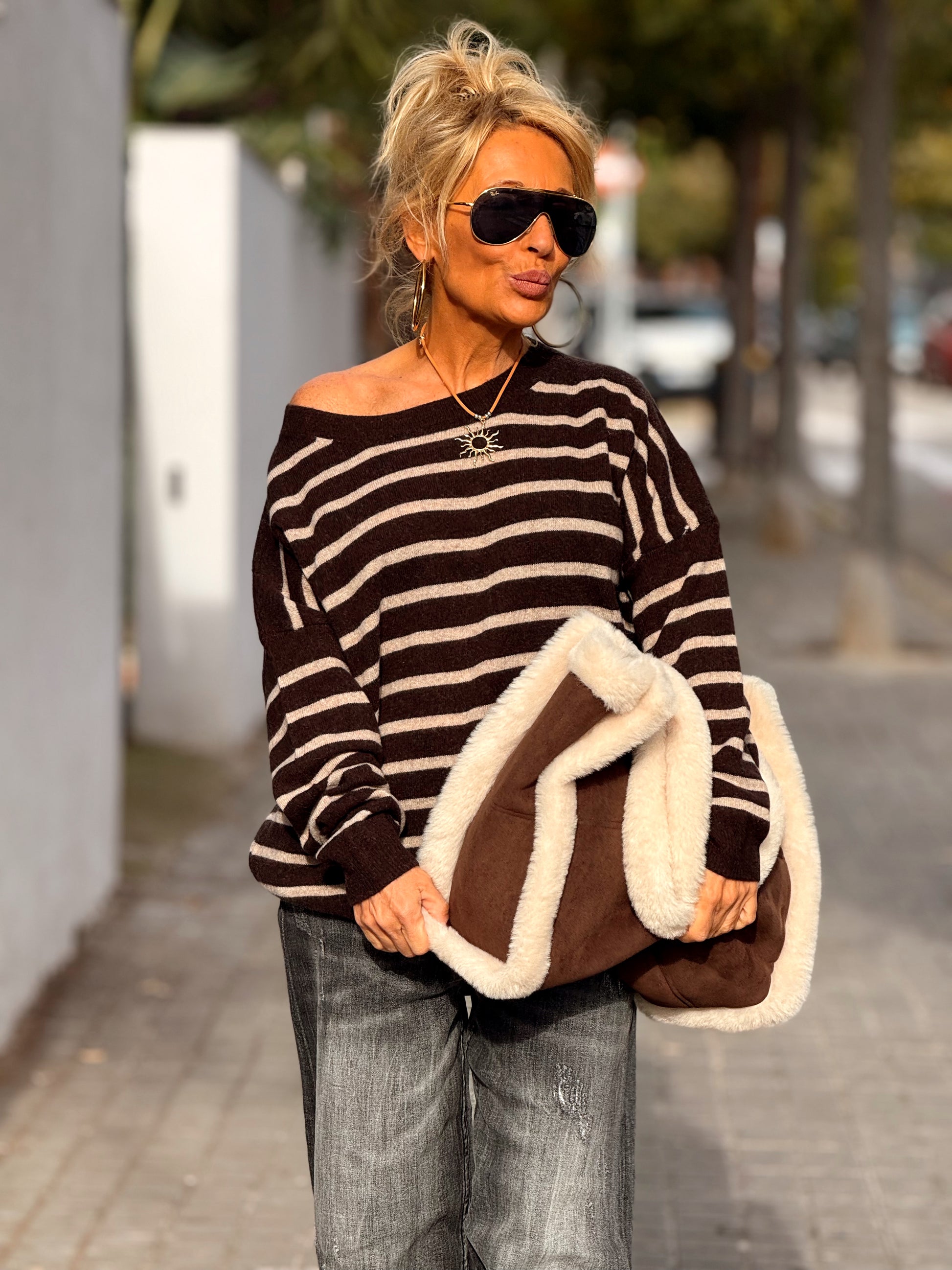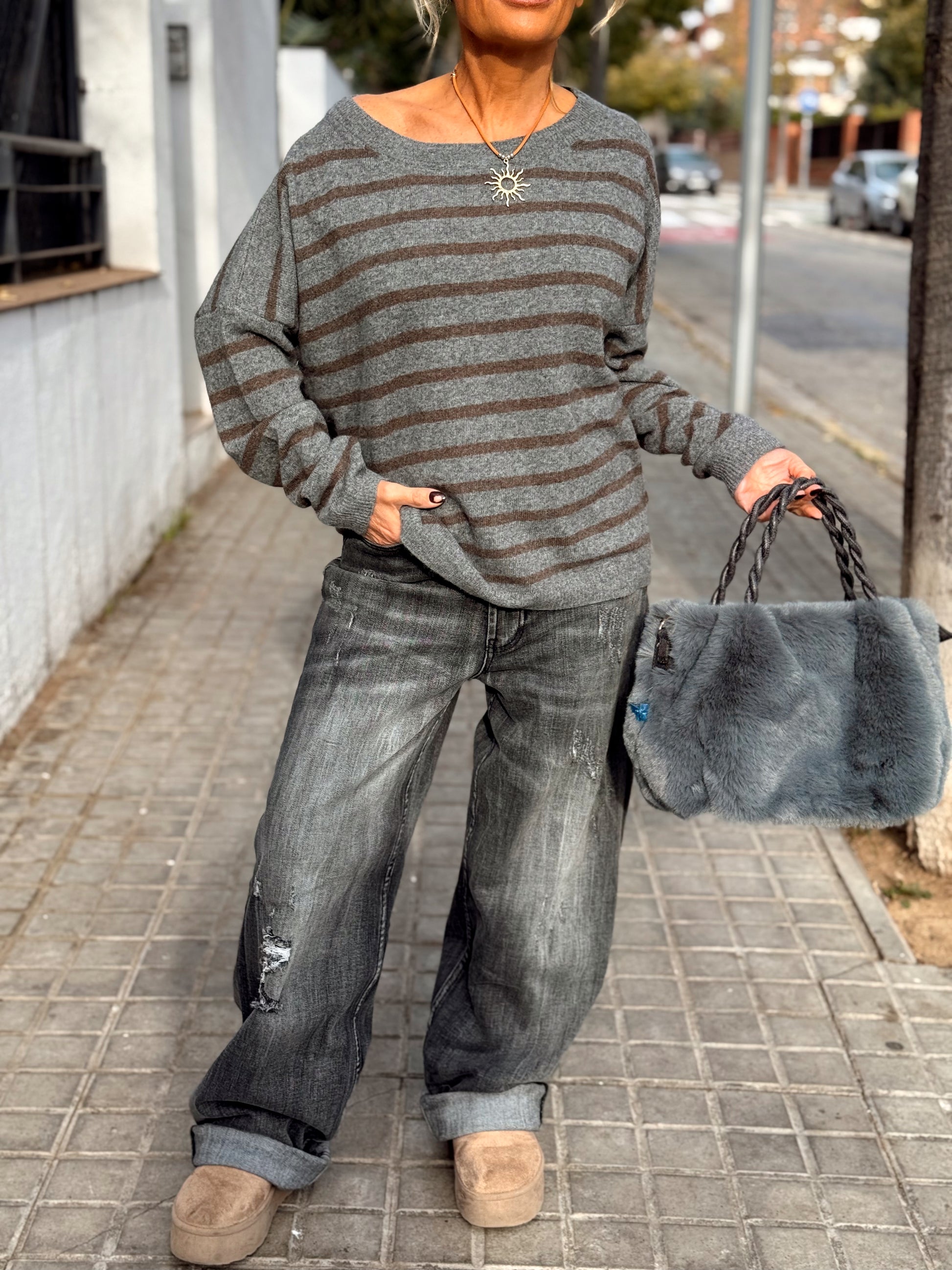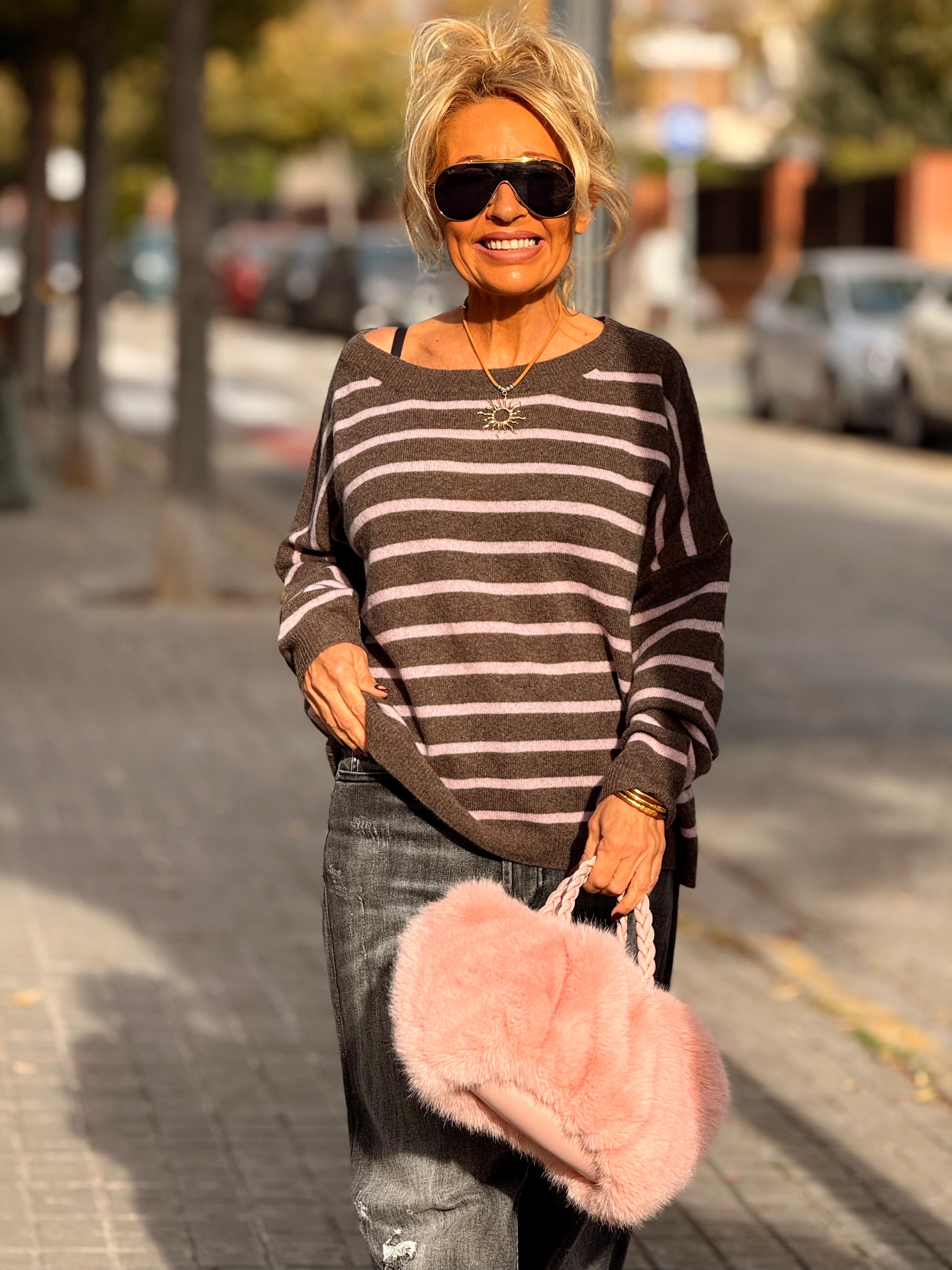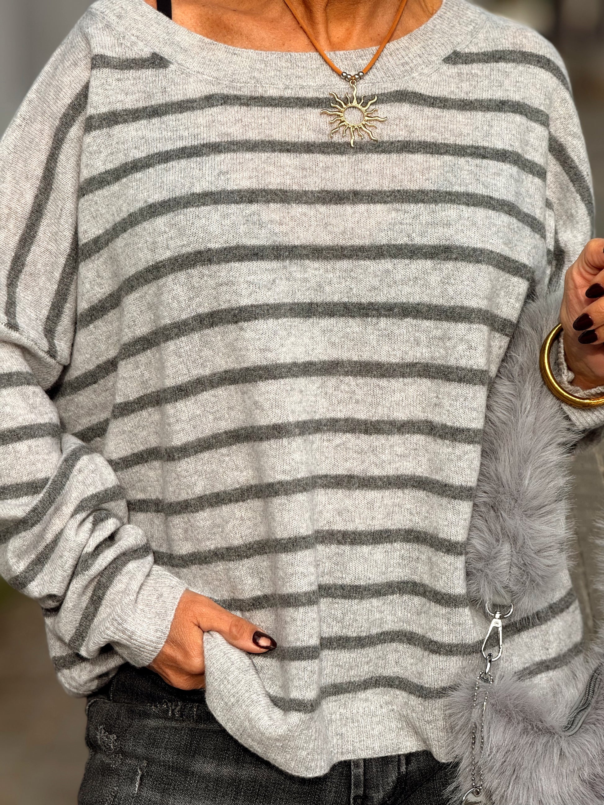 Jersey de lana 100%: una prenda realmente preciosa. Es extremadamente suave, muy agradable de llevar y no pica en absoluto. Un básico imprescindible en cualquier armario. Las rayas aportan un toque elegante y sofisticado.✨