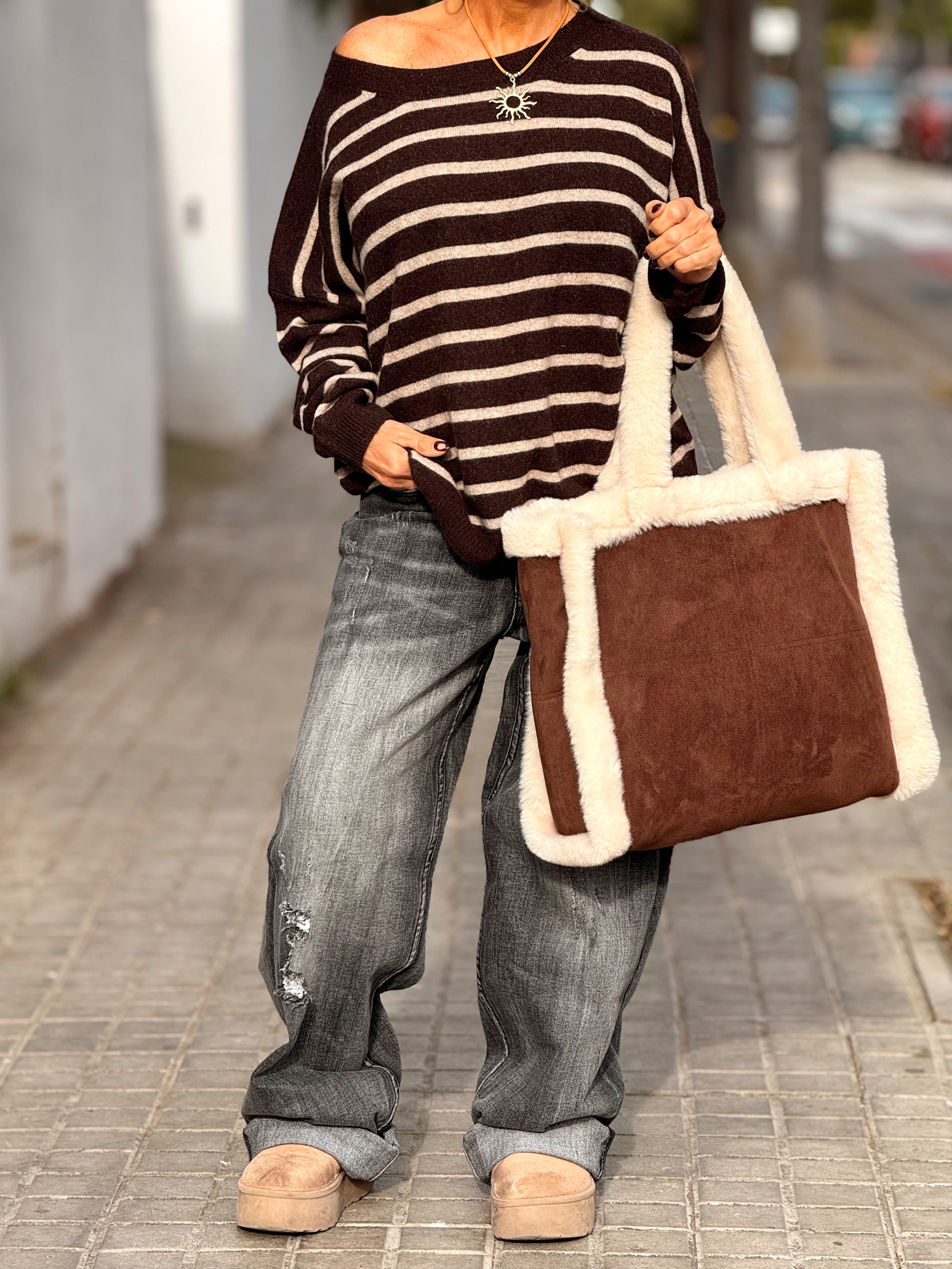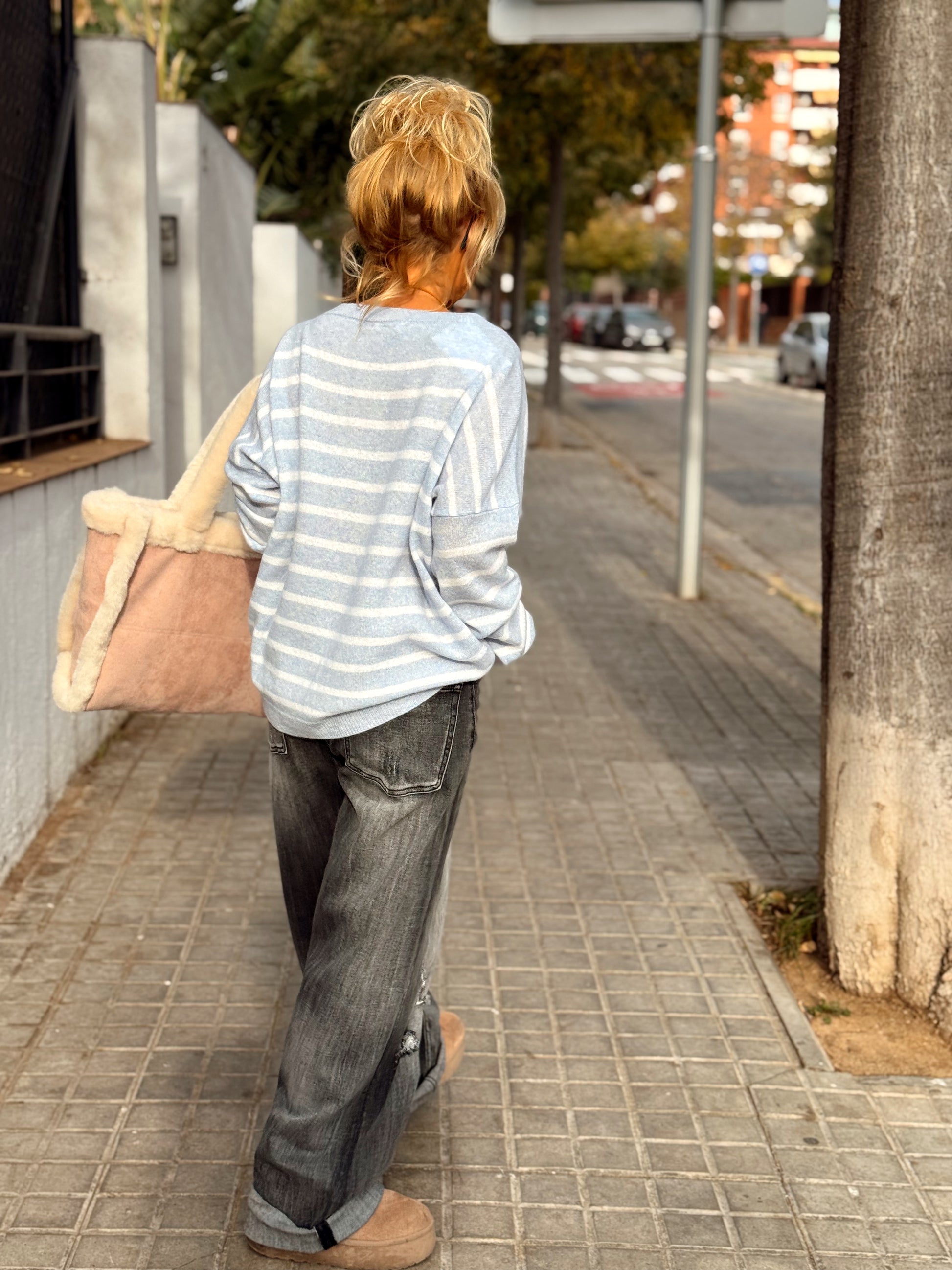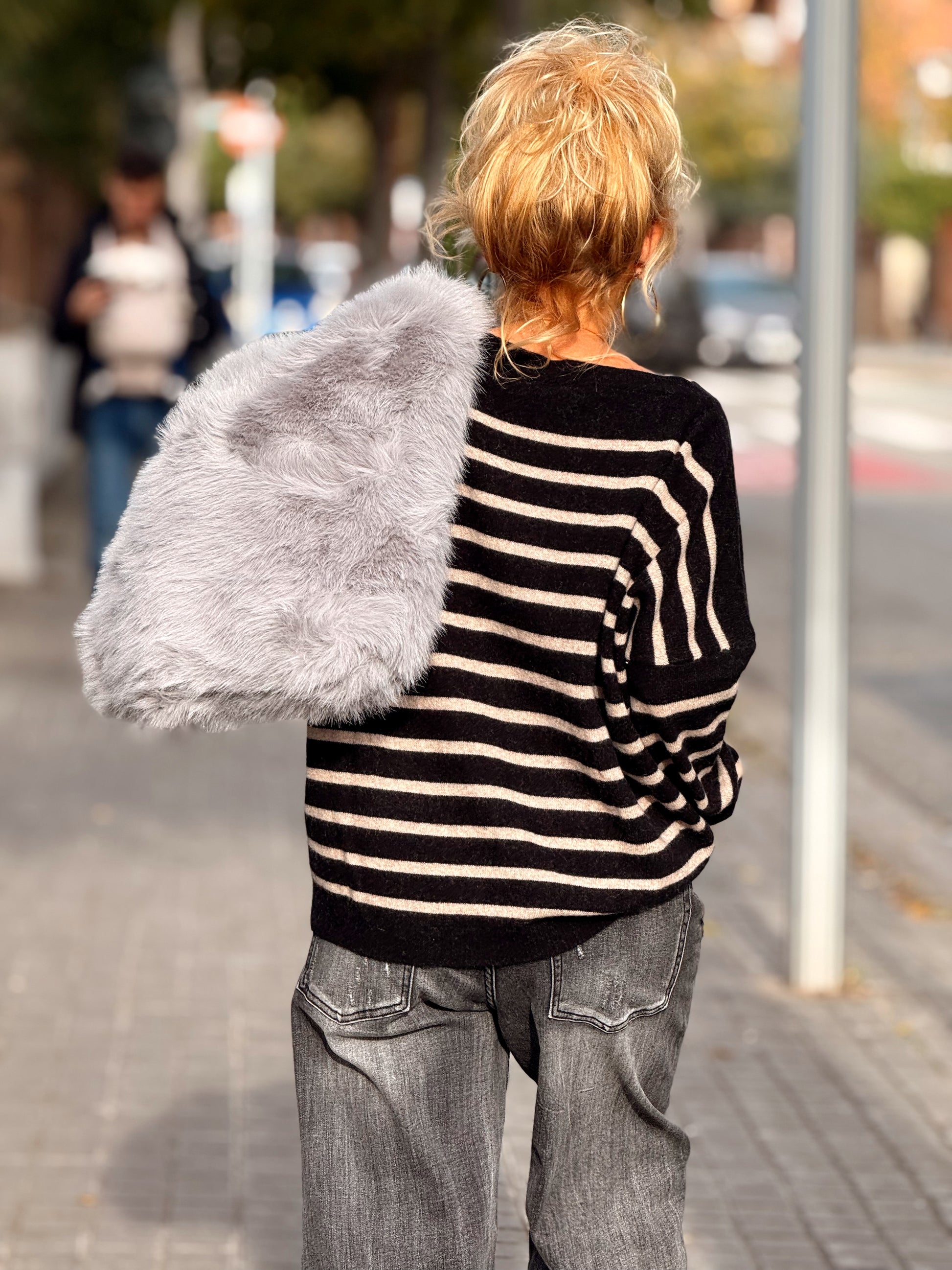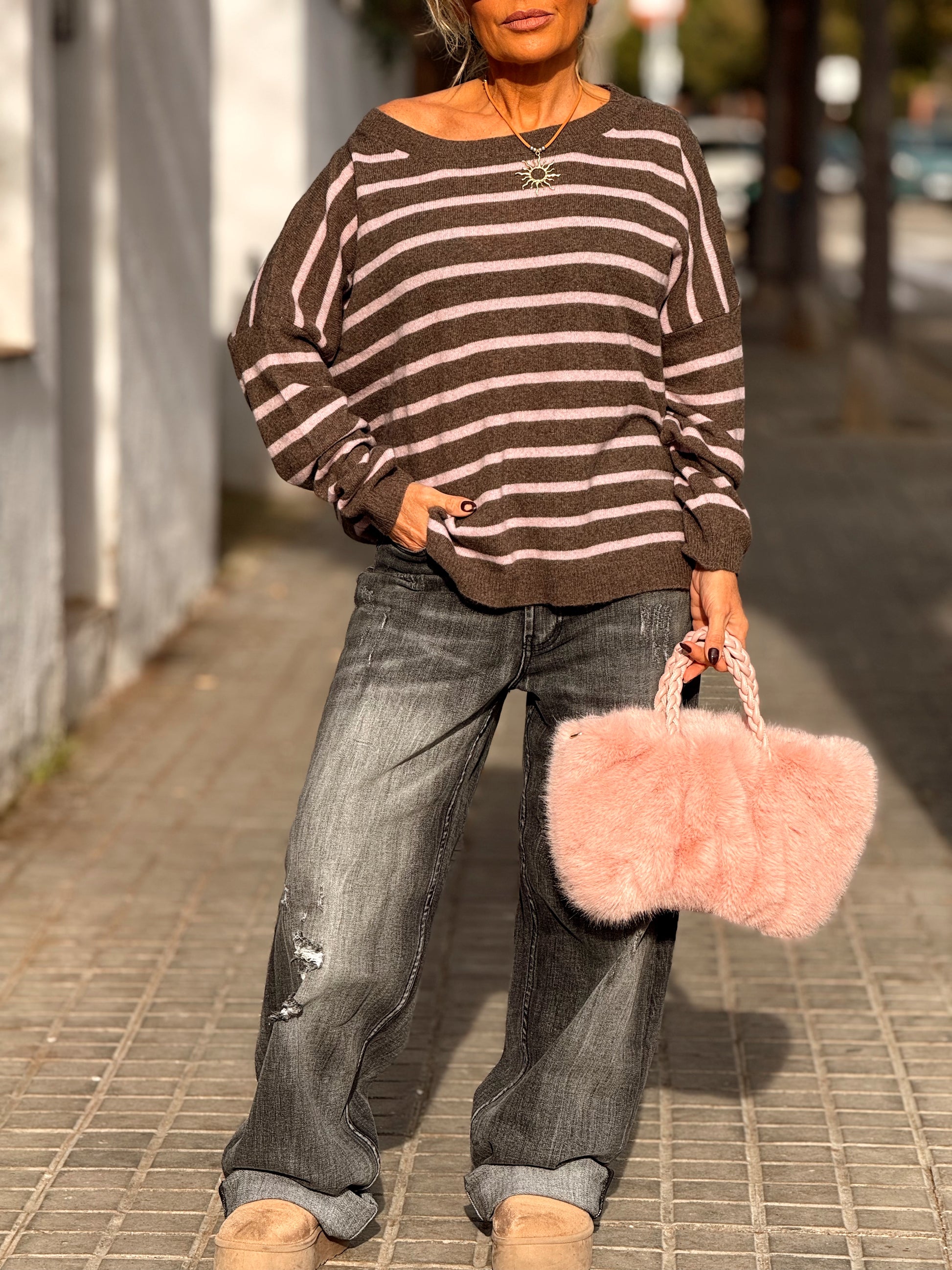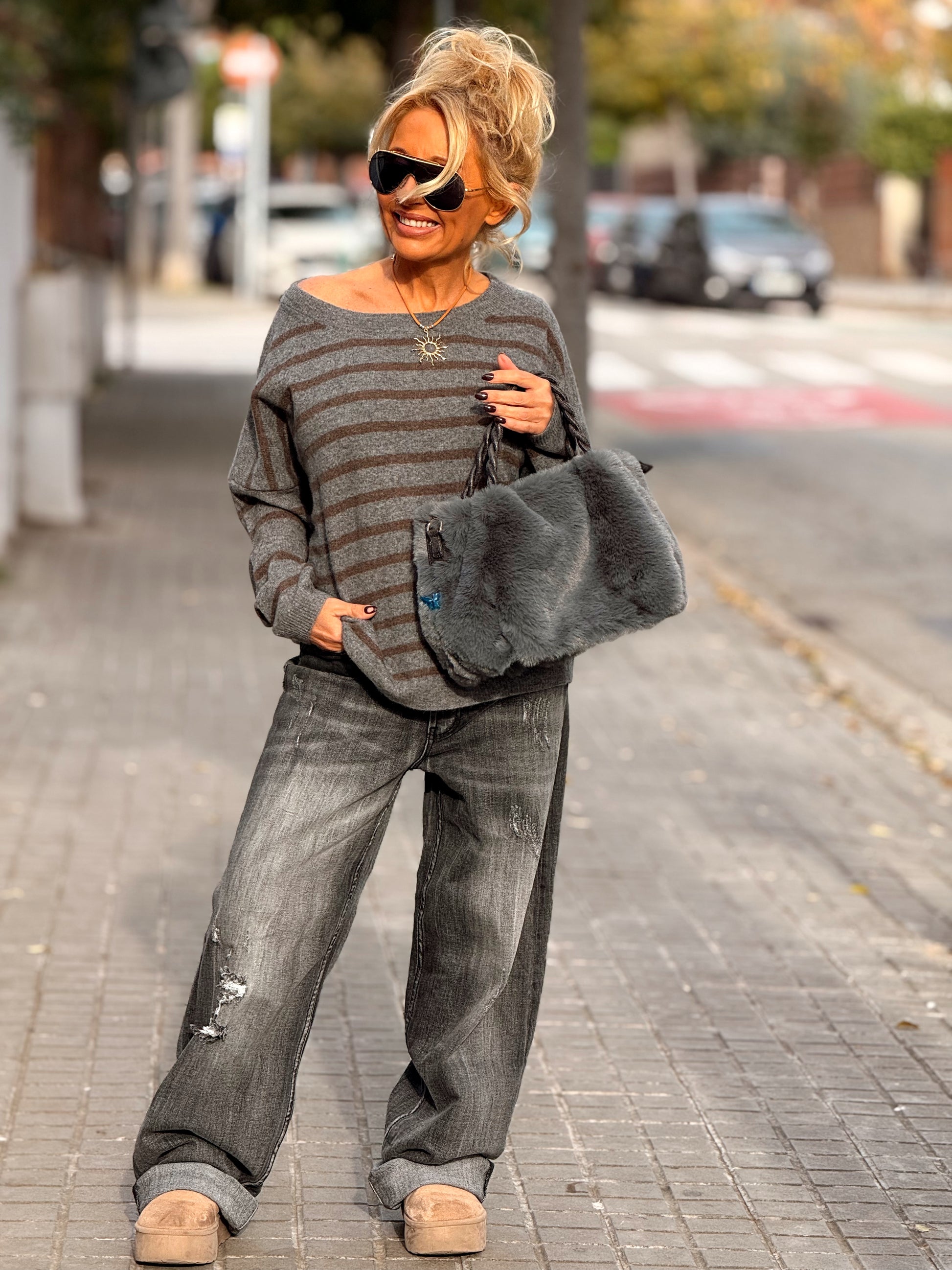 Jersey de lana 100%: una prenda realmente preciosa. Es extremadamente suave, muy agradable de llevar y no pica en absoluto. Un básico imprescindible en cualquier armario. Las rayas aportan un toque elegante y sofisticado.✨