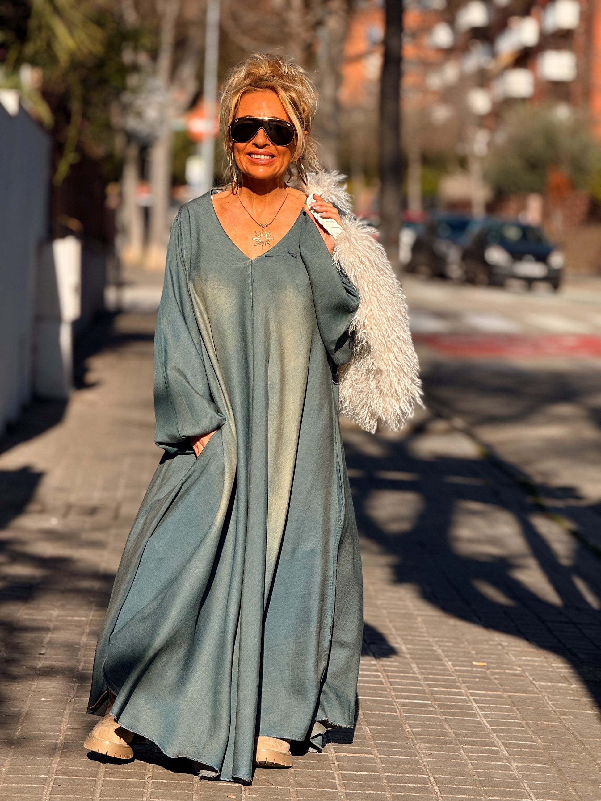 VESTIDO LARGO OVERSIZE TEJANO DESGASTADO