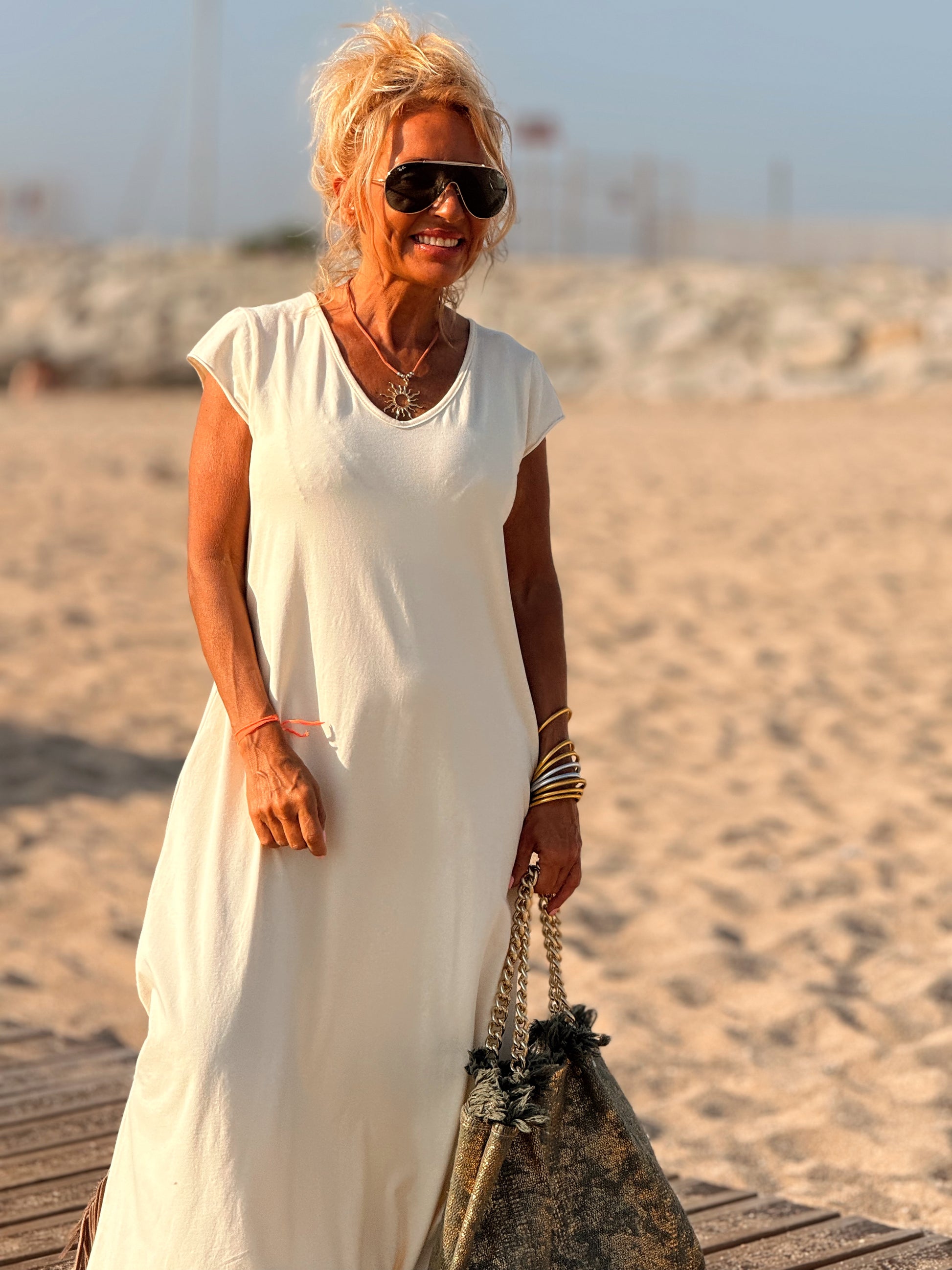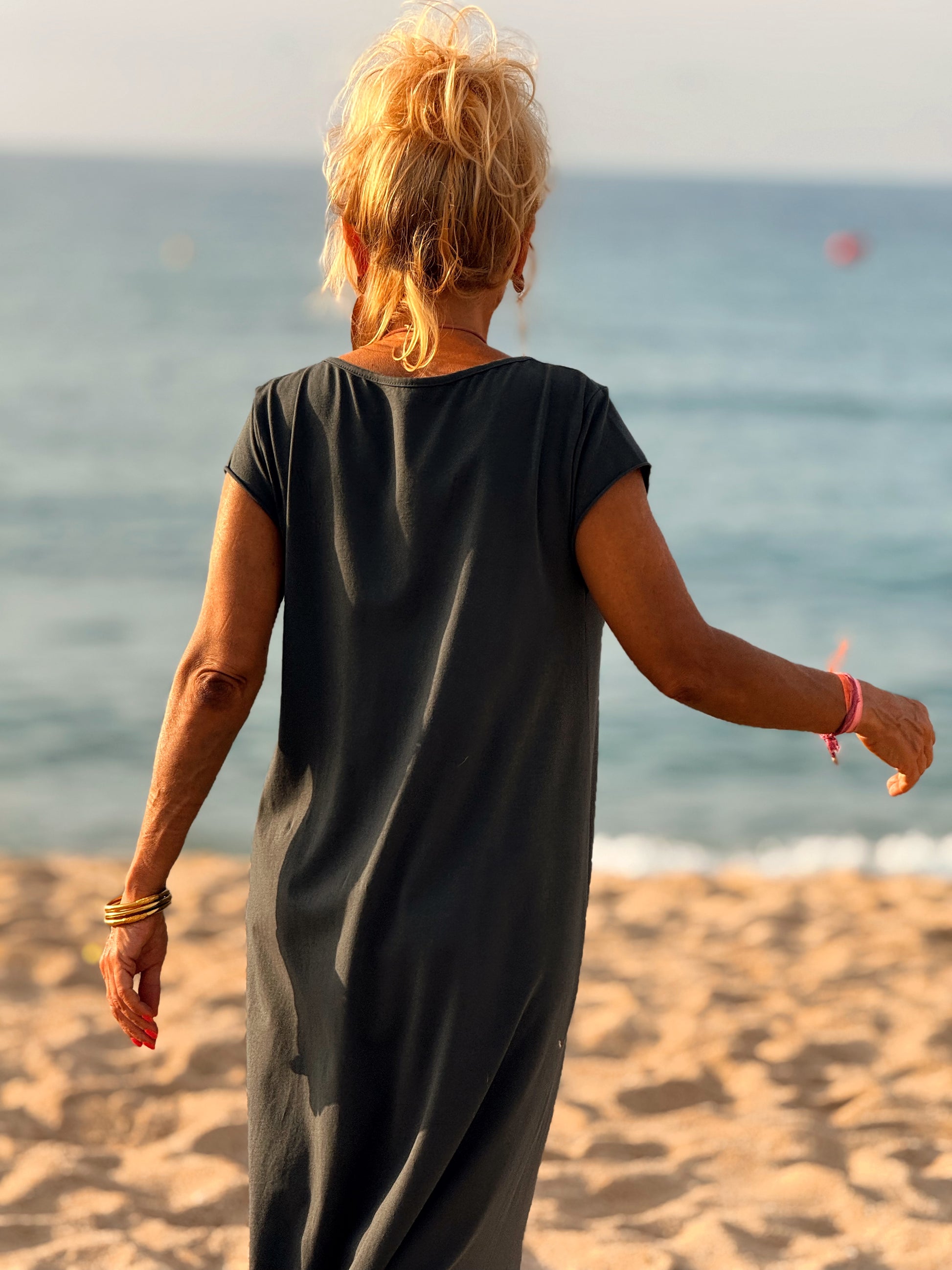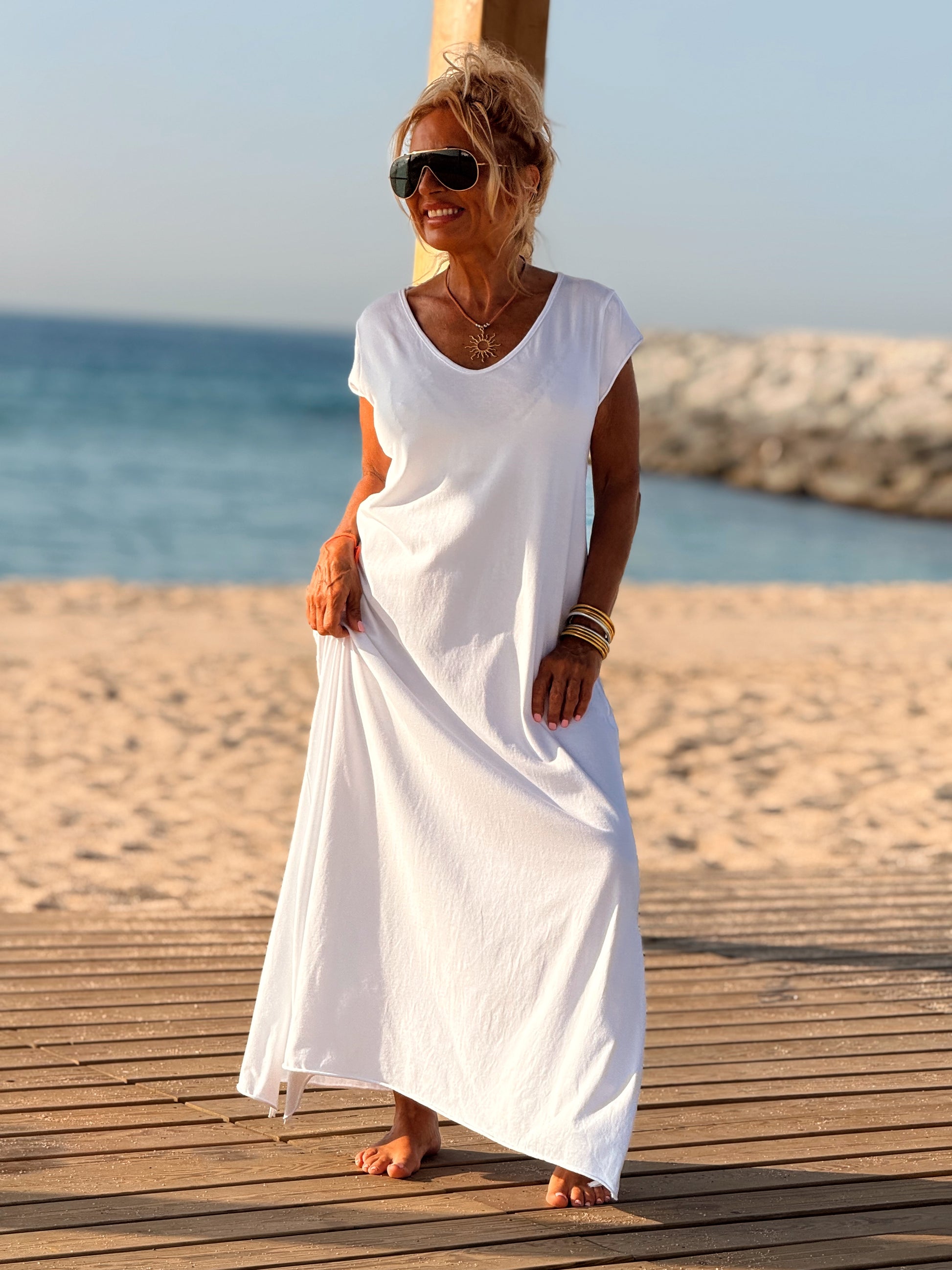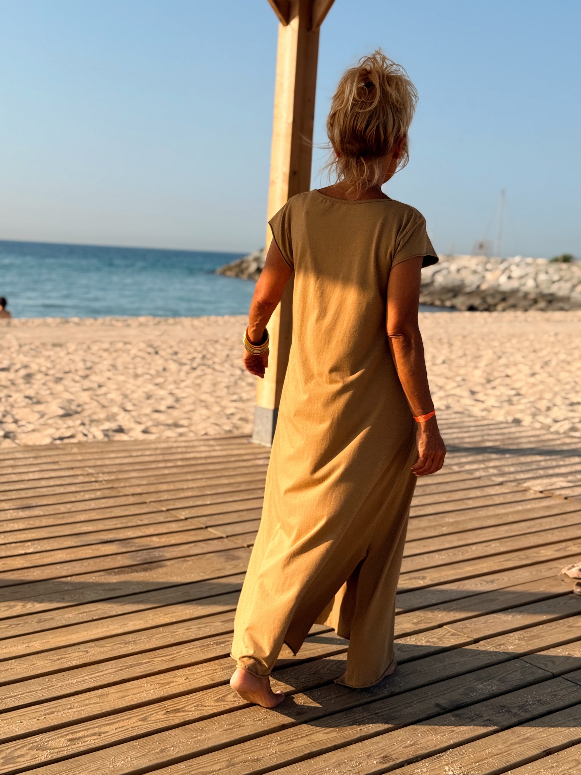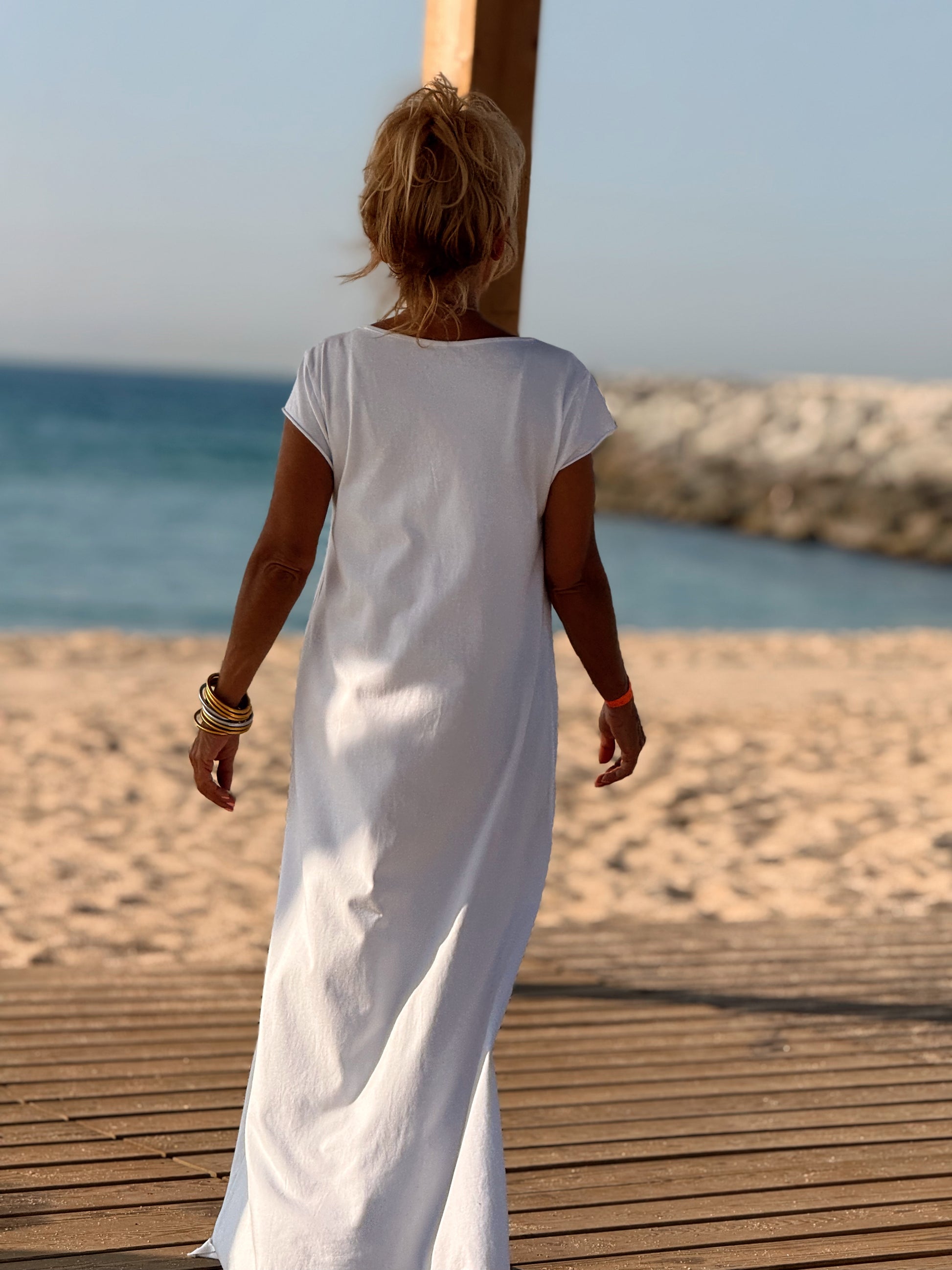 Esta preciosa robe de algodón, con mangas cortas y corte atemporal, es perfecta tanto para la ciudad como para la playa o una salida improvisada.