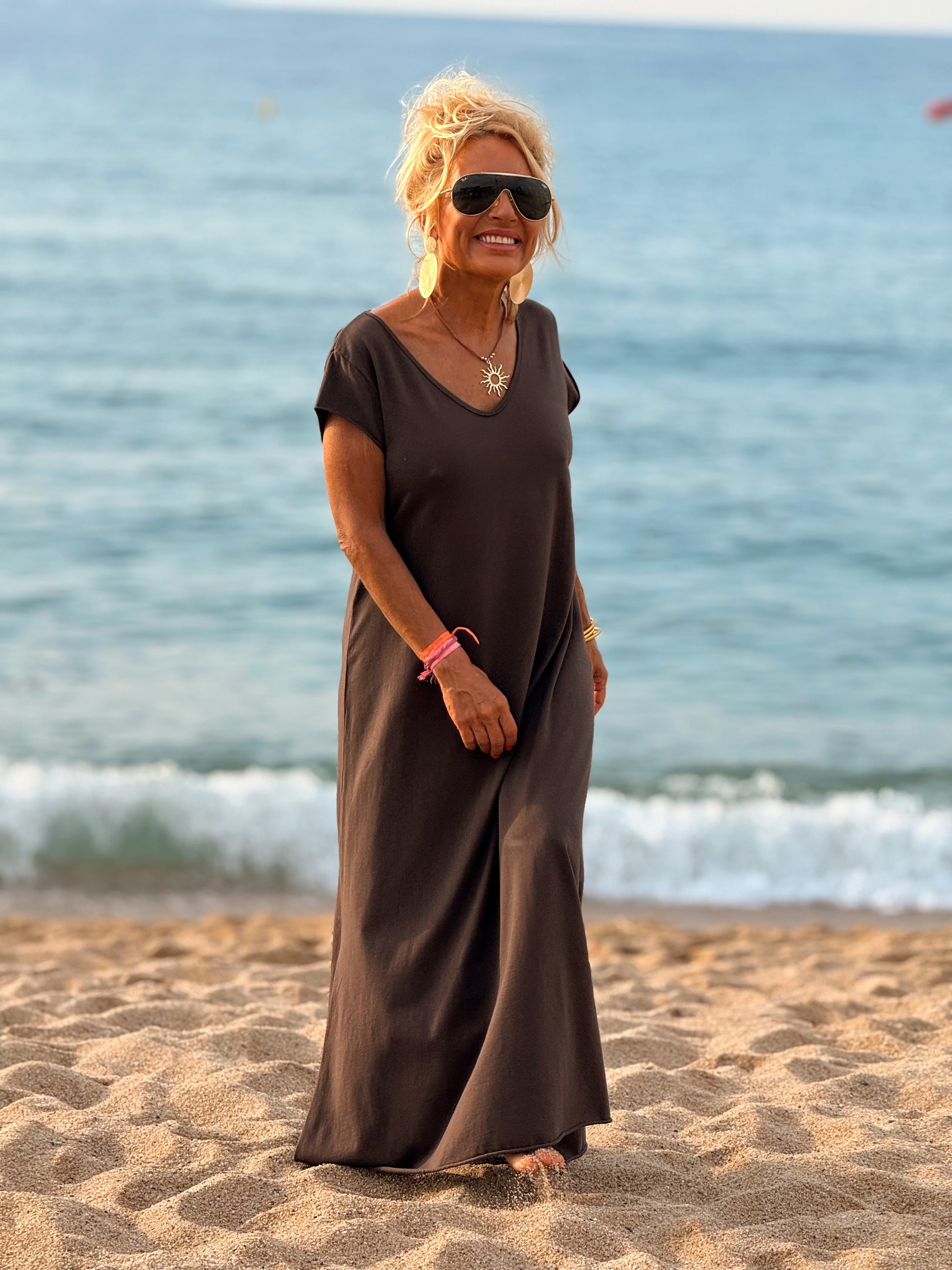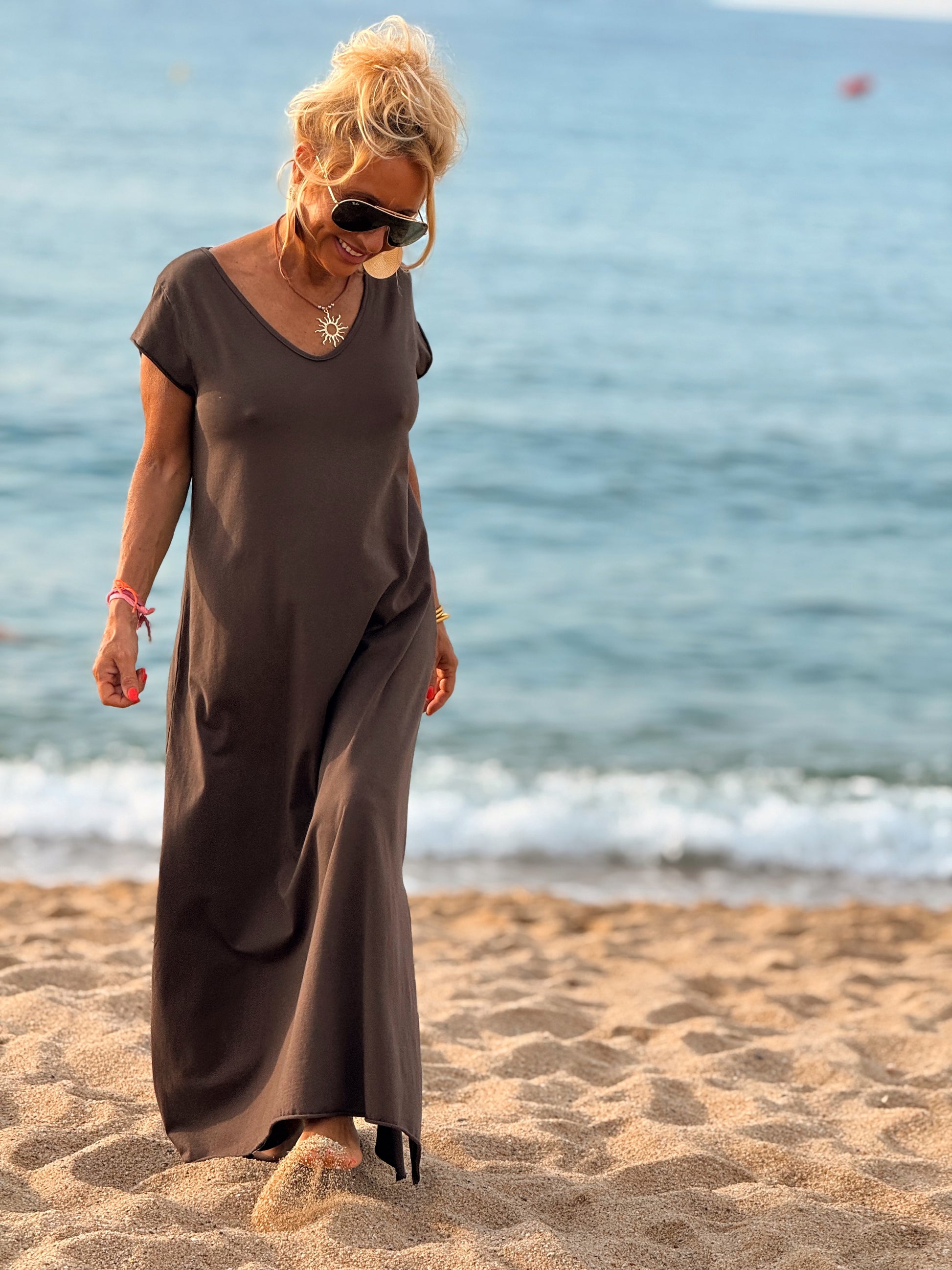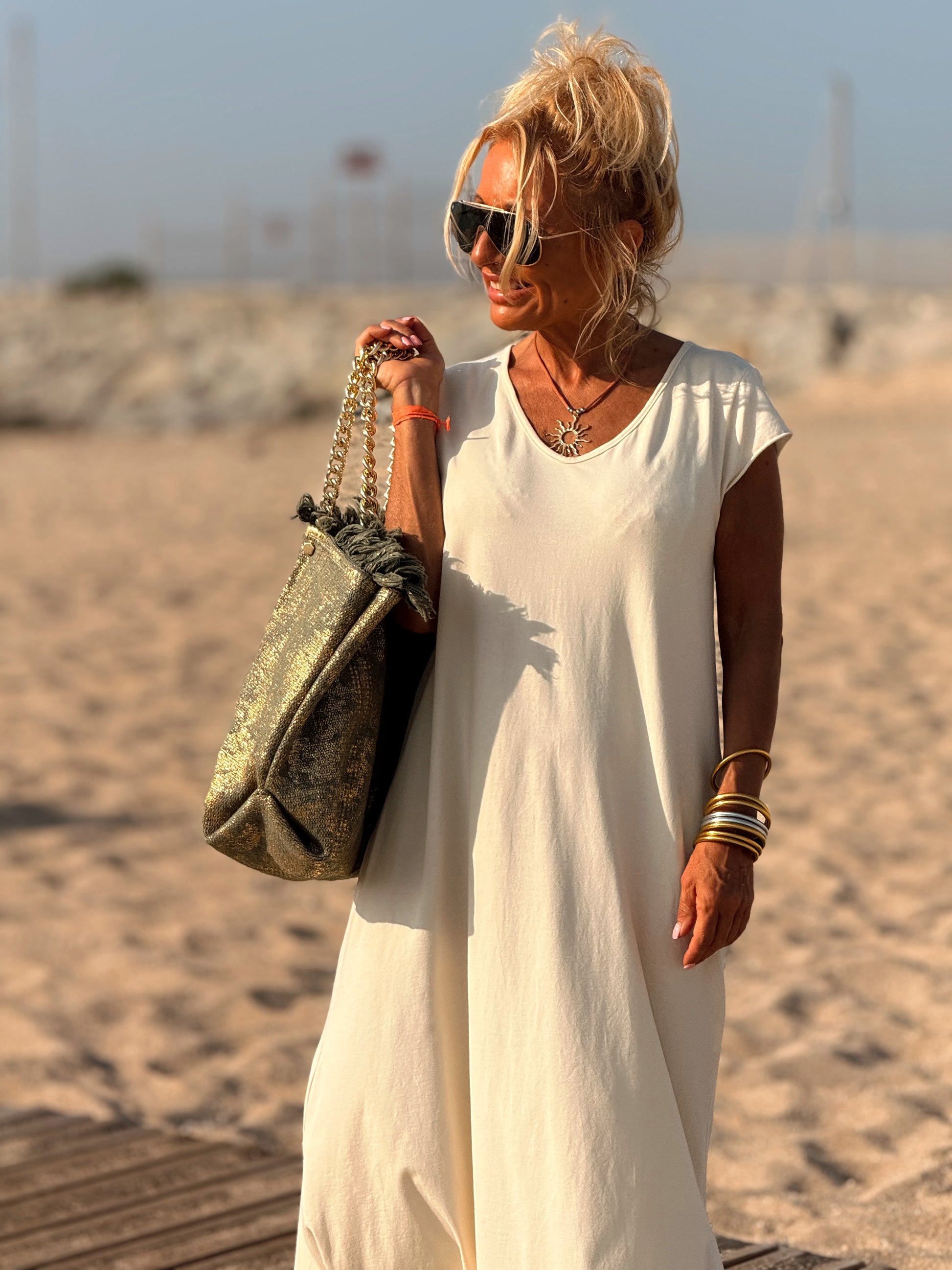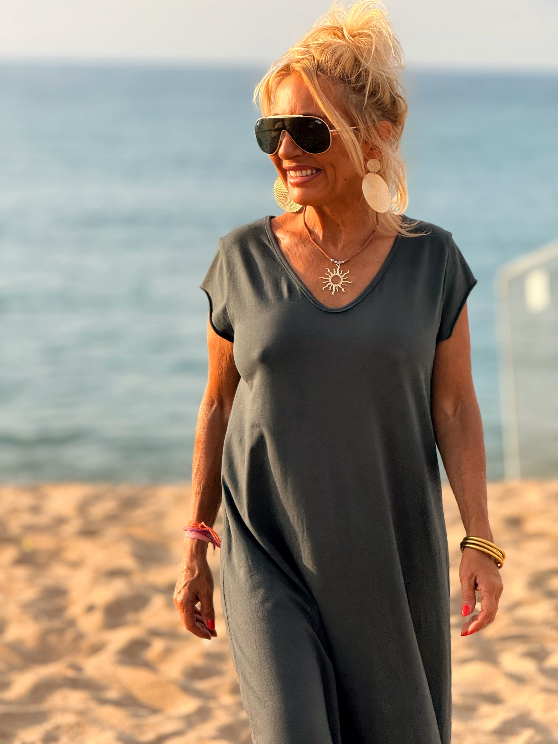 Esta preciosa robe de algodón, con mangas cortas y corte atemporal, es perfecta tanto para la ciudad como para la playa o una salida improvisada.