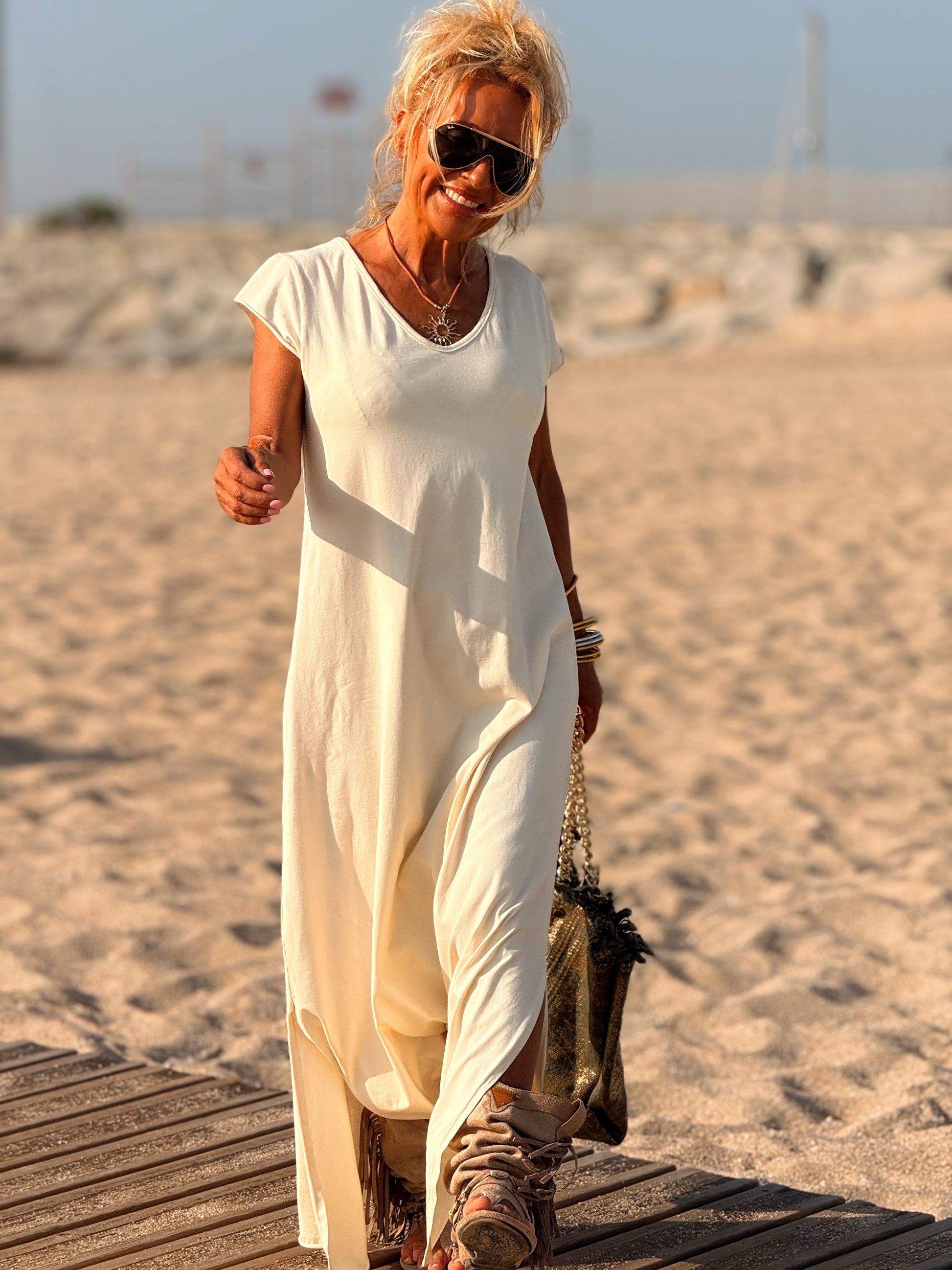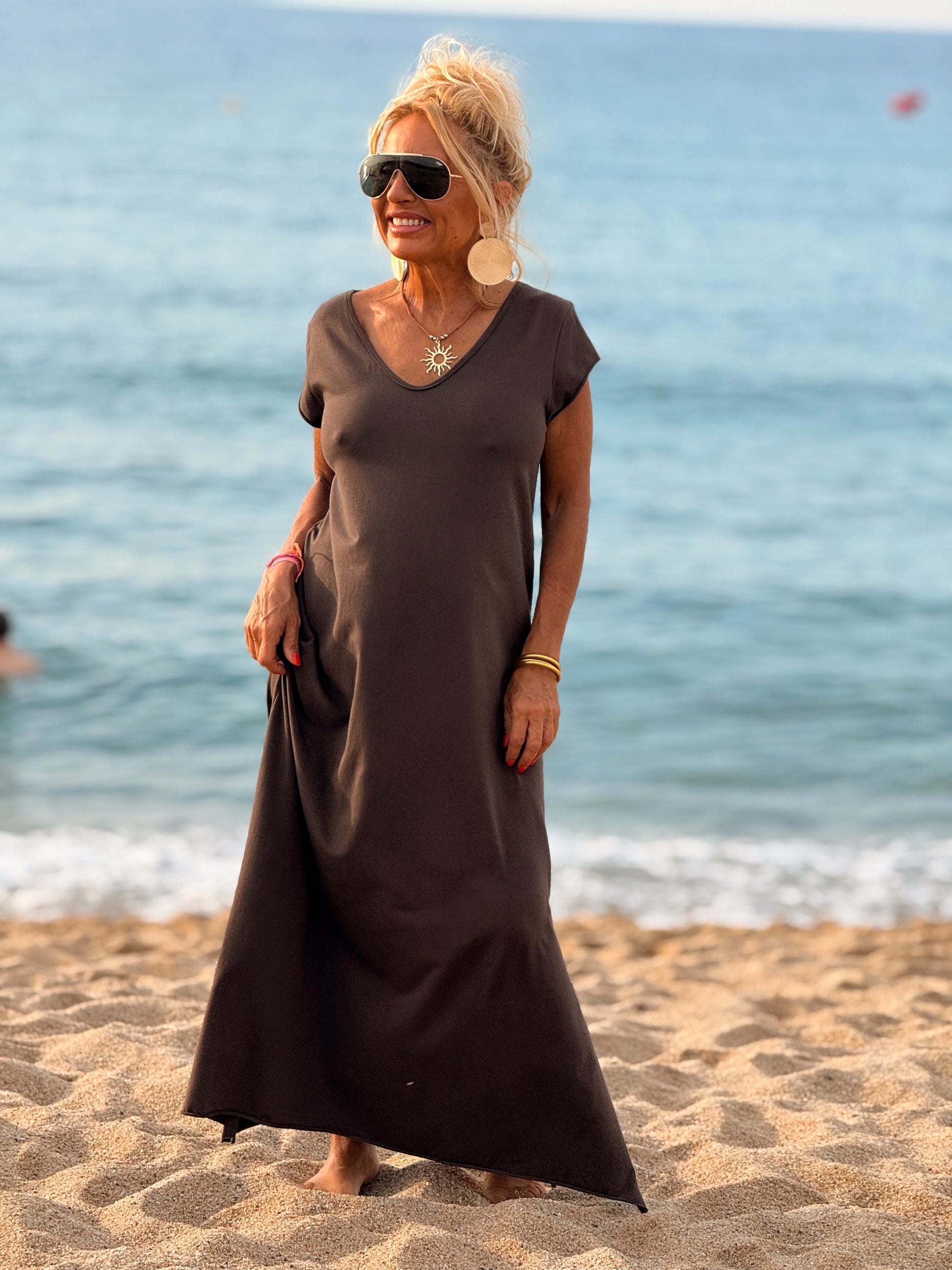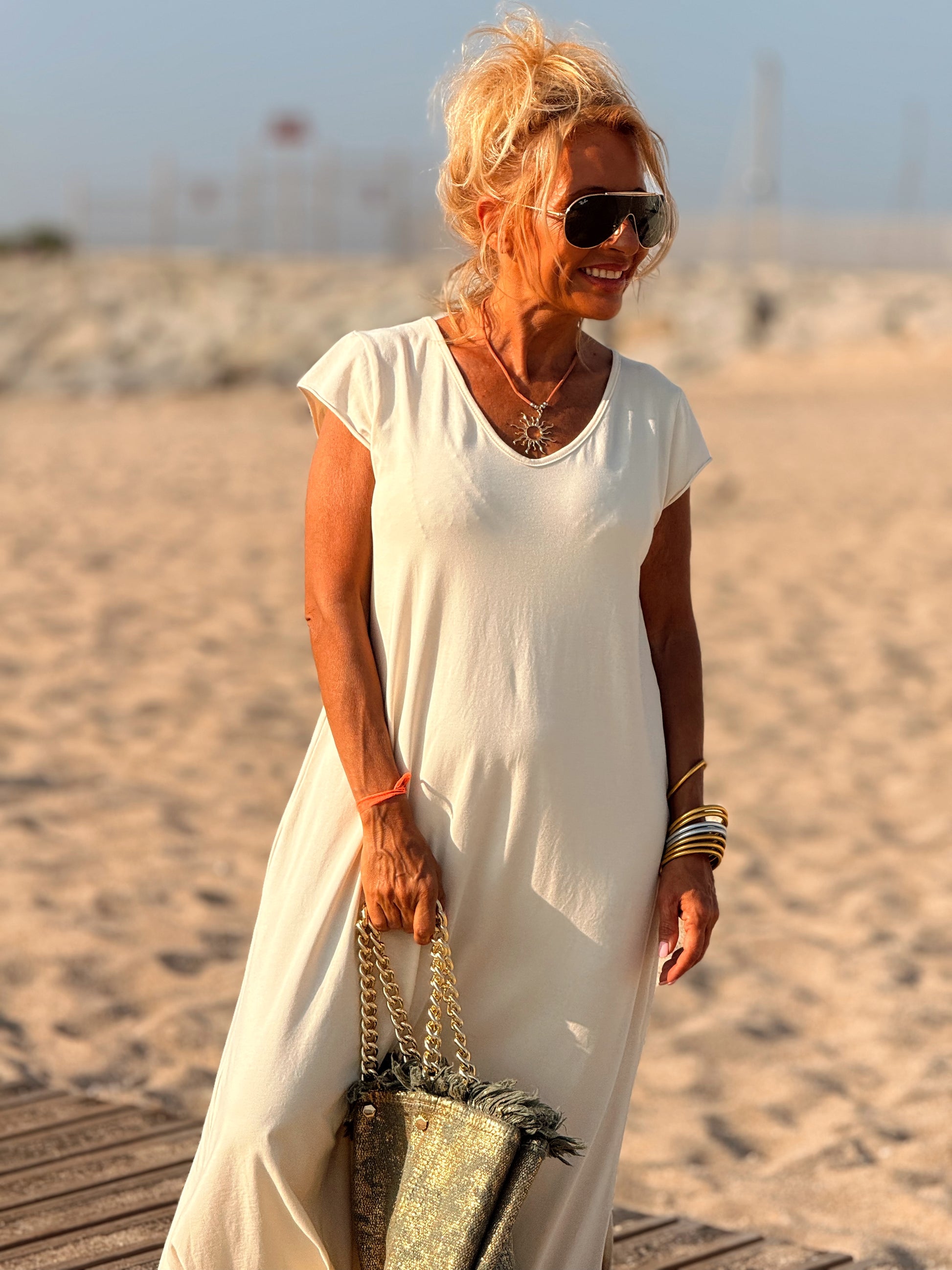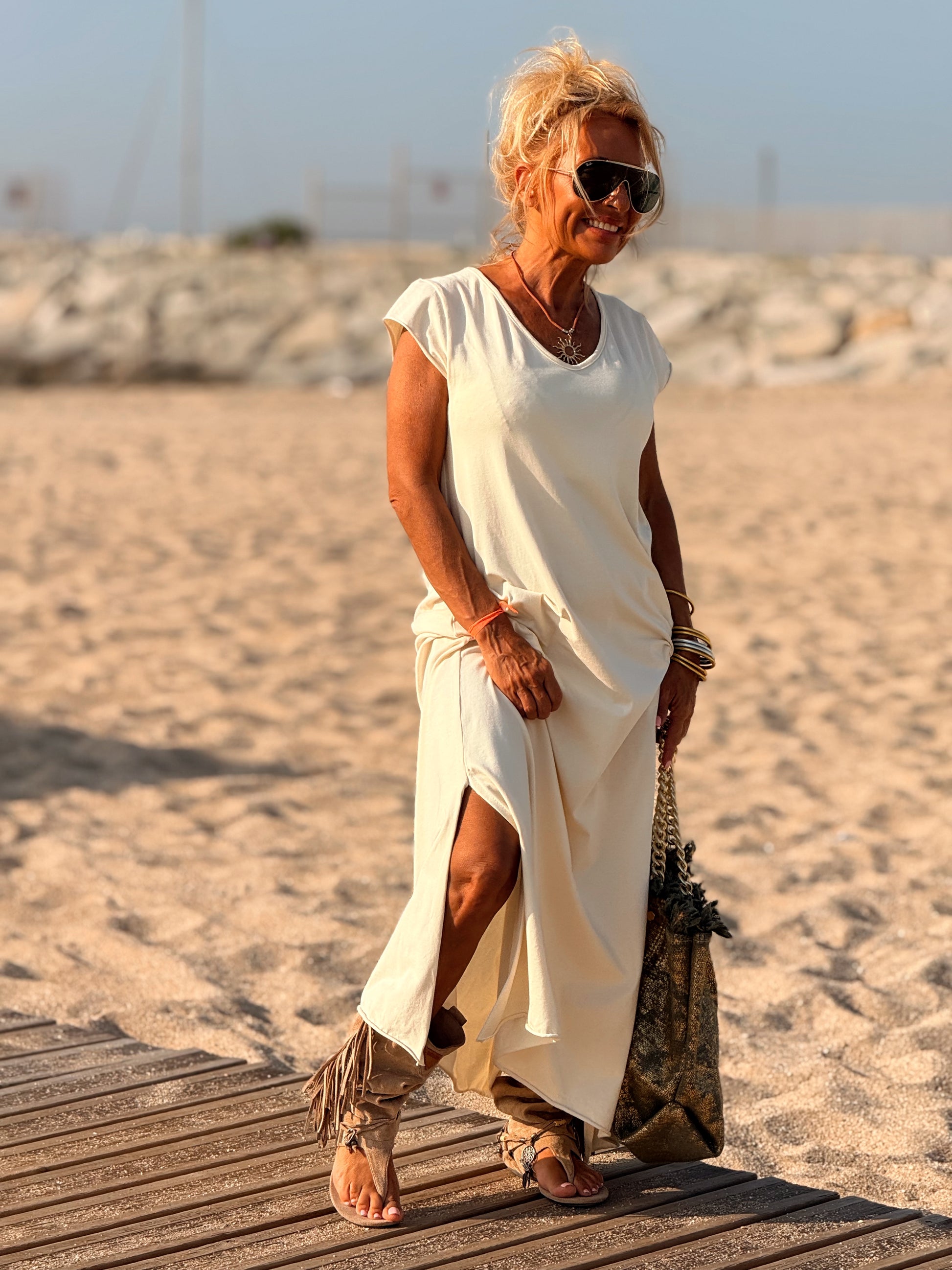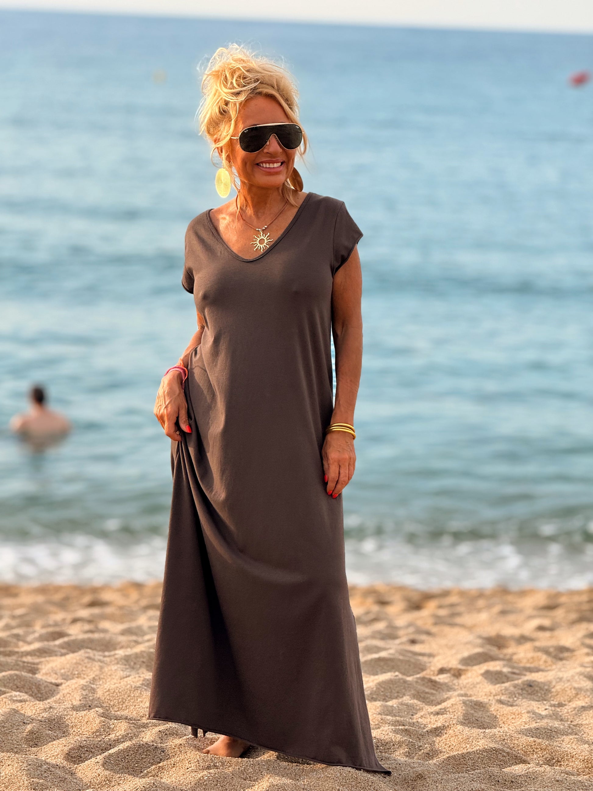 Esta preciosa robe de algodón, con mangas cortas y corte atemporal, es perfecta tanto para la ciudad como para la playa o una salida improvisada.