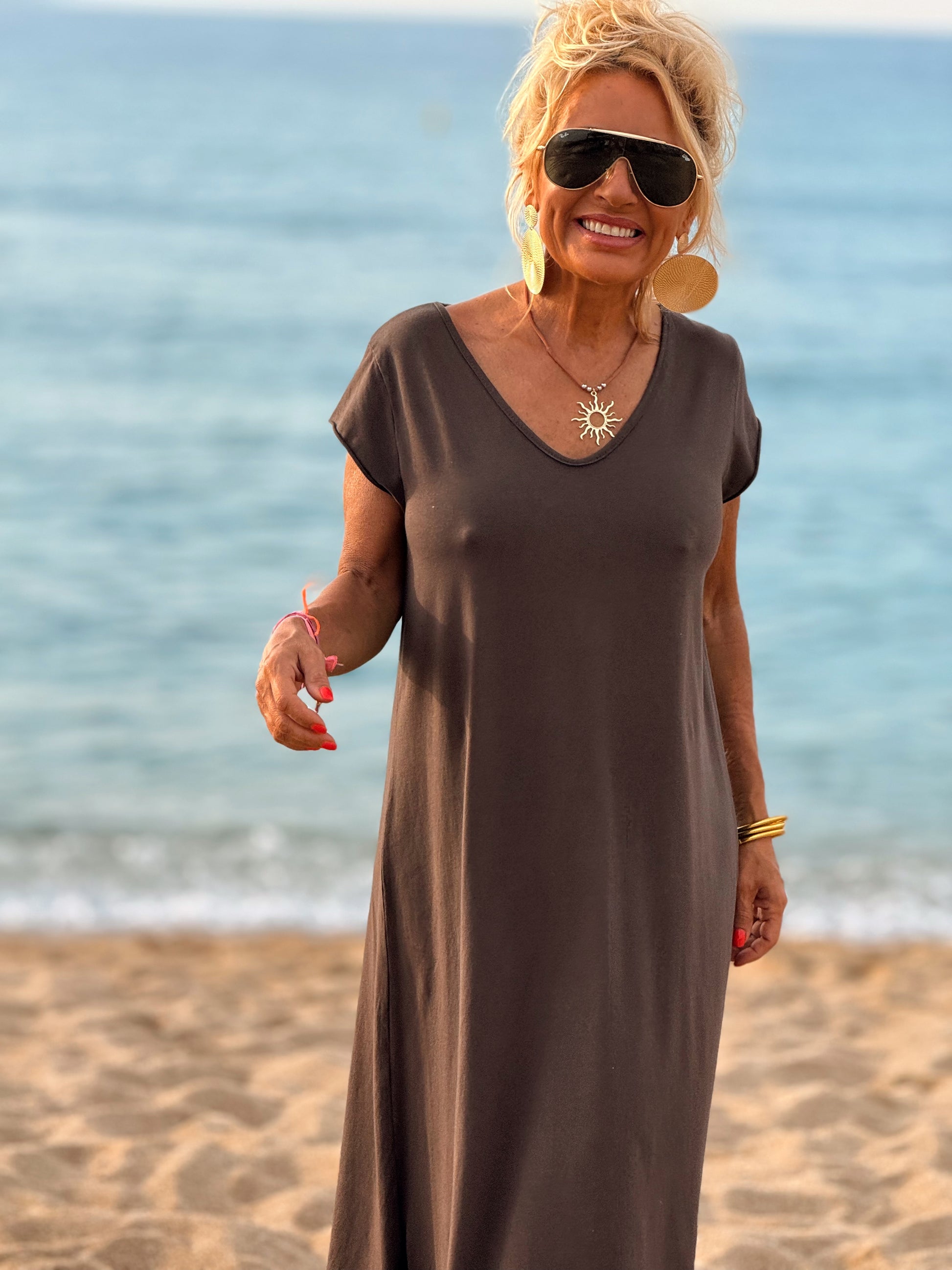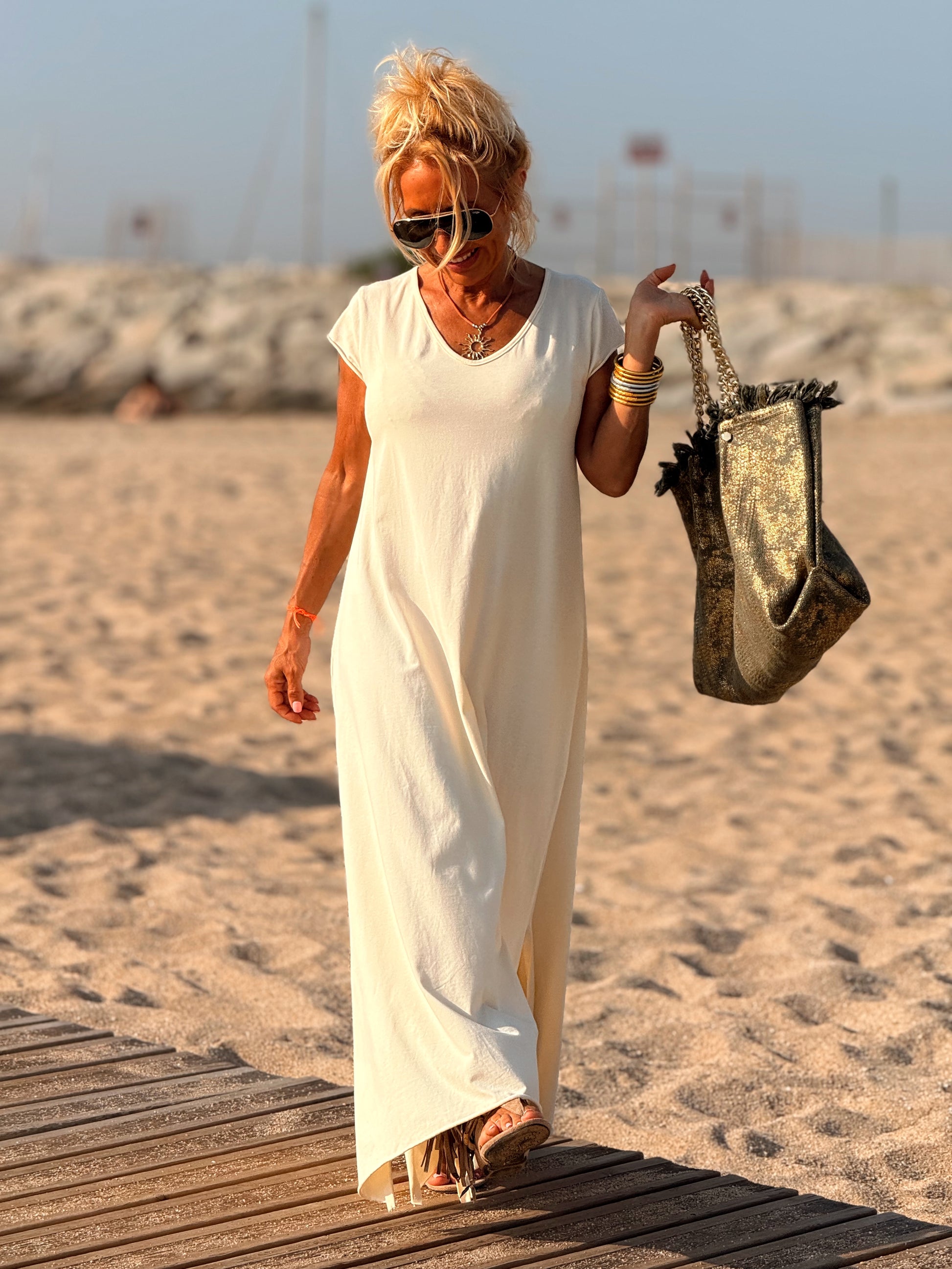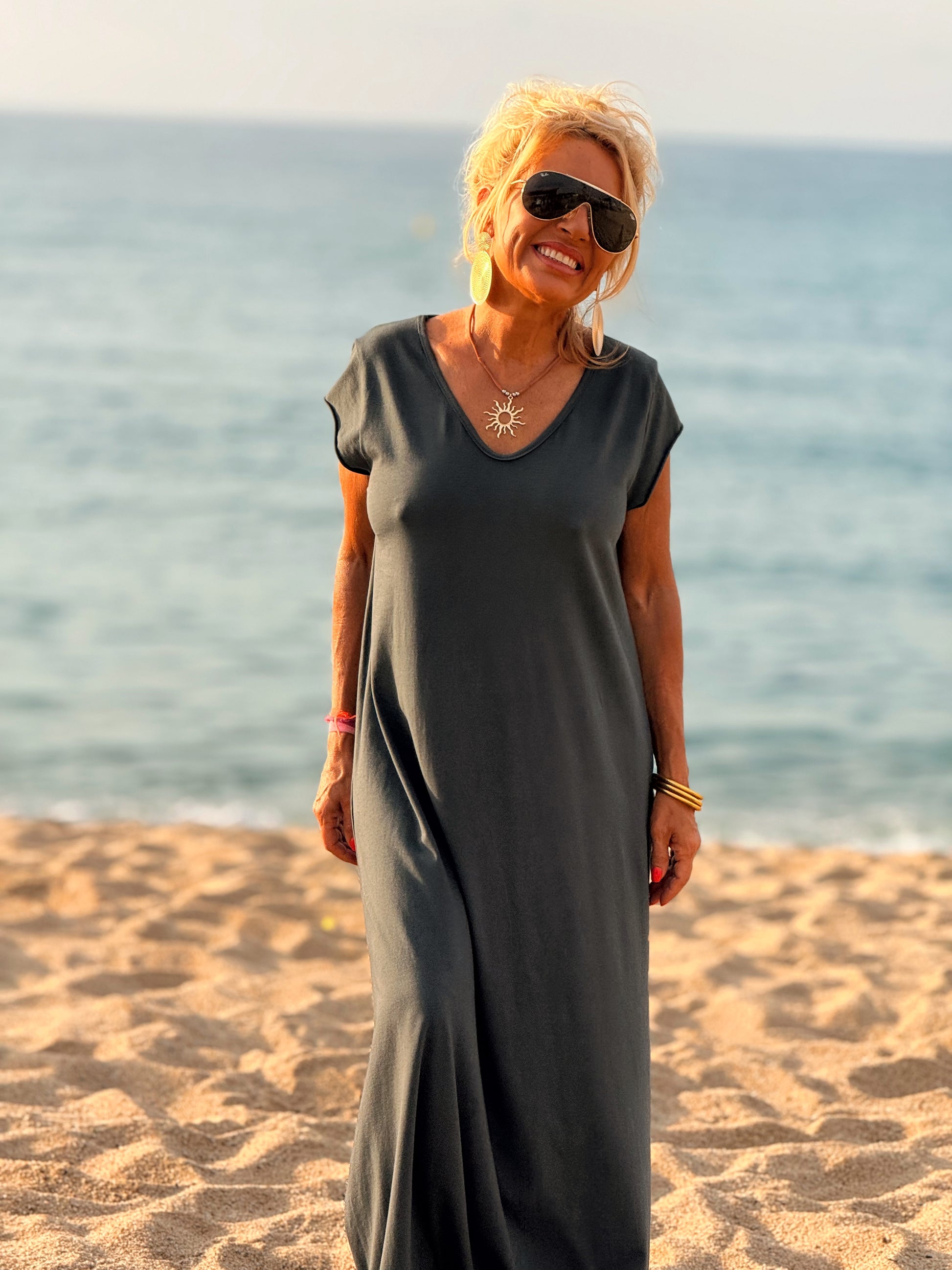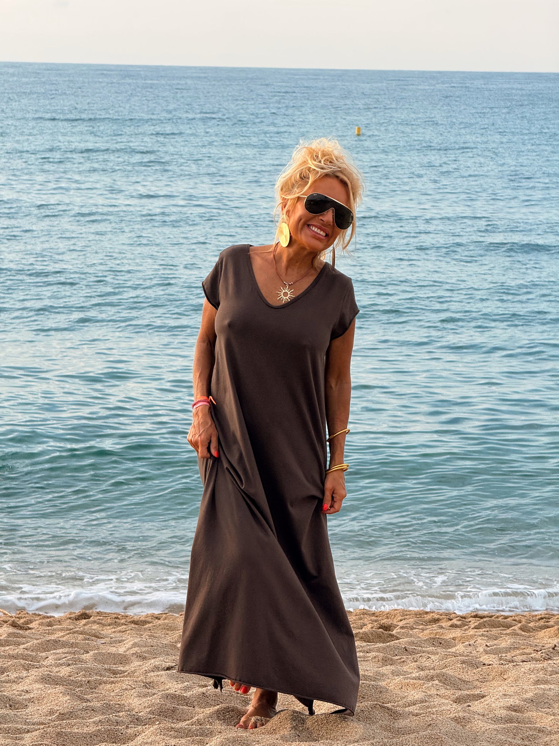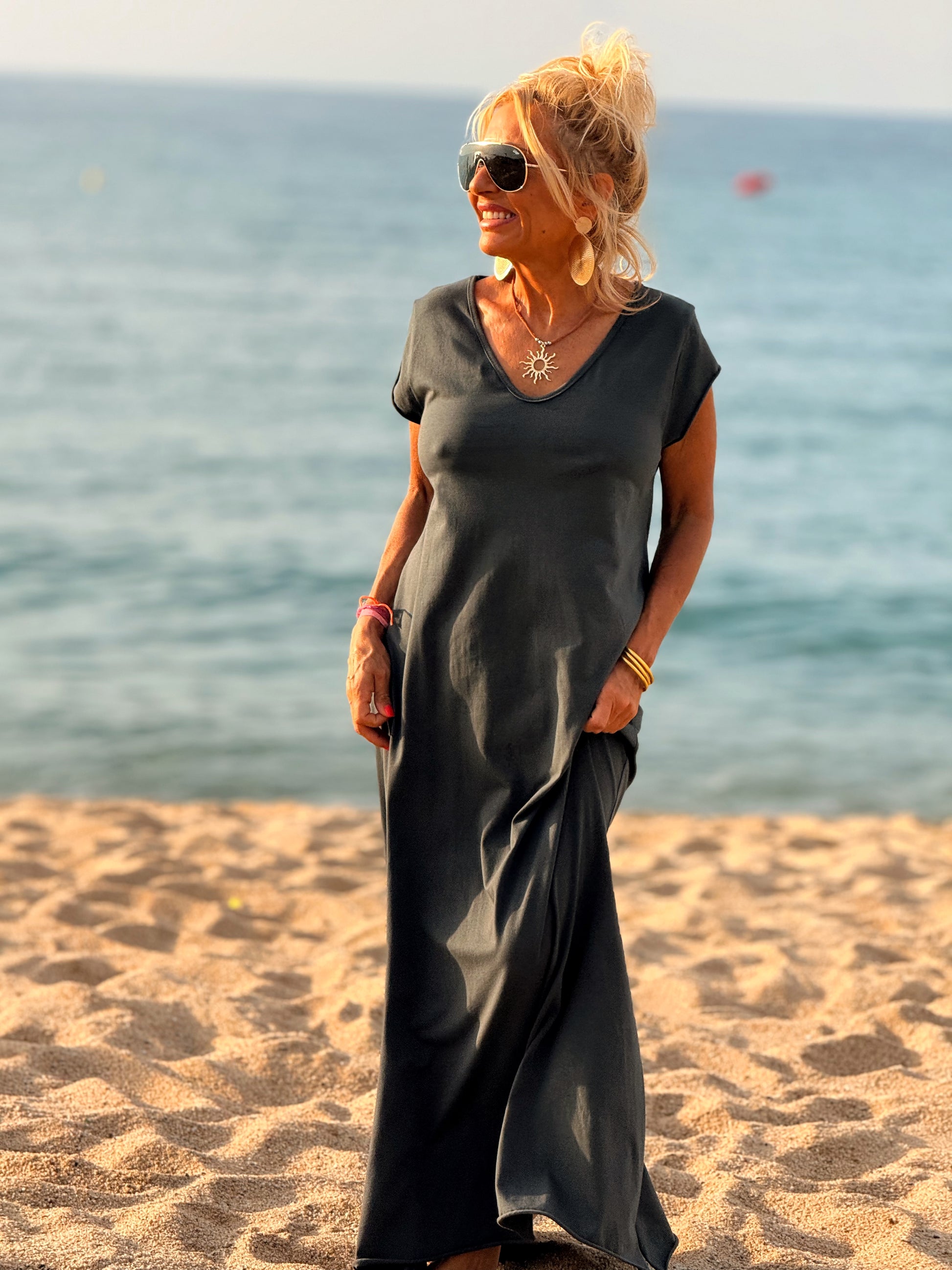 Esta preciosa robe de algodón, con mangas cortas y corte atemporal, es perfecta tanto para la ciudad como para la playa o una salida improvisada.
