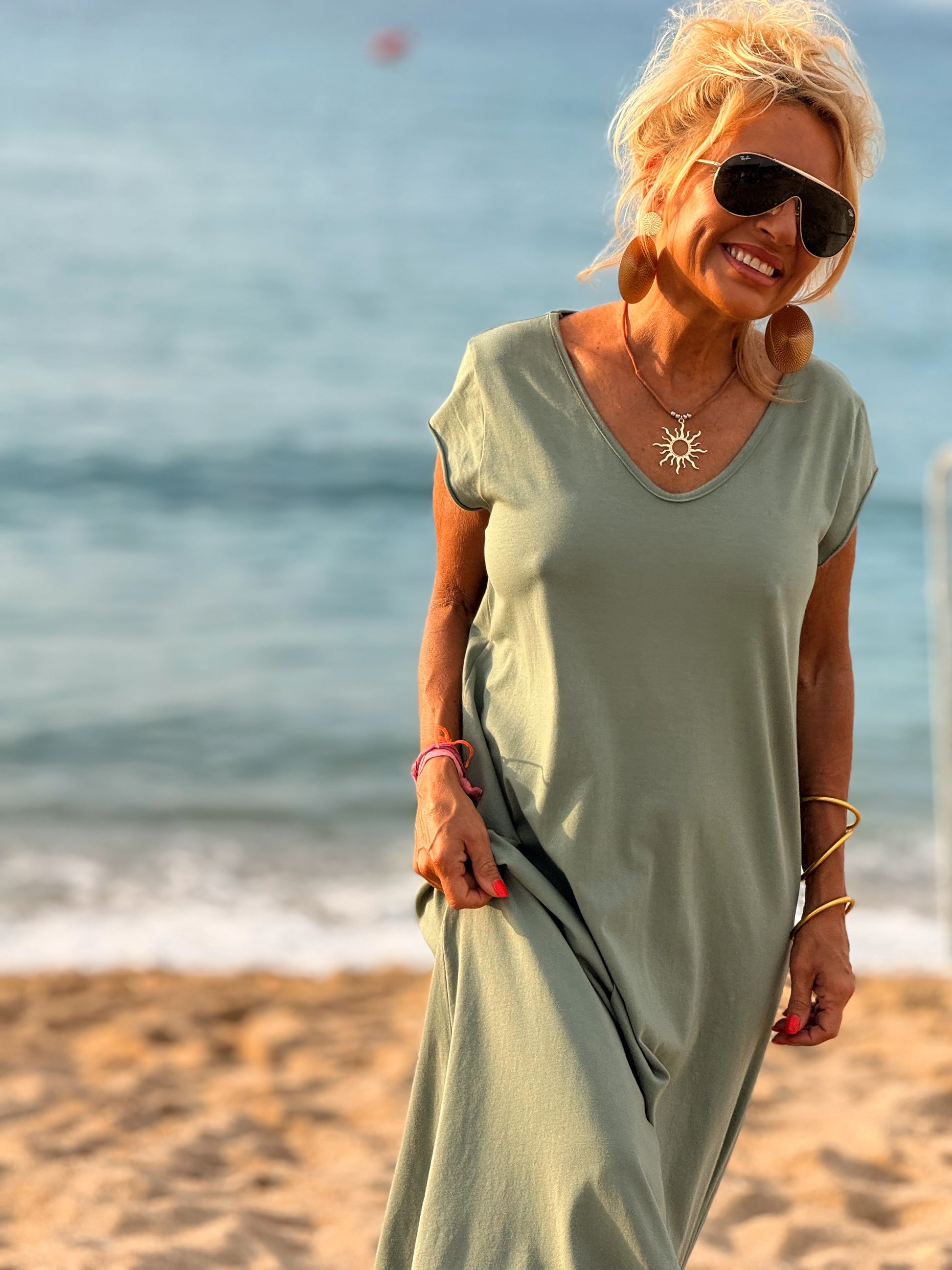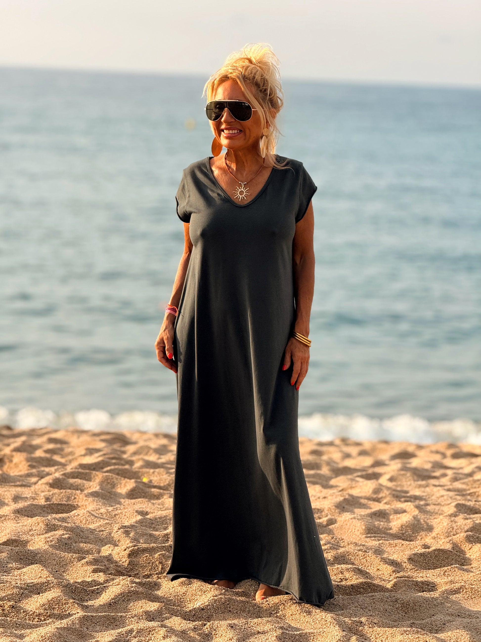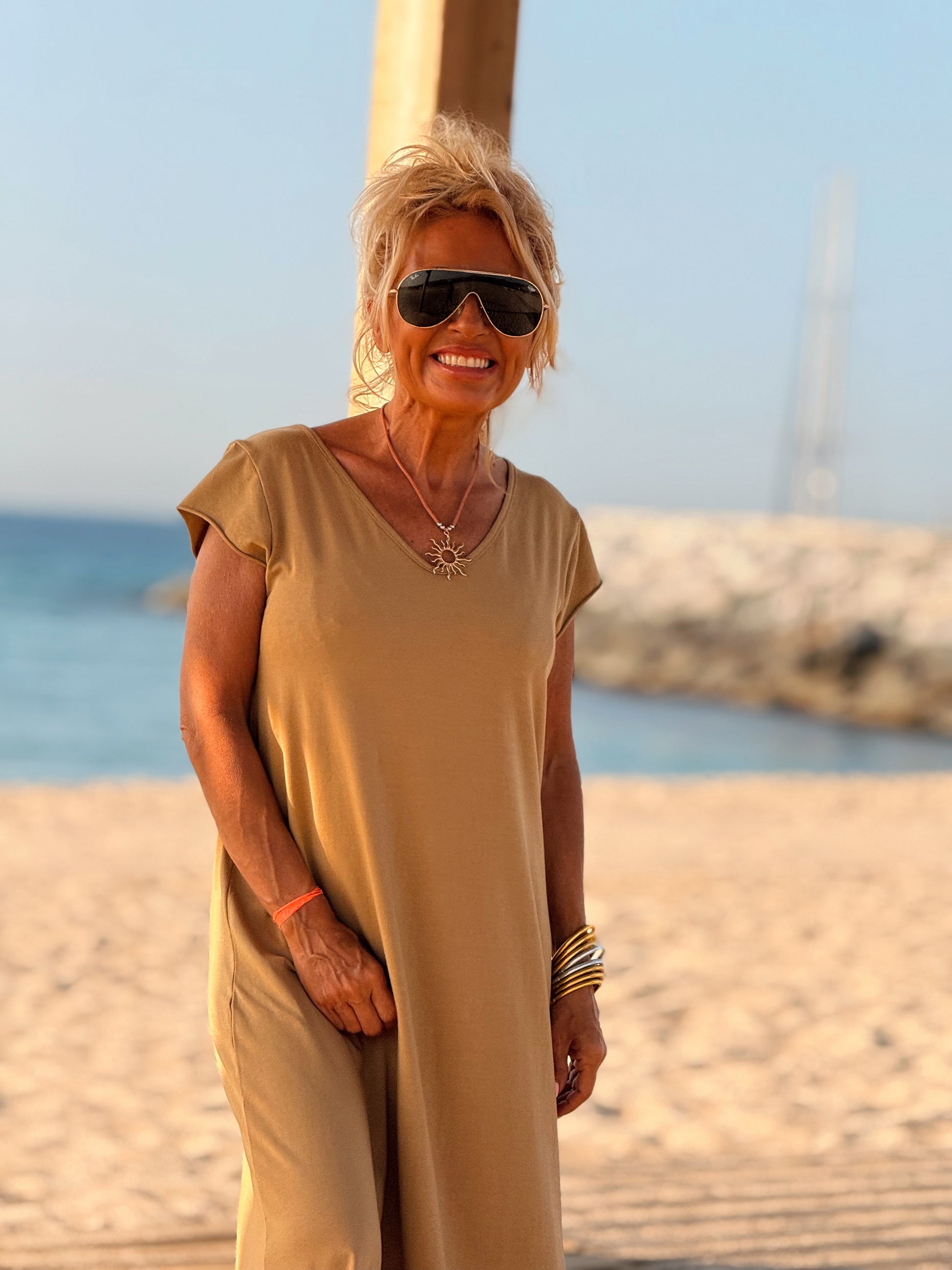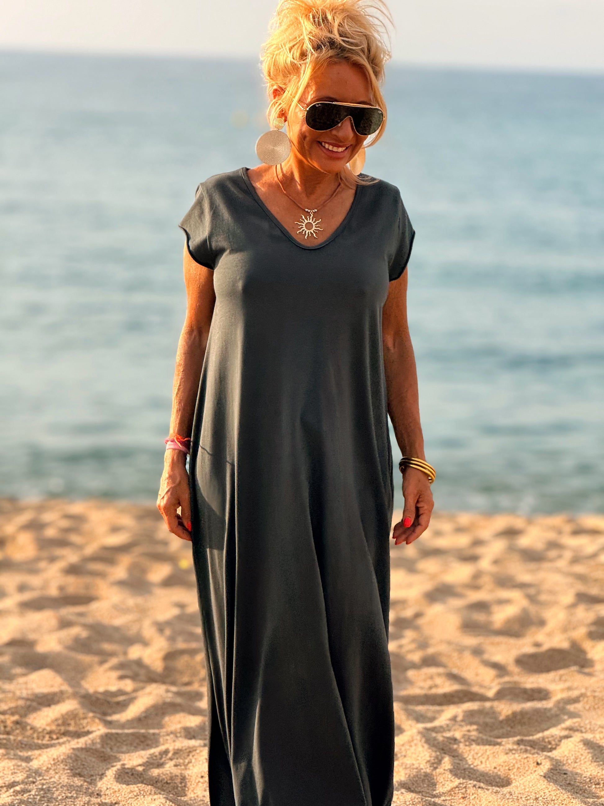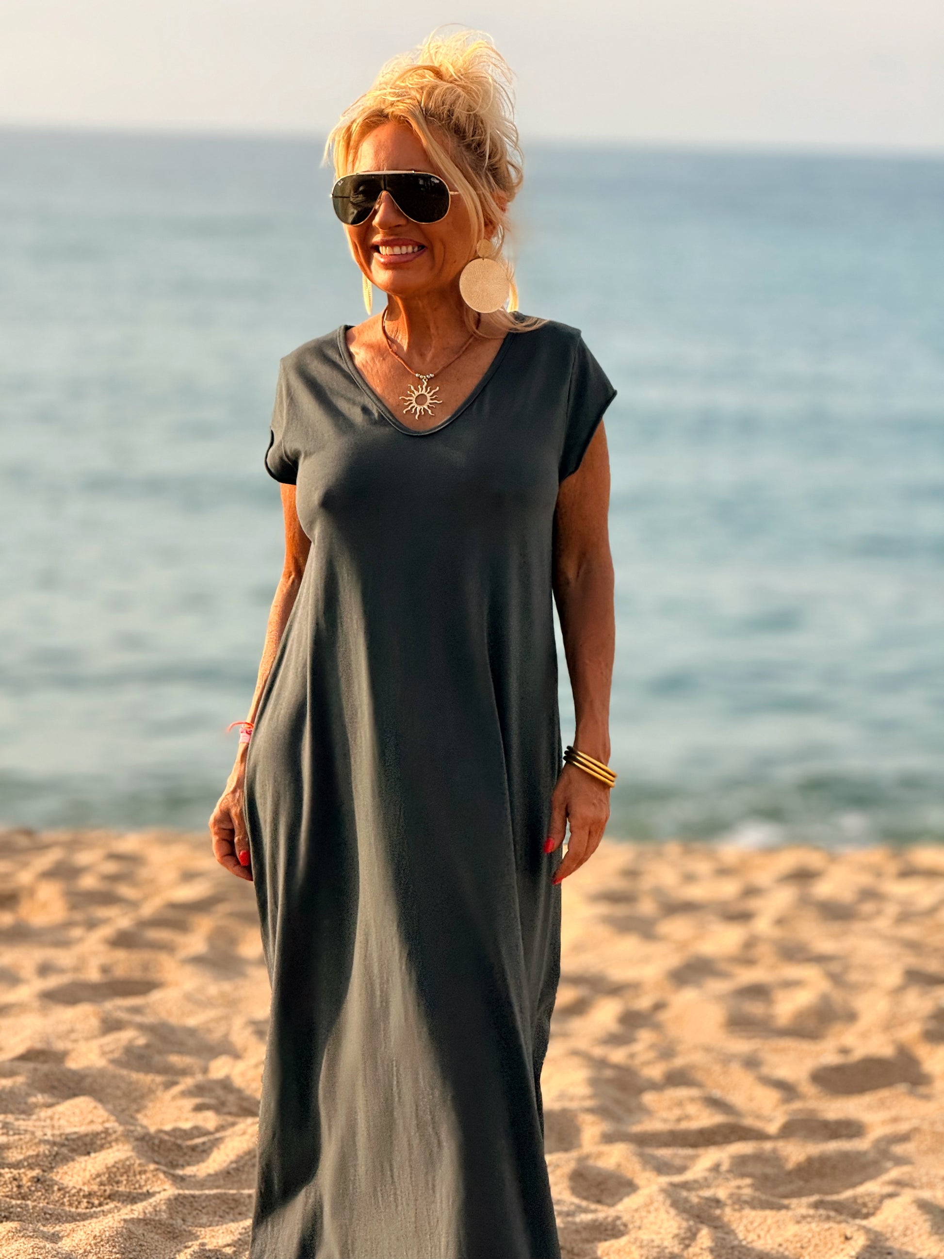 Esta preciosa robe de algodón, con mangas cortas y corte atemporal, es perfecta tanto para la ciudad como para la playa o una salida improvisada.