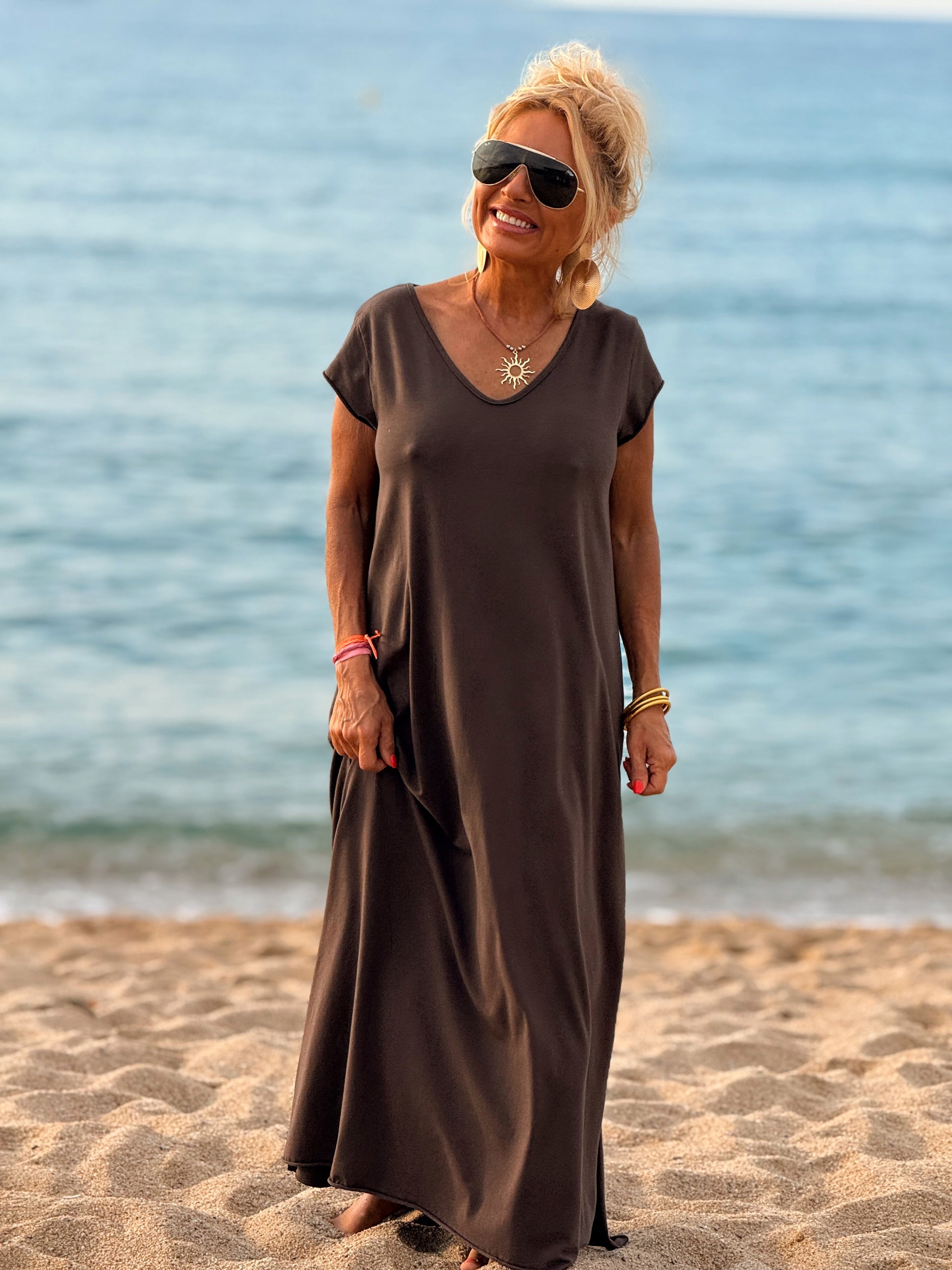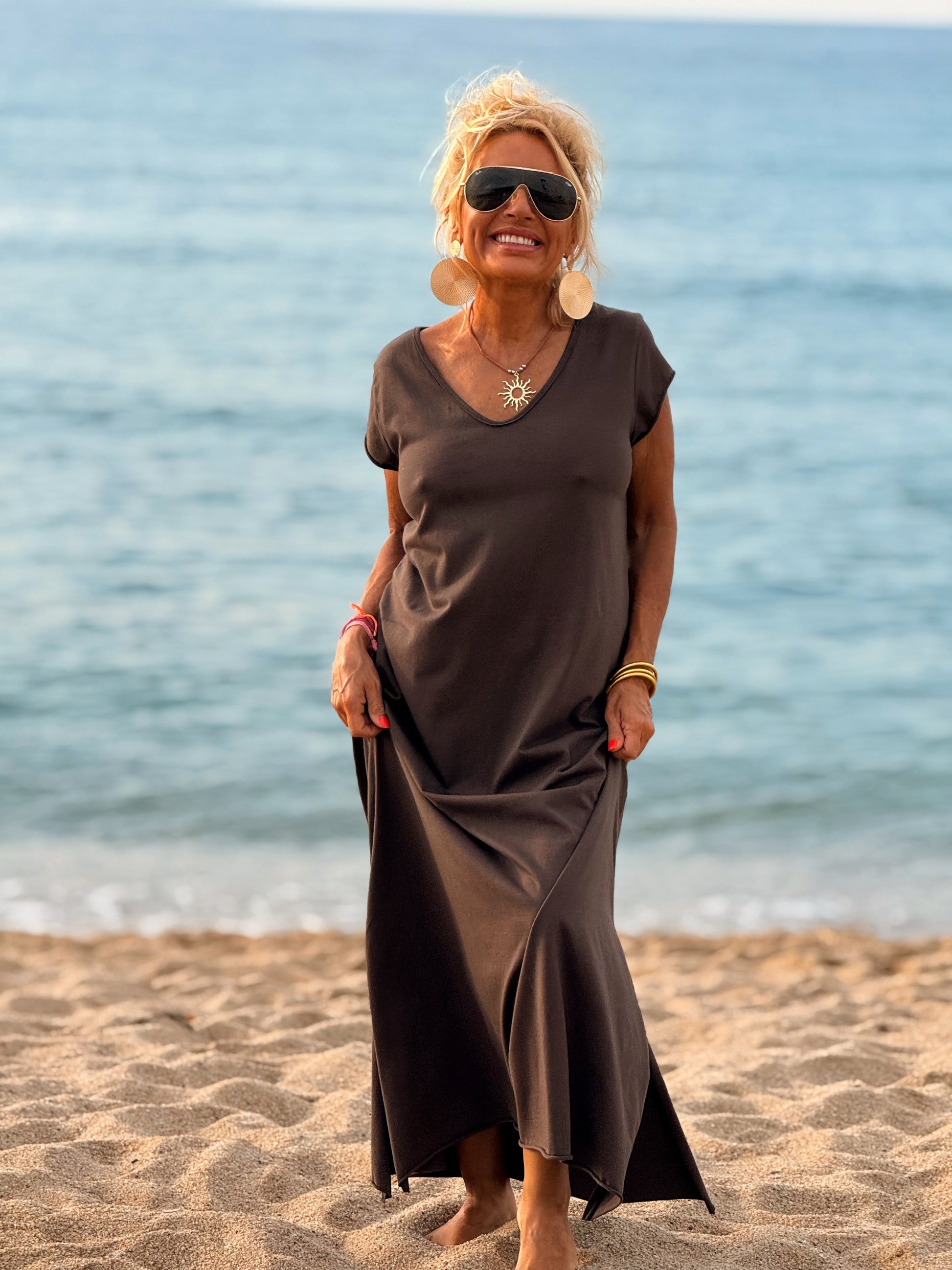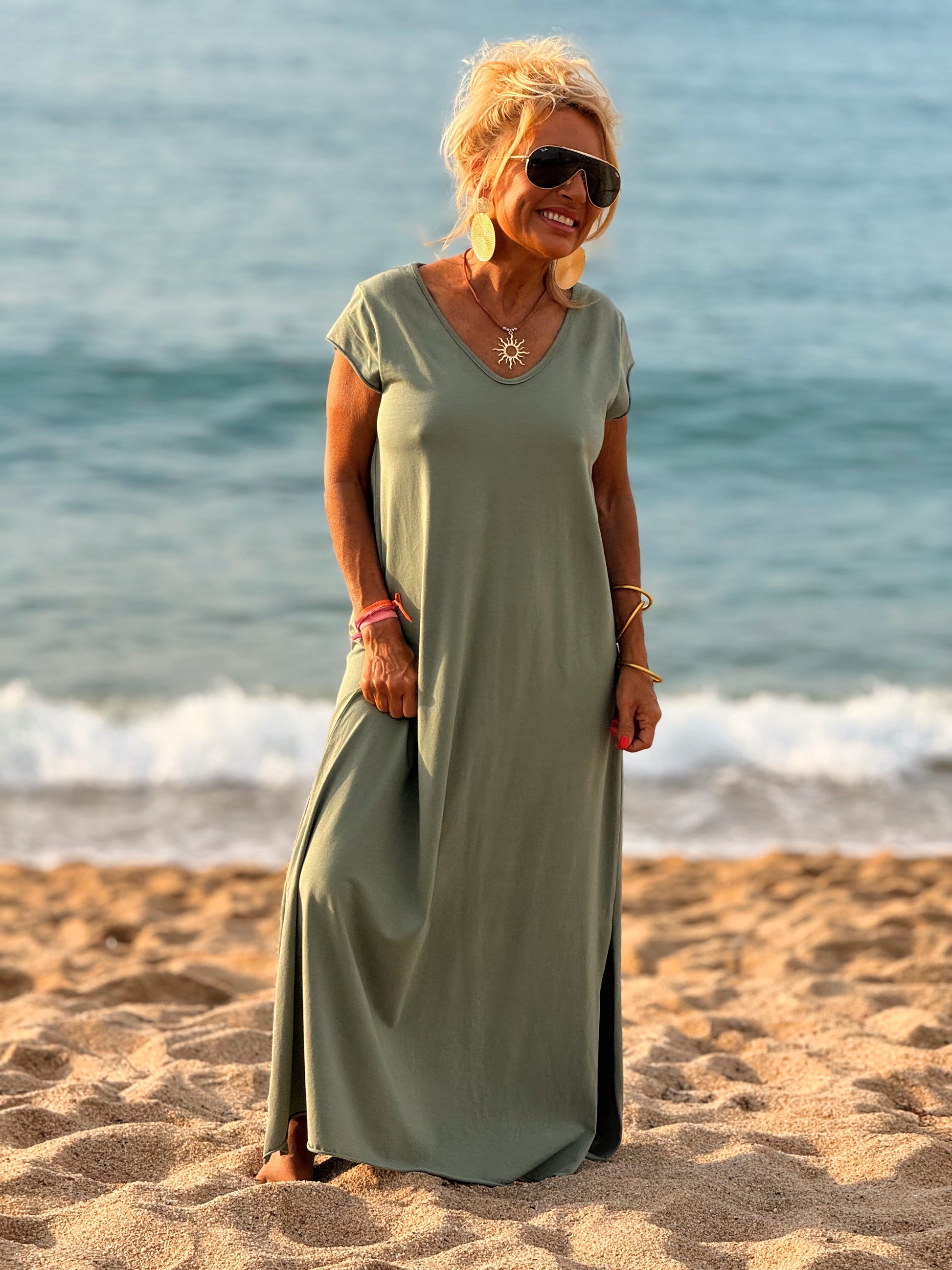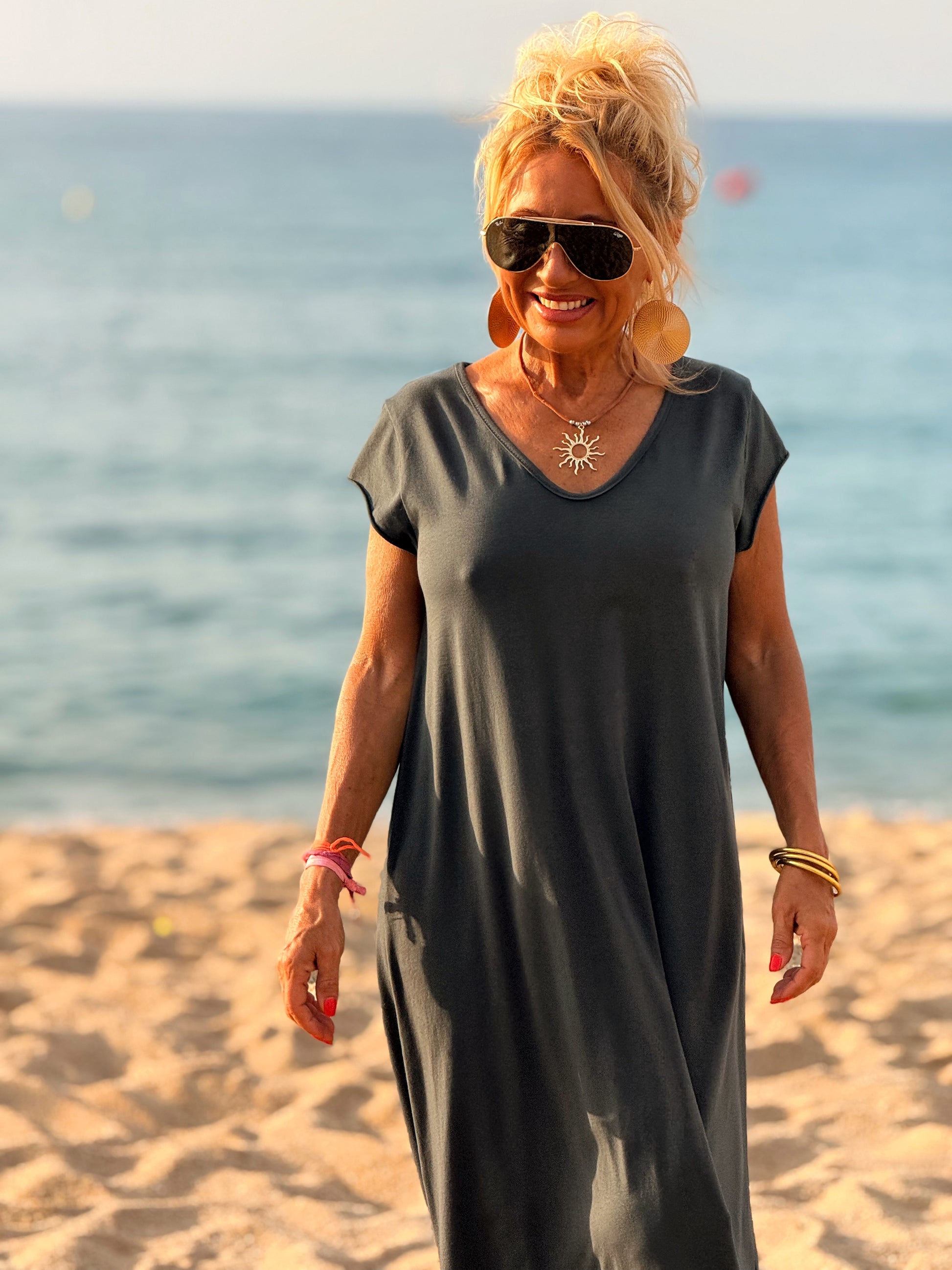 Esta preciosa robe de algodón, con mangas cortas y corte atemporal, es perfecta tanto para la ciudad como para la playa o una salida improvisada.