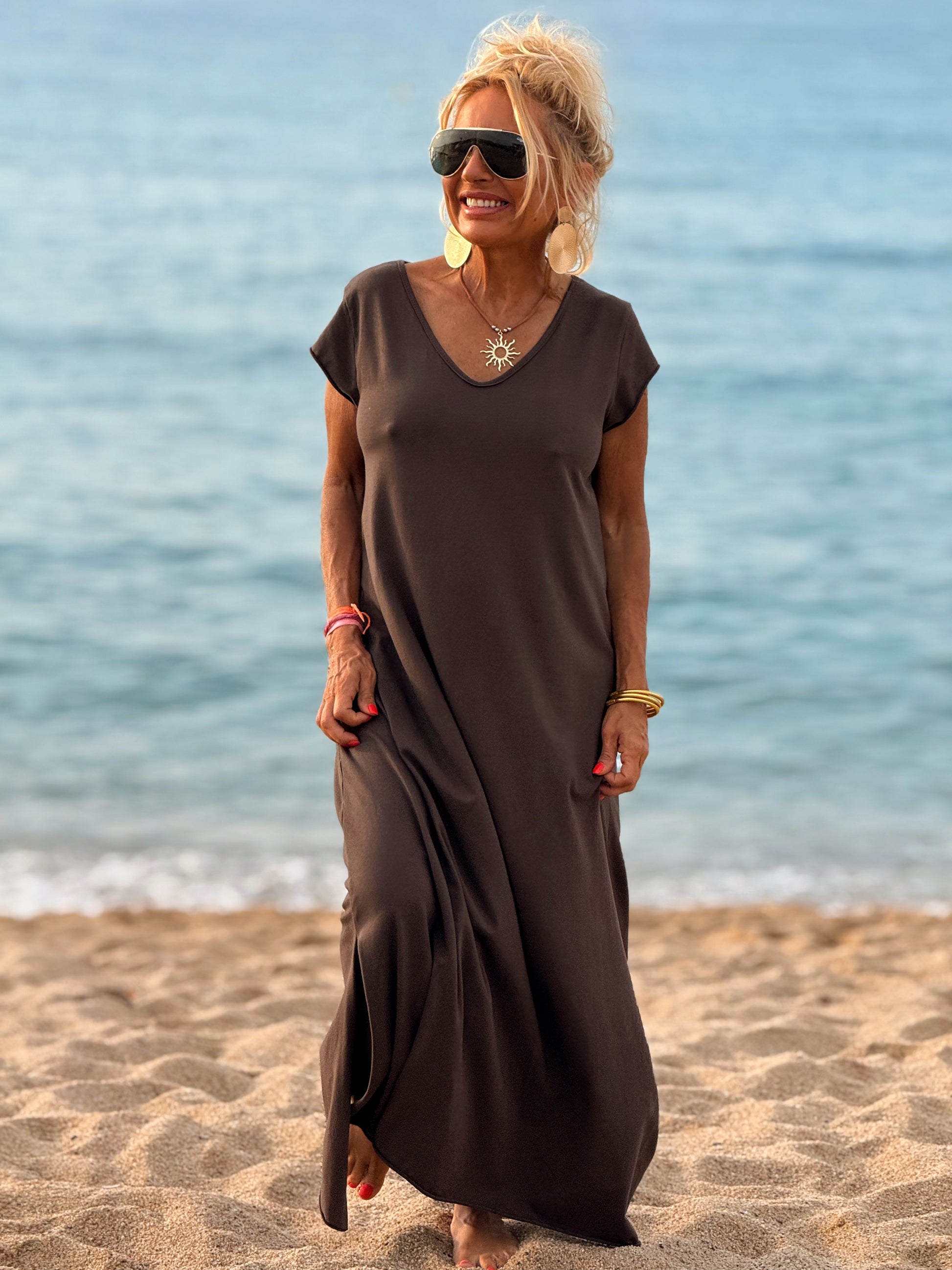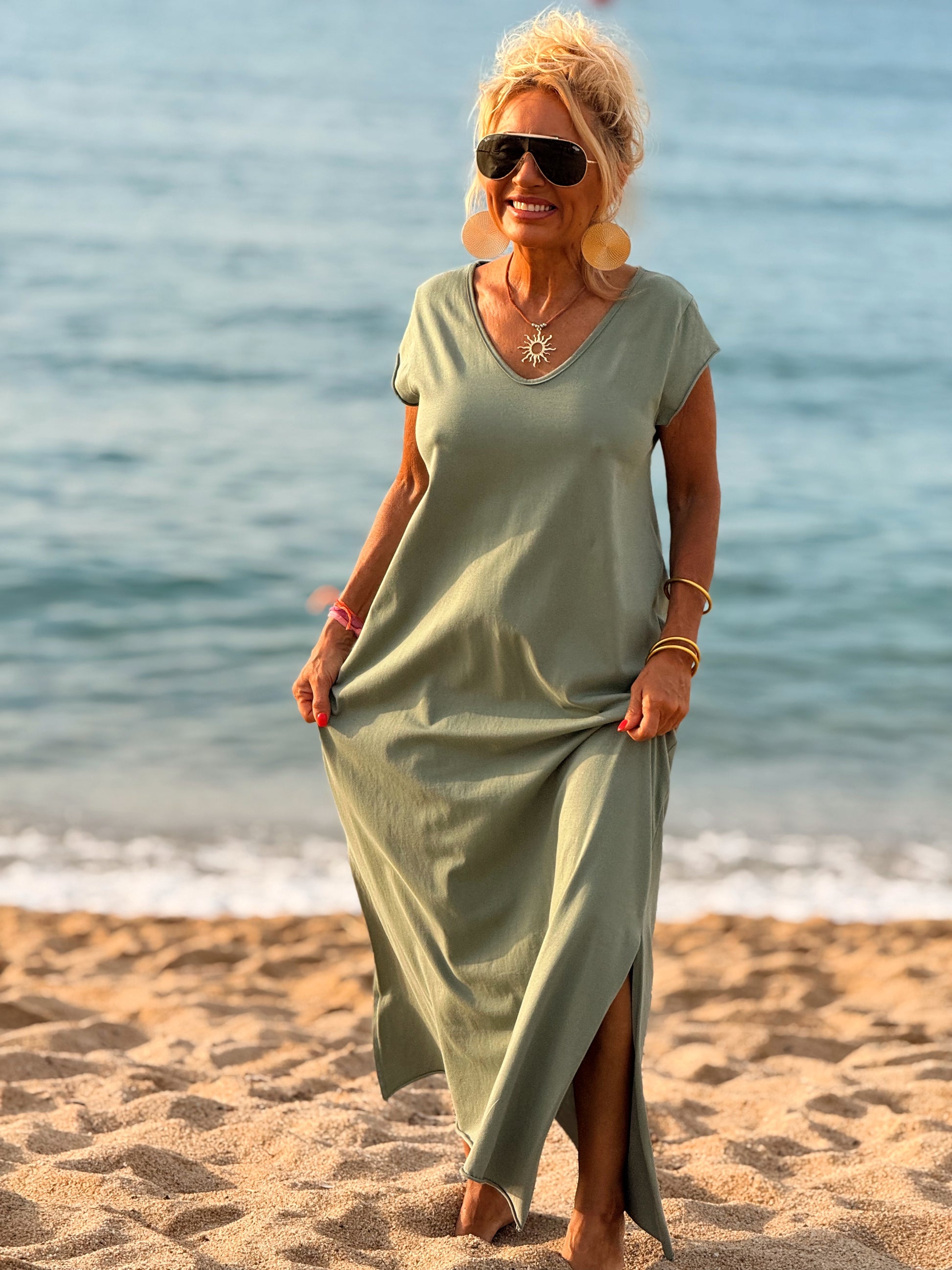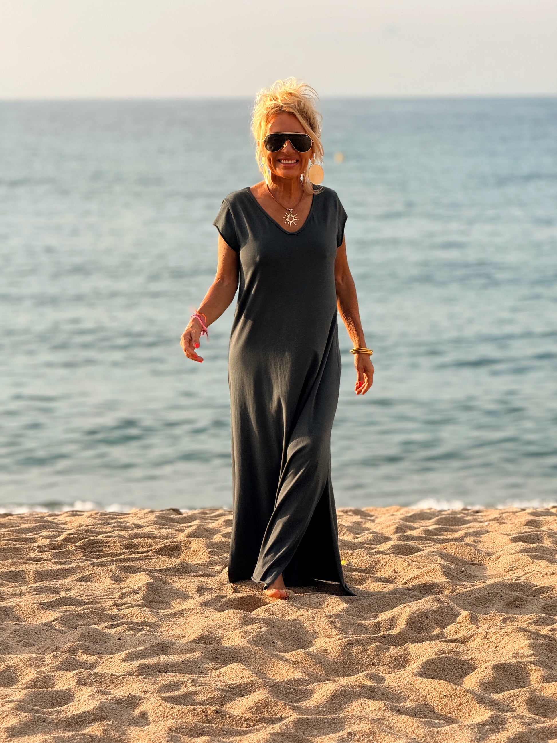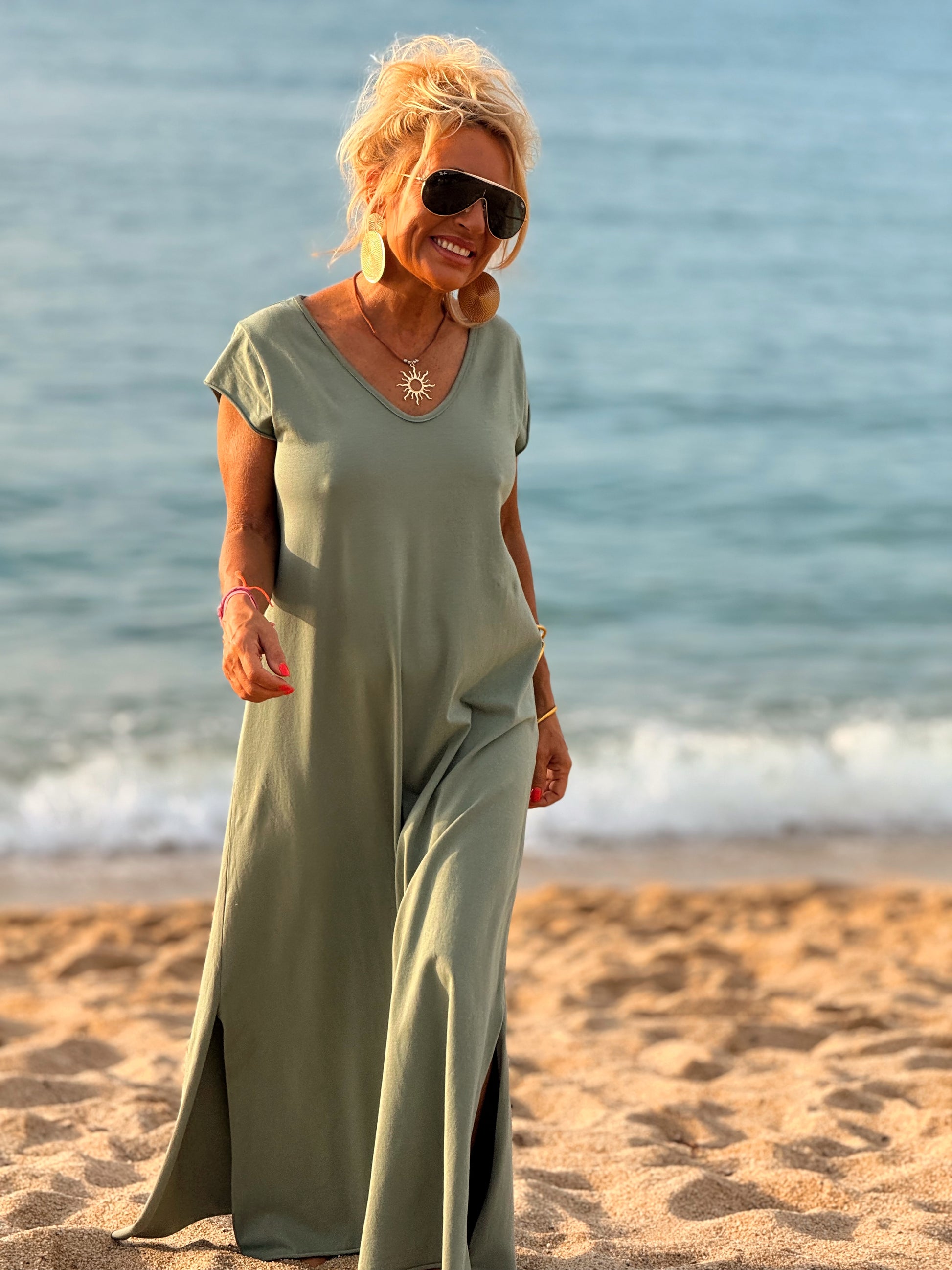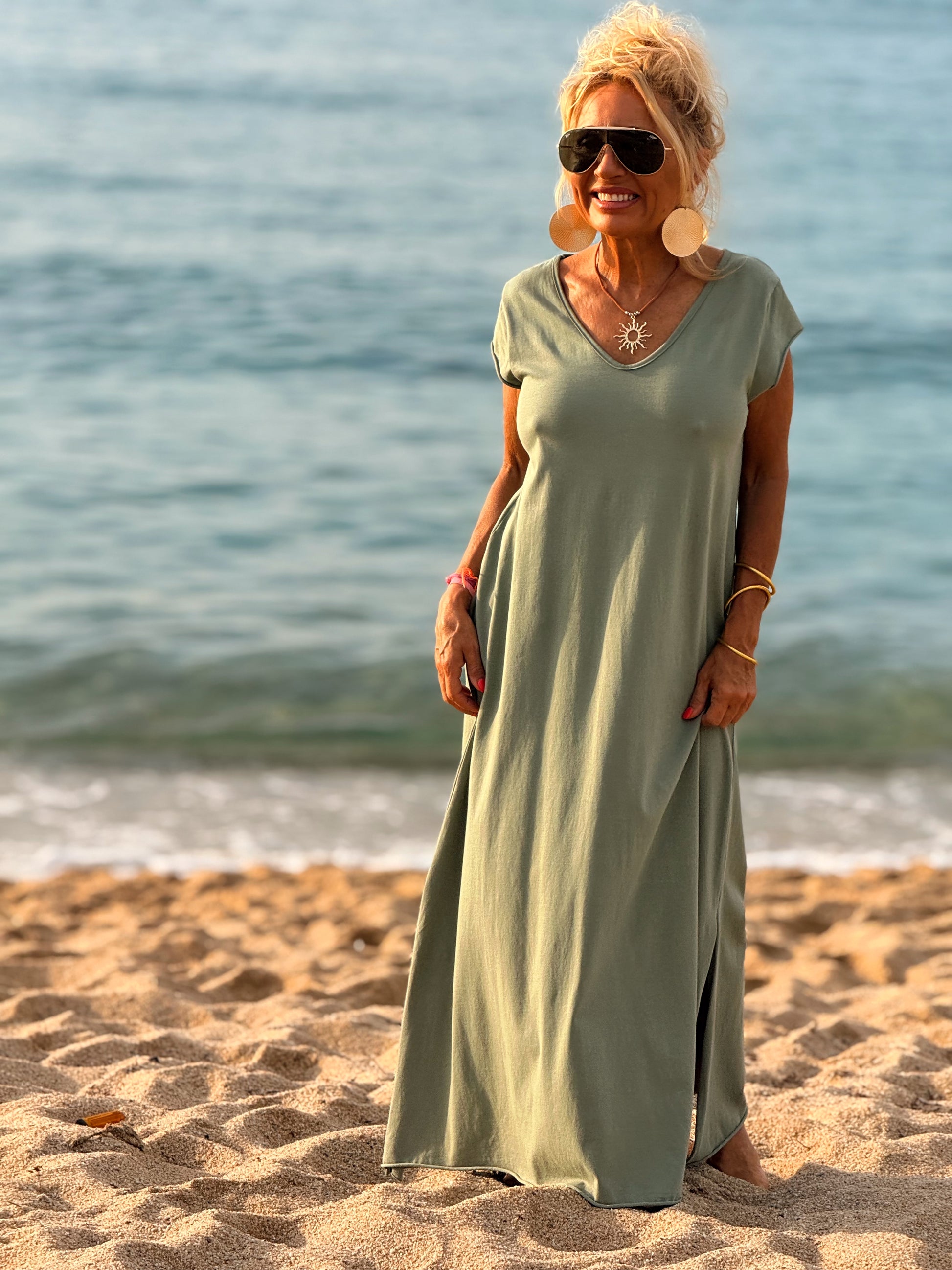Esta preciosa robe de algodón, con mangas cortas y corte atemporal, es perfecta tanto para la ciudad como para la playa o una salida improvisada.