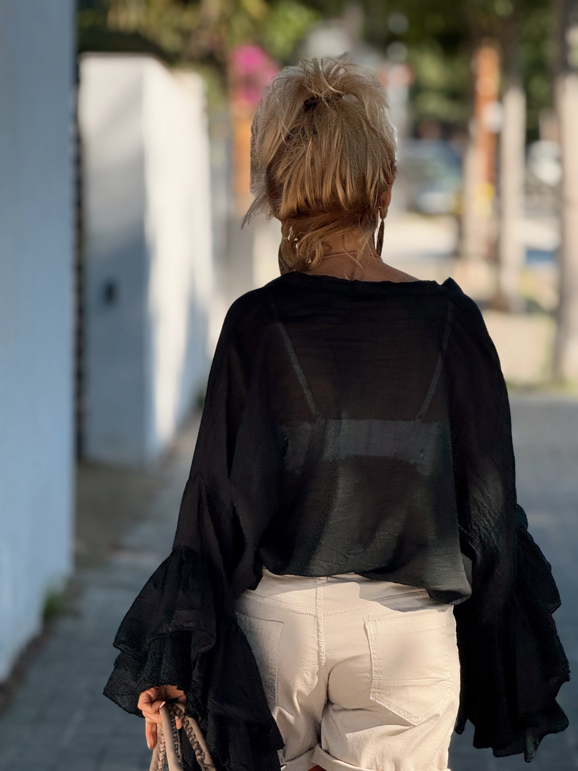 BLUSA BOHEMIAN MANGA VOLANTES NEGRO