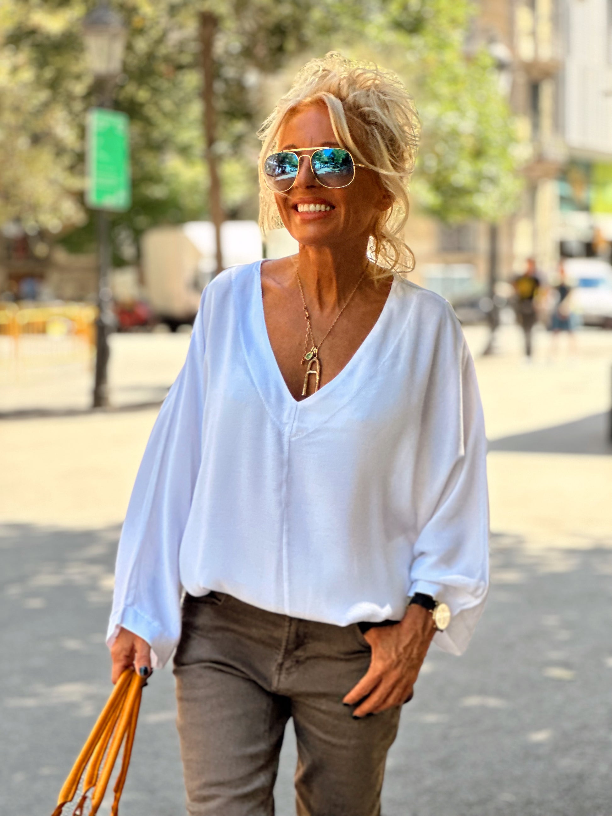 Blusa espectacular 100% viscosa, simplemente preciosa y con un estilo oversize. Perfecta para llevar al trabajo con un look elegante o combinarla con unos vaqueros el fin de semana. Es una prenda imprescindible que no puede faltar en tu armario.✨