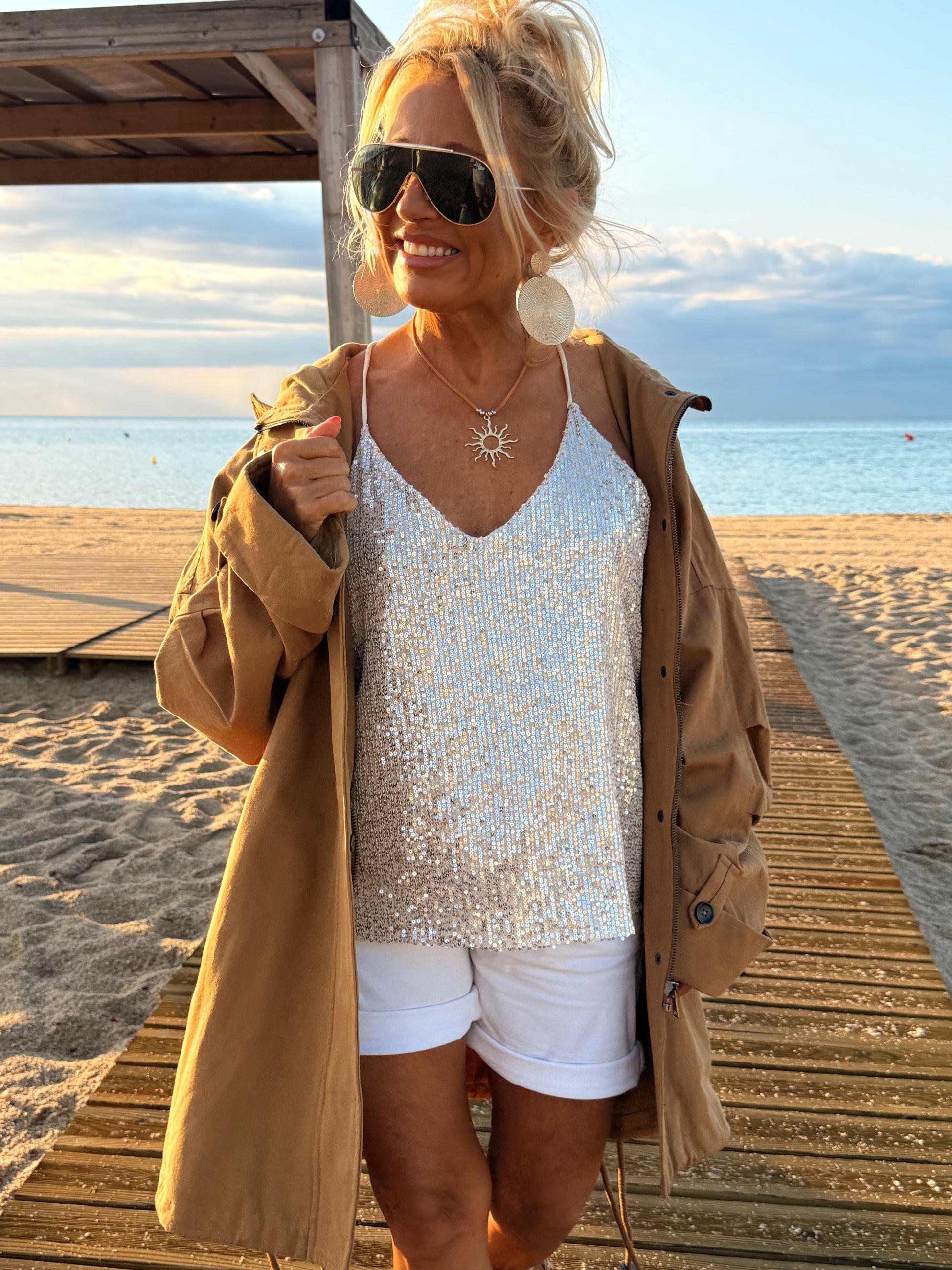 Se adapta sin problema hasta la talla 44 tiene un corte perfecto y combina con cualquier outfit.