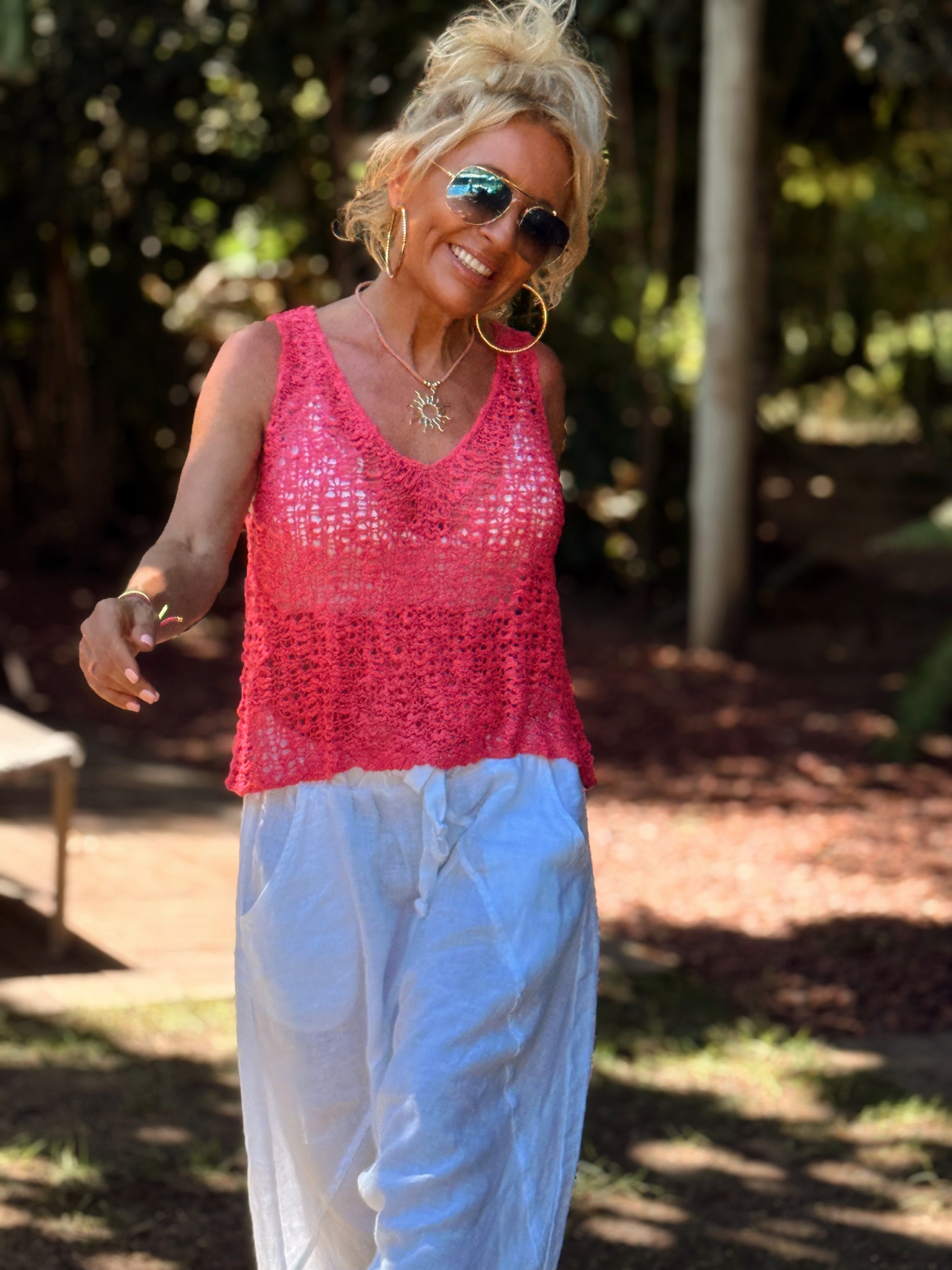 TOP AGUJEROS LUISA FUCSIA