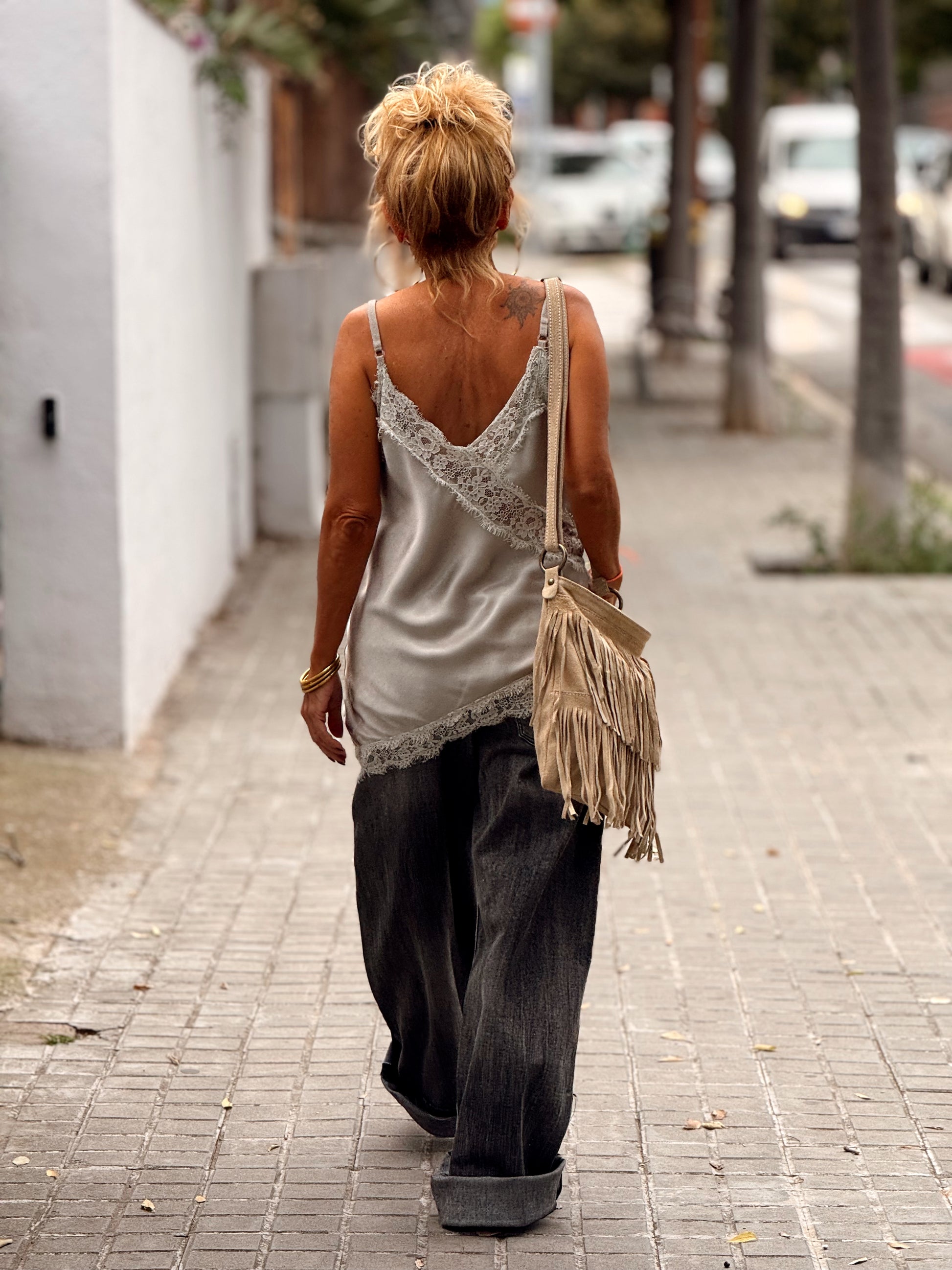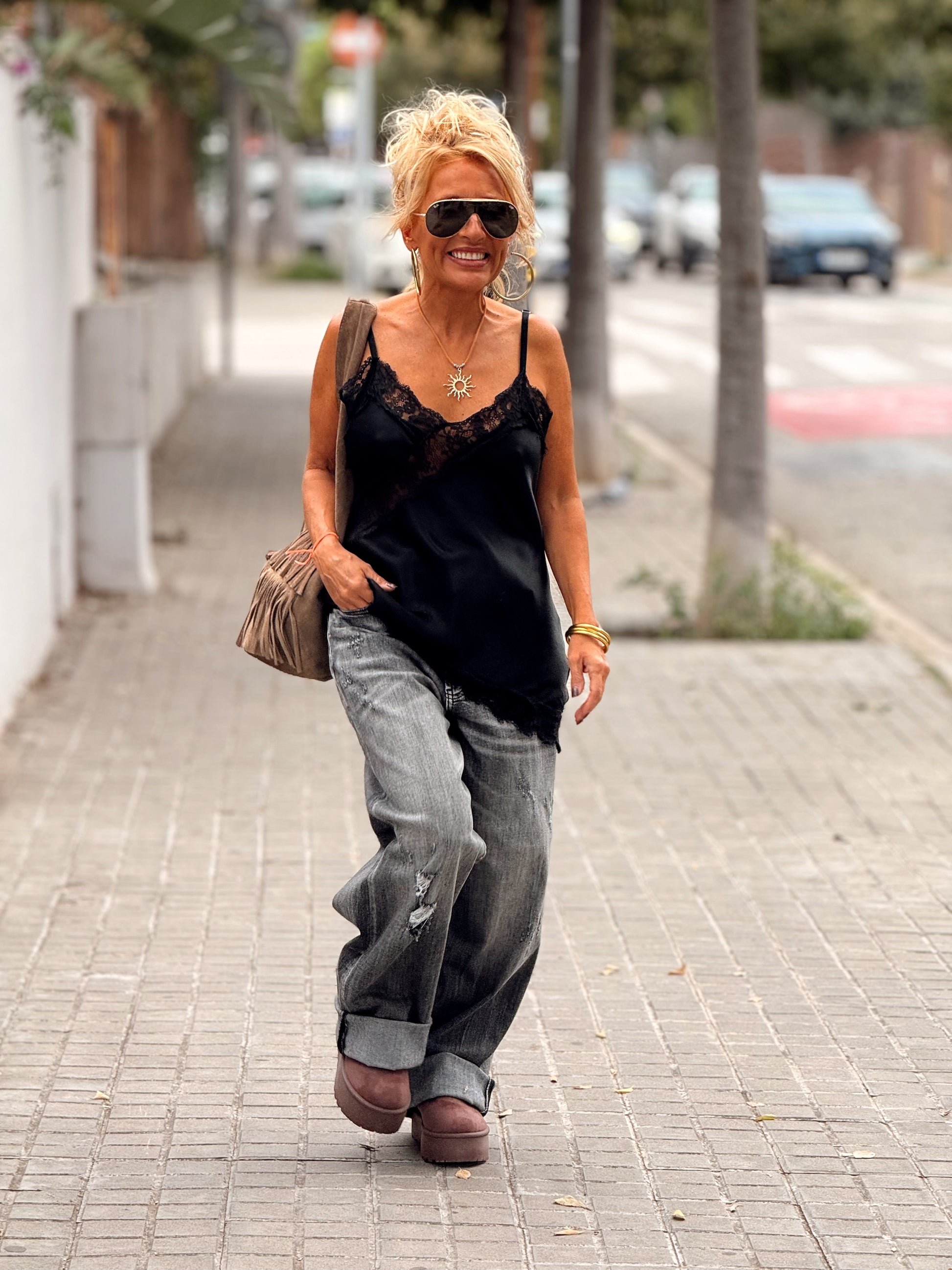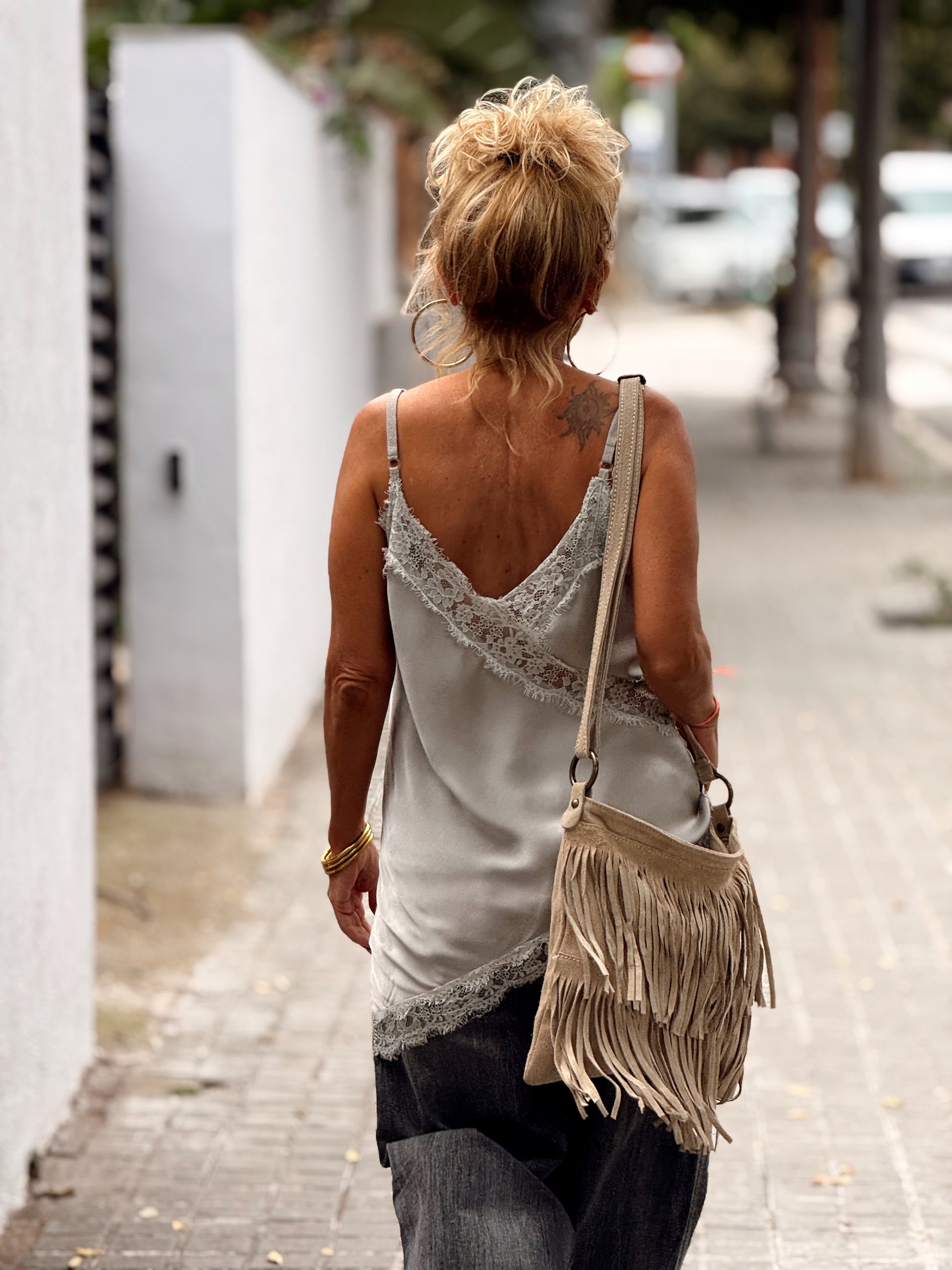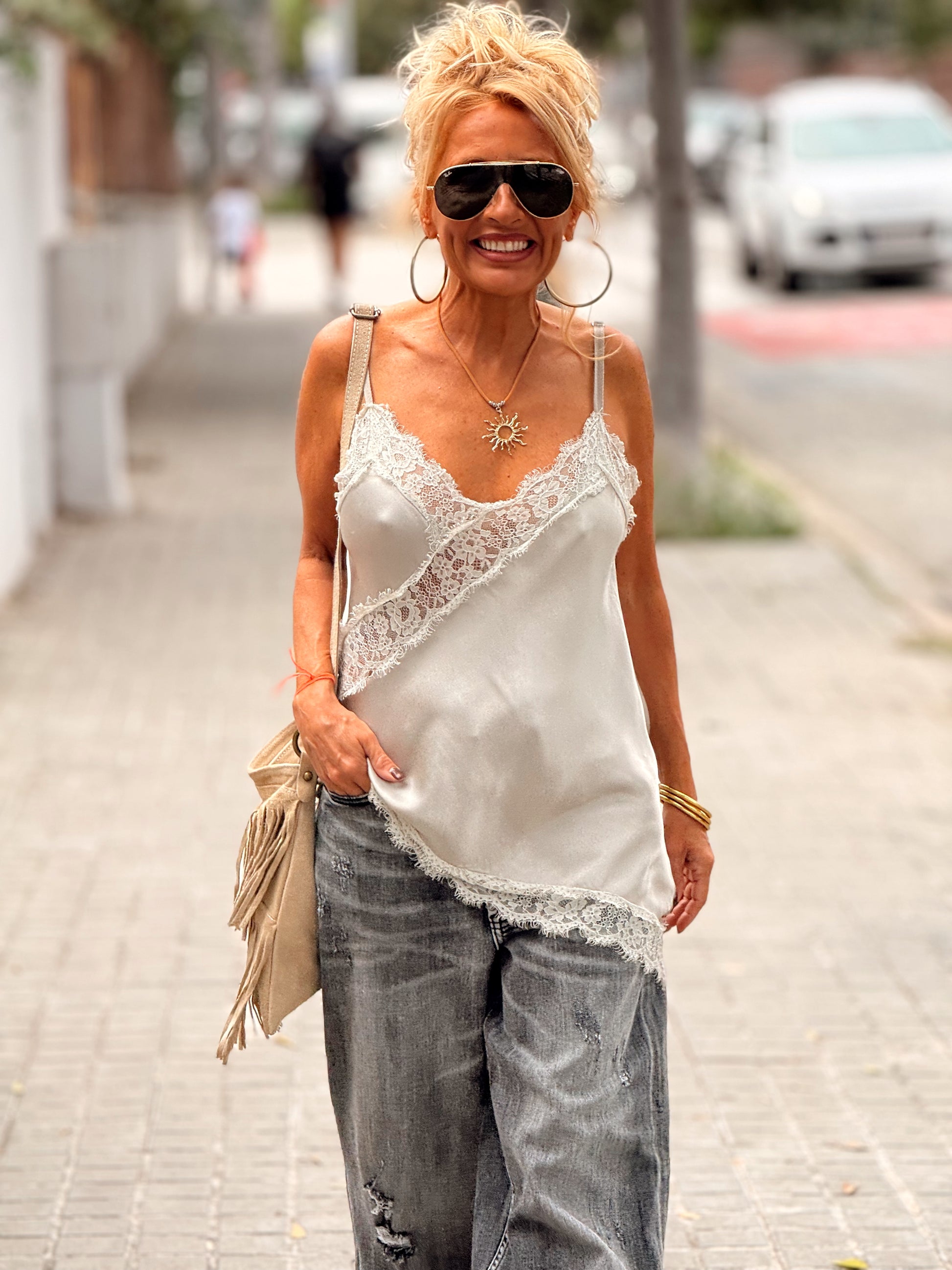 Un top de encaje absolutamente irresistible, con un corte simétrico que realza la silueta con delicadeza. Sofisticado, romántico y lleno de encanto, combina a la perfección con un pantalón vaquero o una falda fluida. ✨