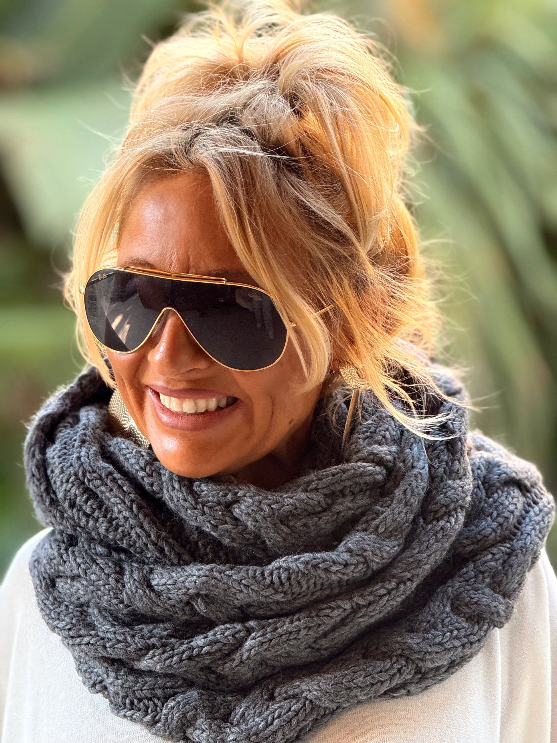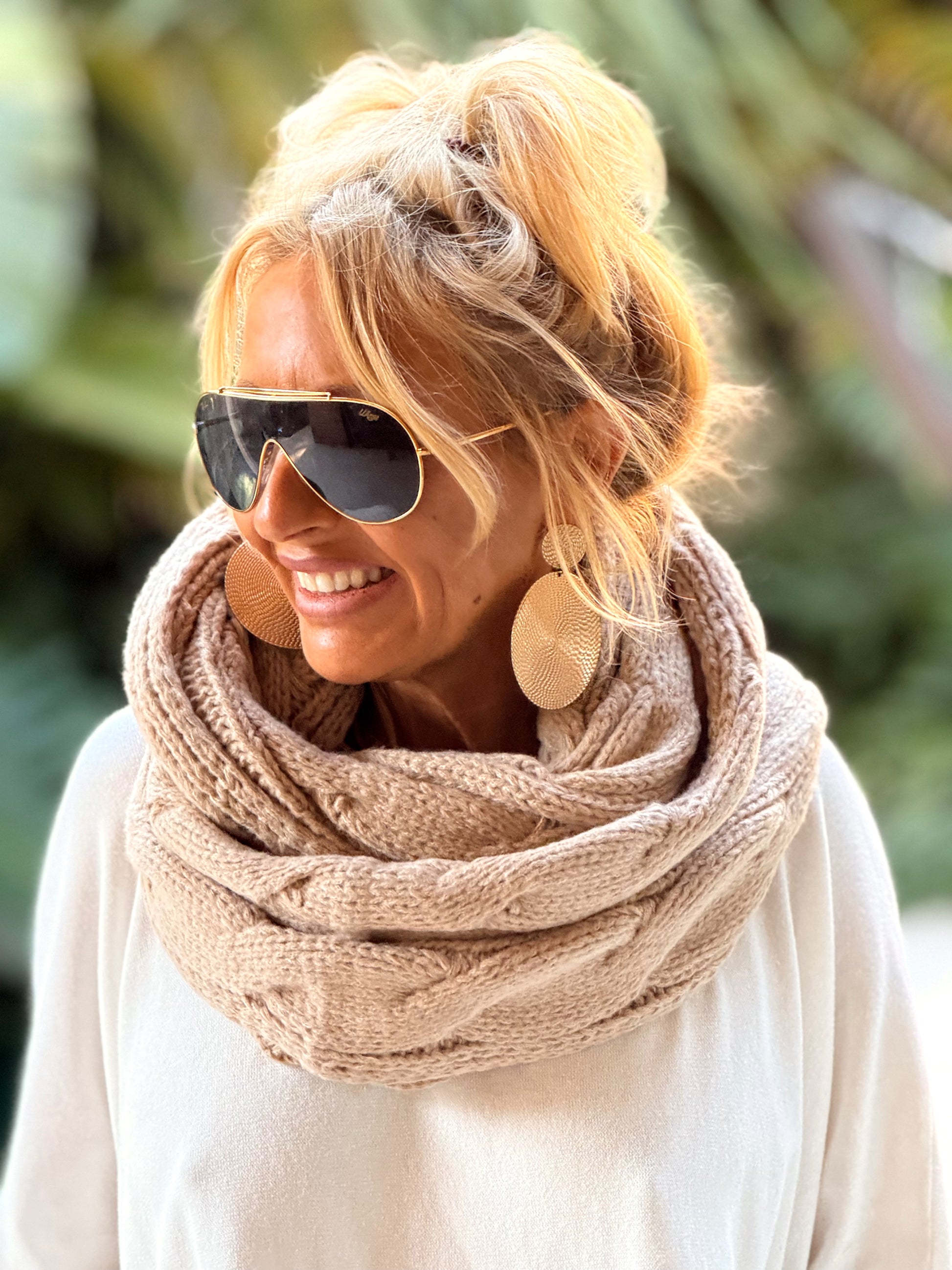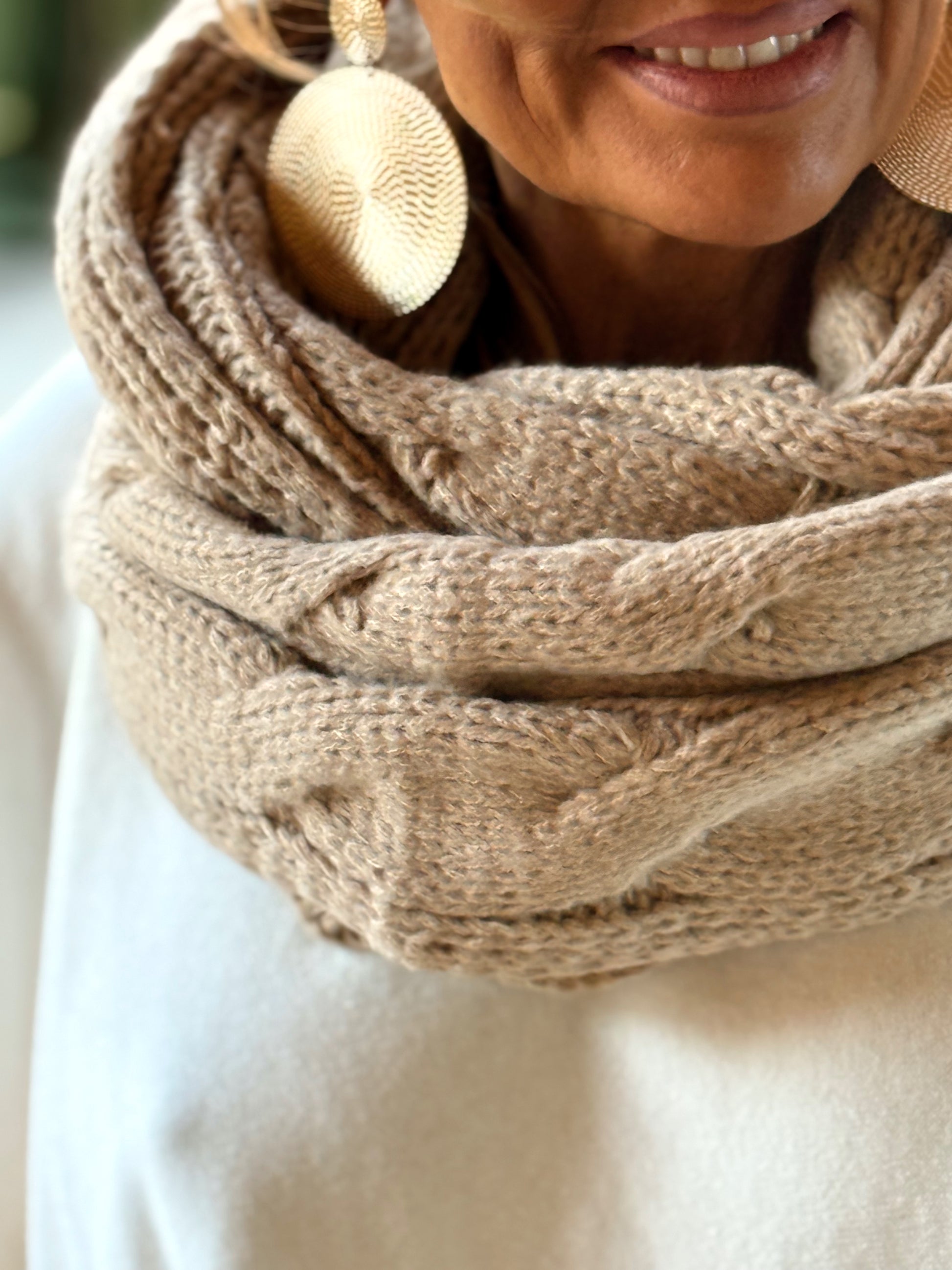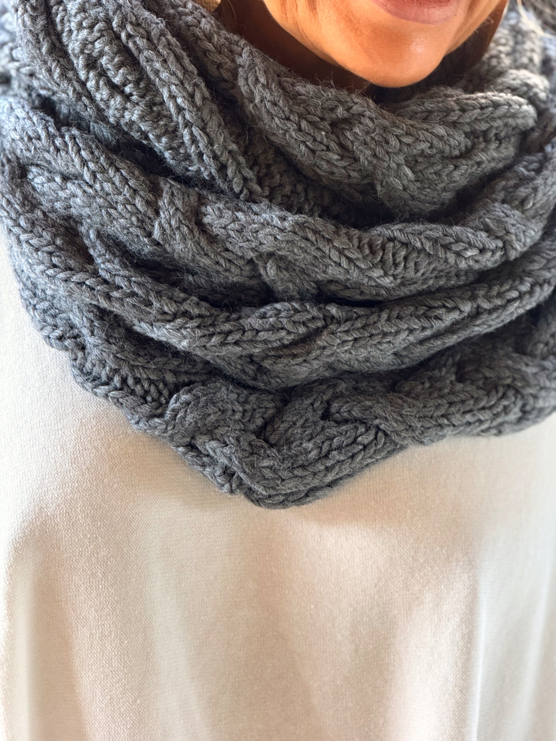 Cuello de punto con trenzado entrelazado, simplemente espectacular. 🧣✨