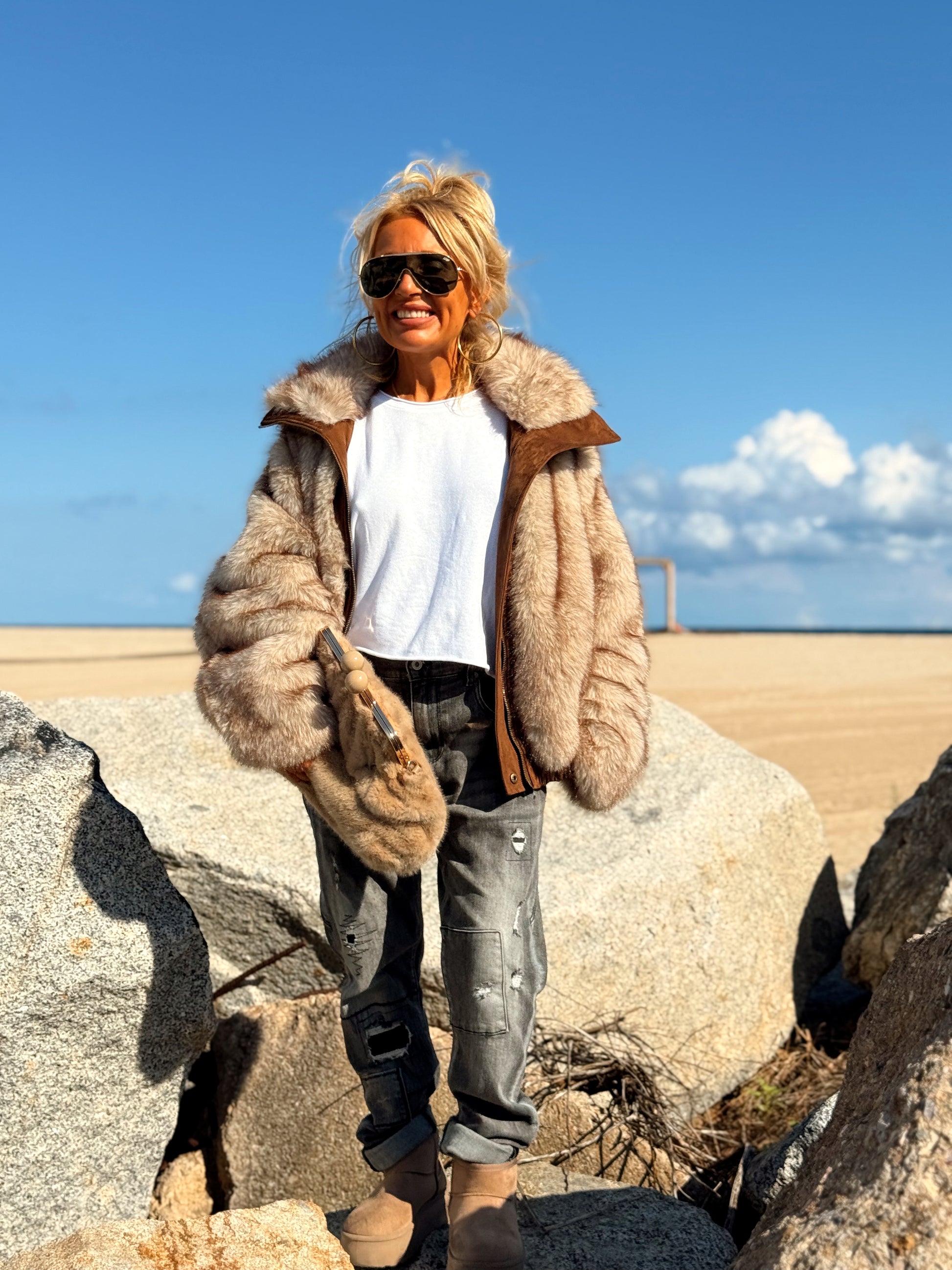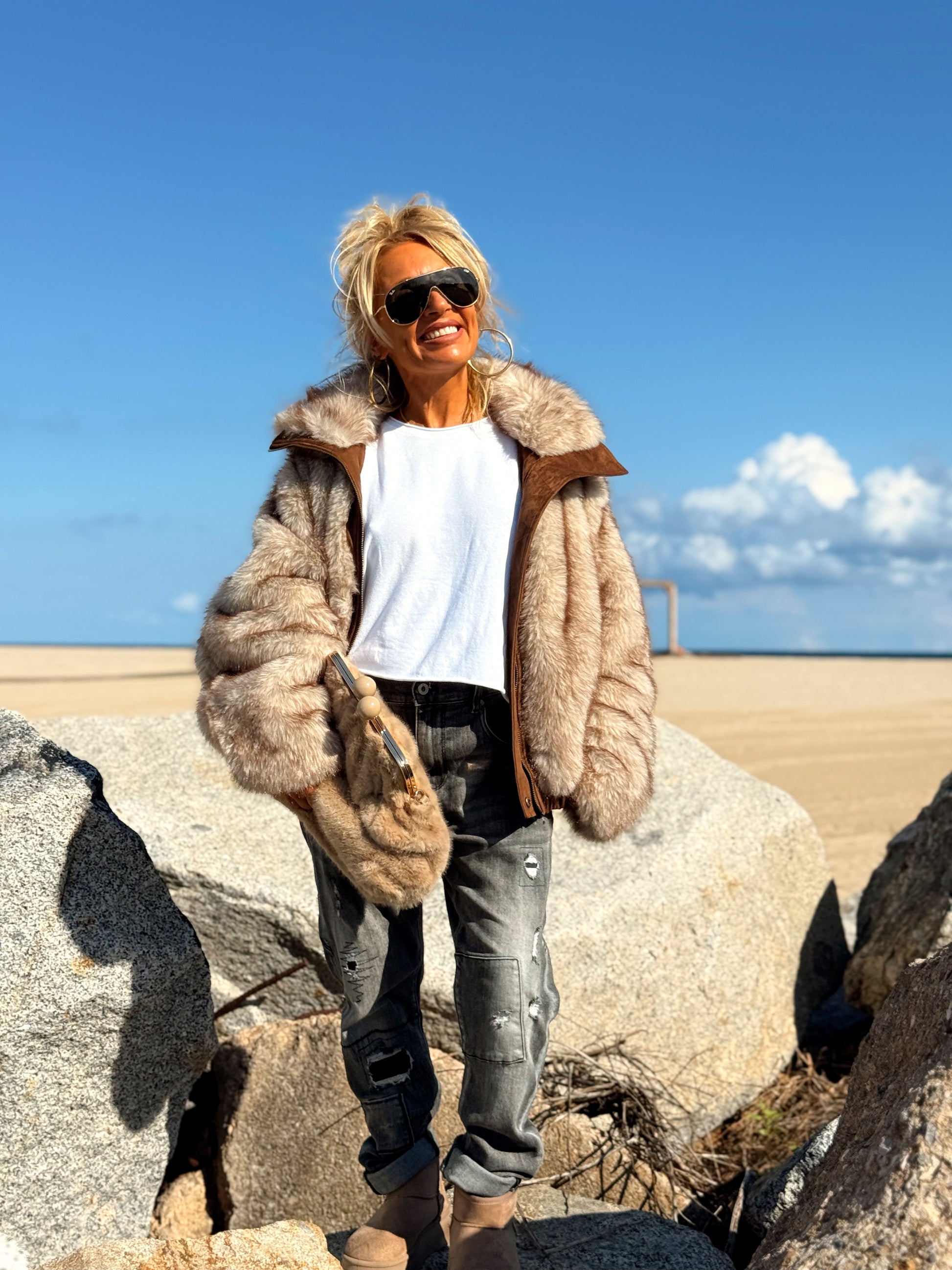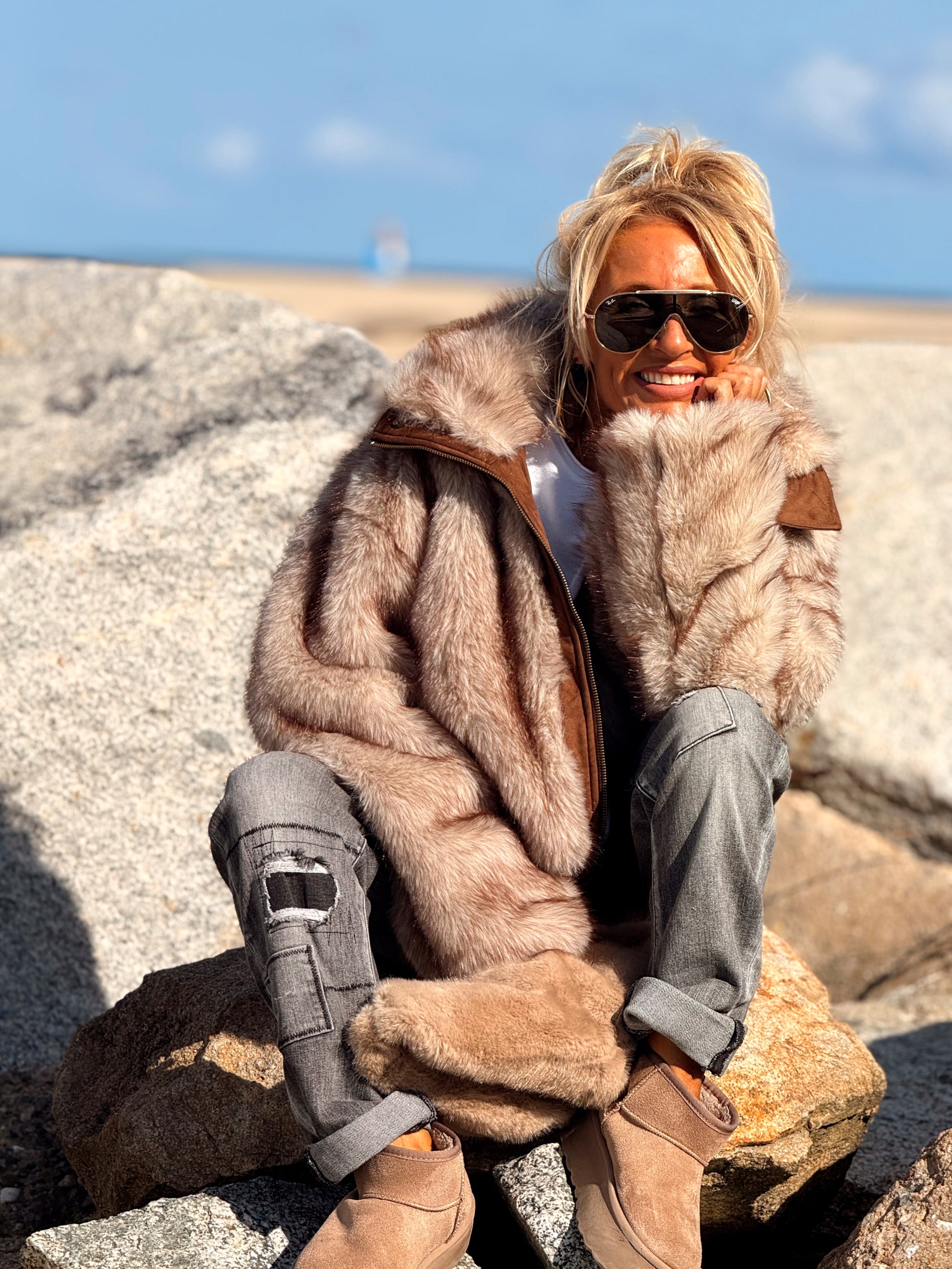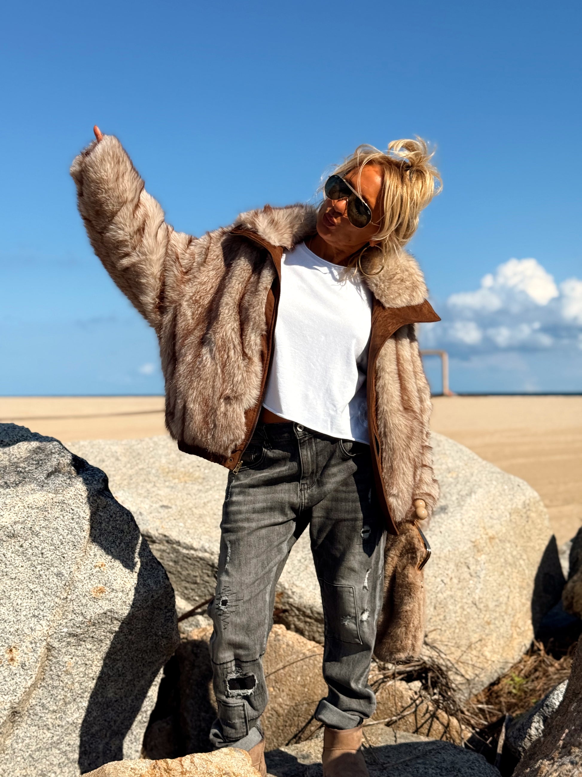 Además, es reversible: puedes llevarla por el lado de pelo sintético para un look aún más cálido y sofisticado.