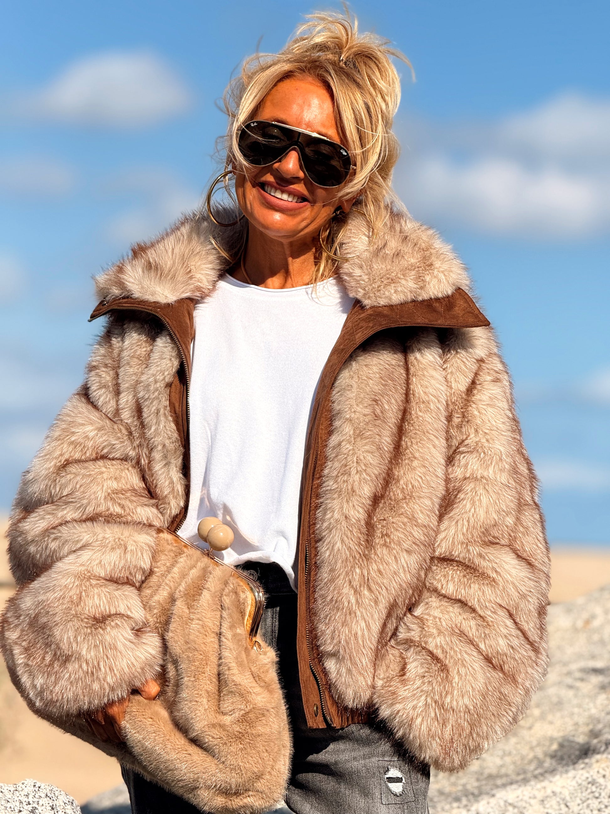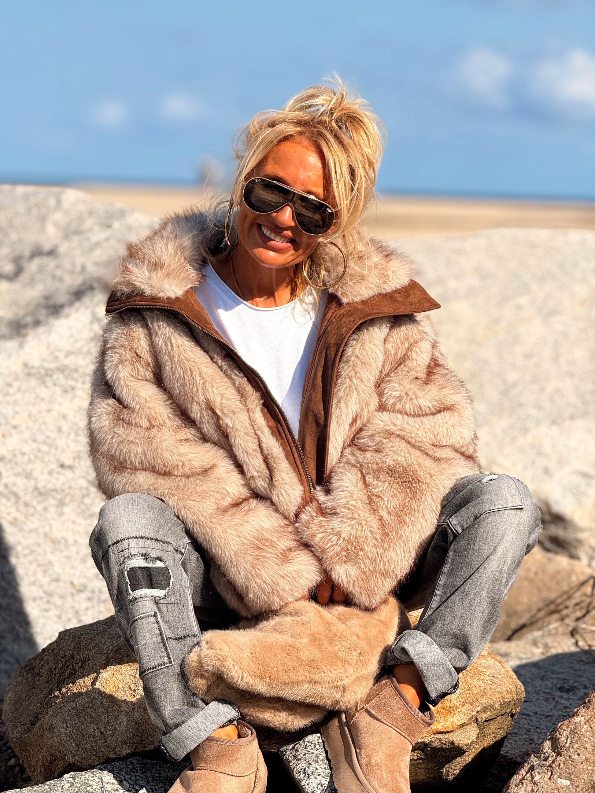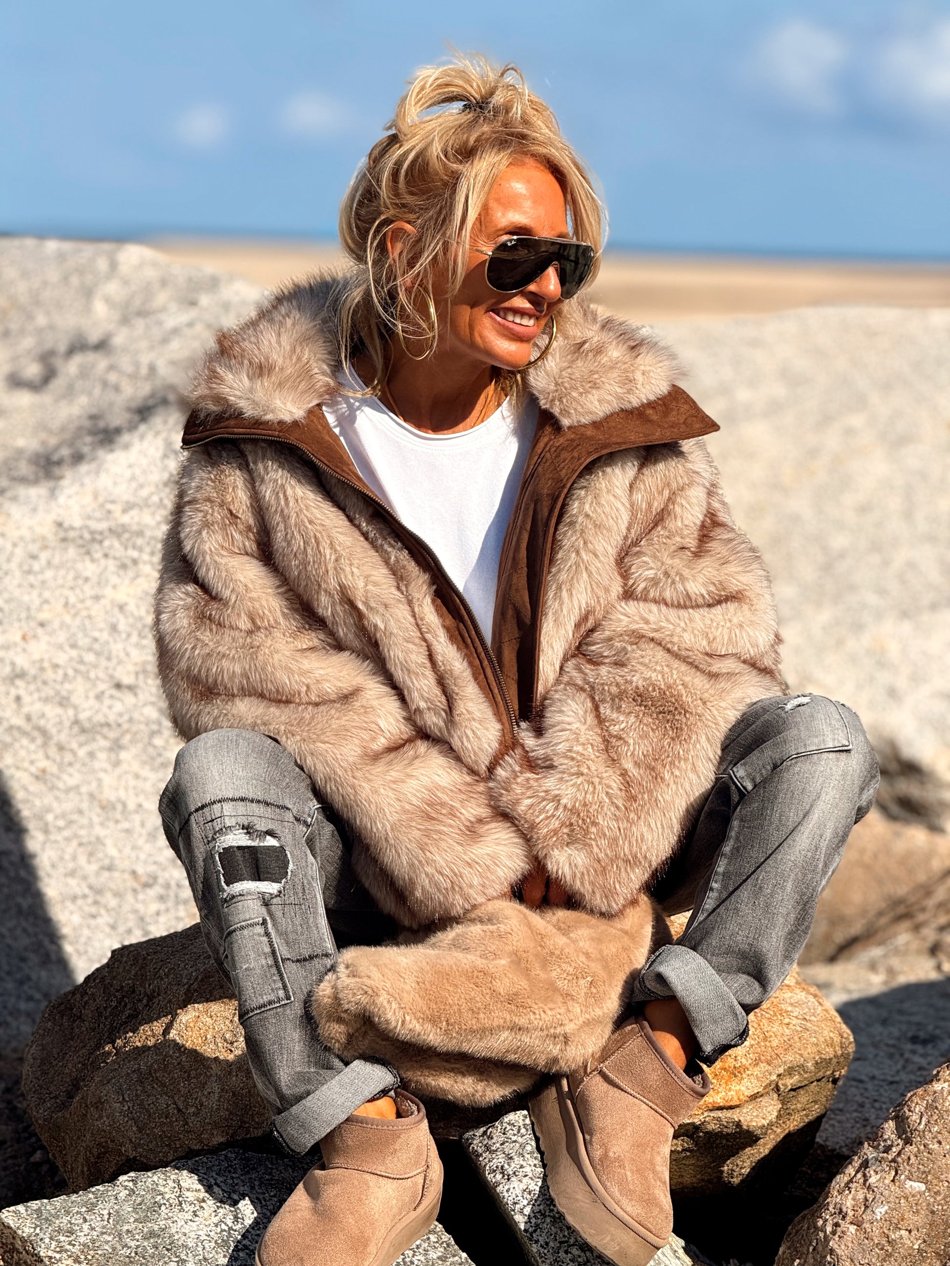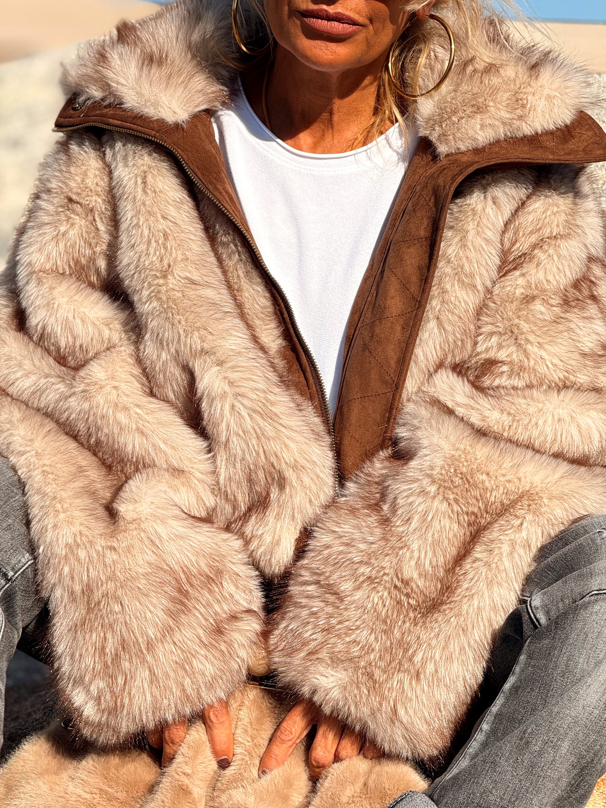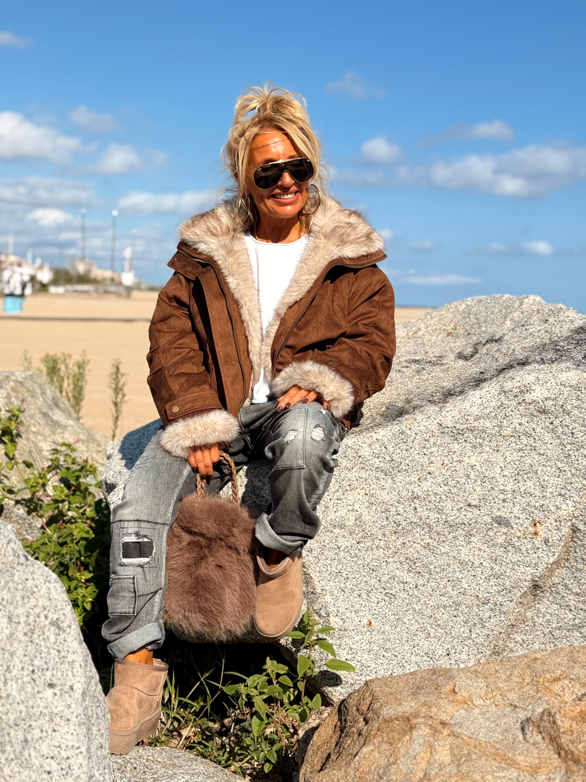 CHAQUETA GAMUZA DE PELO SINTÉTICO REVERSIBLE MARRON