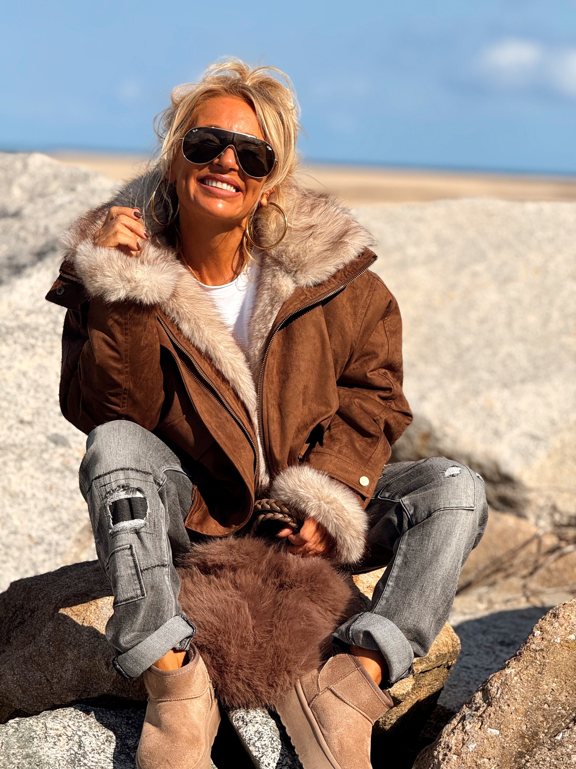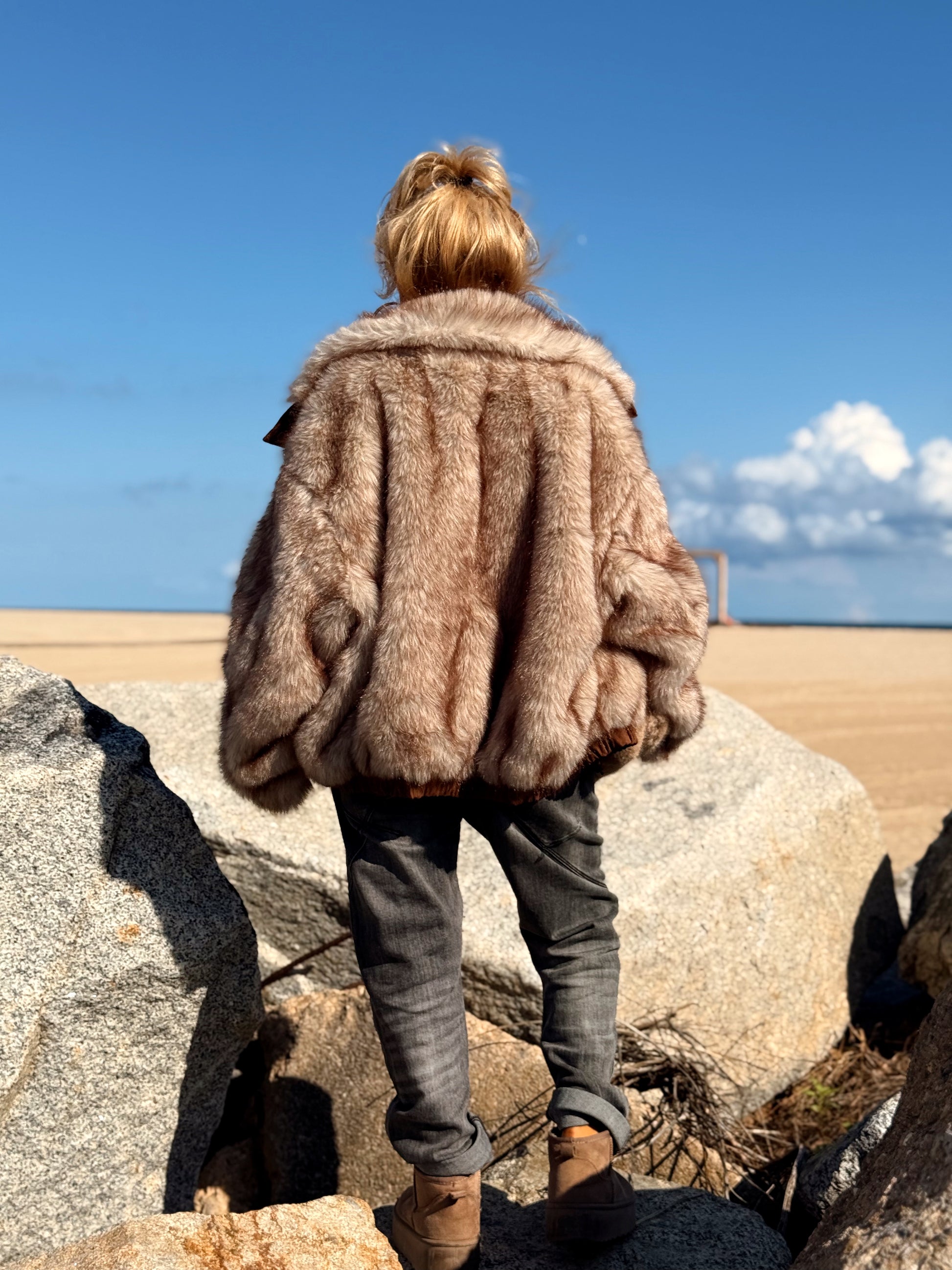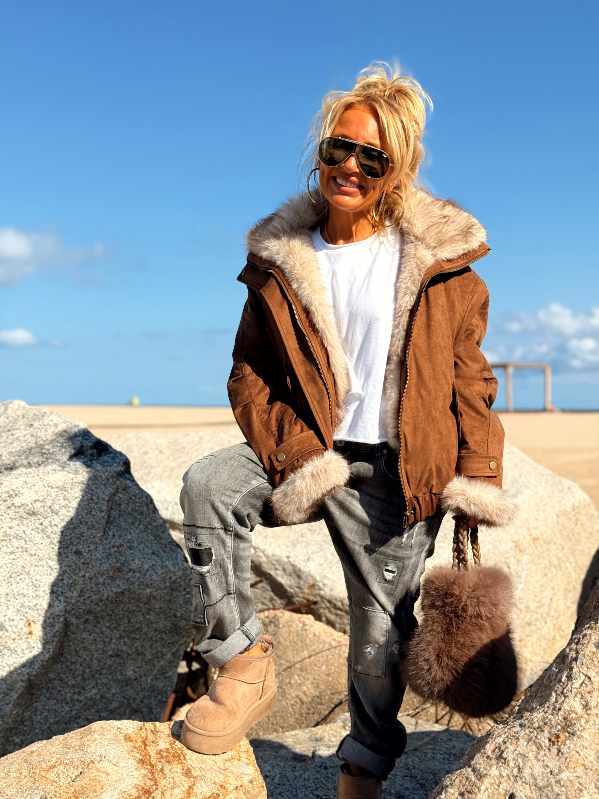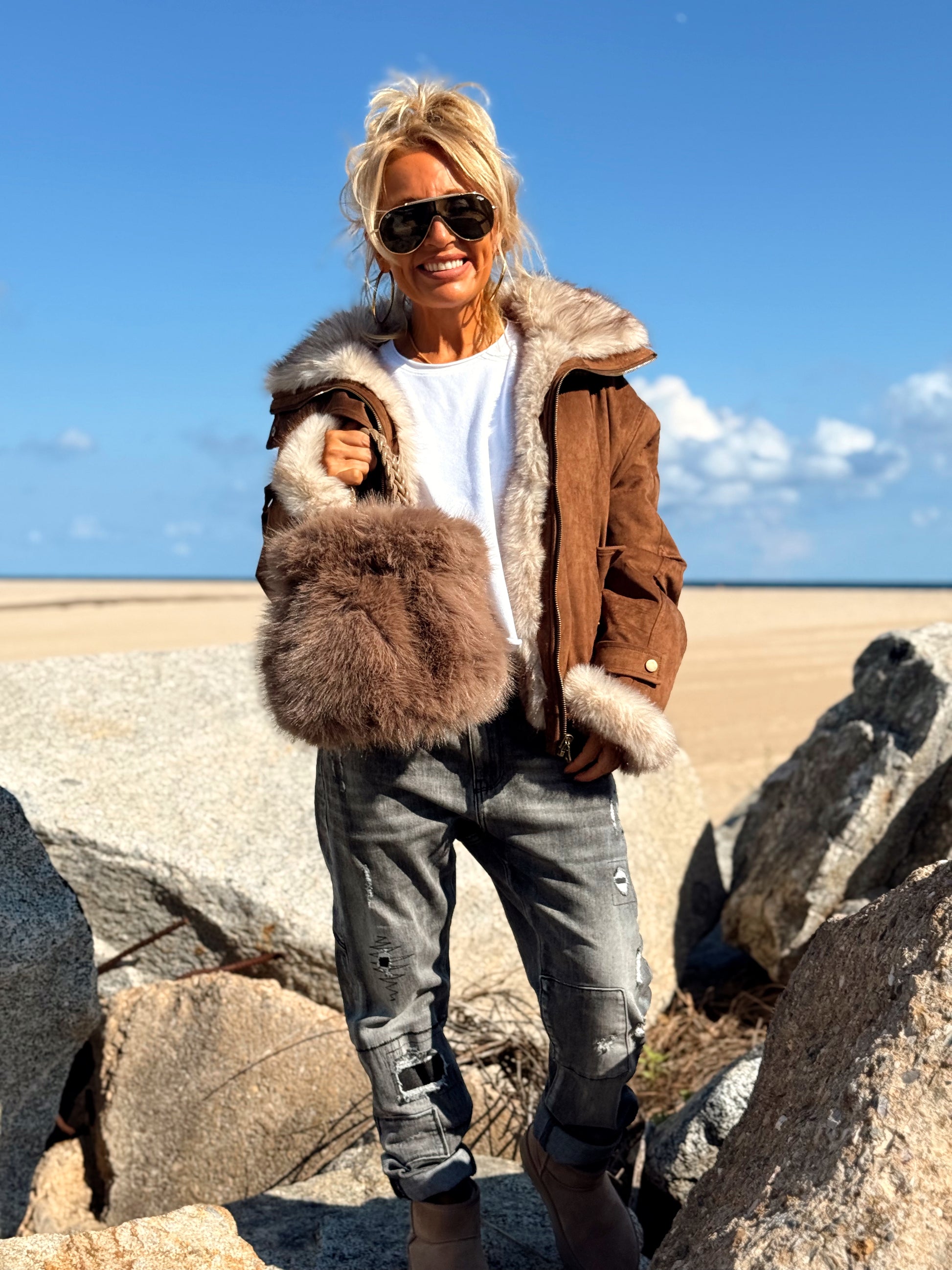 CHAQUETA GAMUZA DE PELO SINTÉTICO REVERSIBLE MARRON
