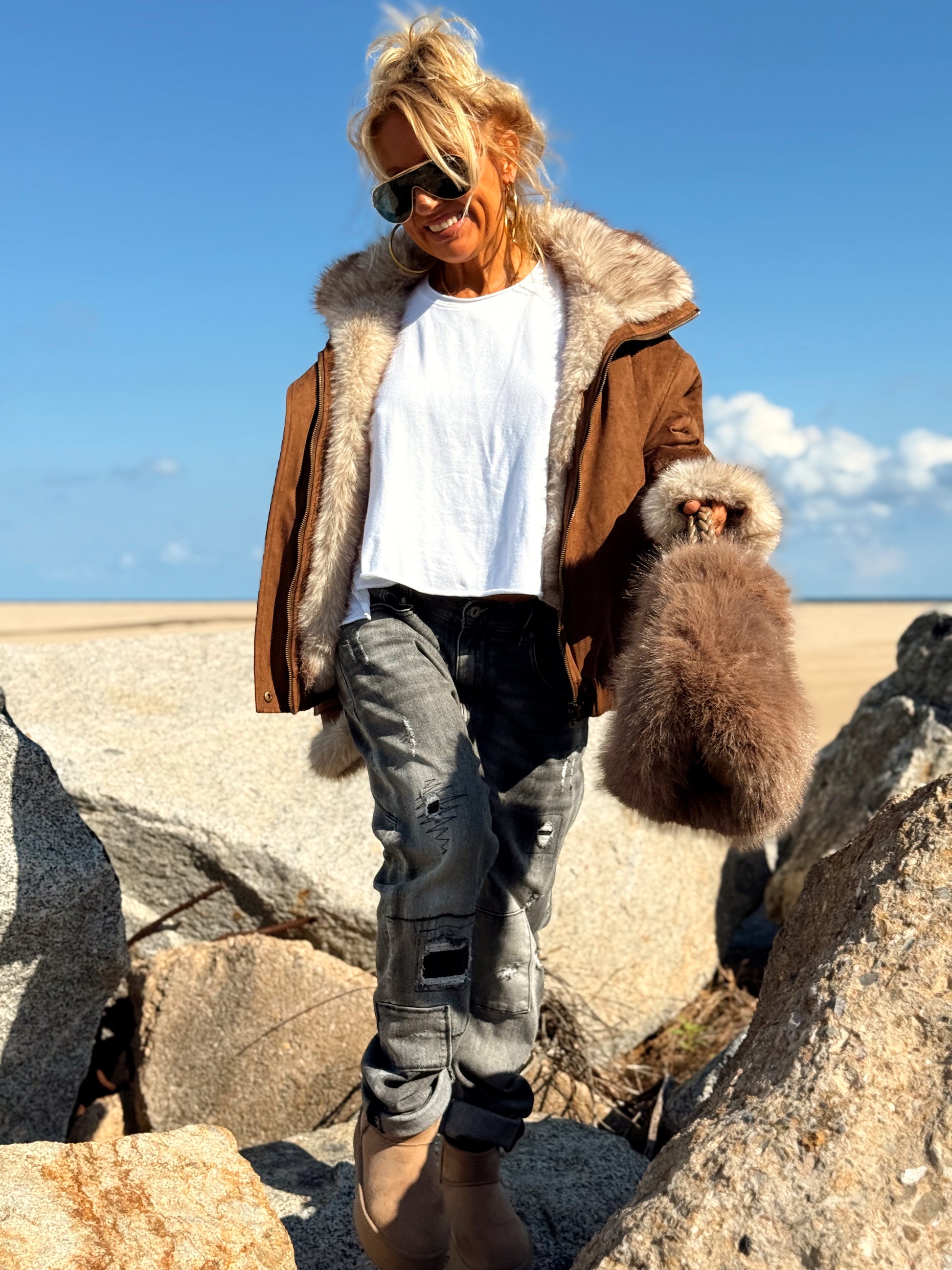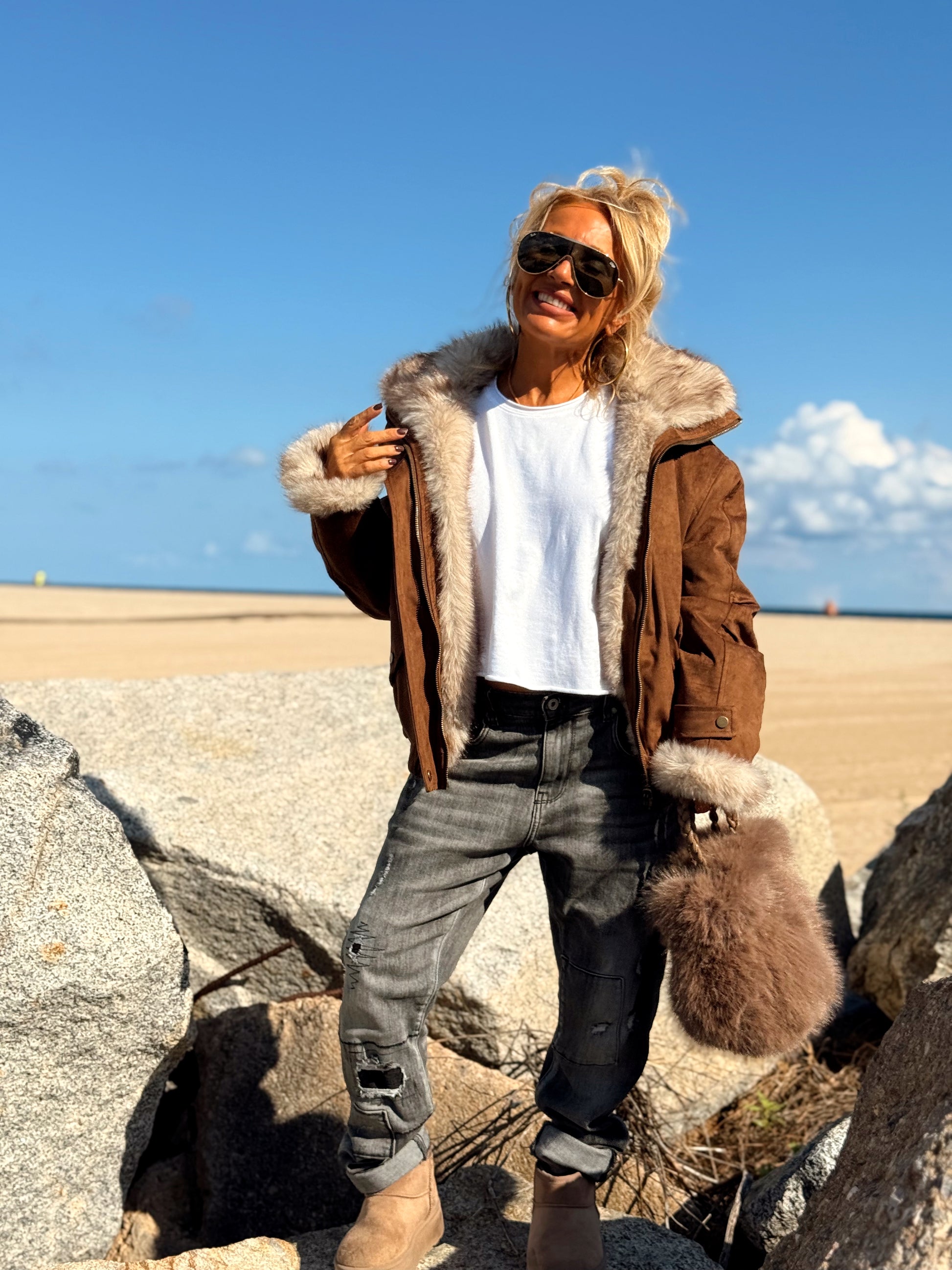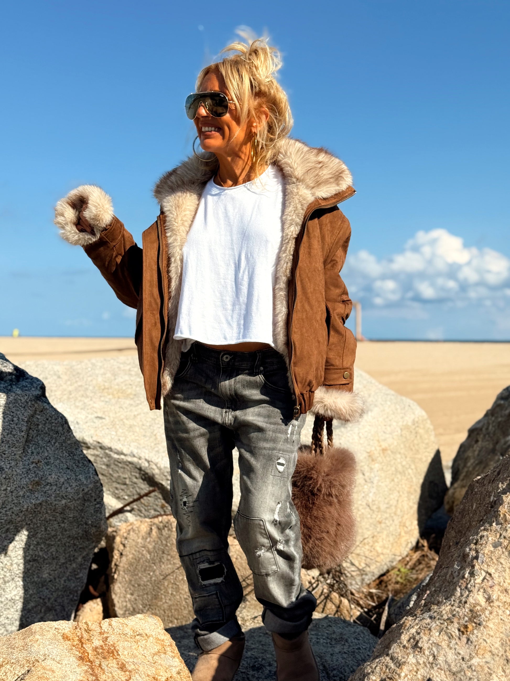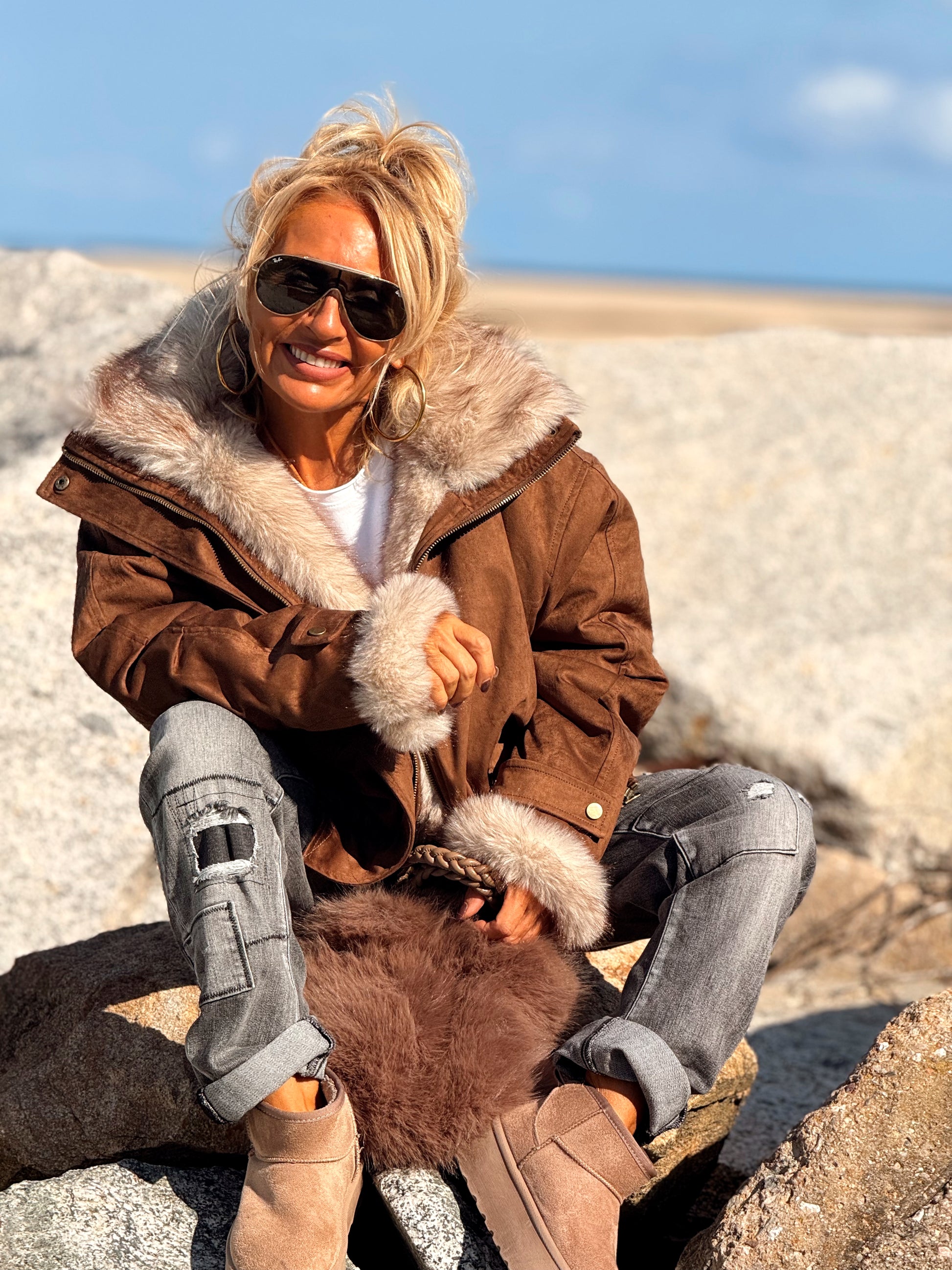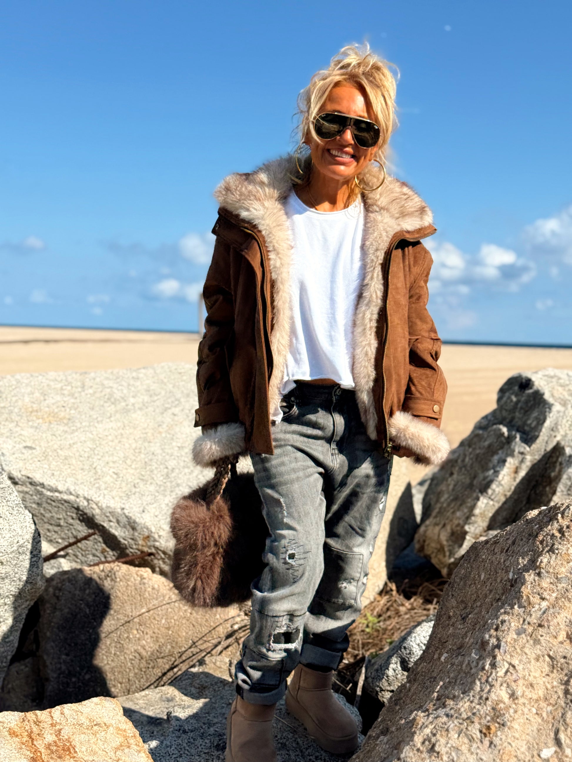 CHAQUETA GAMUZA DE PELO SINTÉTICO REVERSIBLE MARRON