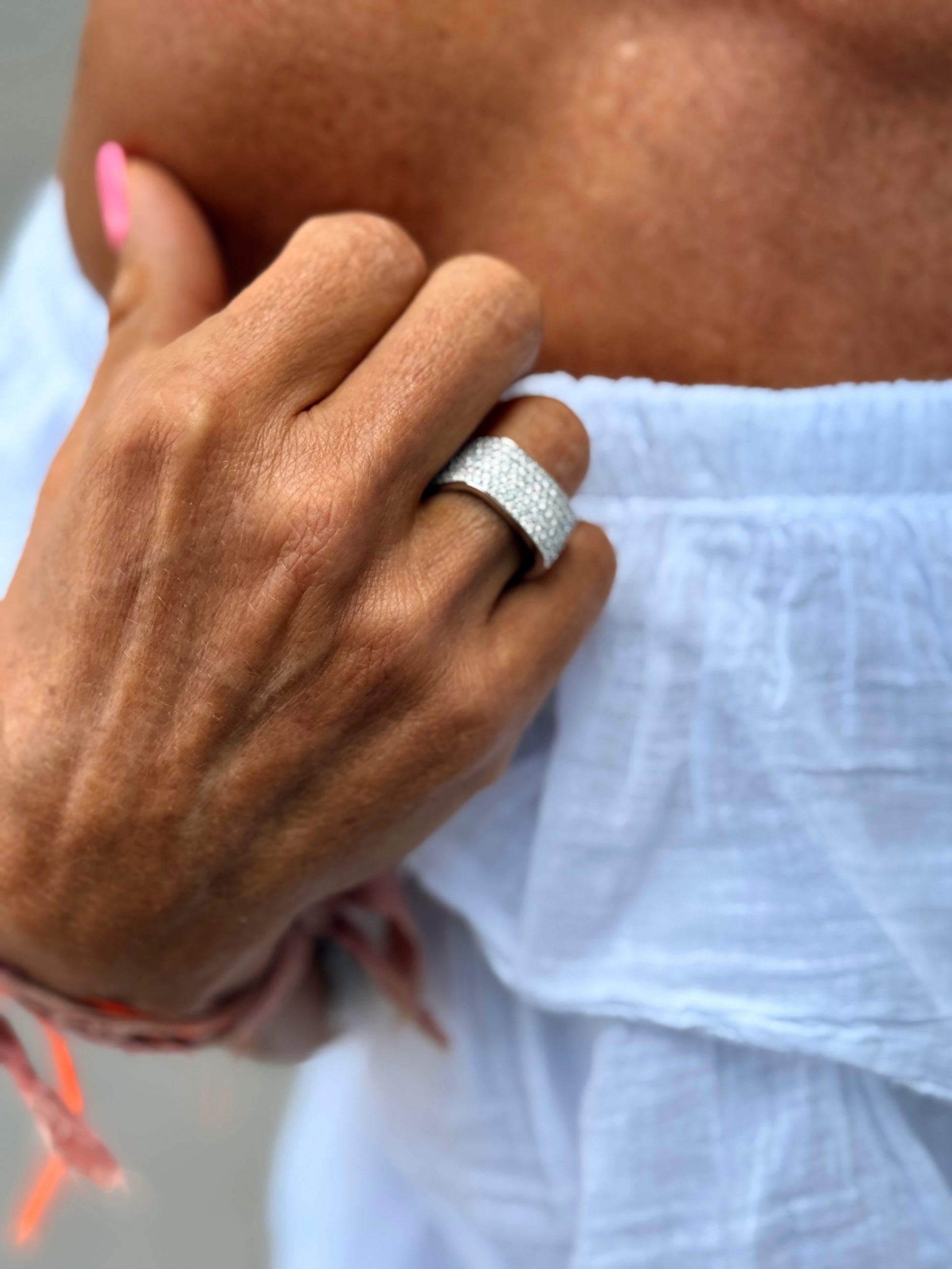 Un anillo cuadrado, súper original y moderno ✨ con sus brillantes (falsos, pero nadie lo diría 😏). Elegante y versátil, lo puedes llevar tanto en una fiesta como en tu día a día o incluso en el trabajo. En pocas palabras: la joya ideal para brillar siempre. 💎