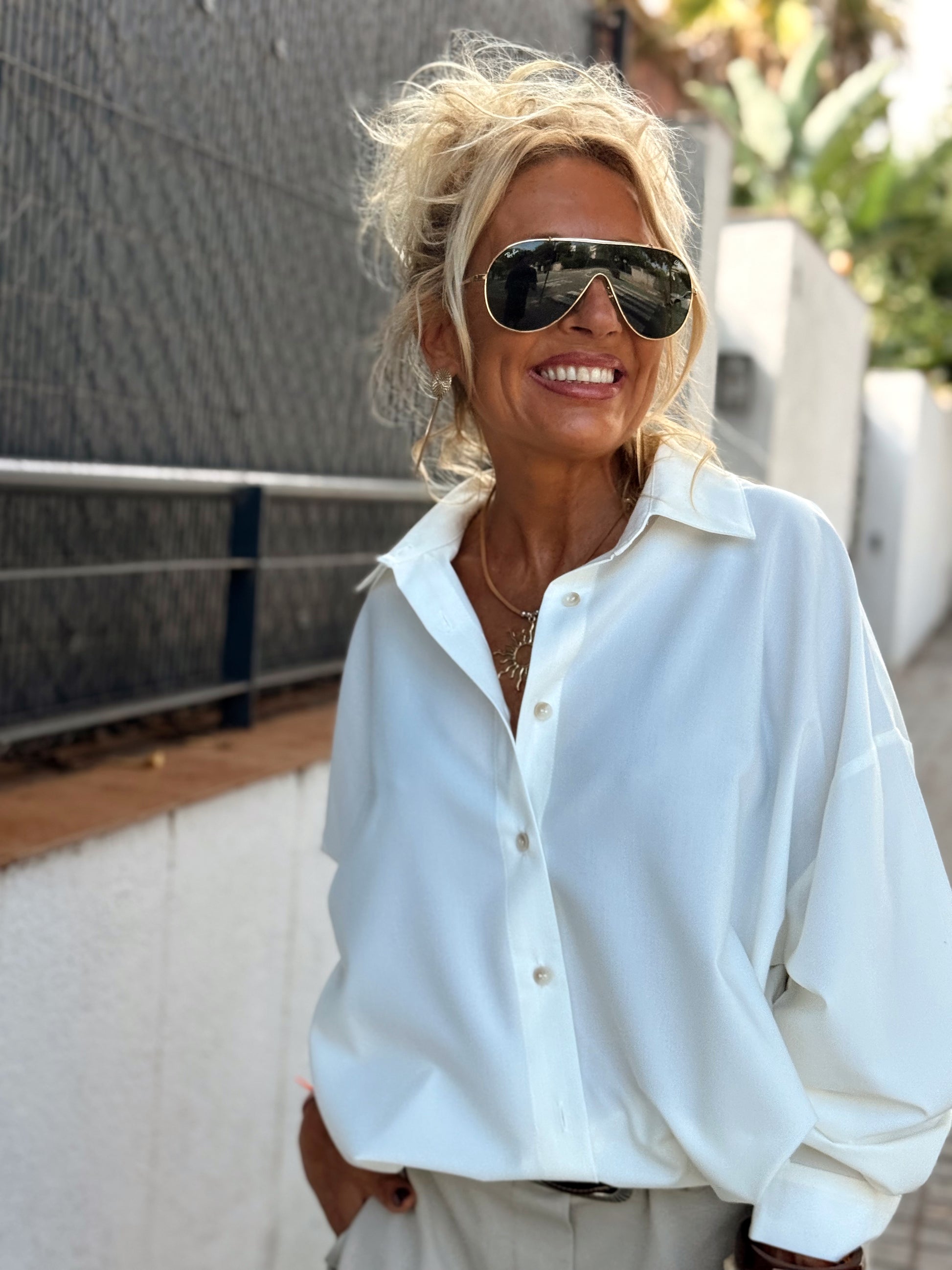 Camisa oversize con pliegue en la espalda, simplemente espectacular.