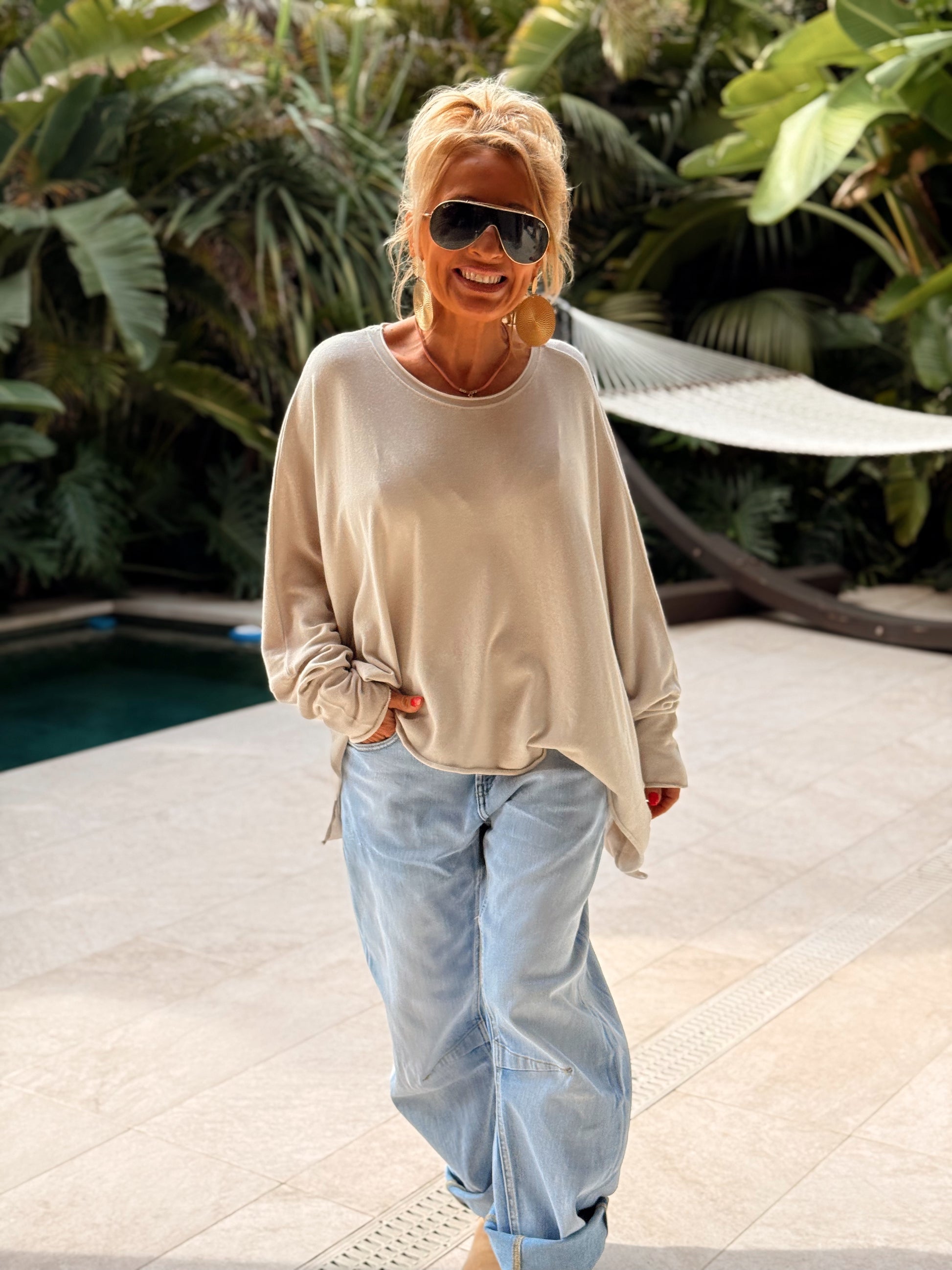 Es nuestro bebé, nuestro primer básico creado con todo el cariño 💖 Este T-shirt lo hemos diseñado en talla oversize, lo que significa que se adapta perfectamente hasta una talla 44/46.