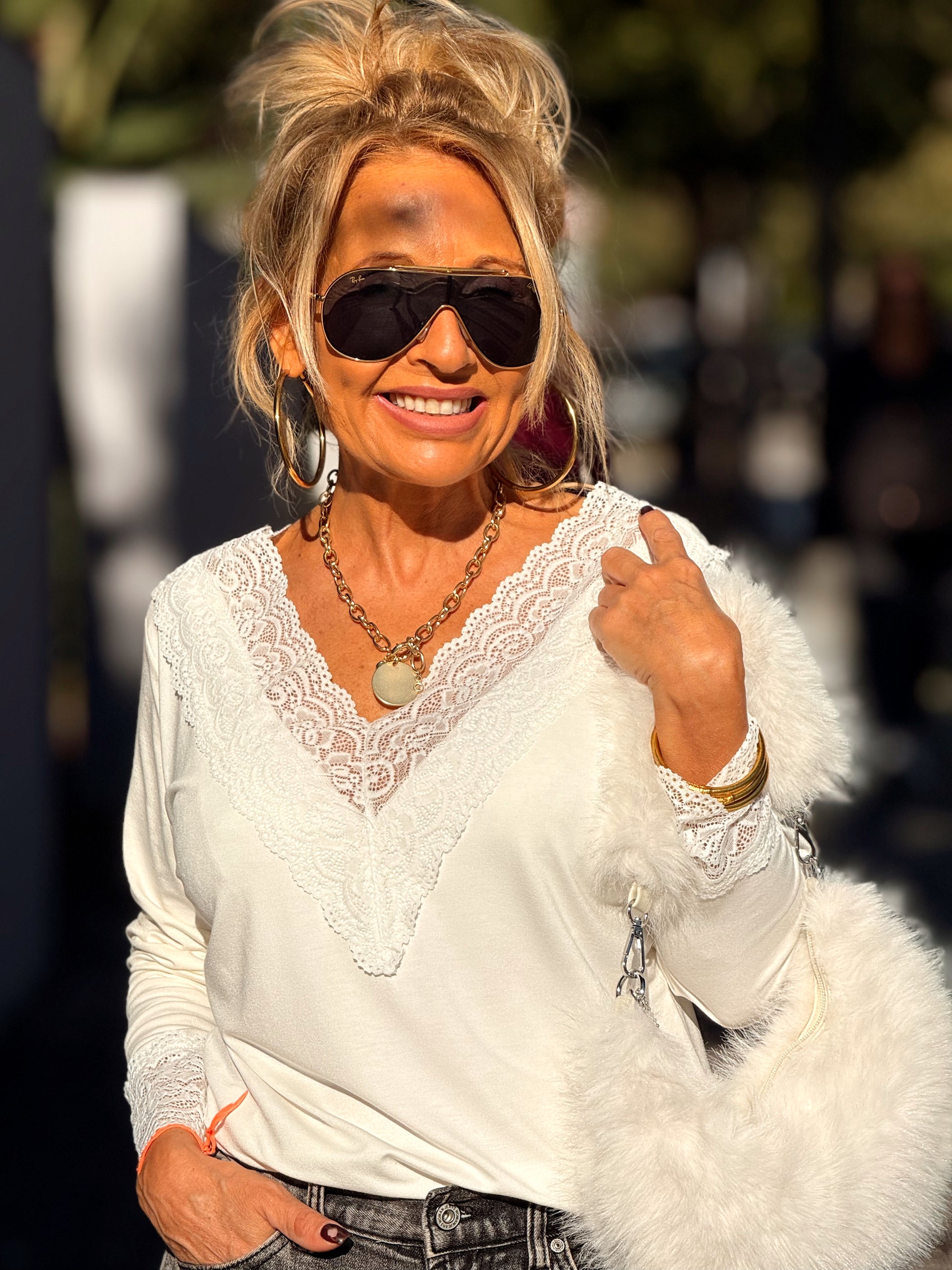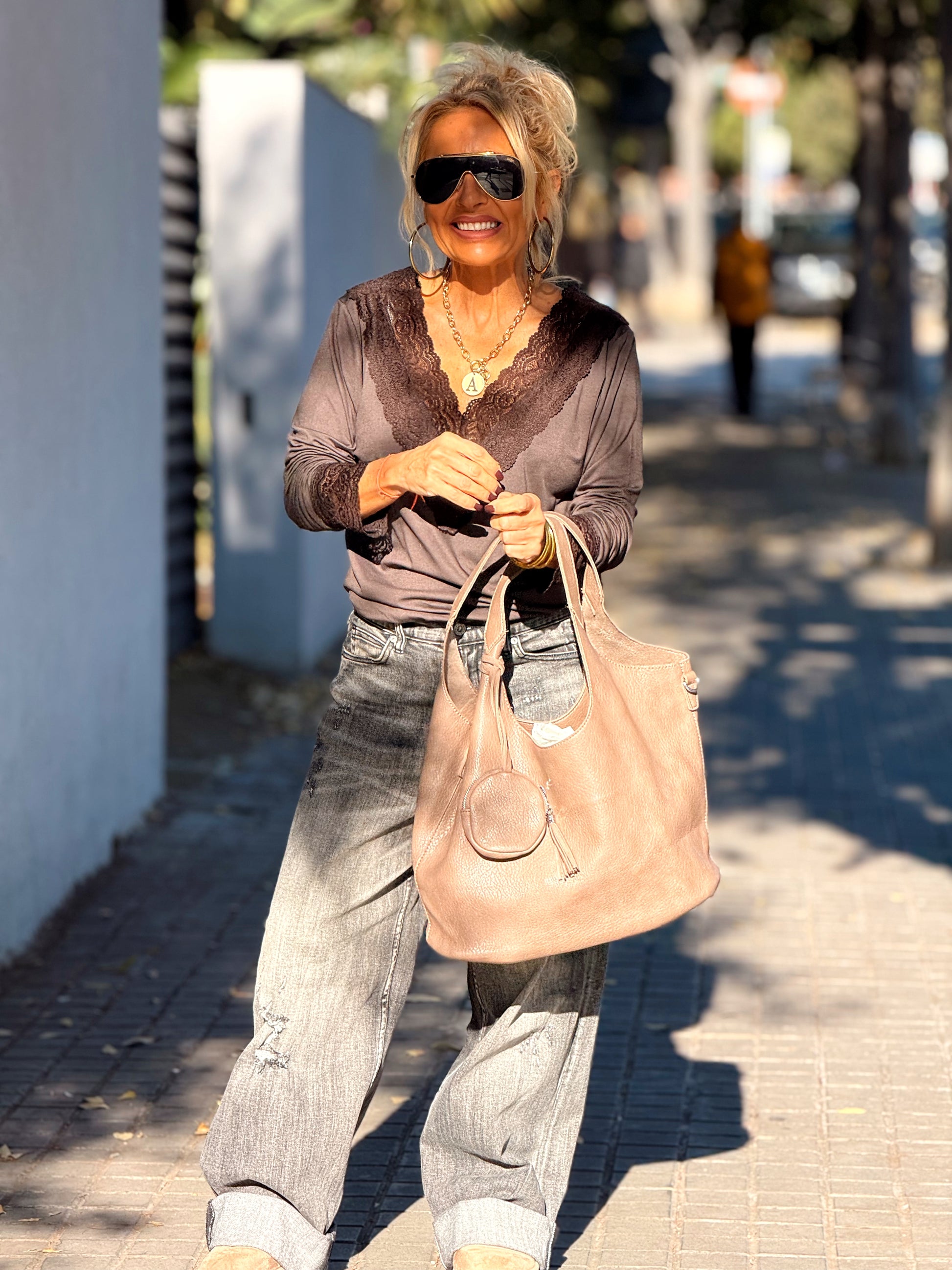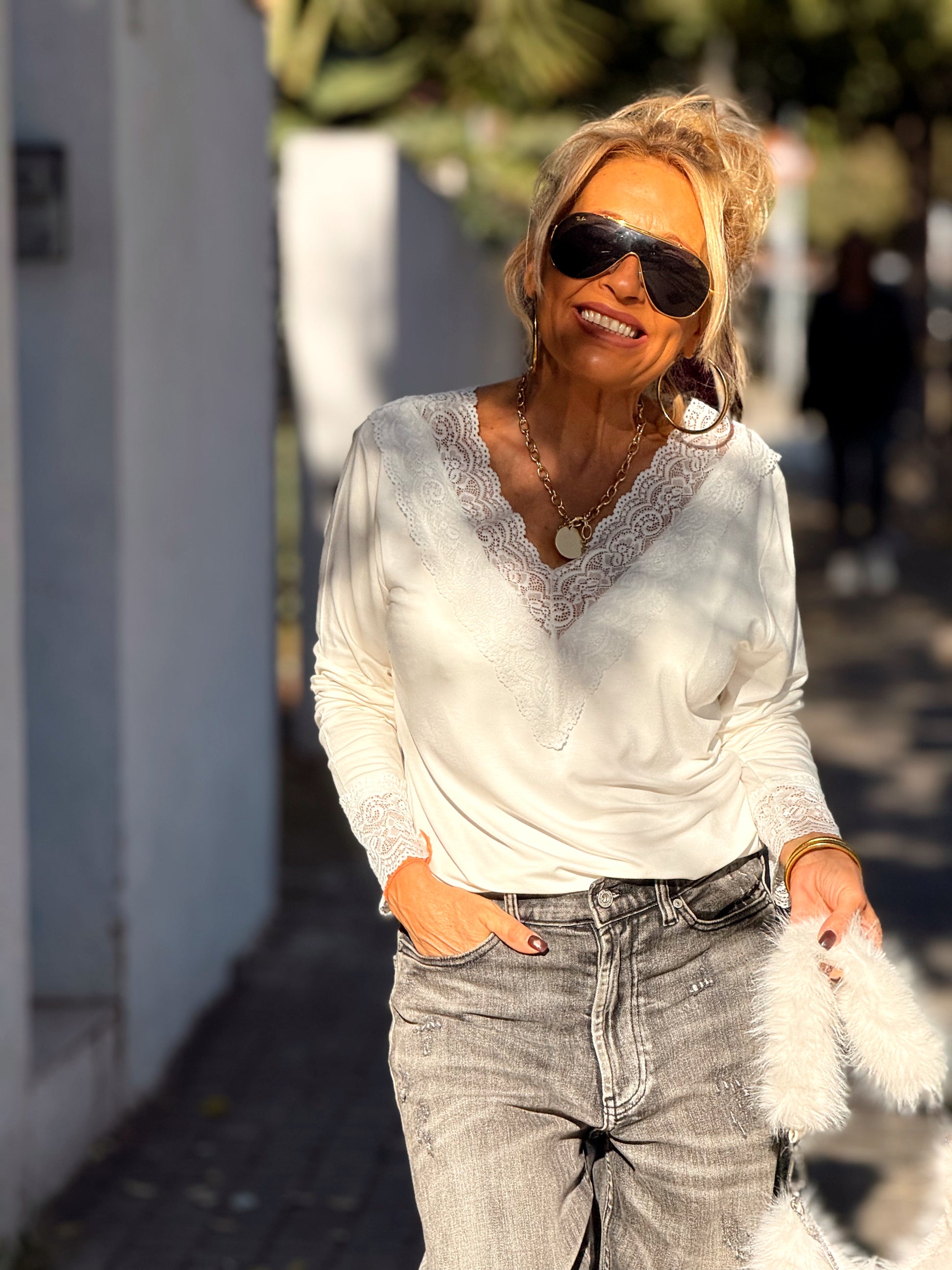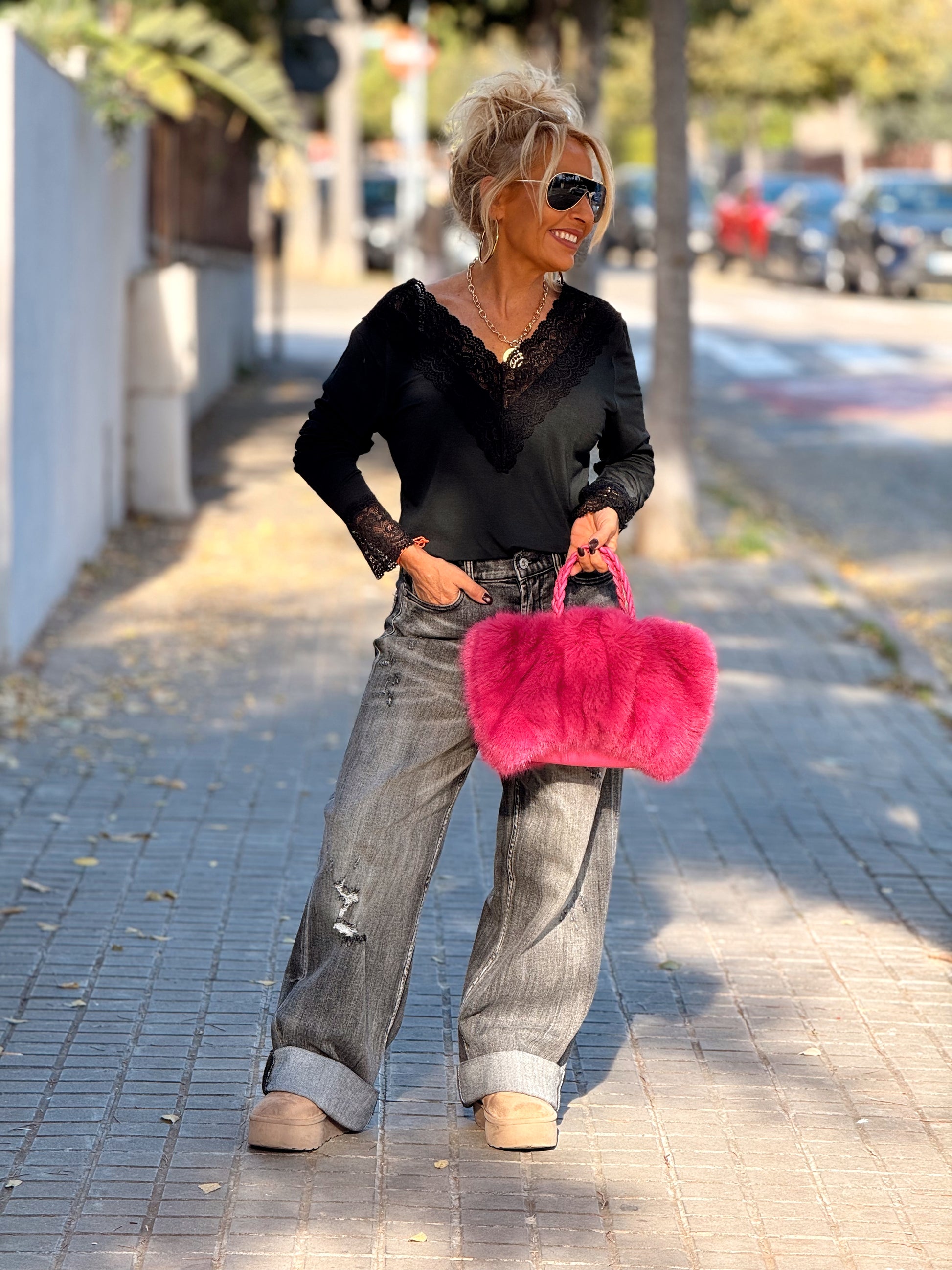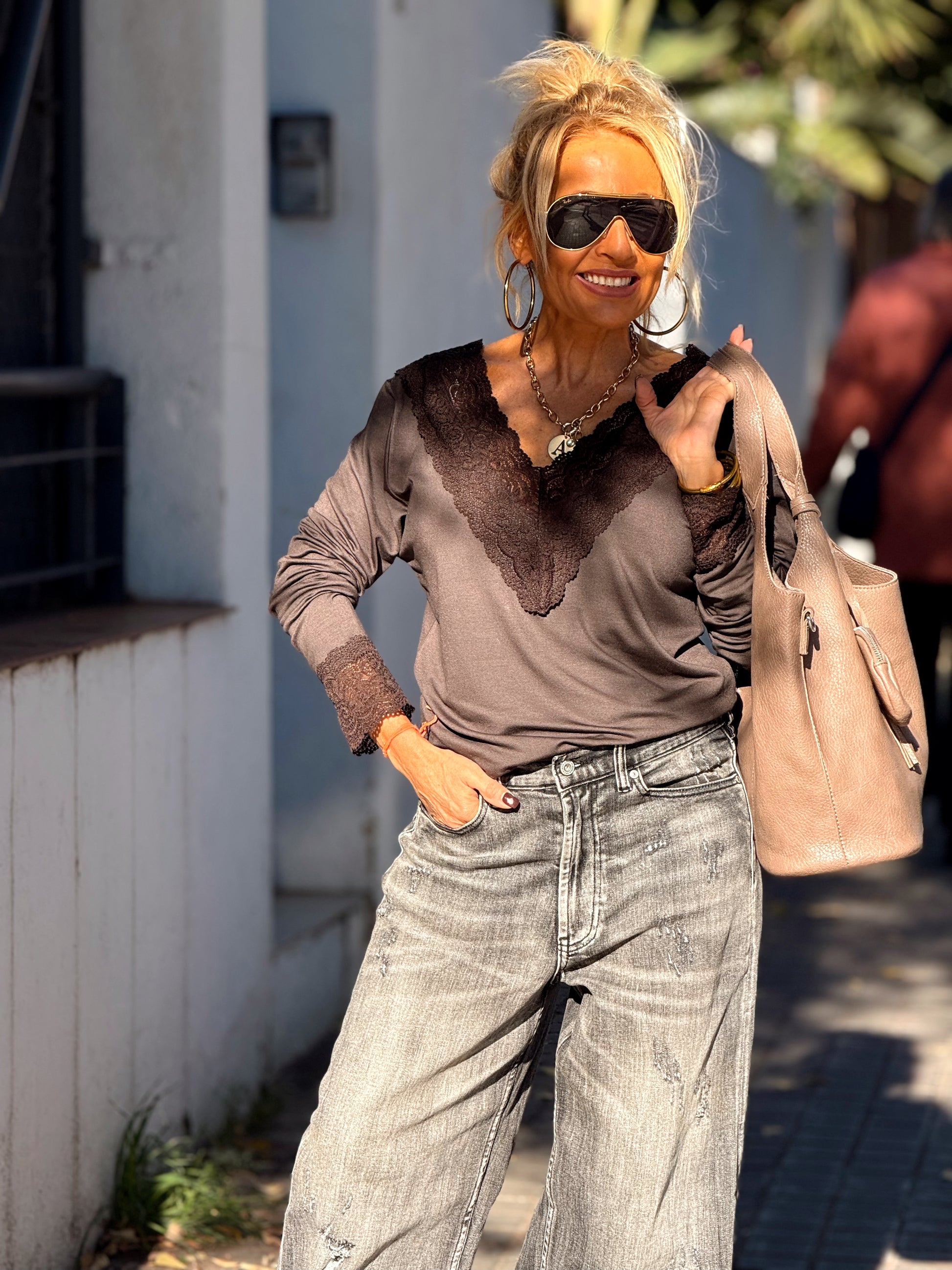 Es una prenda espectacular, amplia y cómoda, que se puede llevar perfectamente hasta una talla 48. El encaje le da un toque femenino y precioso, convirtiéndola en una pieza especial y muy favorecedora.
