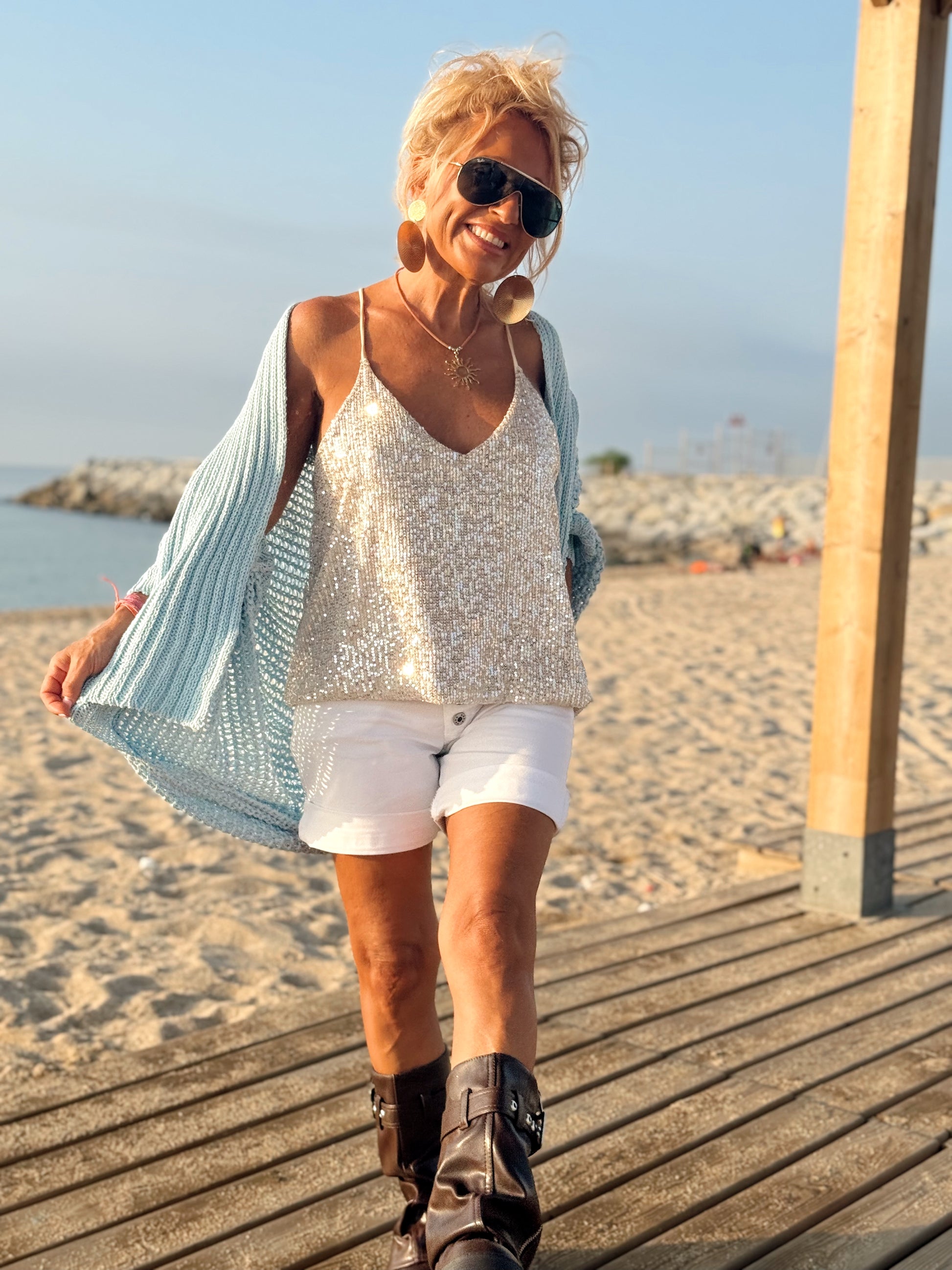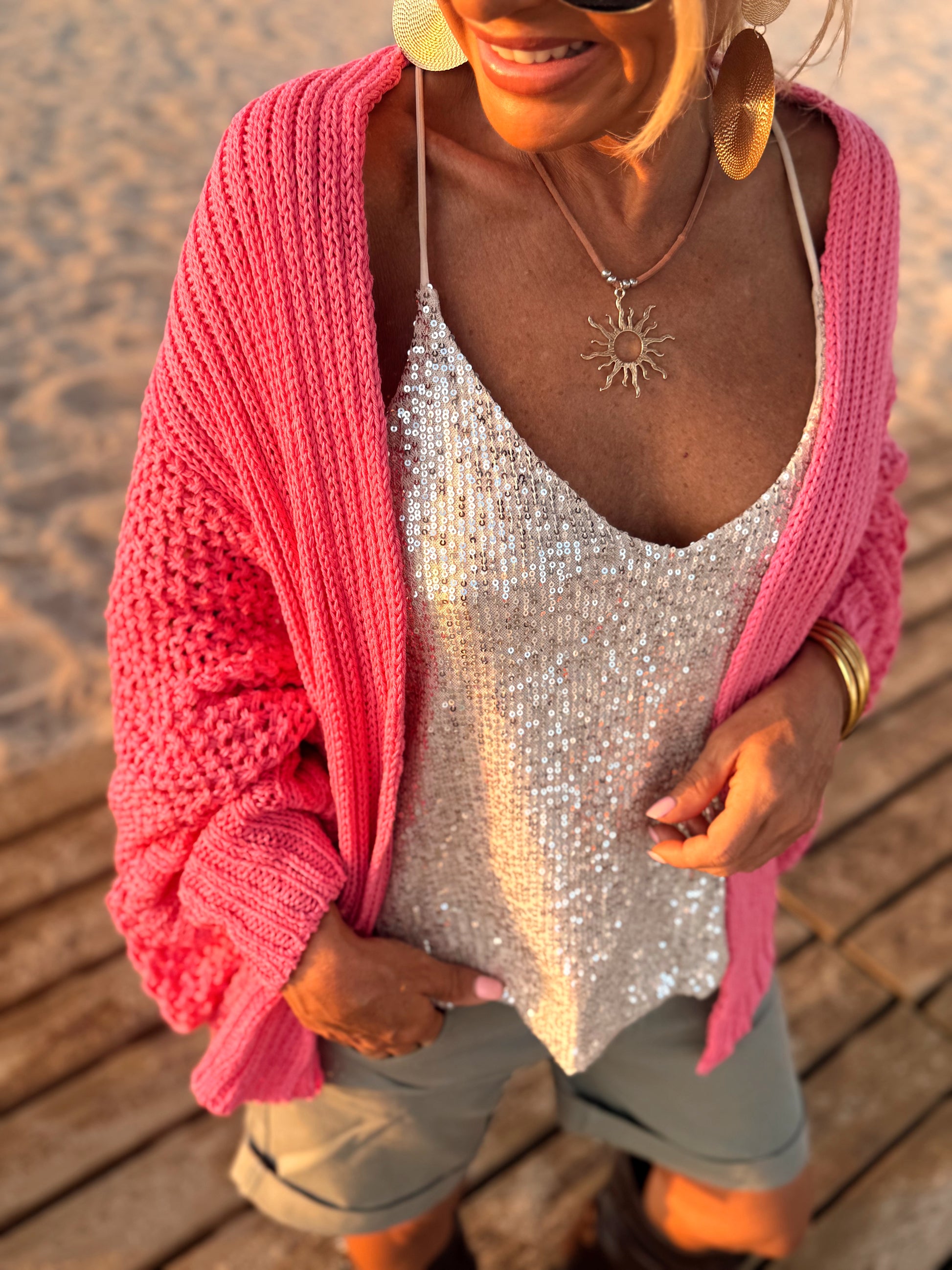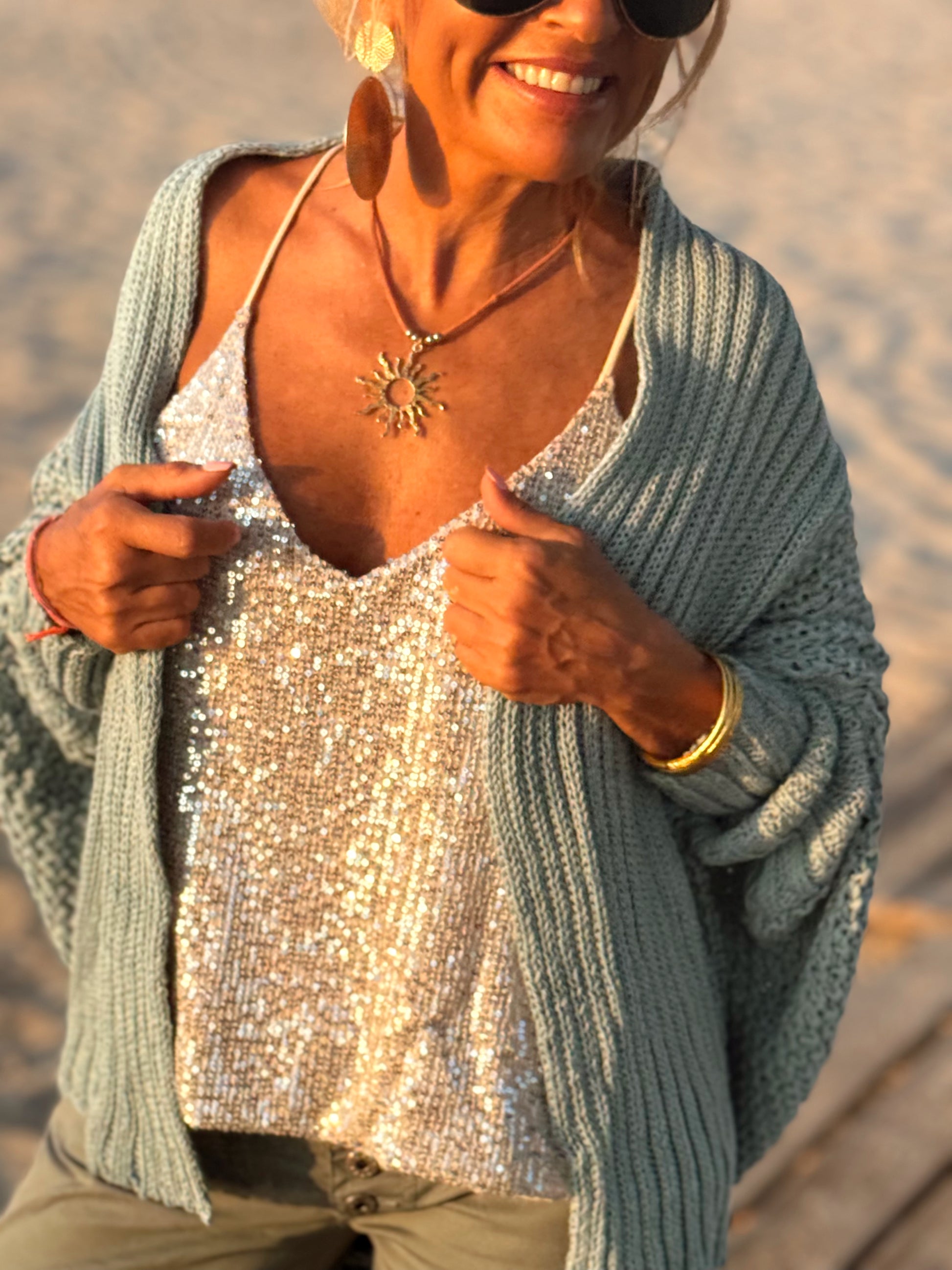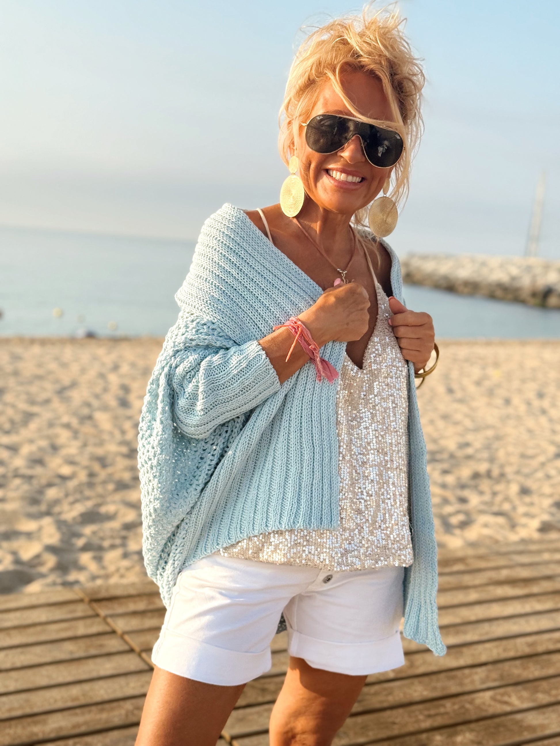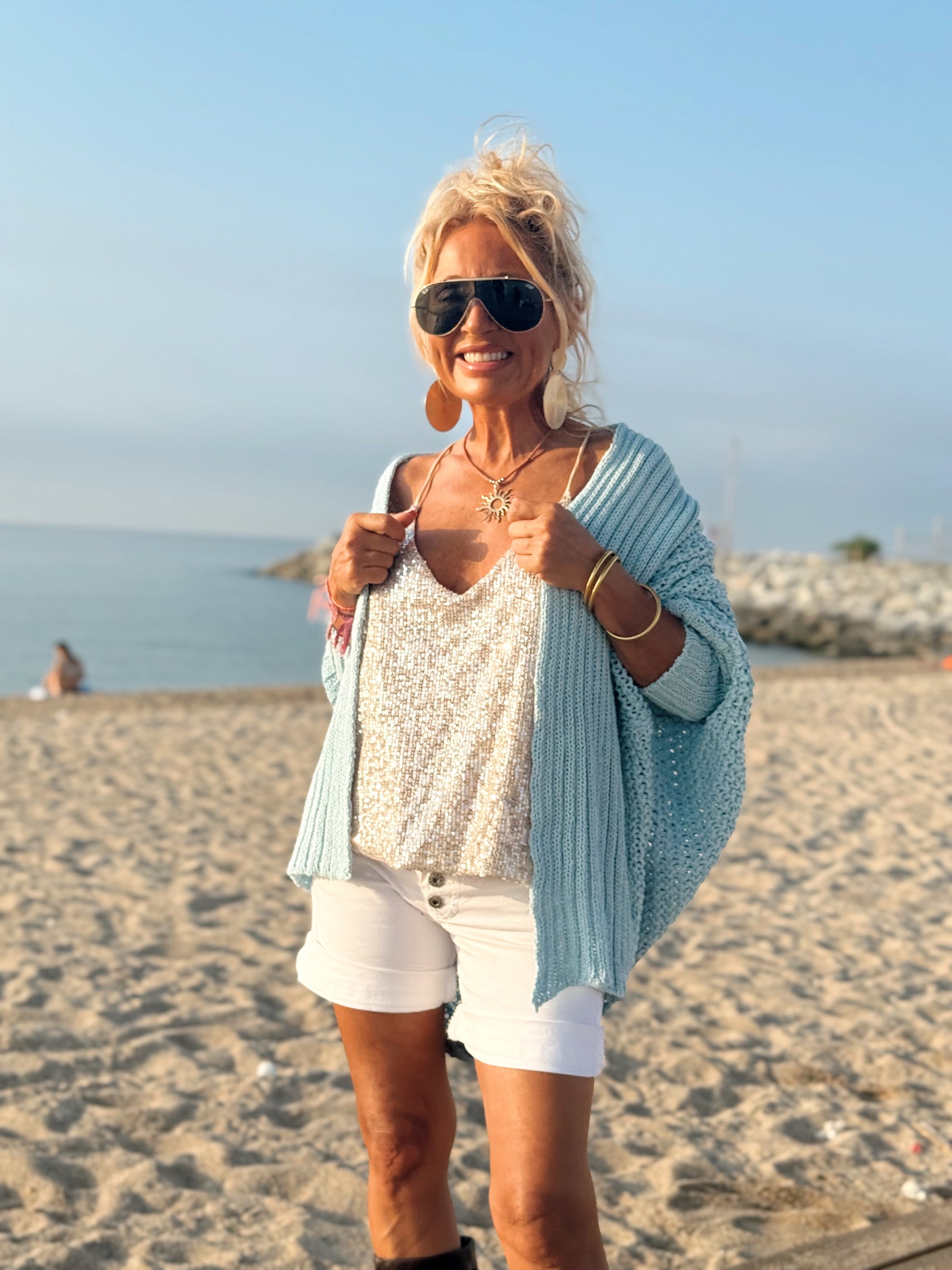 Un gilet ligero y encantador, perfecto para despedir el verano con estilo.