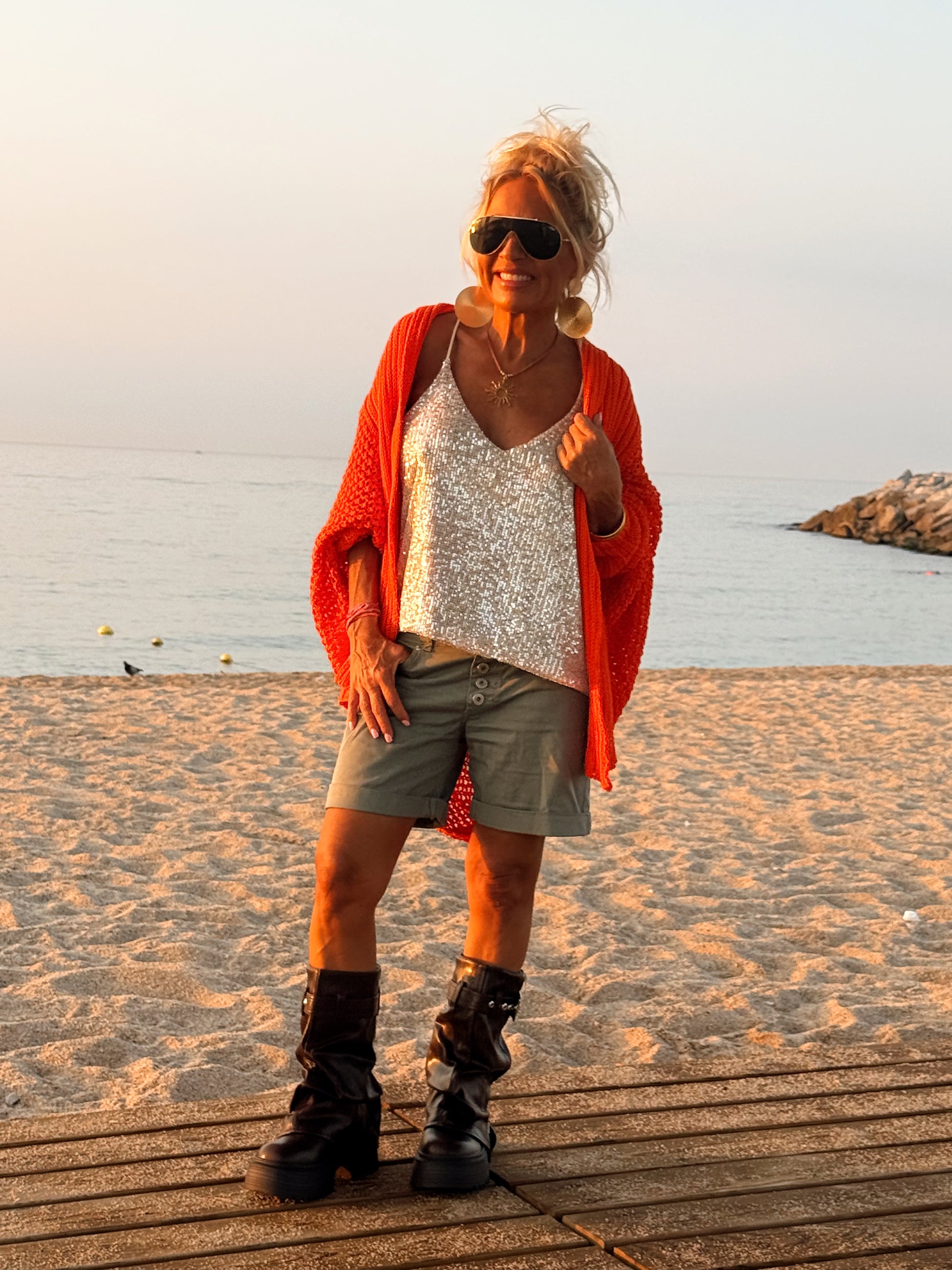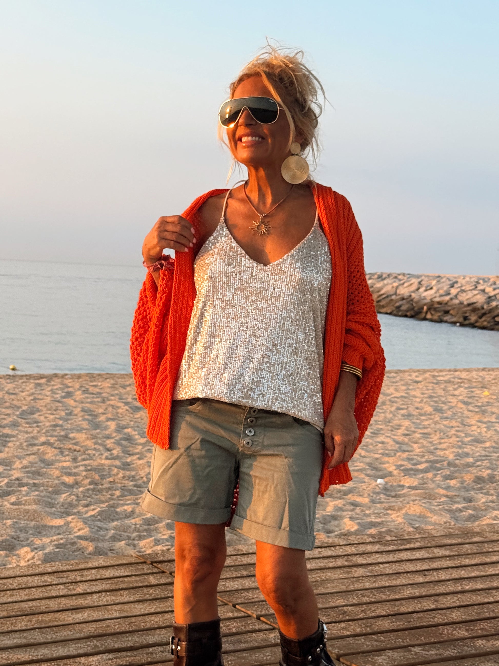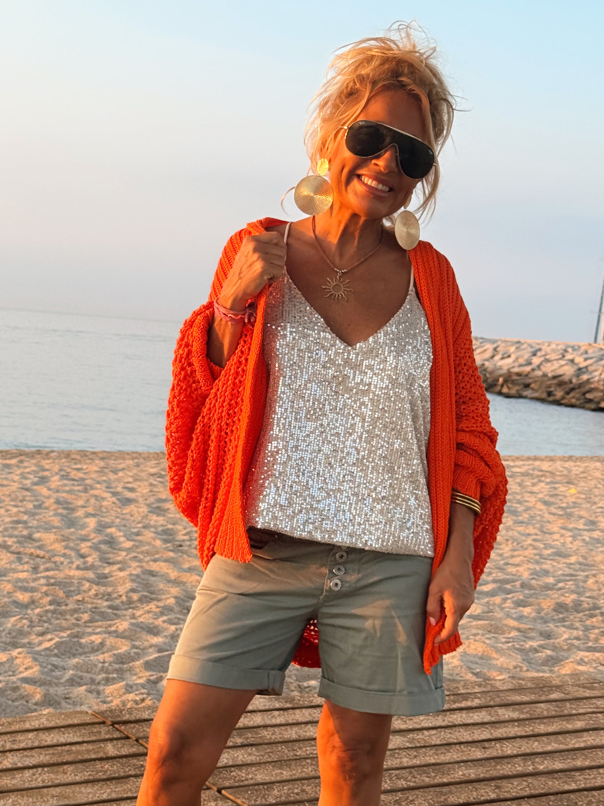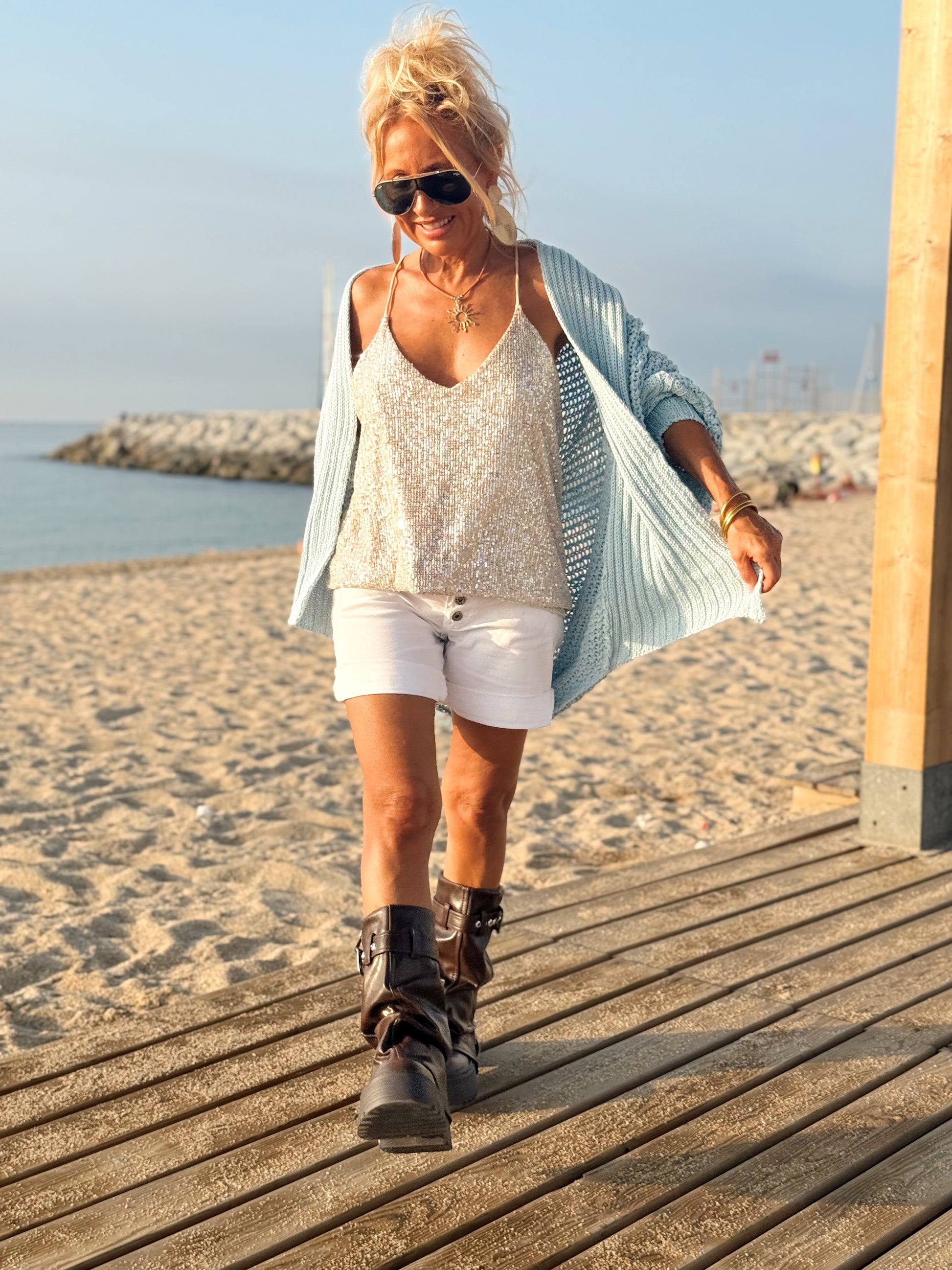 Un gilet ligero y encantador, perfecto para despedir el verano con estilo.