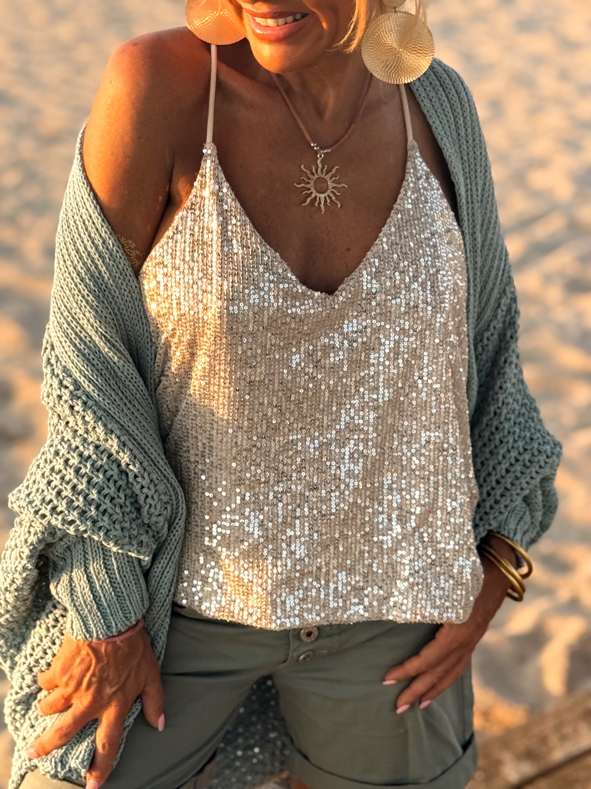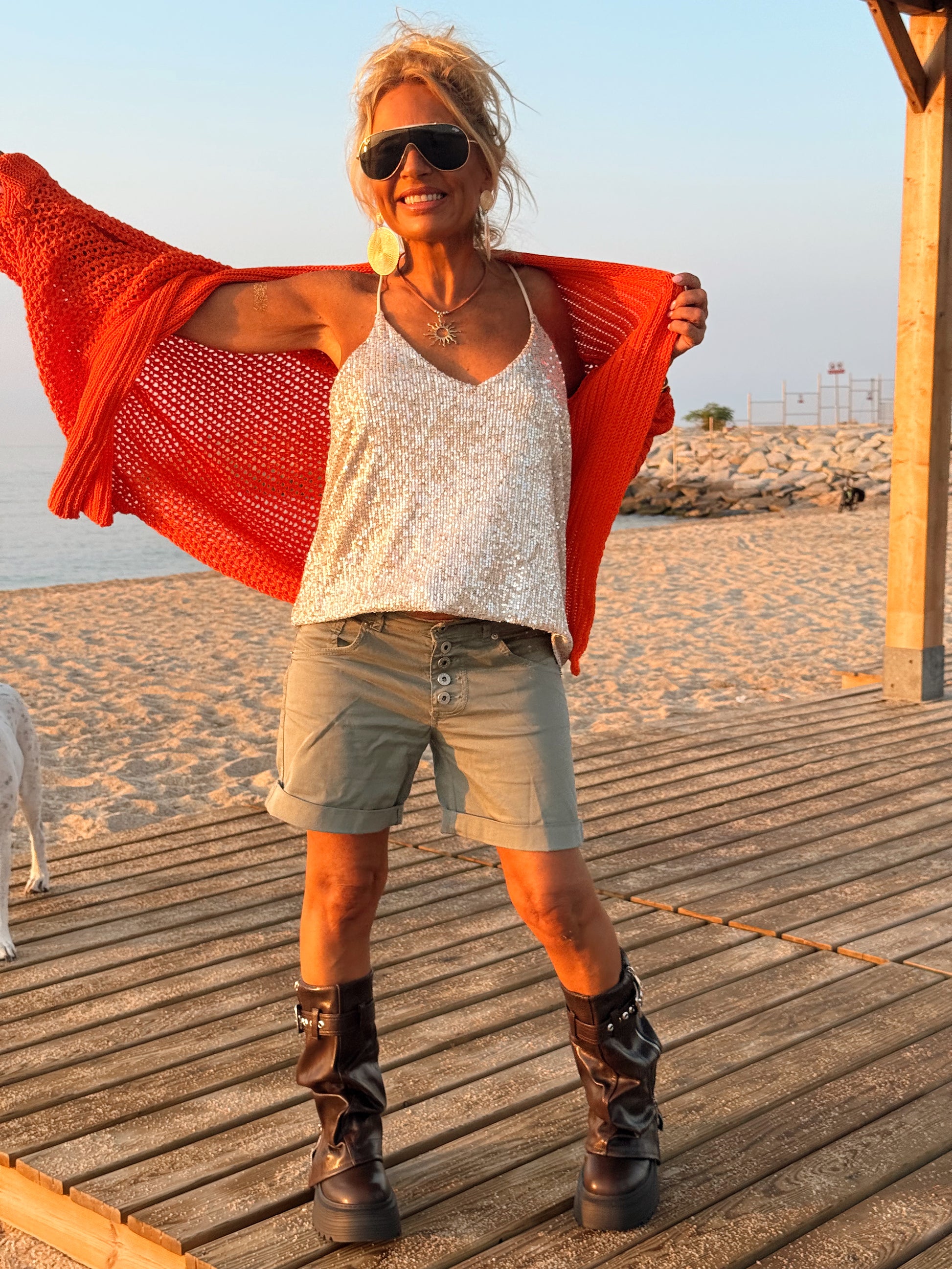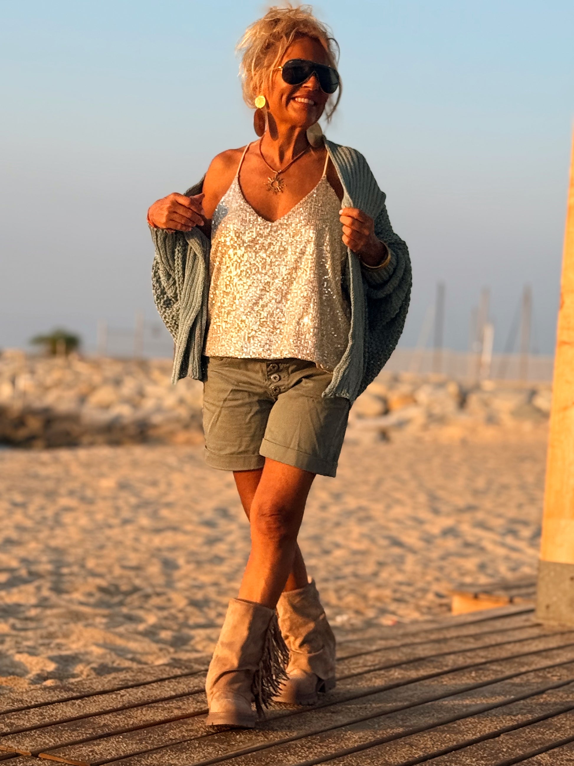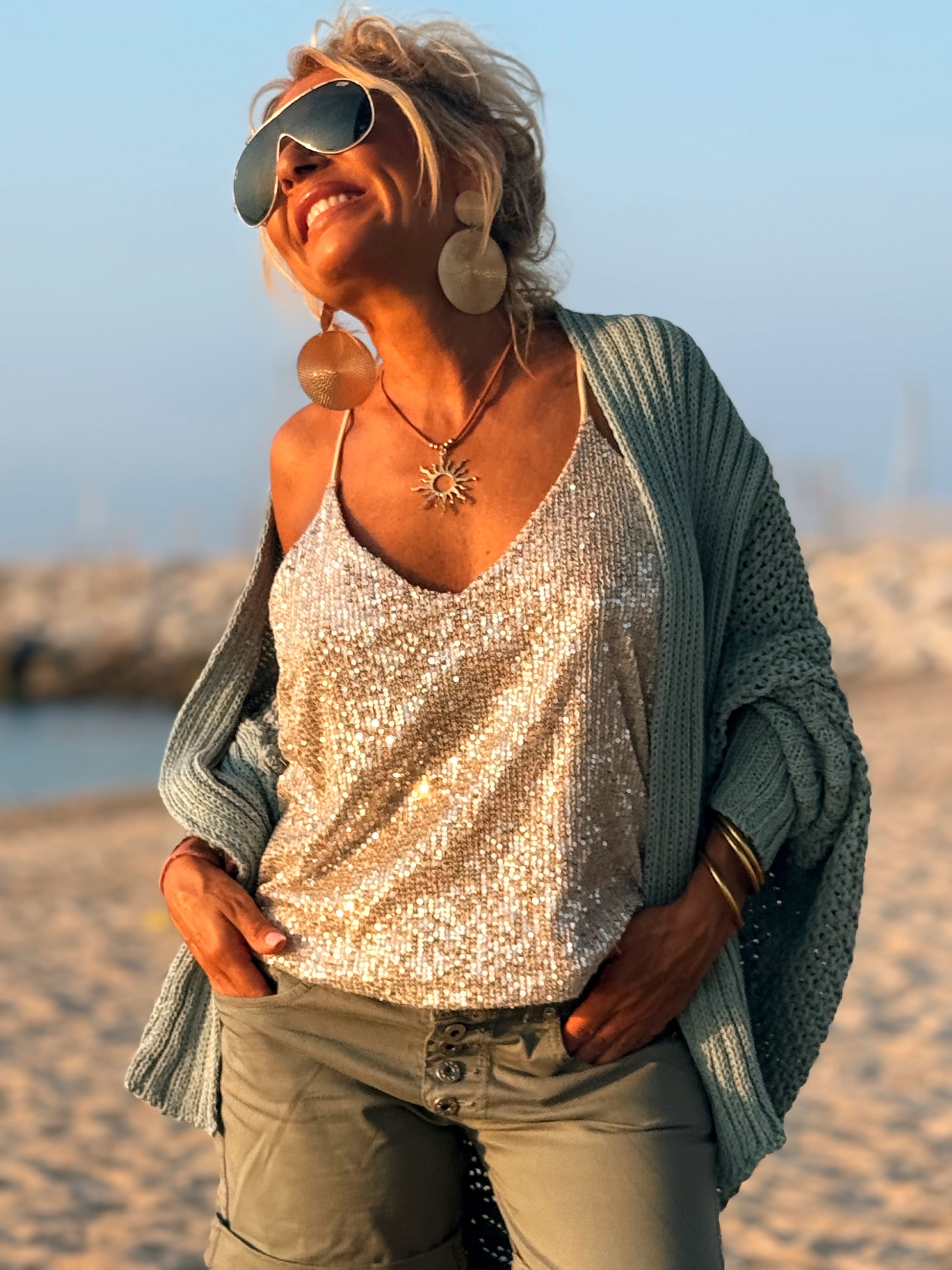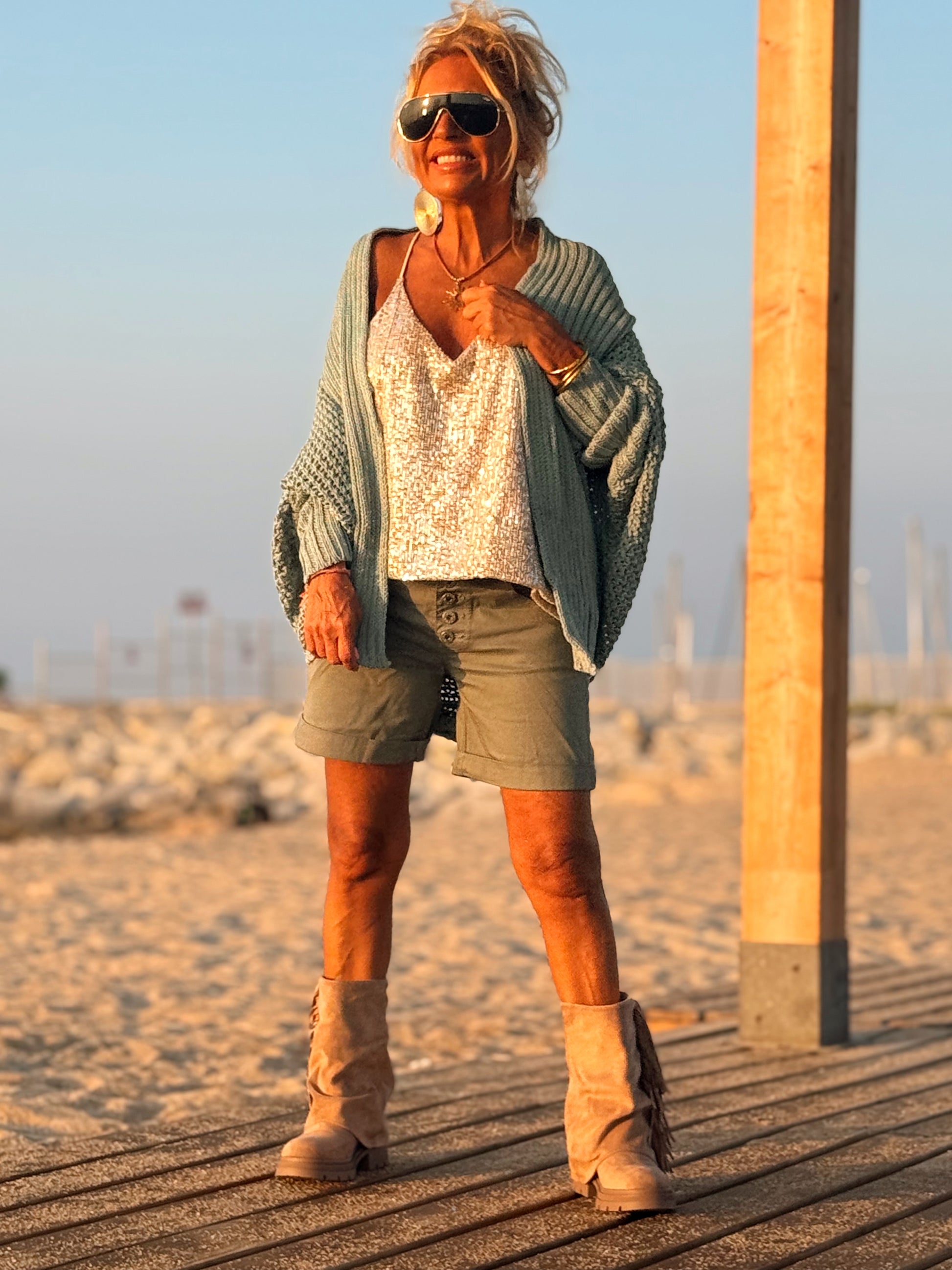 Un gilet ligero y encantador, perfecto para despedir el verano con estilo.