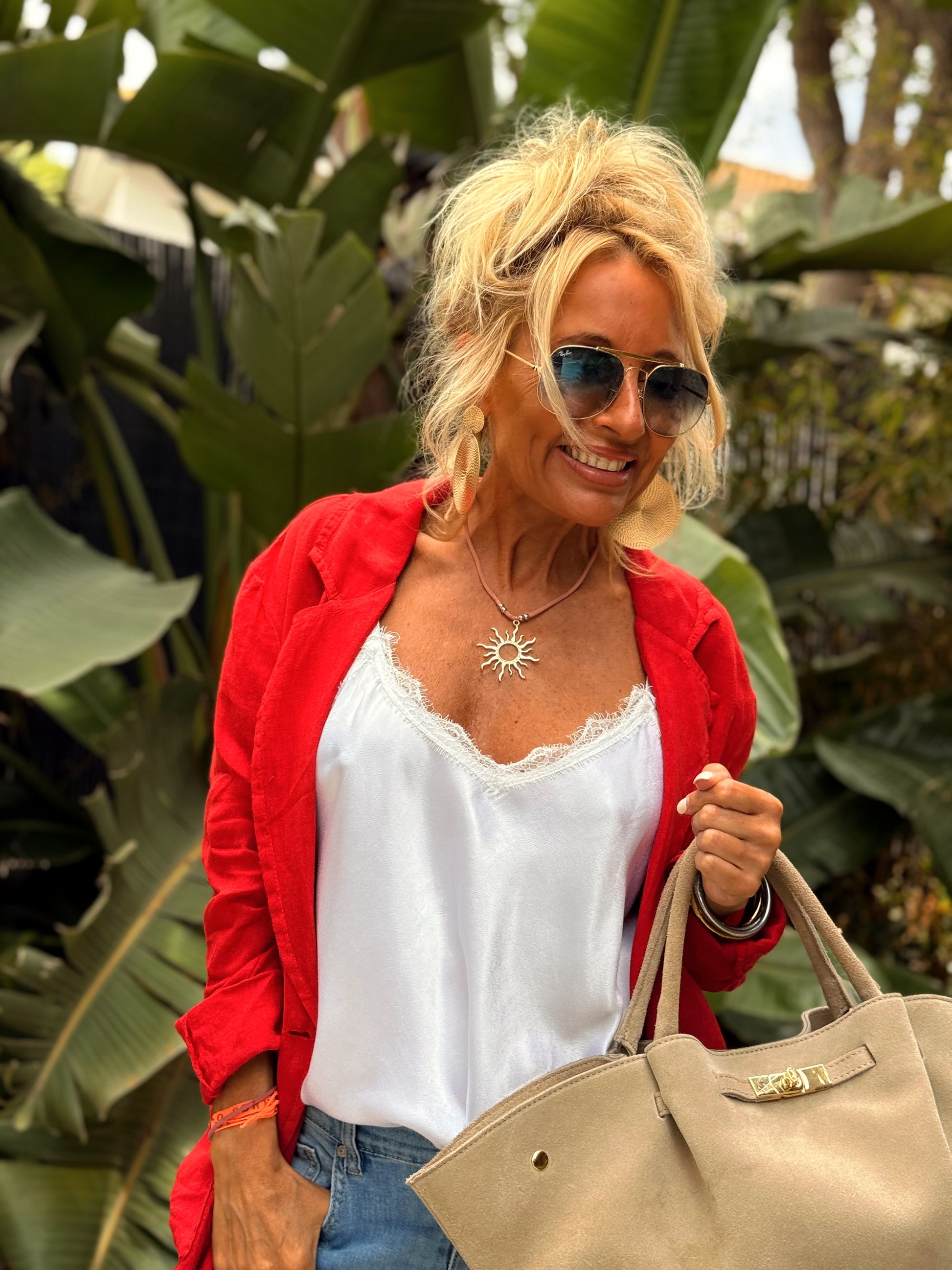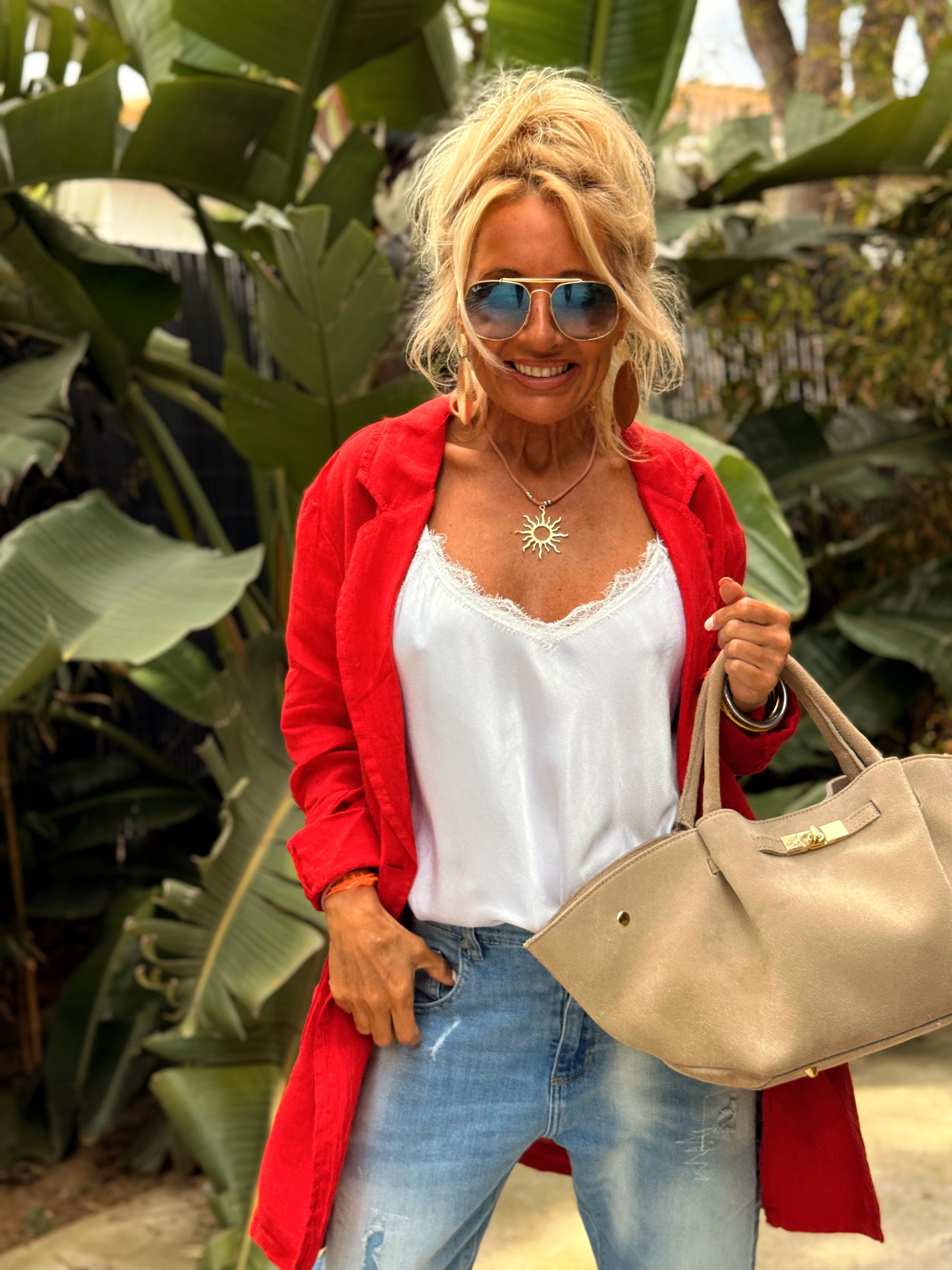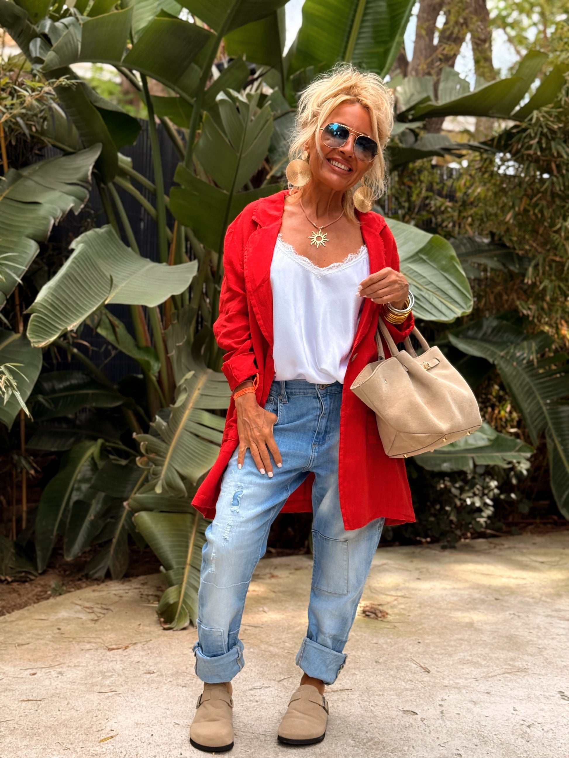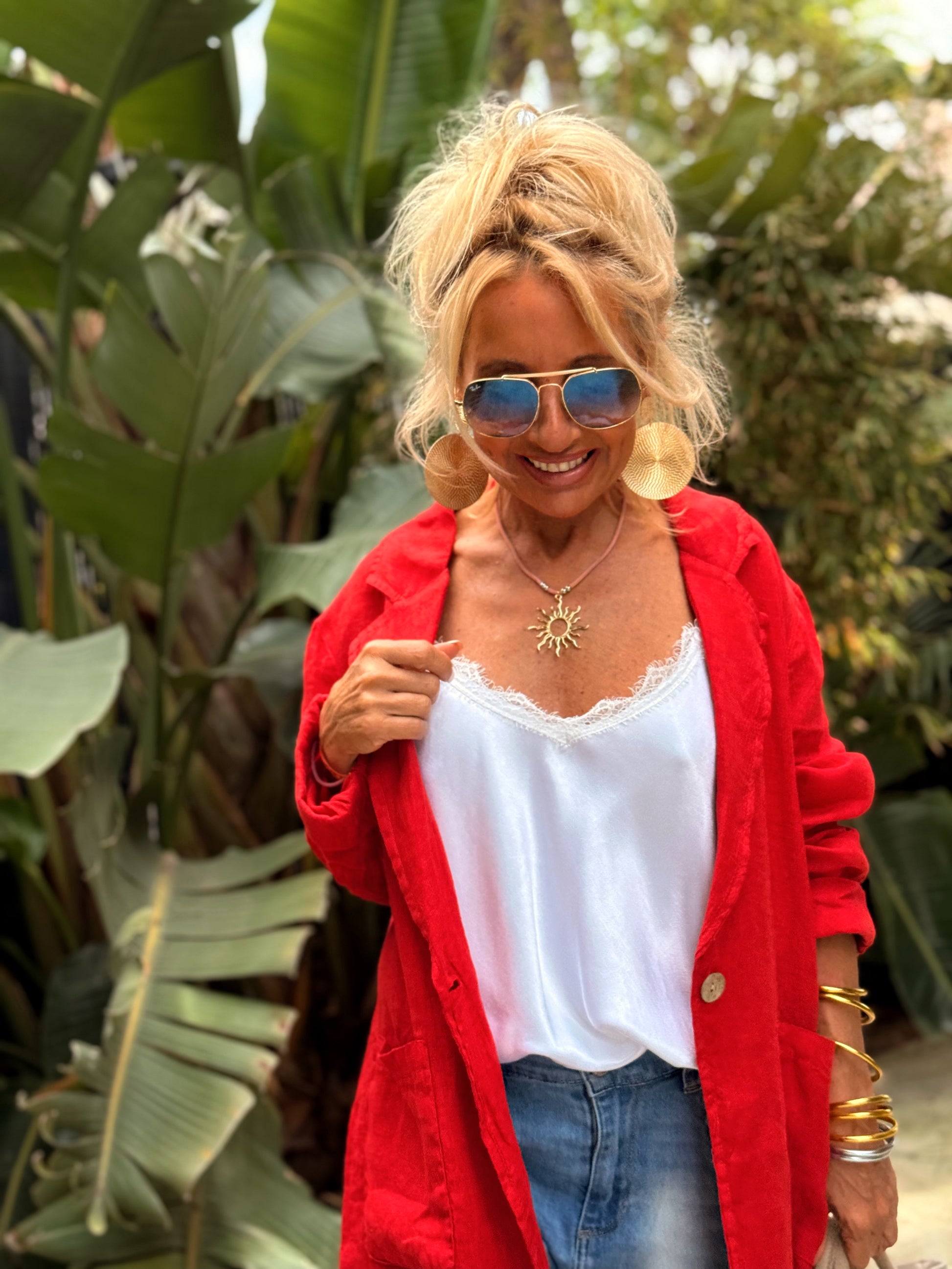 Ligera, fresca y elegante, esta chaqueta eleva cualquier look con un toque natural y sofisticado.