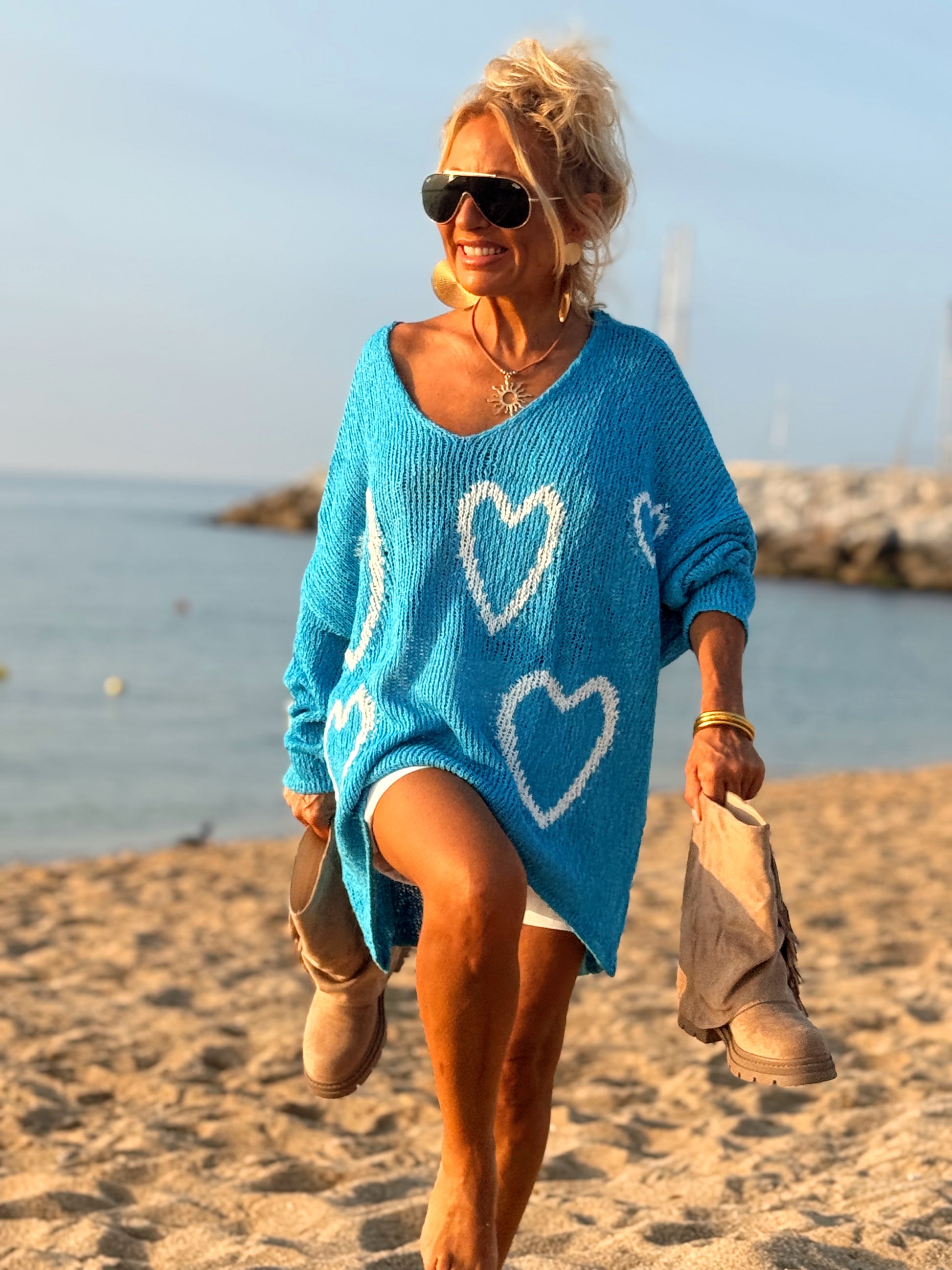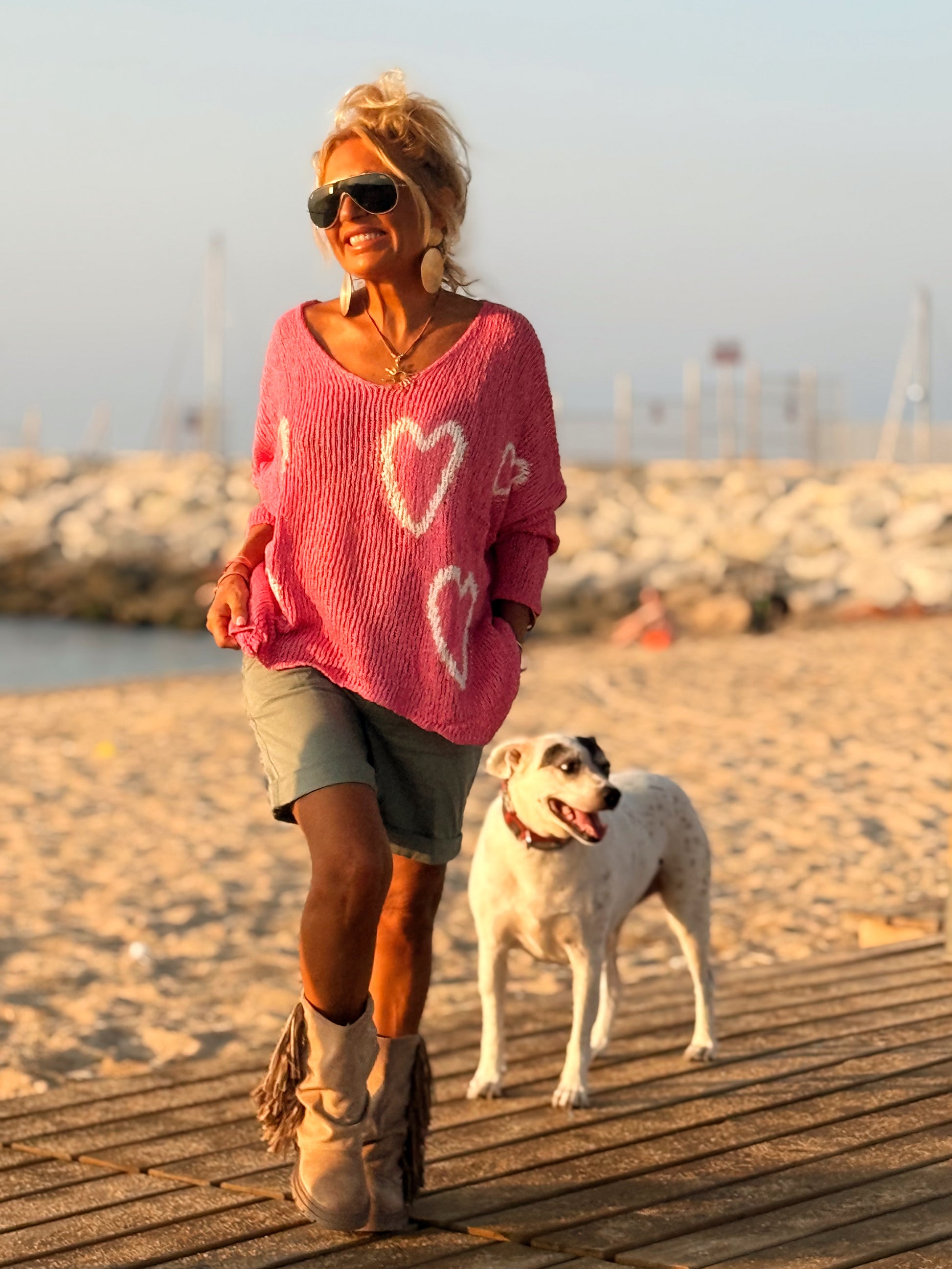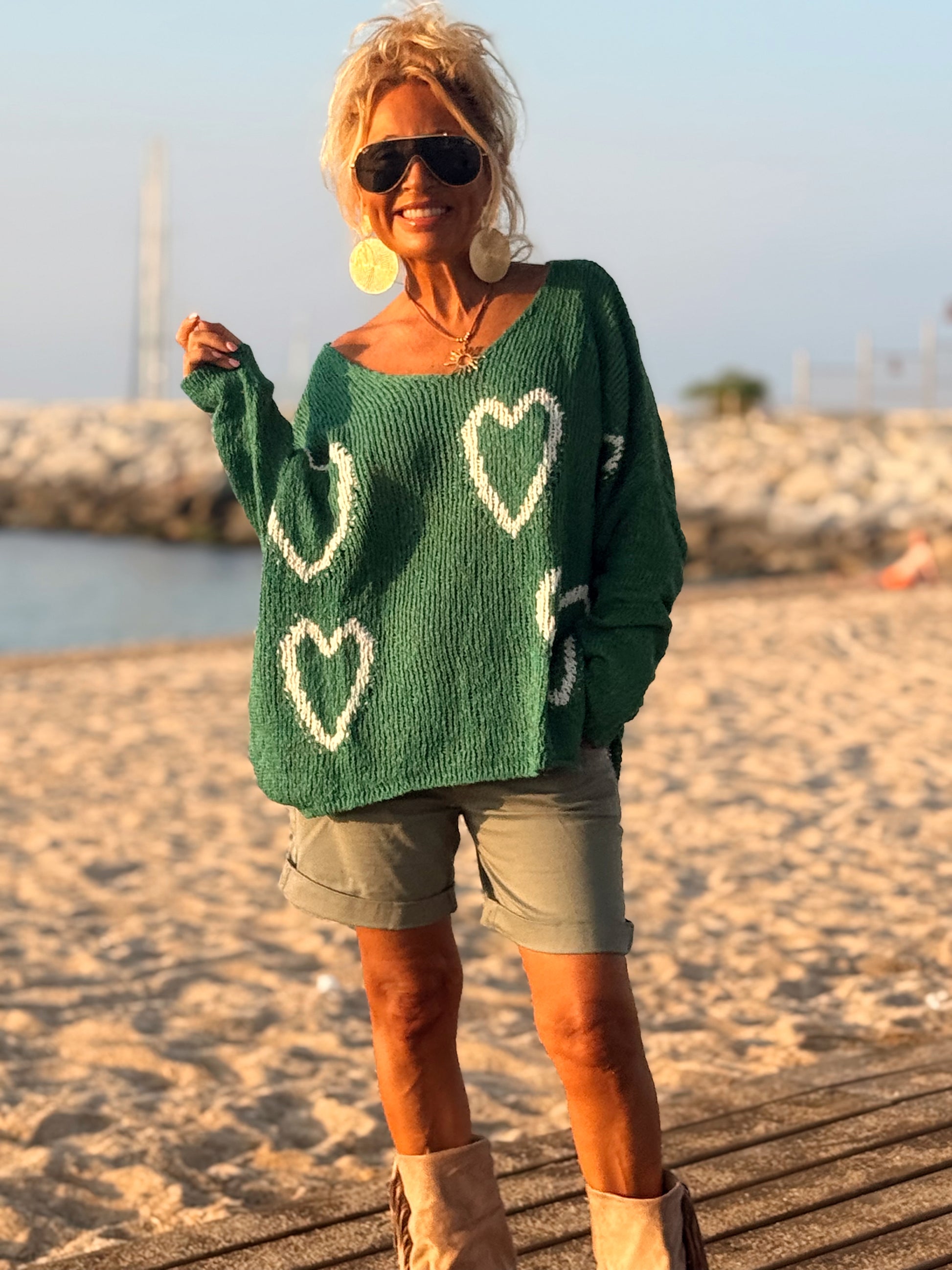 Suéter con corazones, simplemente precioso. Oversize y con un corte asimétrico, se adapta hasta la talla 44. Moderno, cómodo y lleno de estilo, es perfecto para aportar un toque único a cualquier look.✨