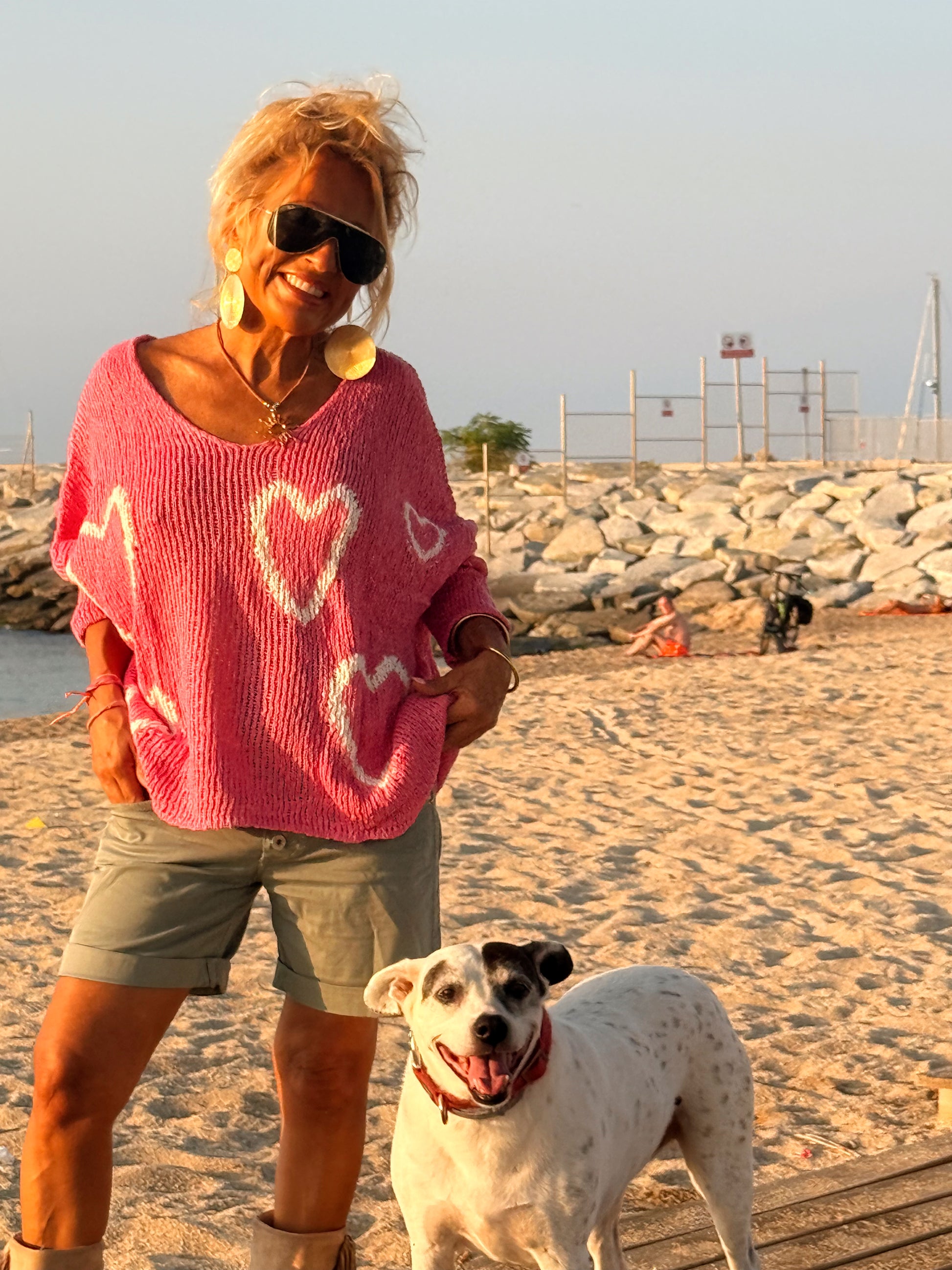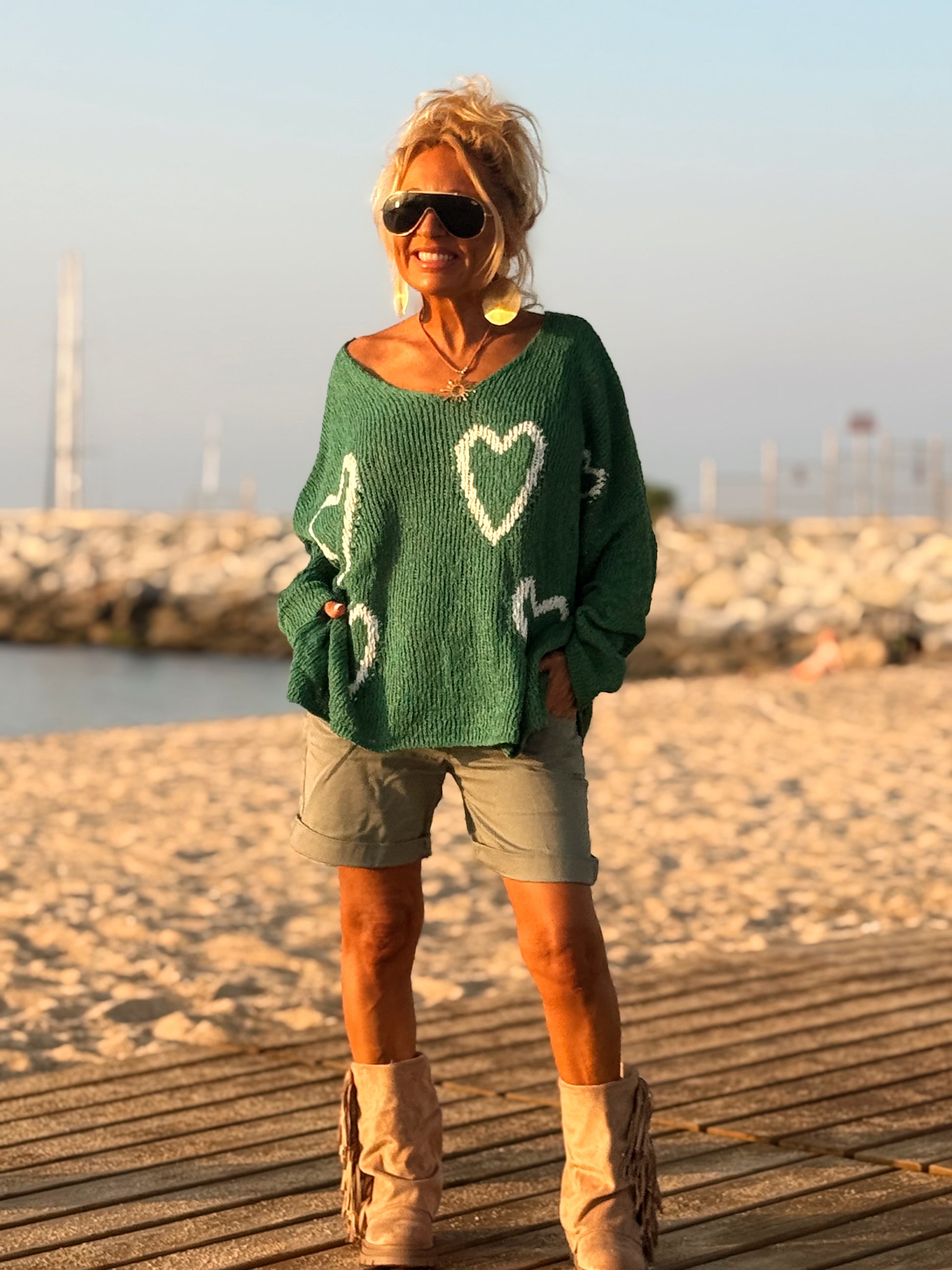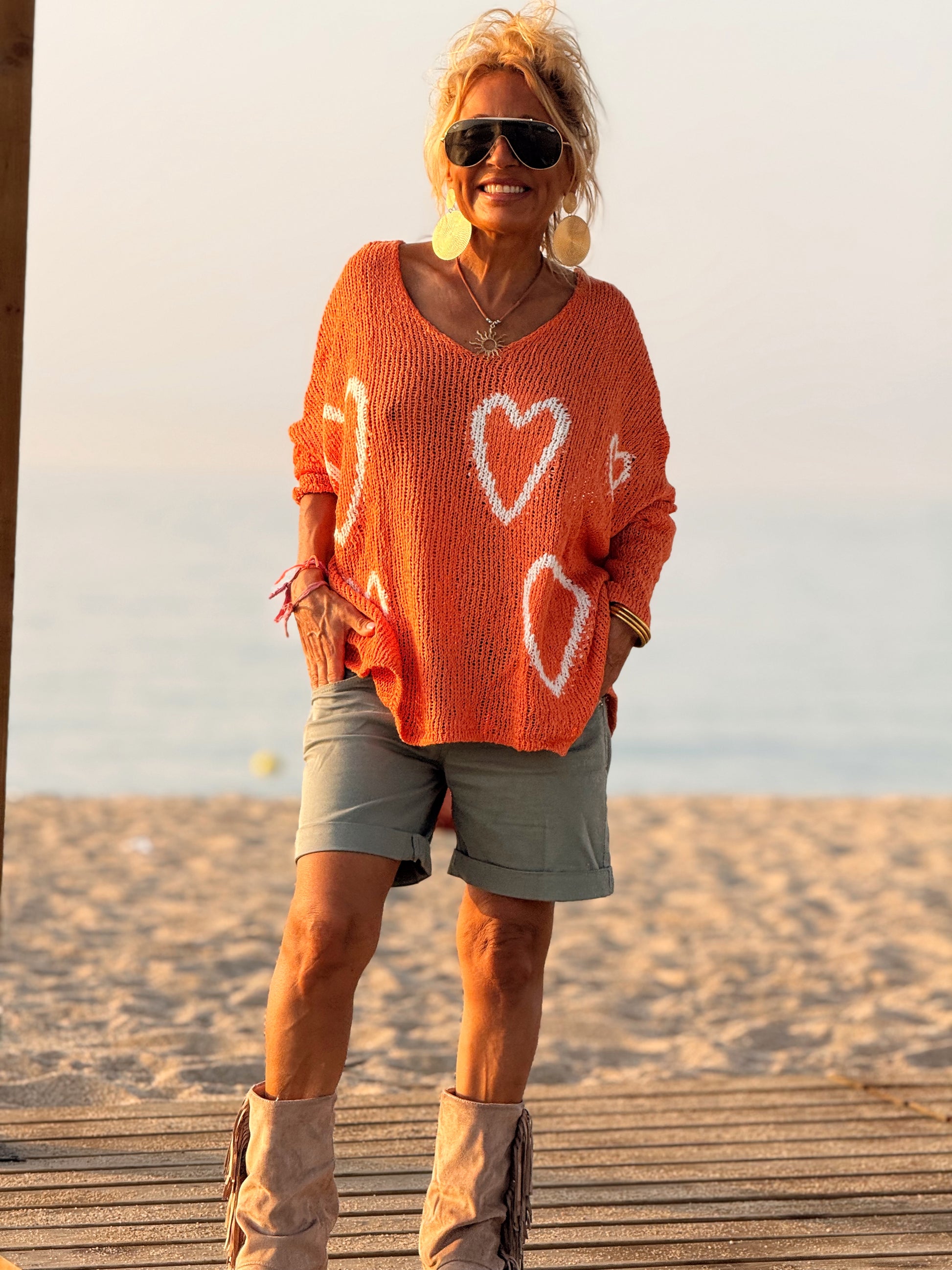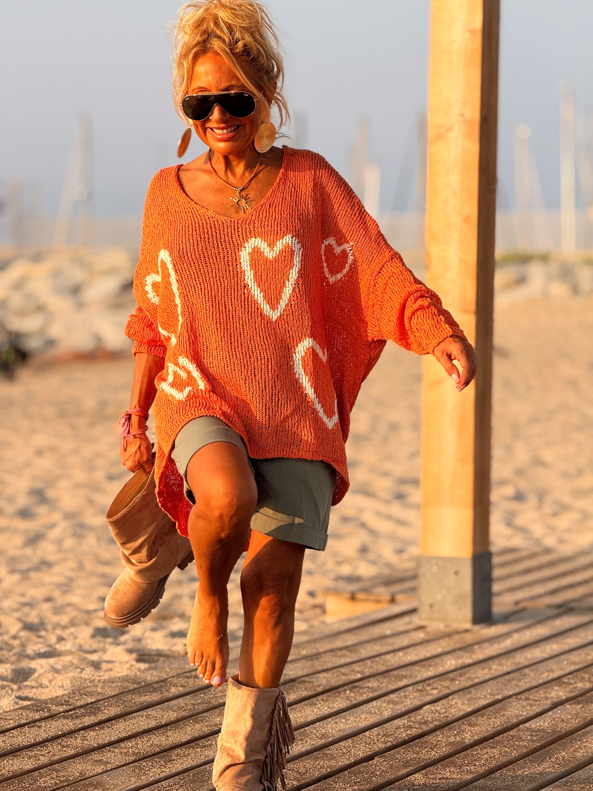 Suéter con corazones, simplemente precioso. Oversize y con un corte asimétrico, se adapta hasta la talla 44. Moderno, cómodo y lleno de estilo, es perfecto para aportar un toque único a cualquier look.✨