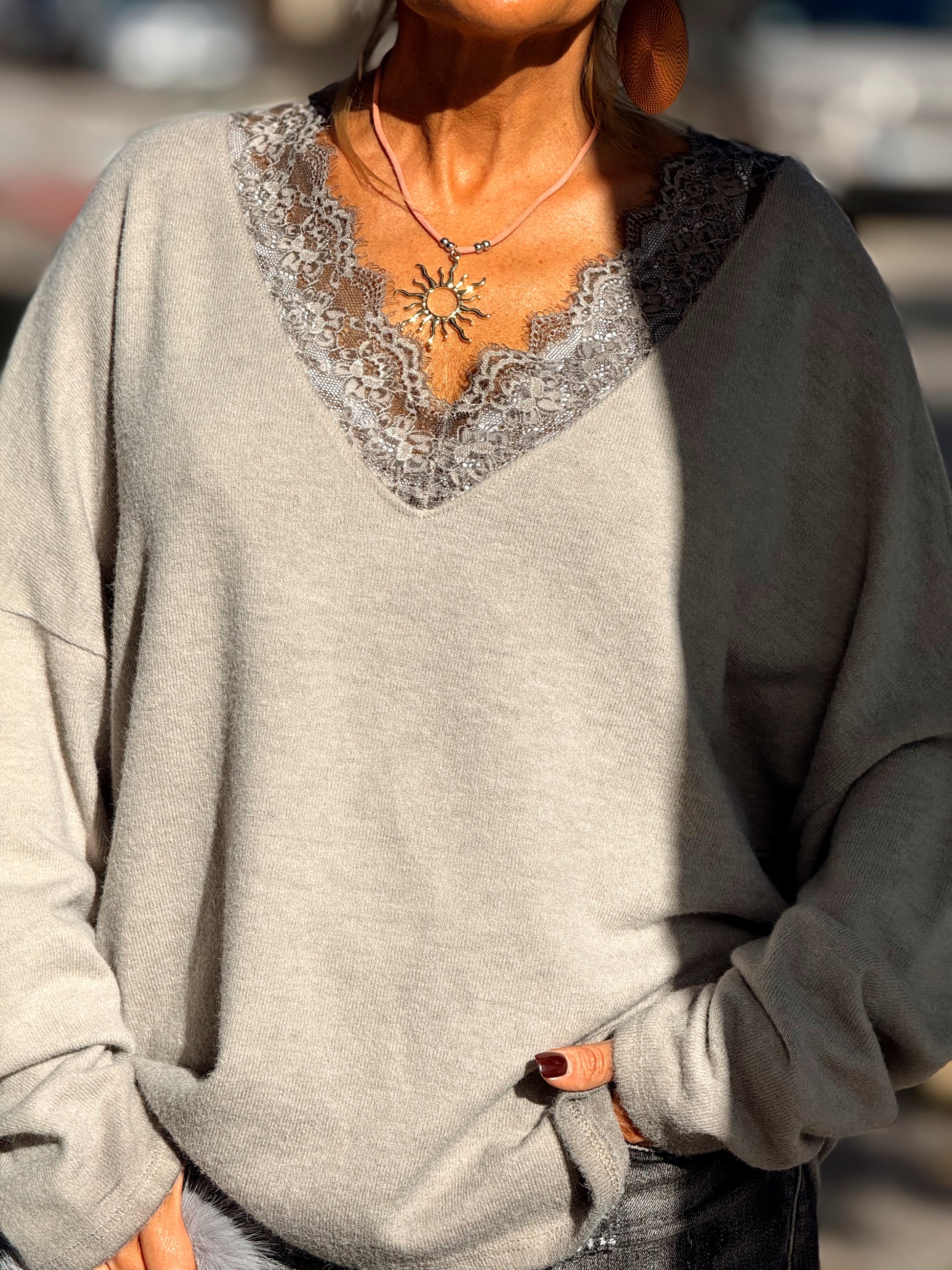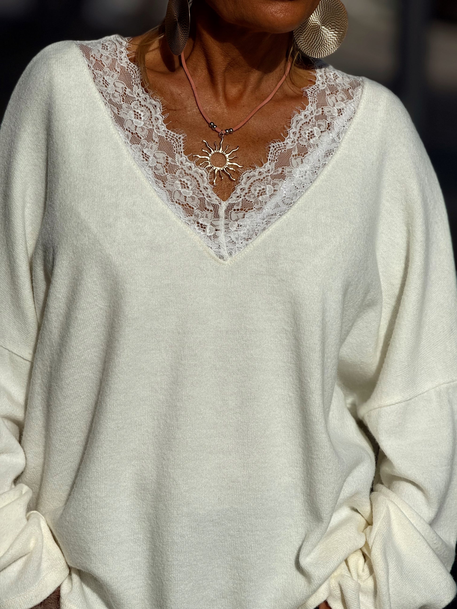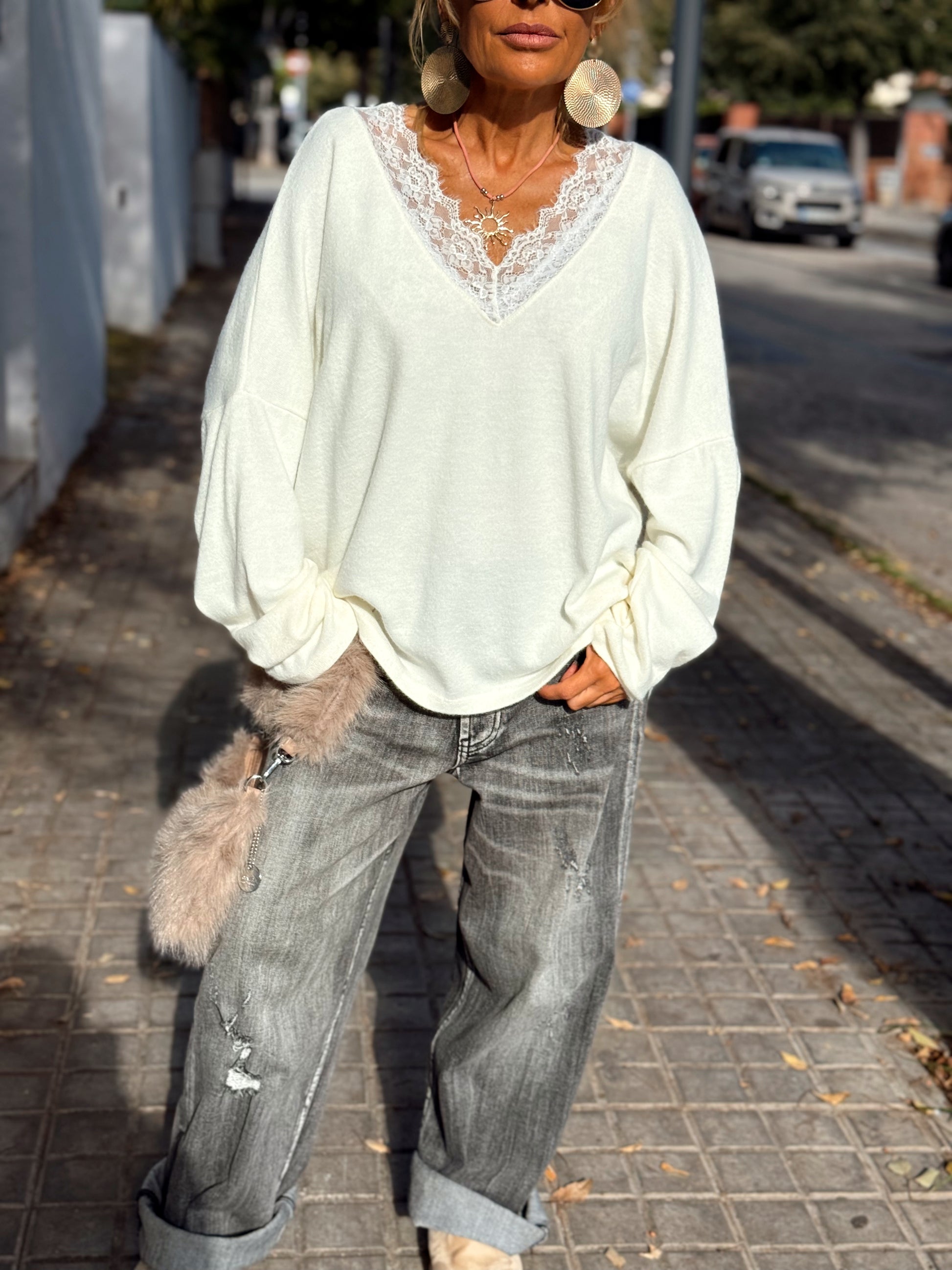 Jersey con encaje incorporado, simplemente maravilloso. 🌸 Súper elegante y femenino, muy agradable al llevar y con un estilo totalmente en tendencia.