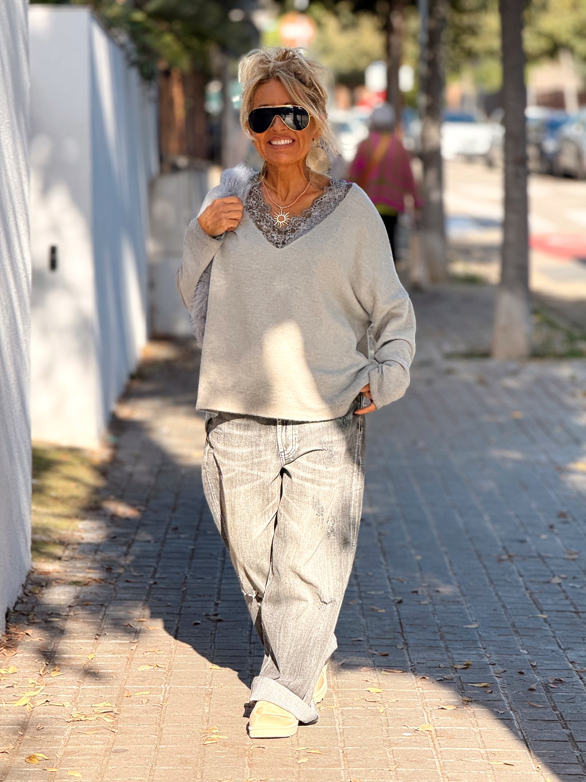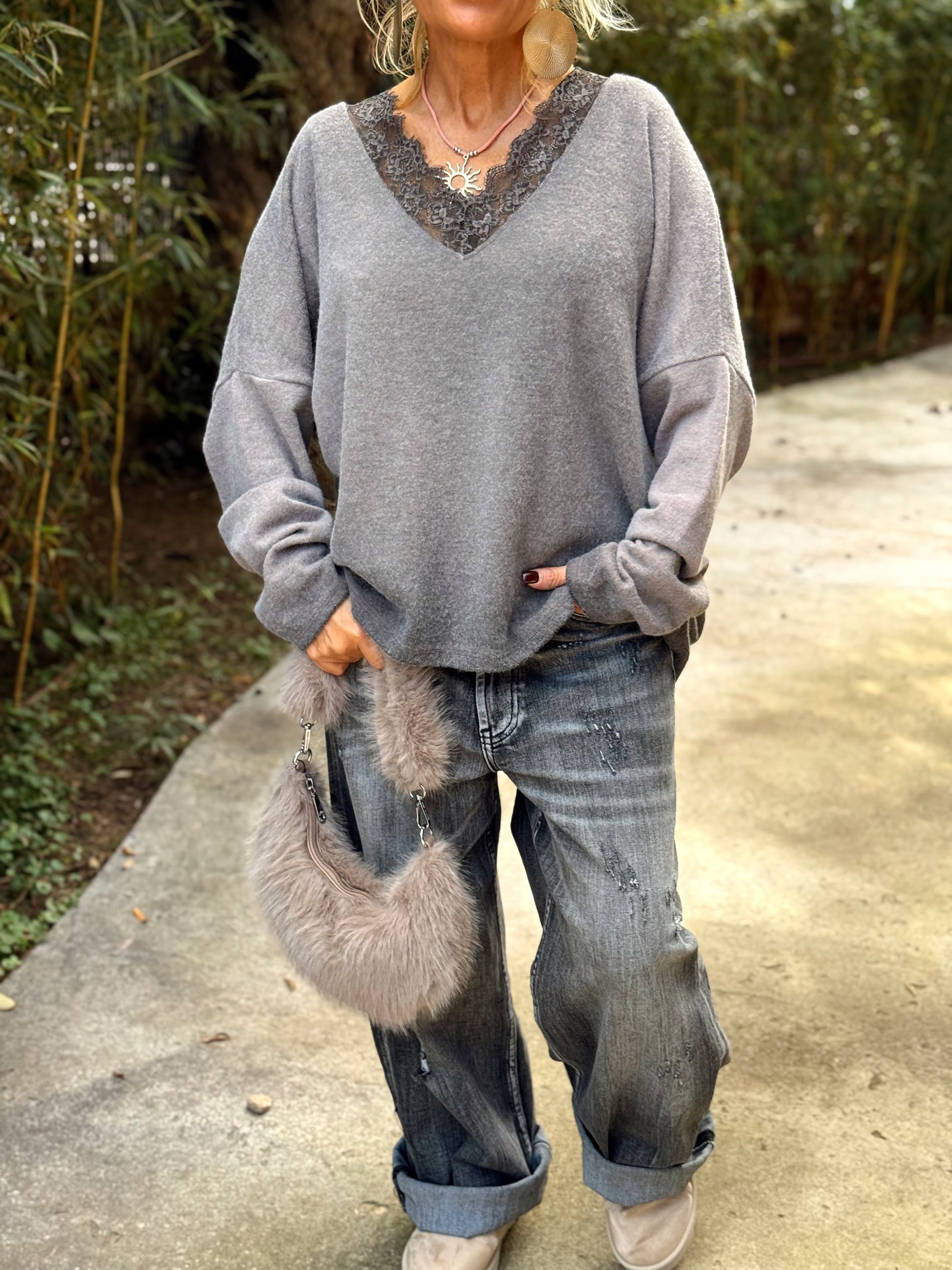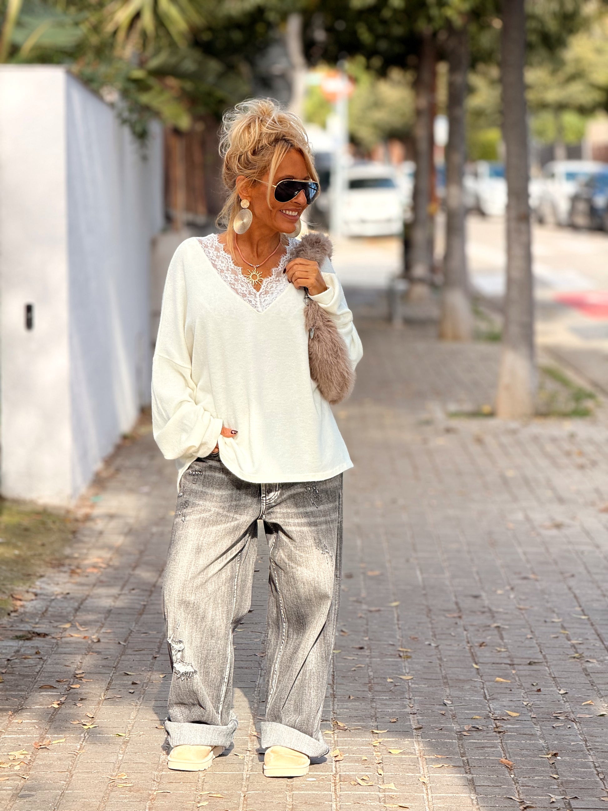 Jersey con encaje incorporado, simplemente maravilloso. 🌸 Súper elegante y femenino, muy agradable al llevar y con un estilo totalmente en tendencia.